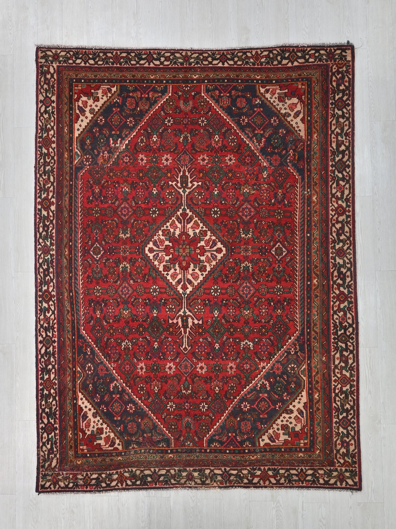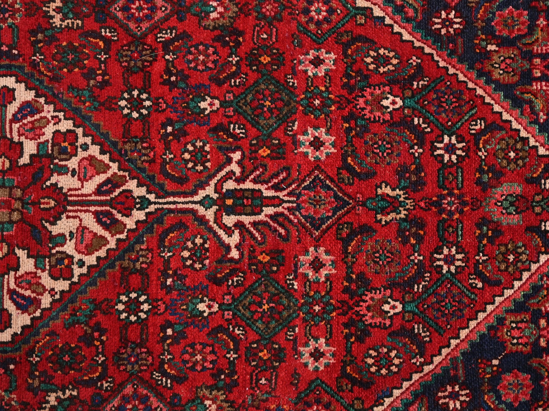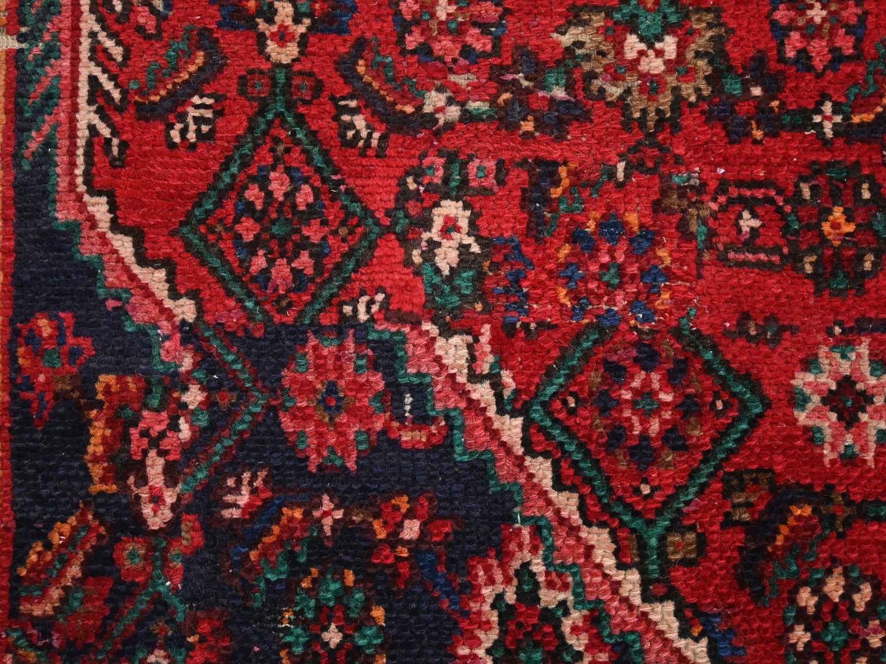 This is a hand-knotted, one-of-a-kind vintage rug. Due to the nature of this piece, there may be slight imperfections in its wear, shape, dimensions, and color. All of our rugs are professionally cleaned and repaired.