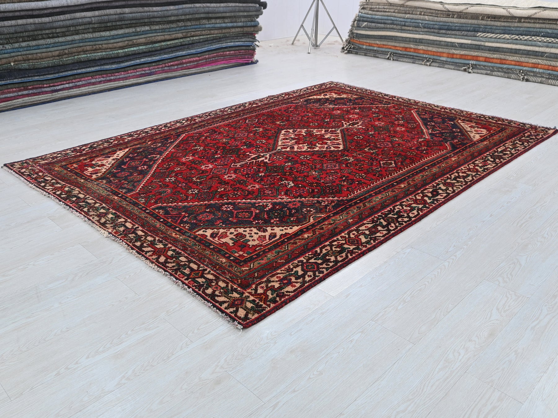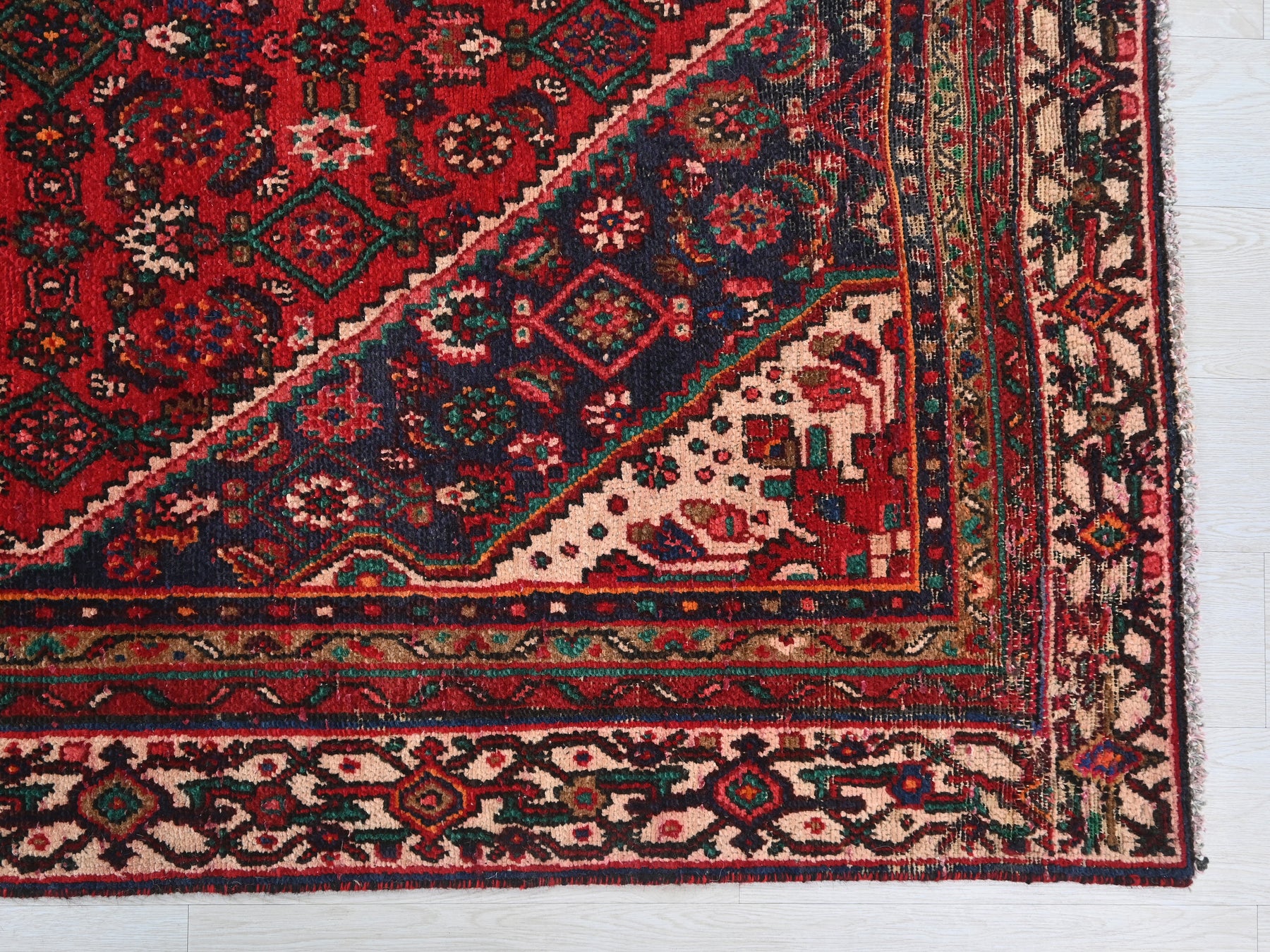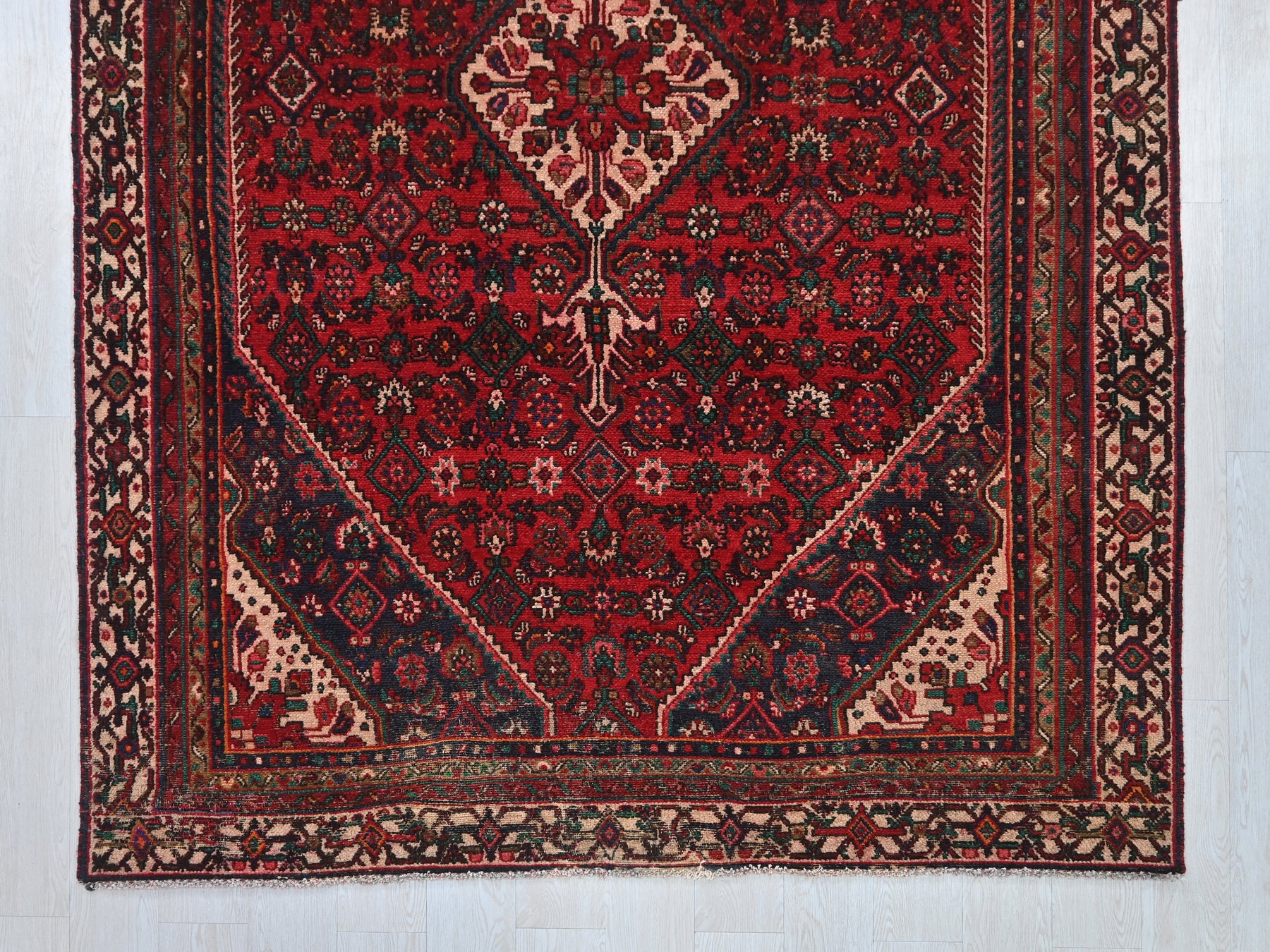 This is a hand-knotted, one-of-a-kind vintage rug. Due to the nature of this piece, there may be slight imperfections in its wear, shape, dimensions, and color. All of our rugs are professionally cleaned and repaired.