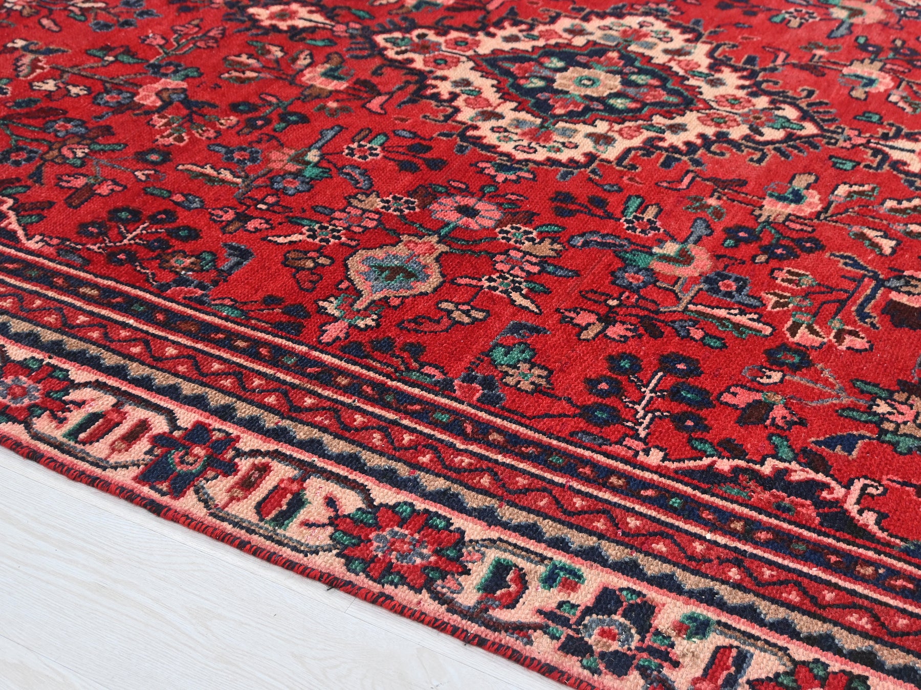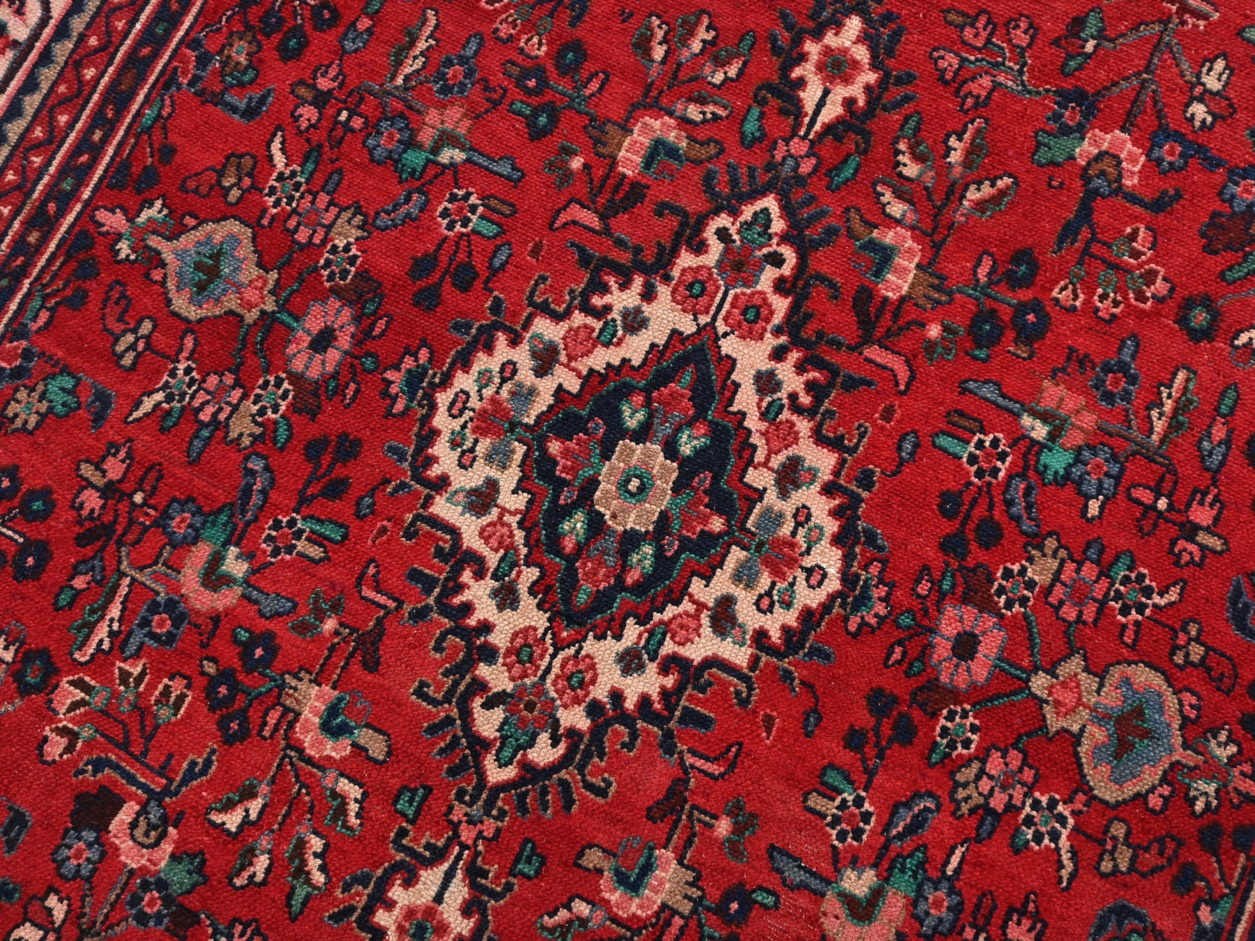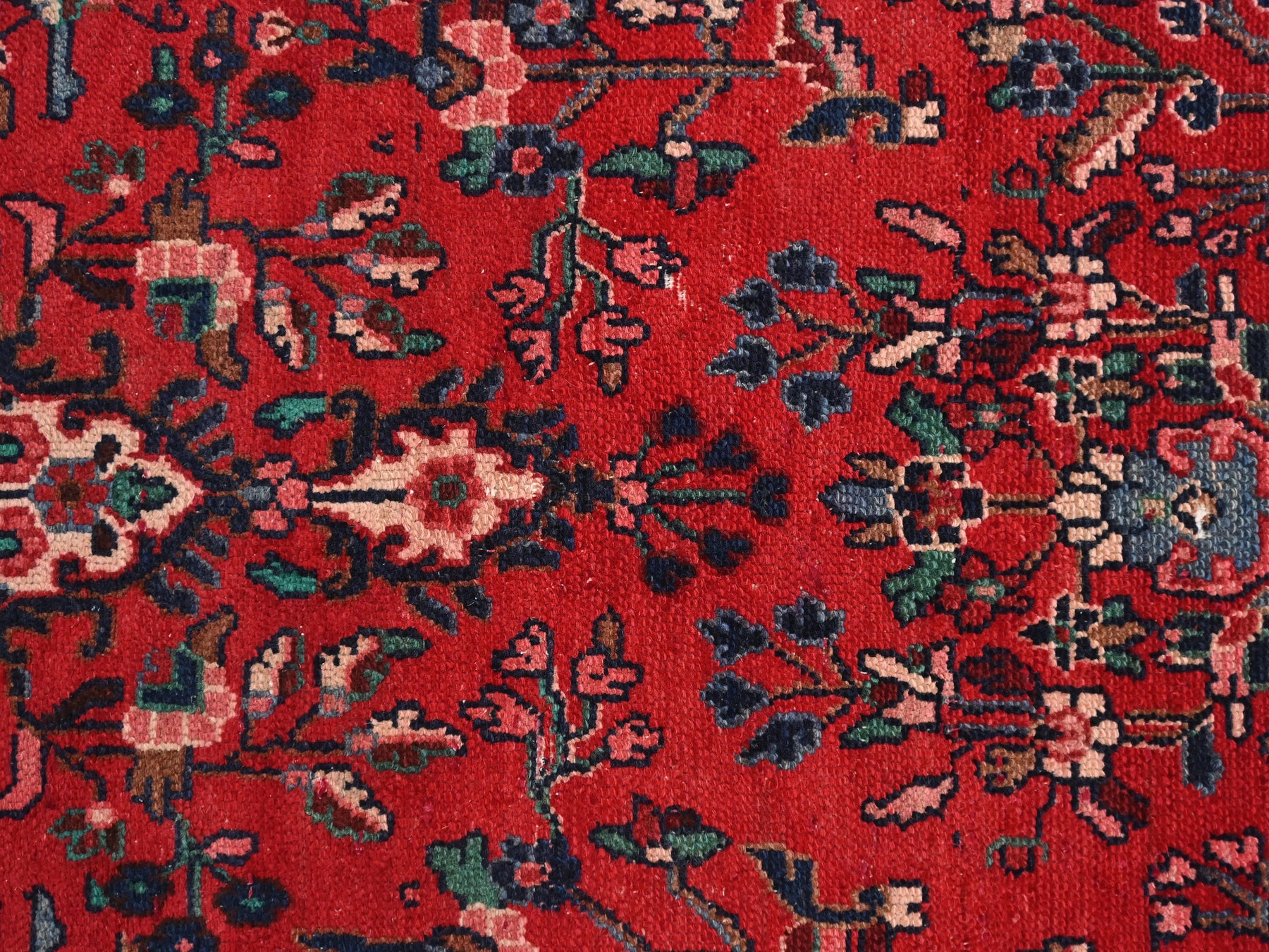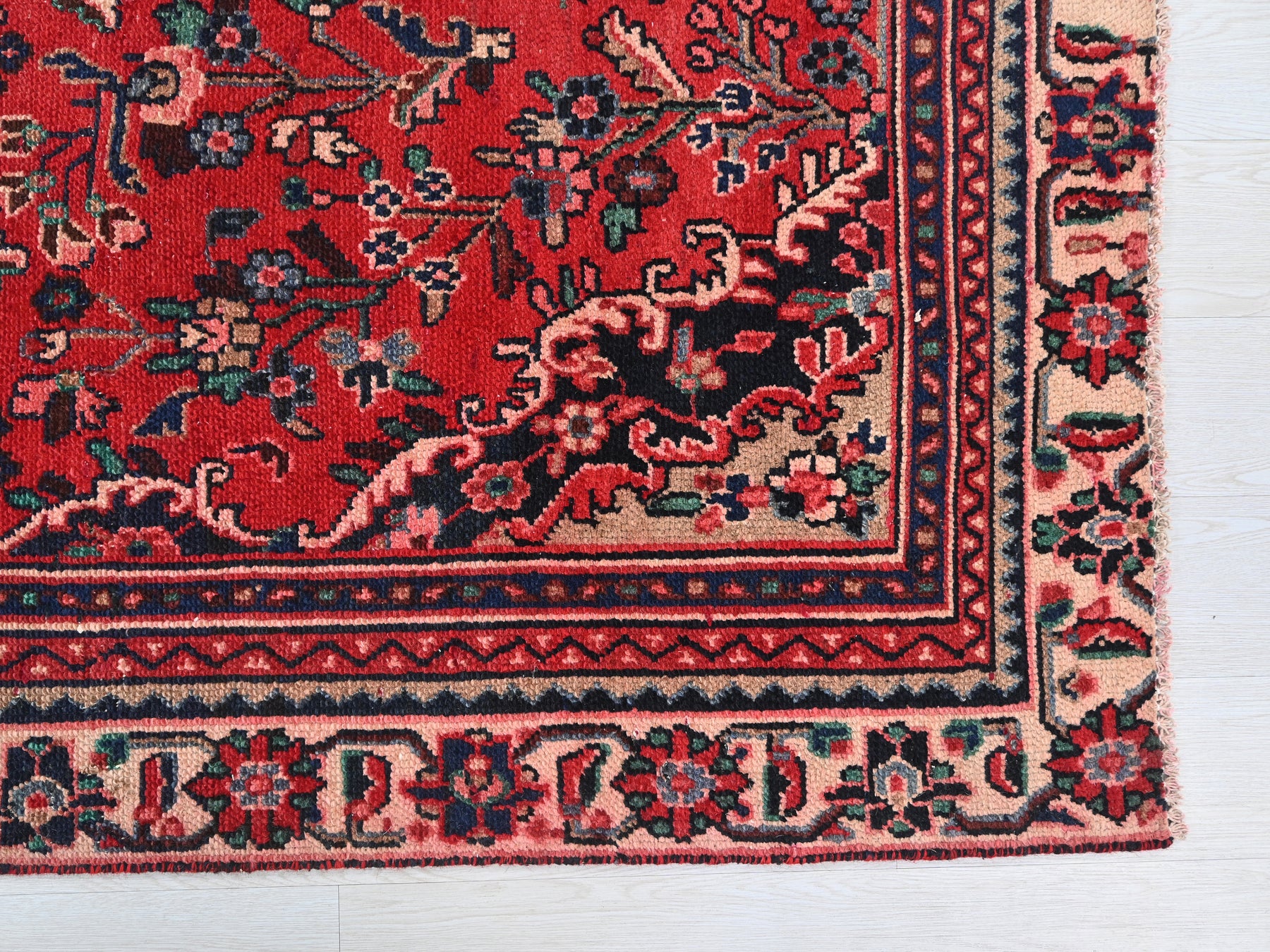 This is a hand-knotted, one-of-a-kind vintage rug. Due to the nature of this piece, there may be slight imperfections in its wear, shape, dimensions, and color. All of our rugs are professionally cleaned and repaired.