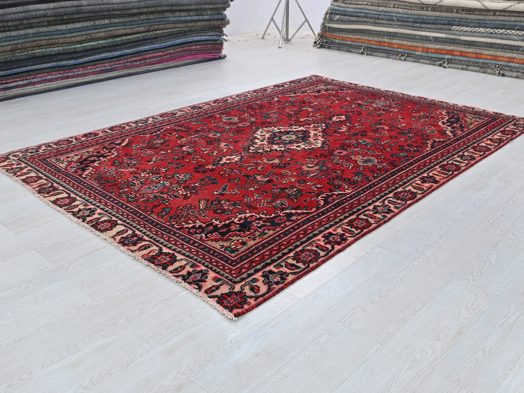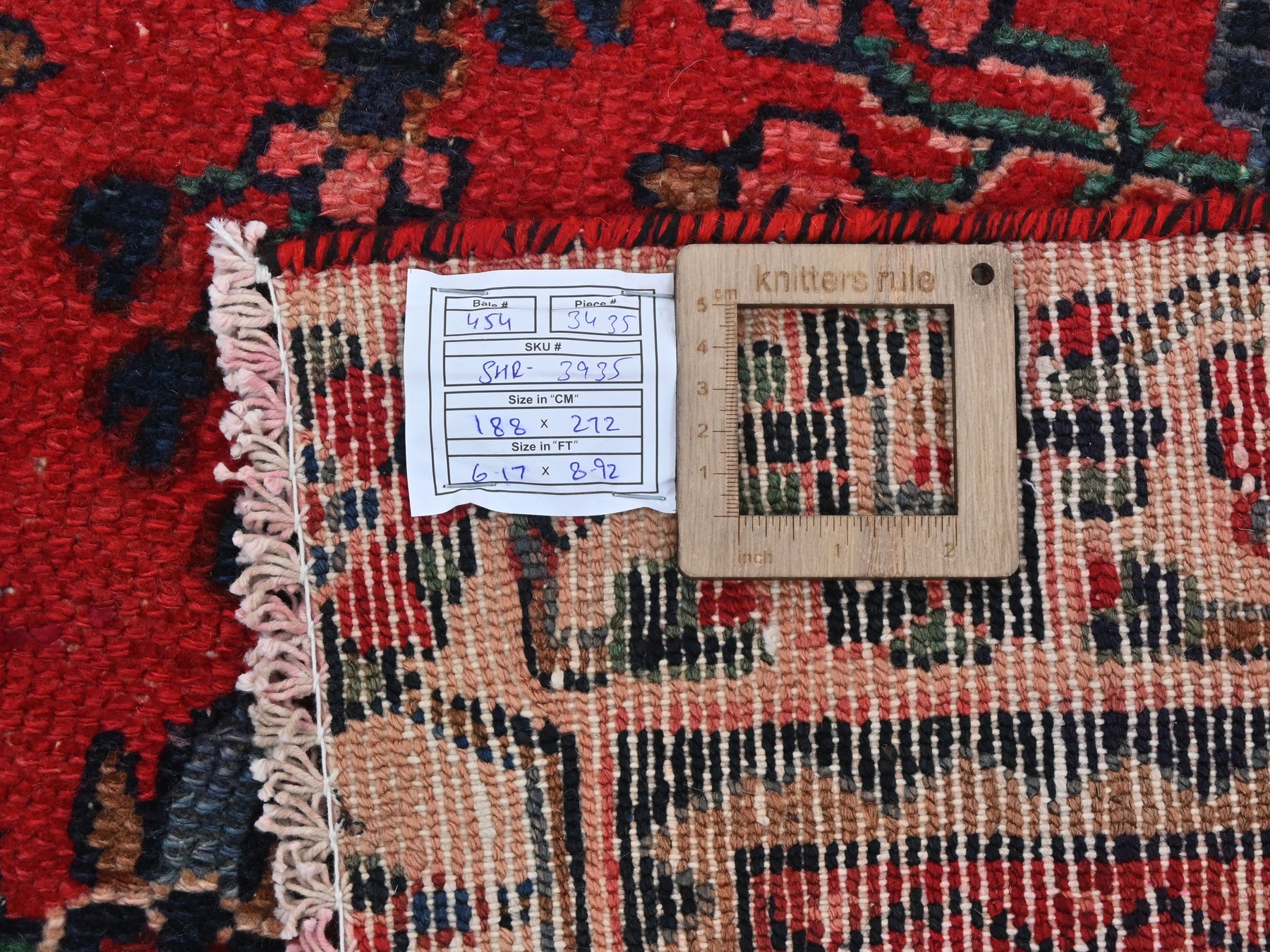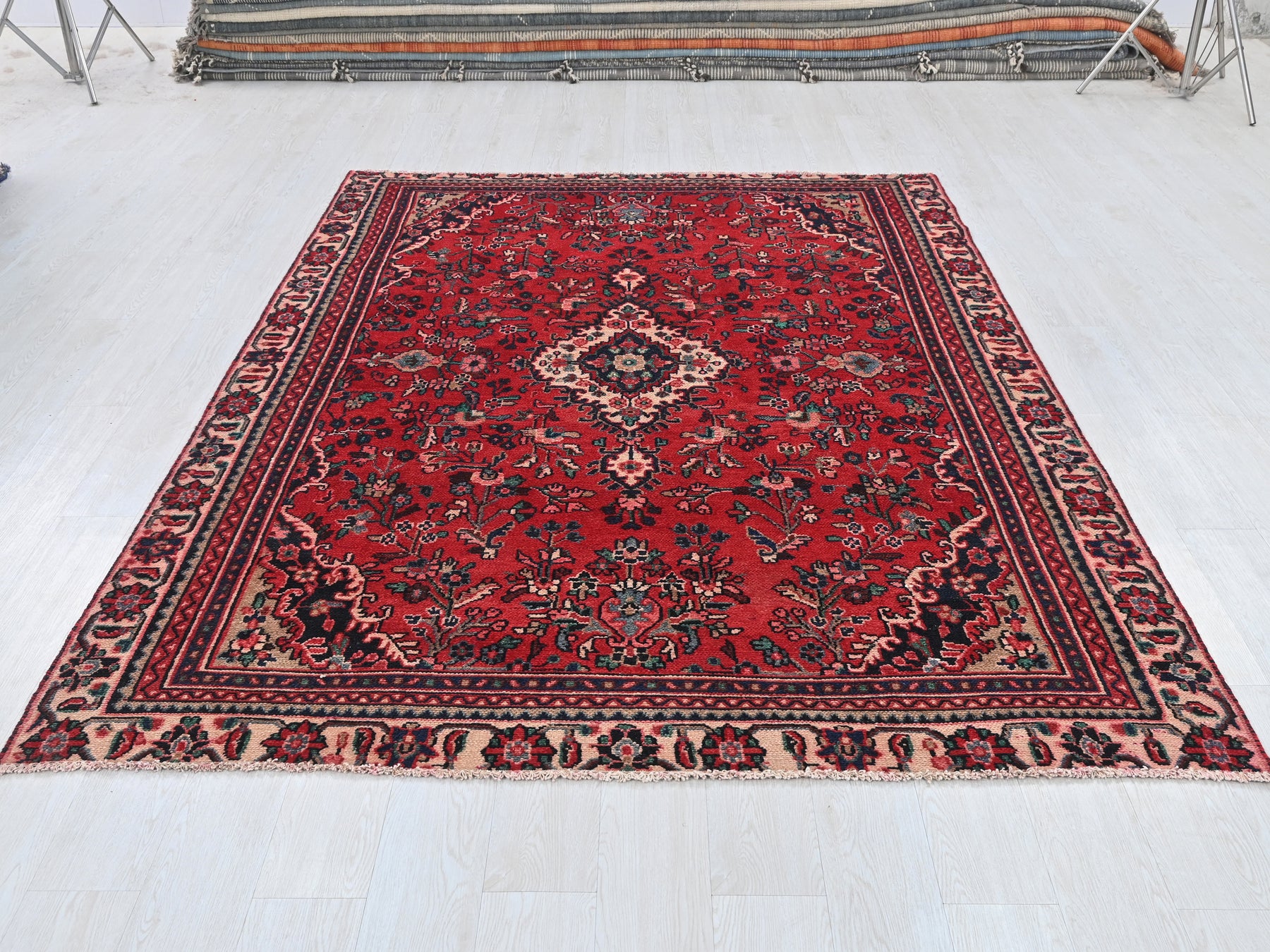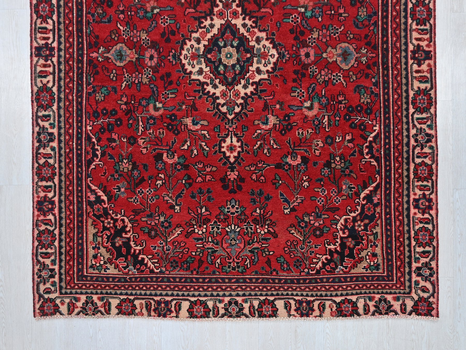 This is a hand-knotted, one-of-a-kind vintage rug. Due to the nature of this piece, there may be slight imperfections in its wear, shape, dimensions, and color. All of our rugs are professionally cleaned and repaired.