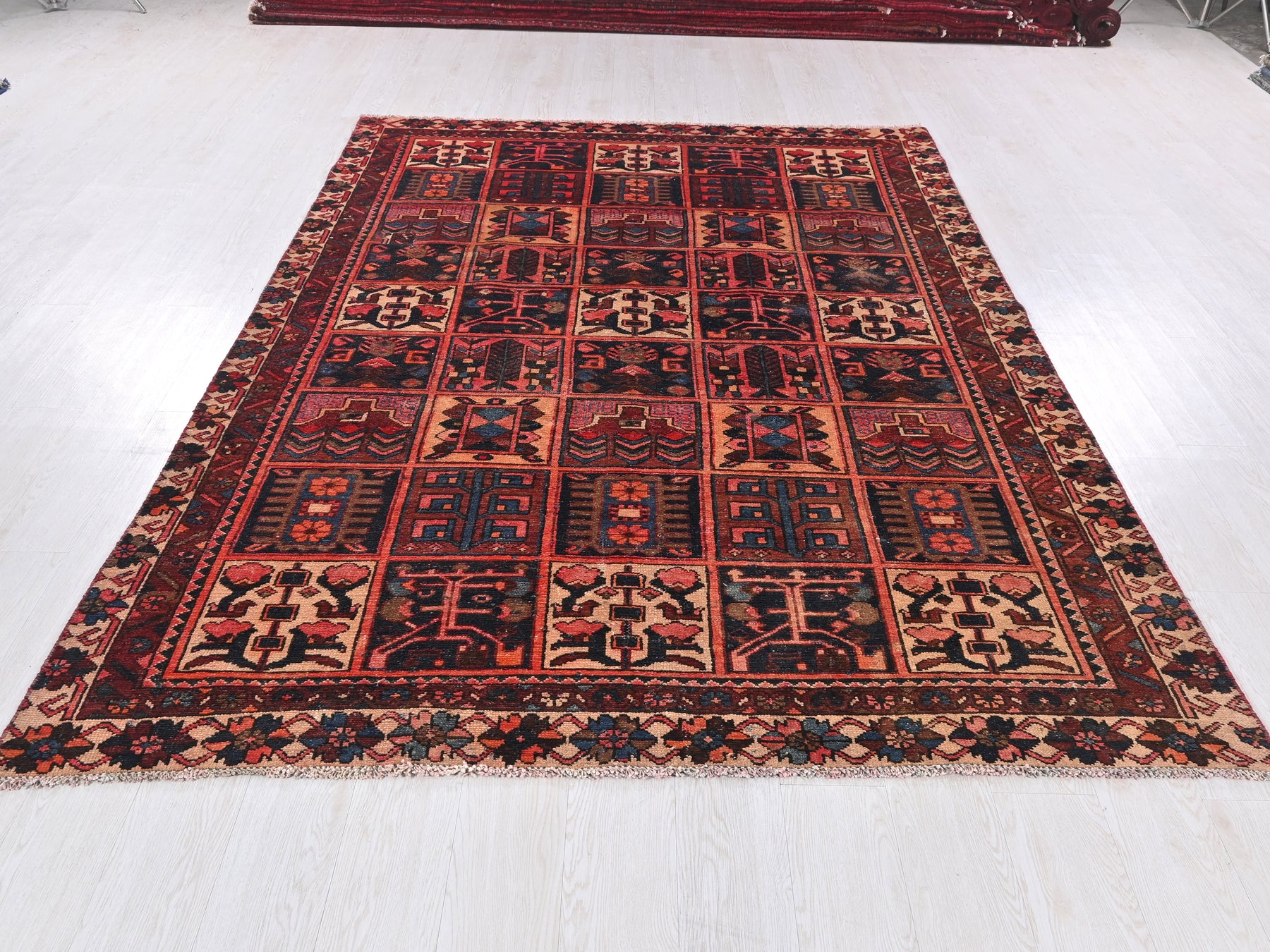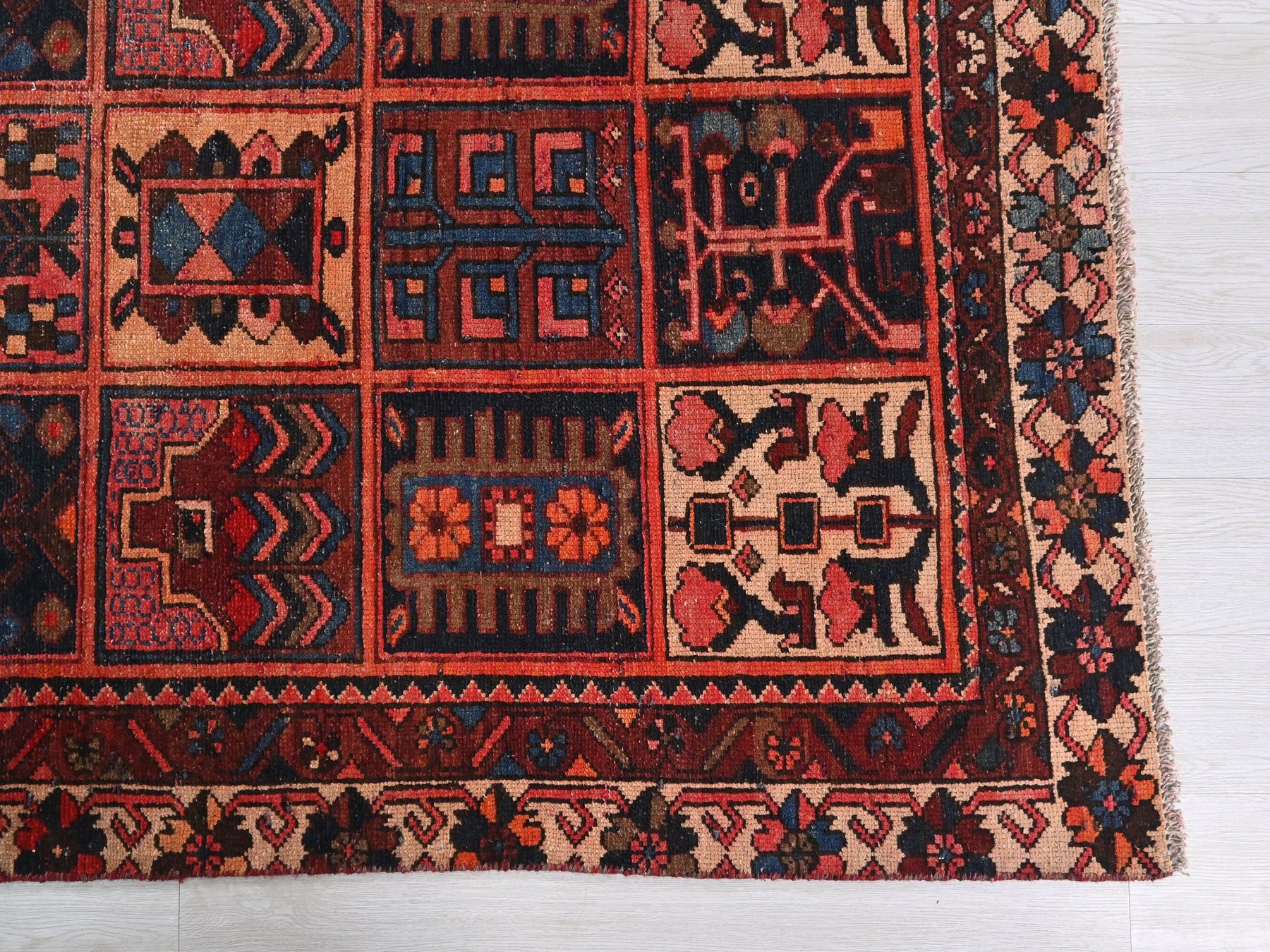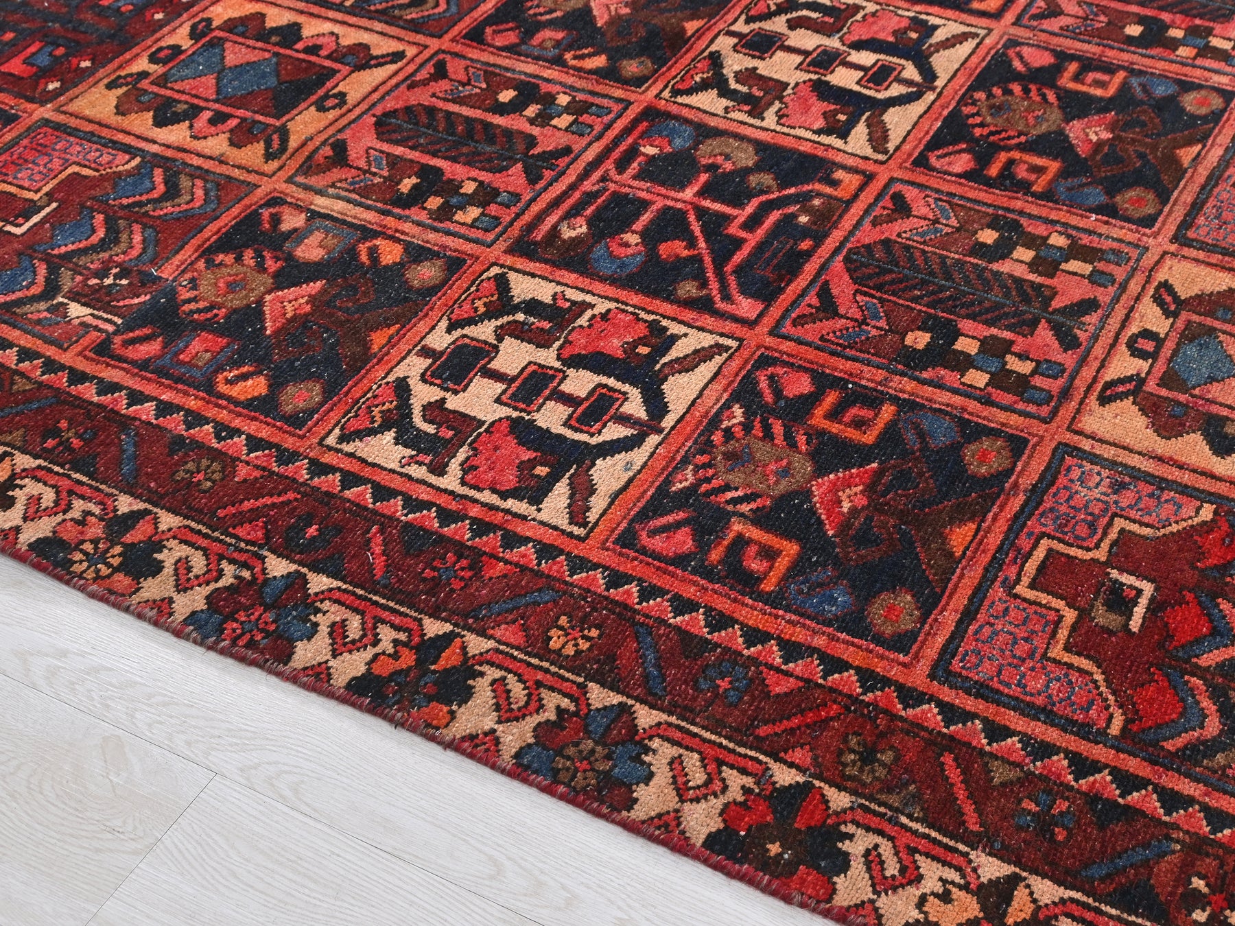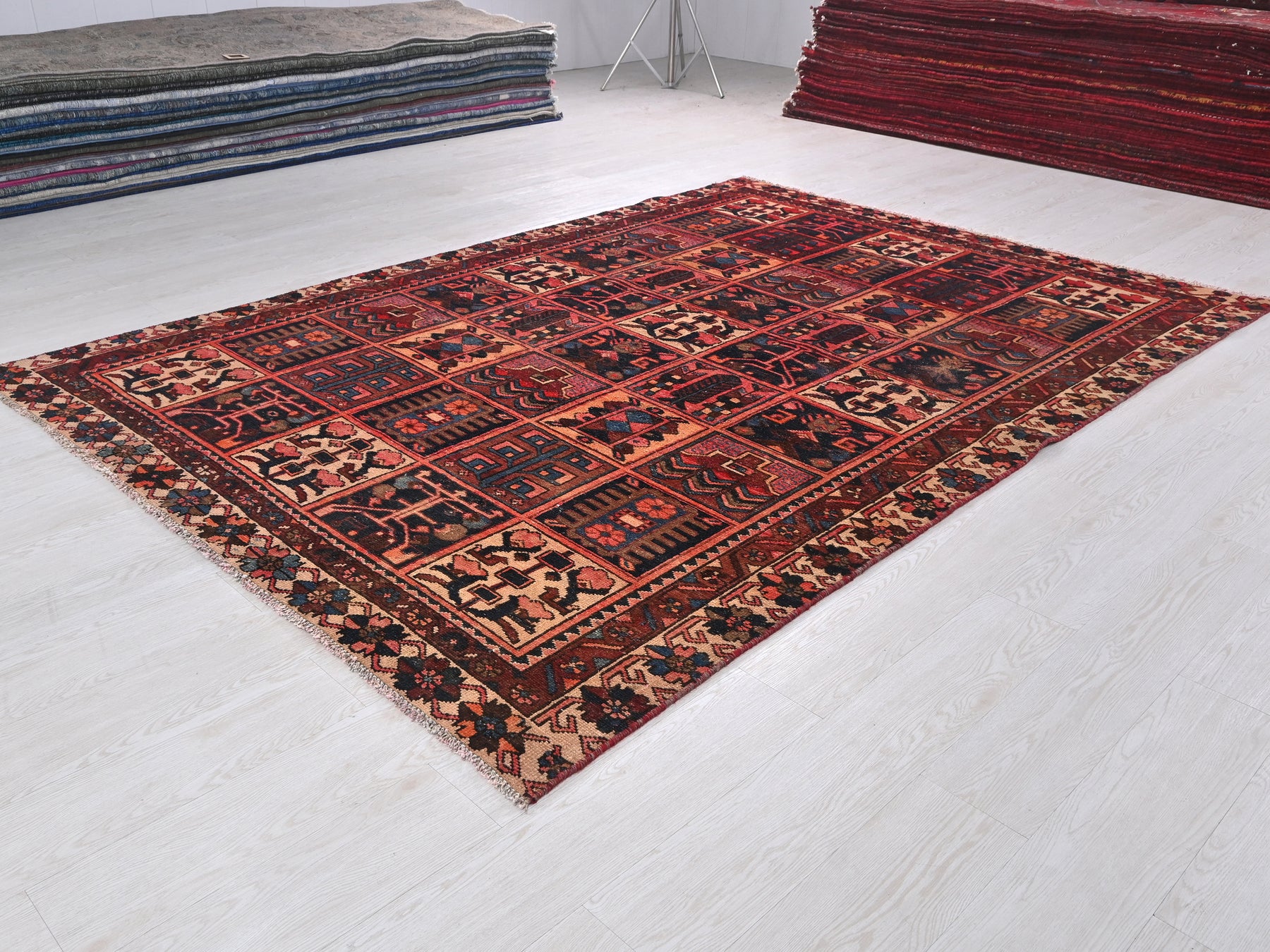 This is a hand-knotted, one-of-a-kind vintage rug. Due to the nature of this piece, there may be slight imperfections in its wear, shape, dimensions, and color. All of our rugs are professionally cleaned and repaired.