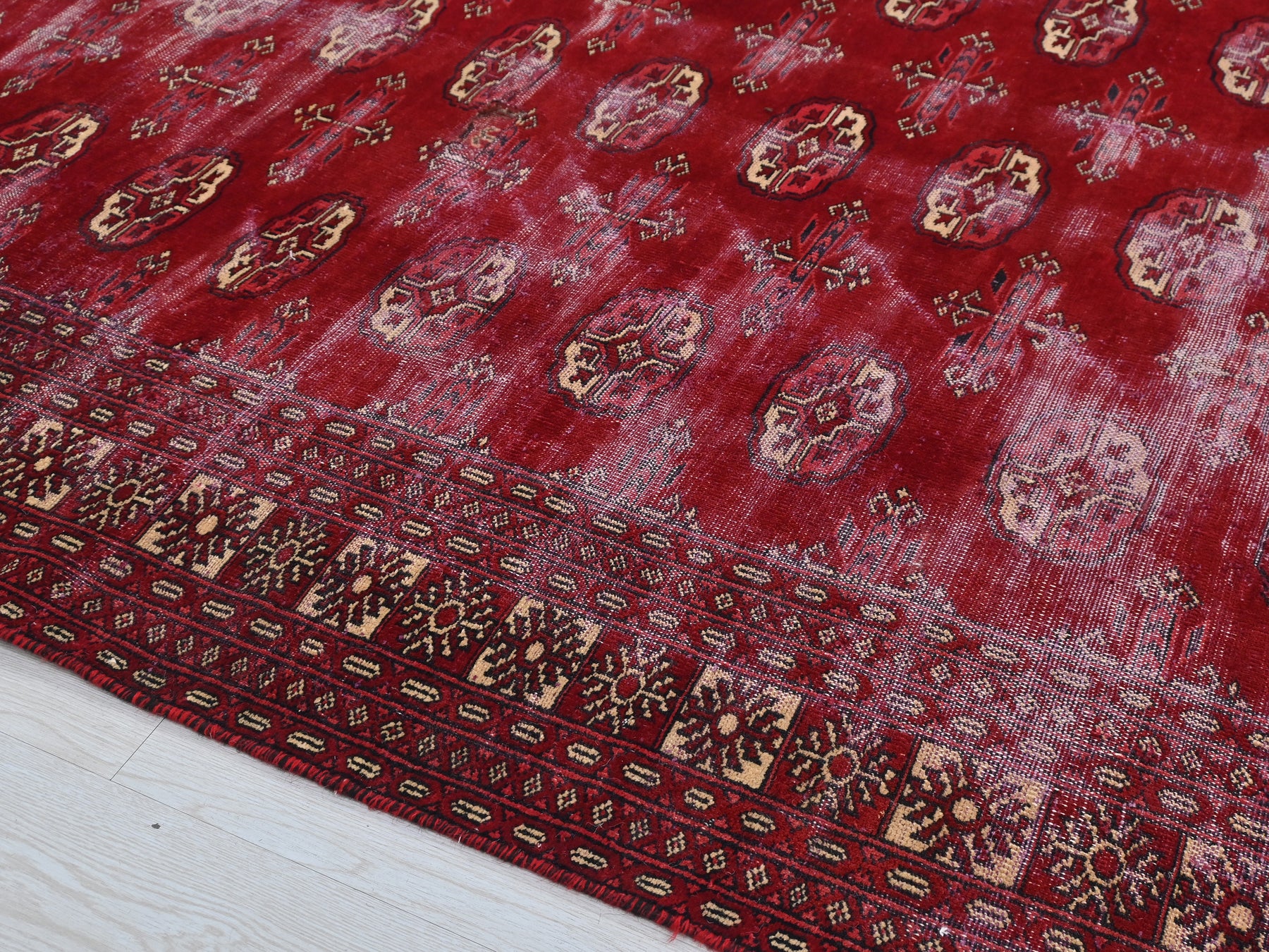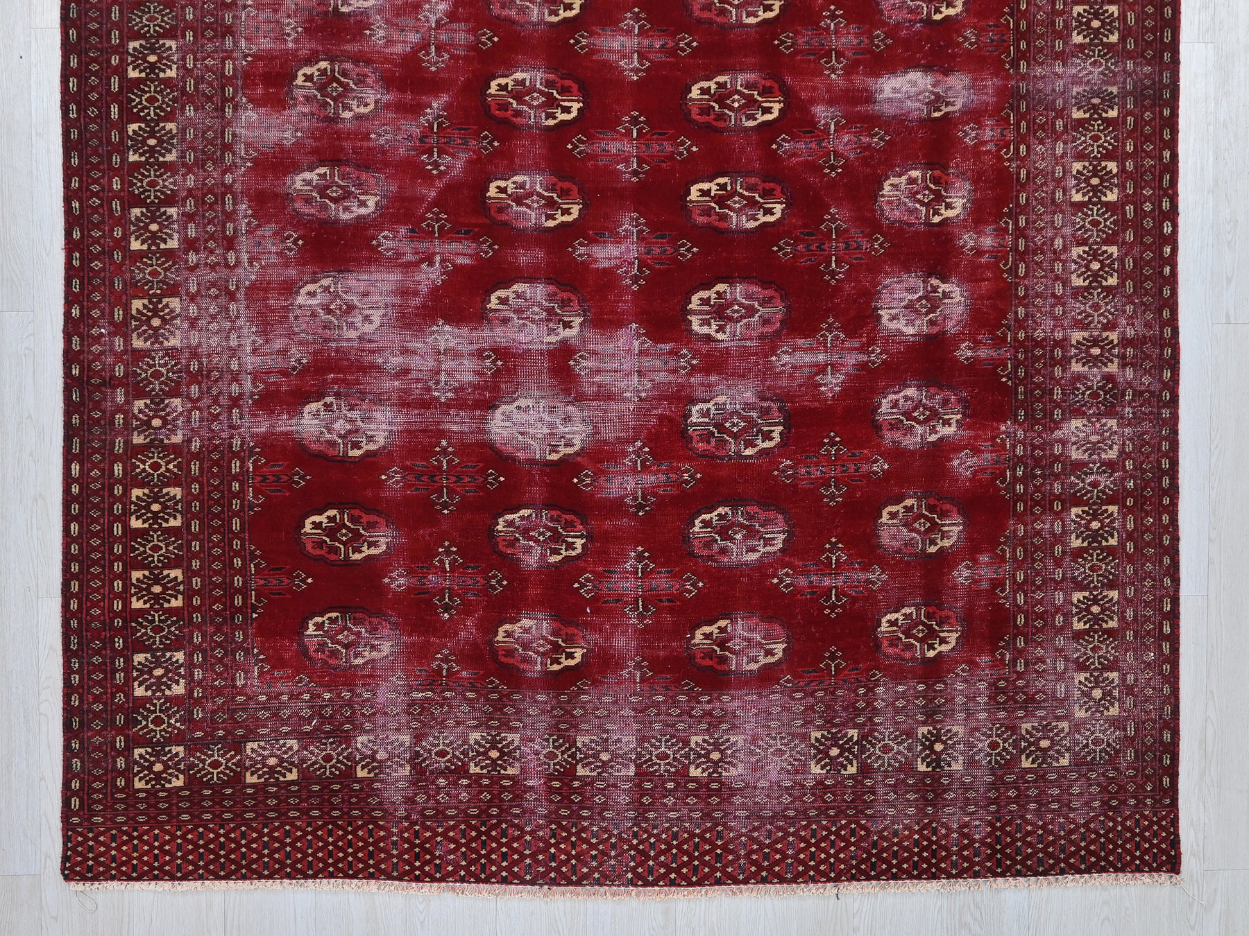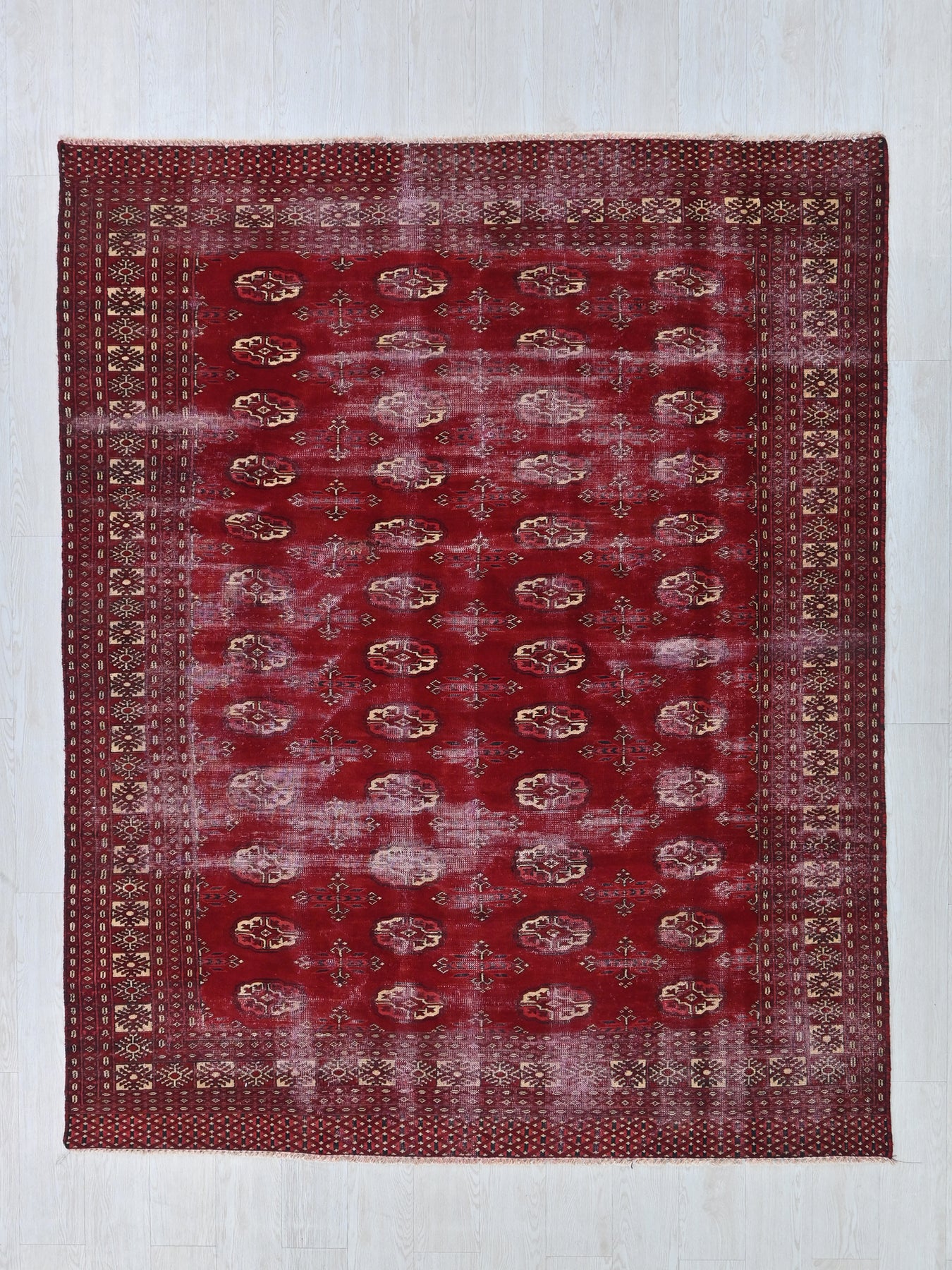 This is a hand-knotted, one-of-a-kind vintage rug. Due to the nature of this piece, there may be slight imperfections in its wear, shape, dimensions, and color. All of our rugs are professionally cleaned and repaired.