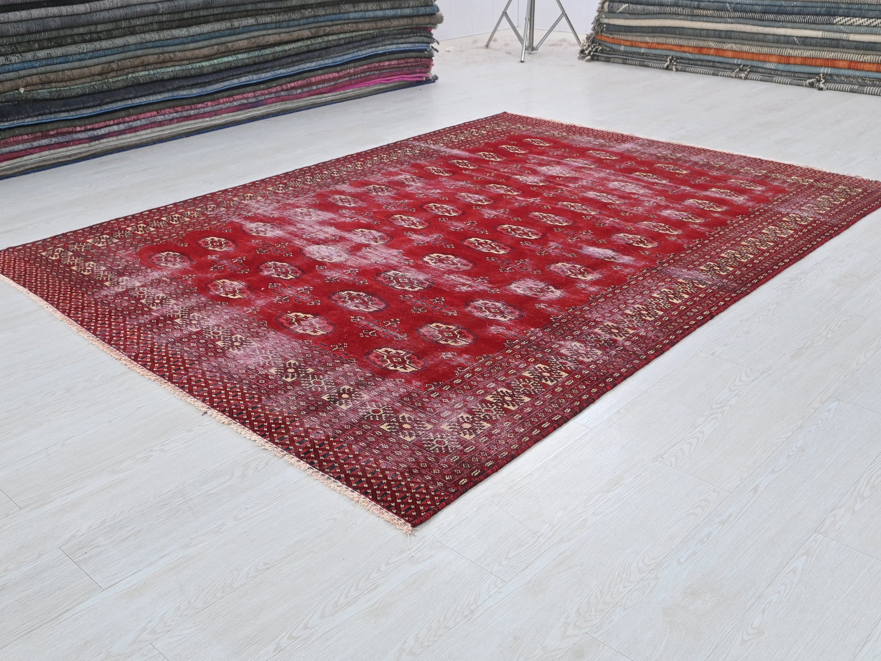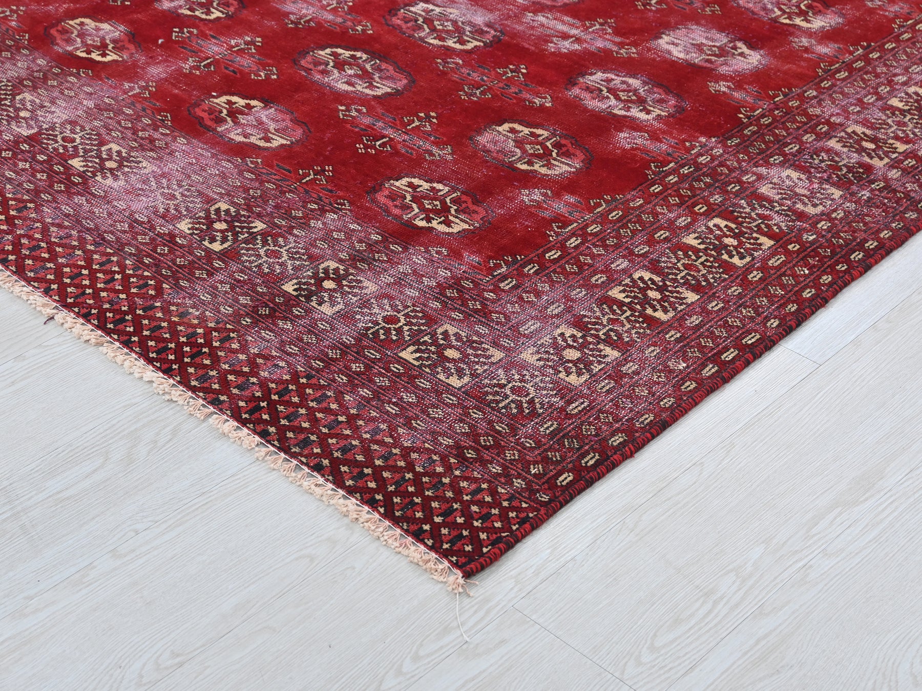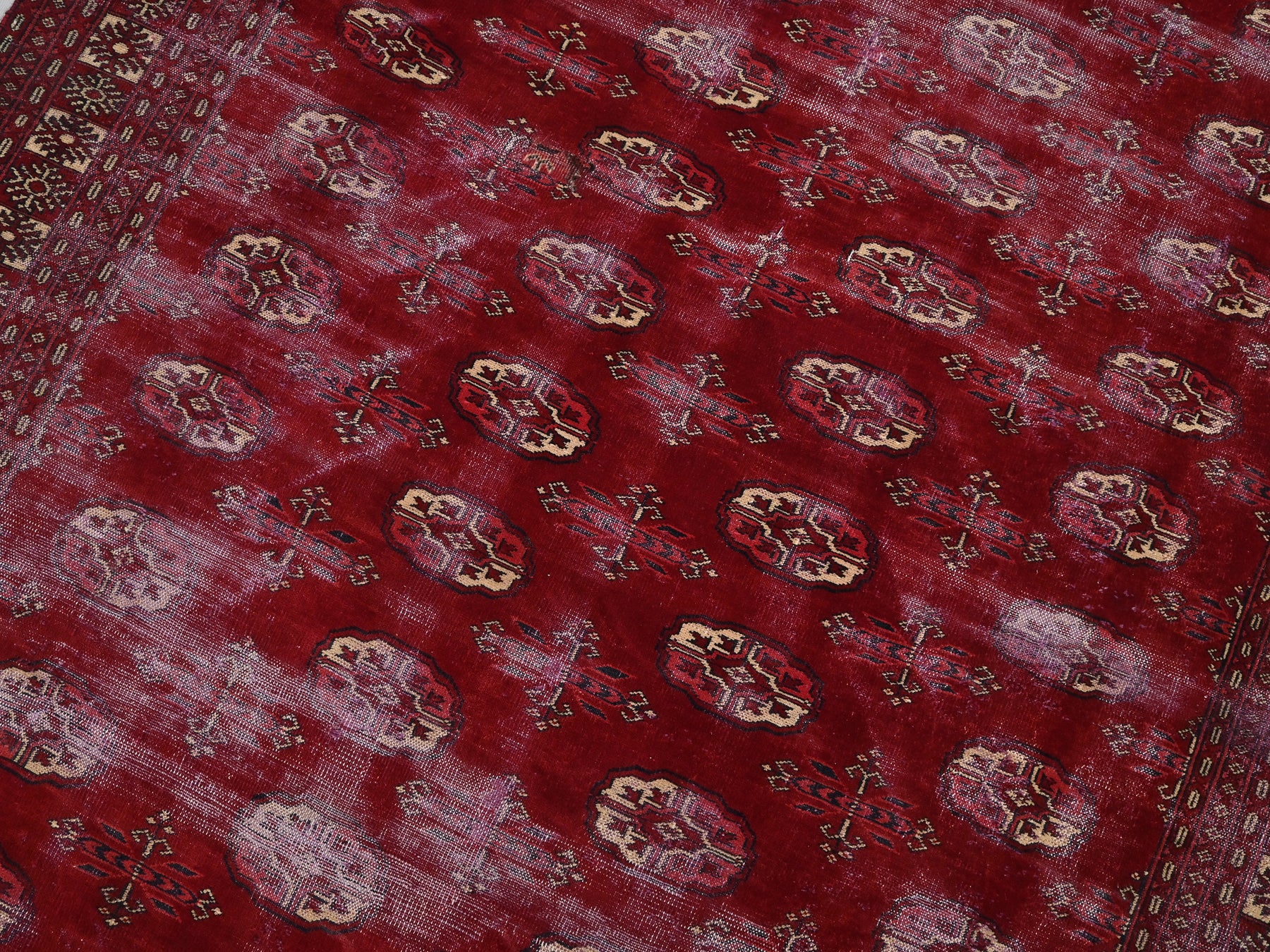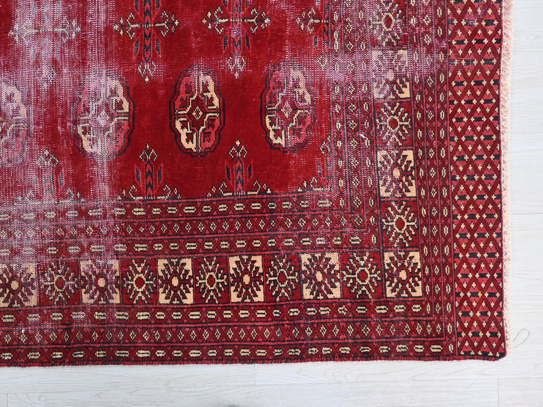 This is a hand-knotted, one-of-a-kind vintage rug. Due to the nature of this piece, there may be slight imperfections in its wear, shape, dimensions, and color. All of our rugs are professionally cleaned and repaired.
