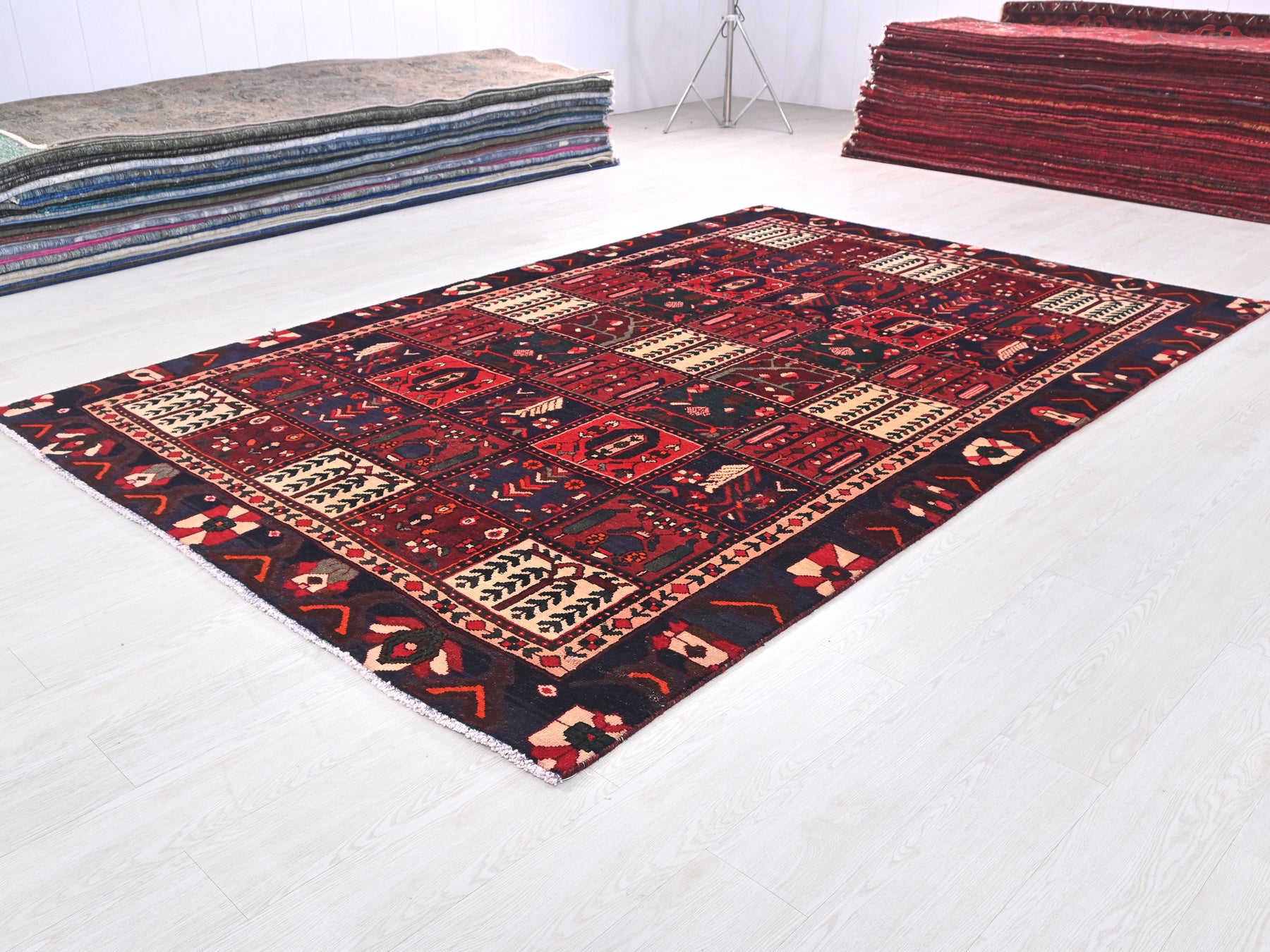 This is a hand-knotted, one-of-a-kind vintage rug. Due to the nature of this piece, there may be slight imperfections in its wear, shape, dimensions, and color. All of our rugs are professionally cleaned and repaired.