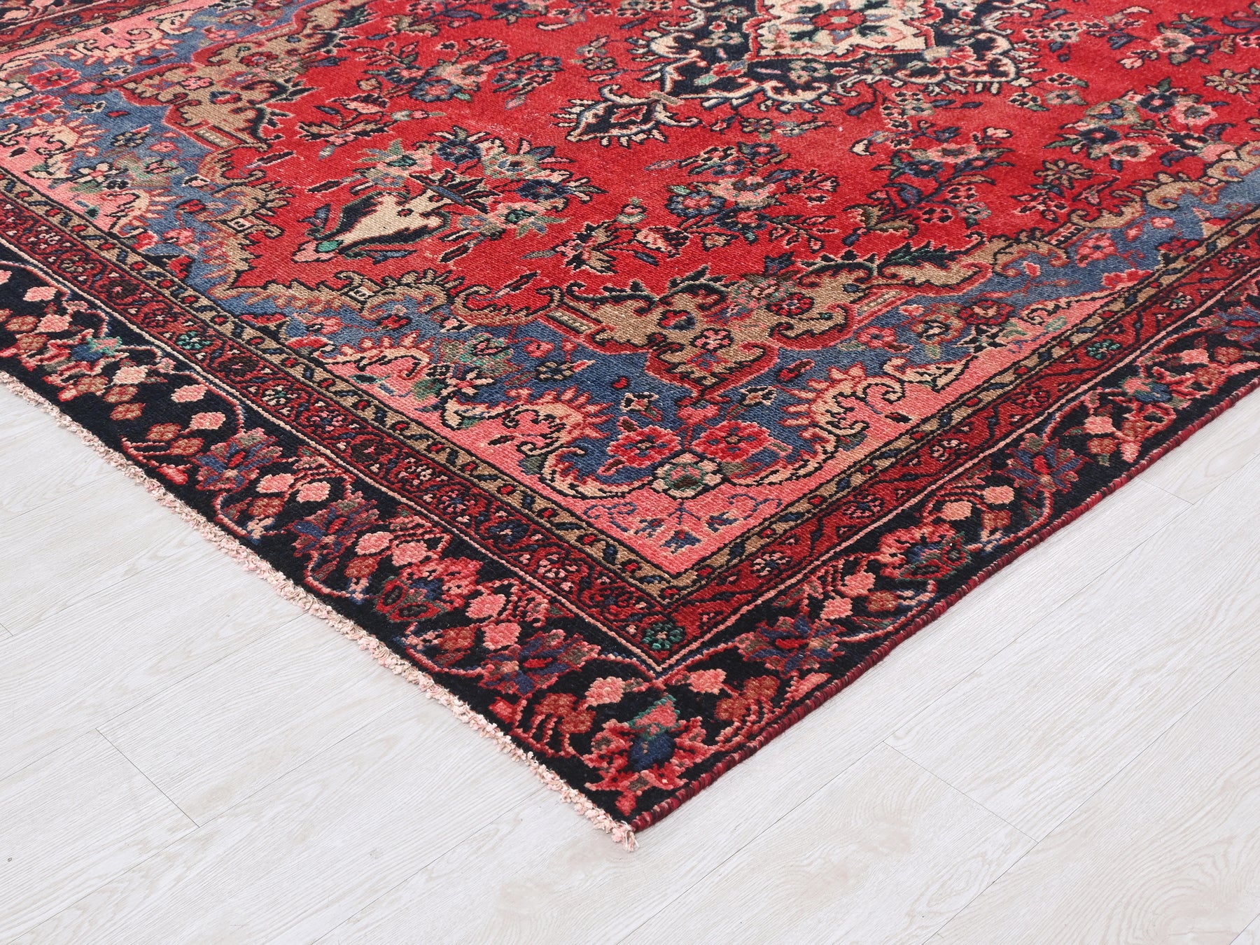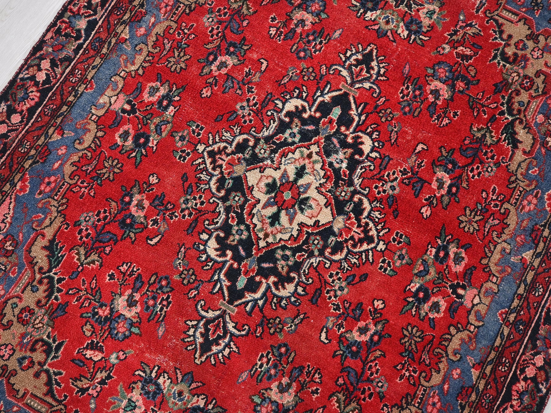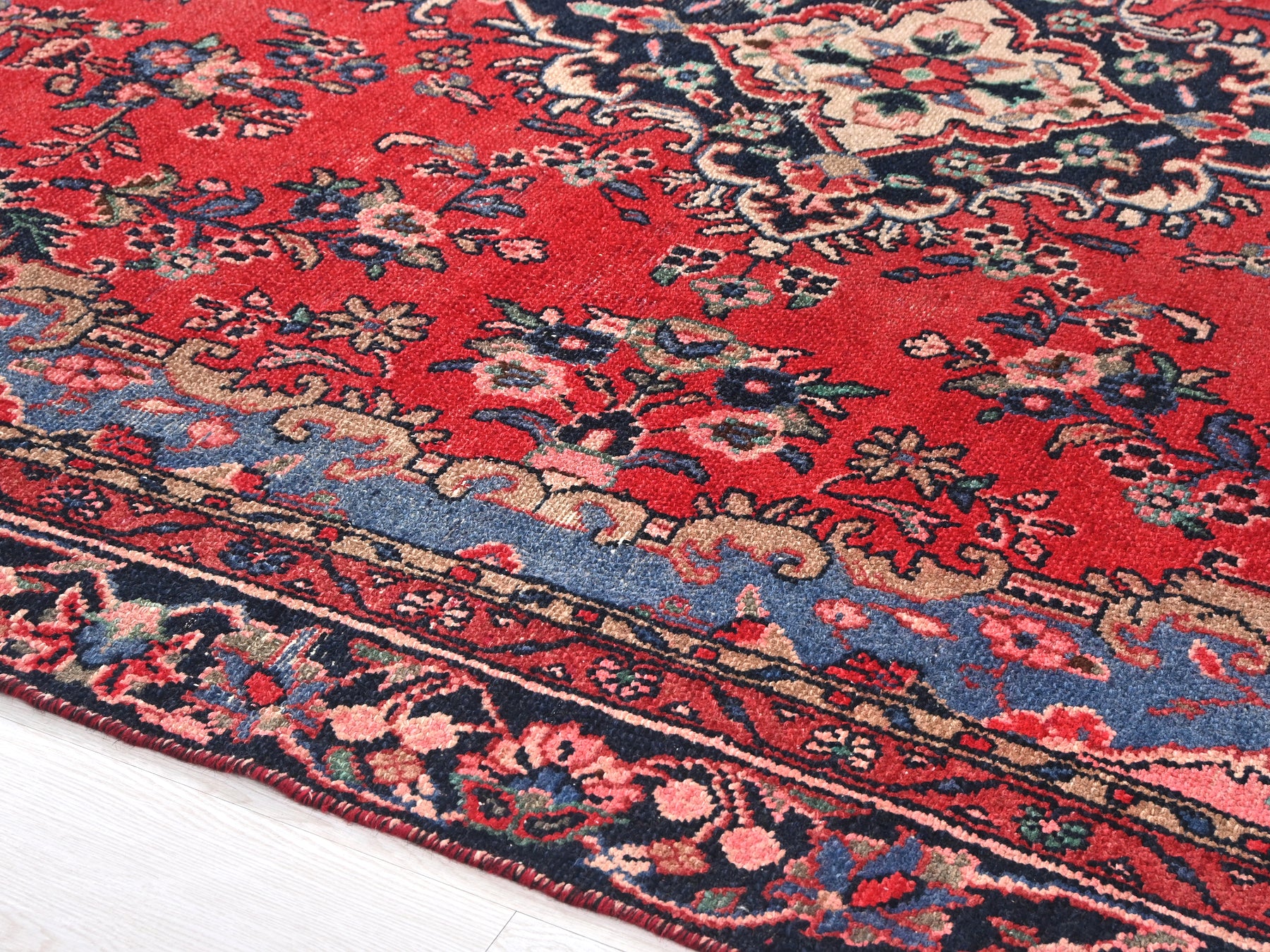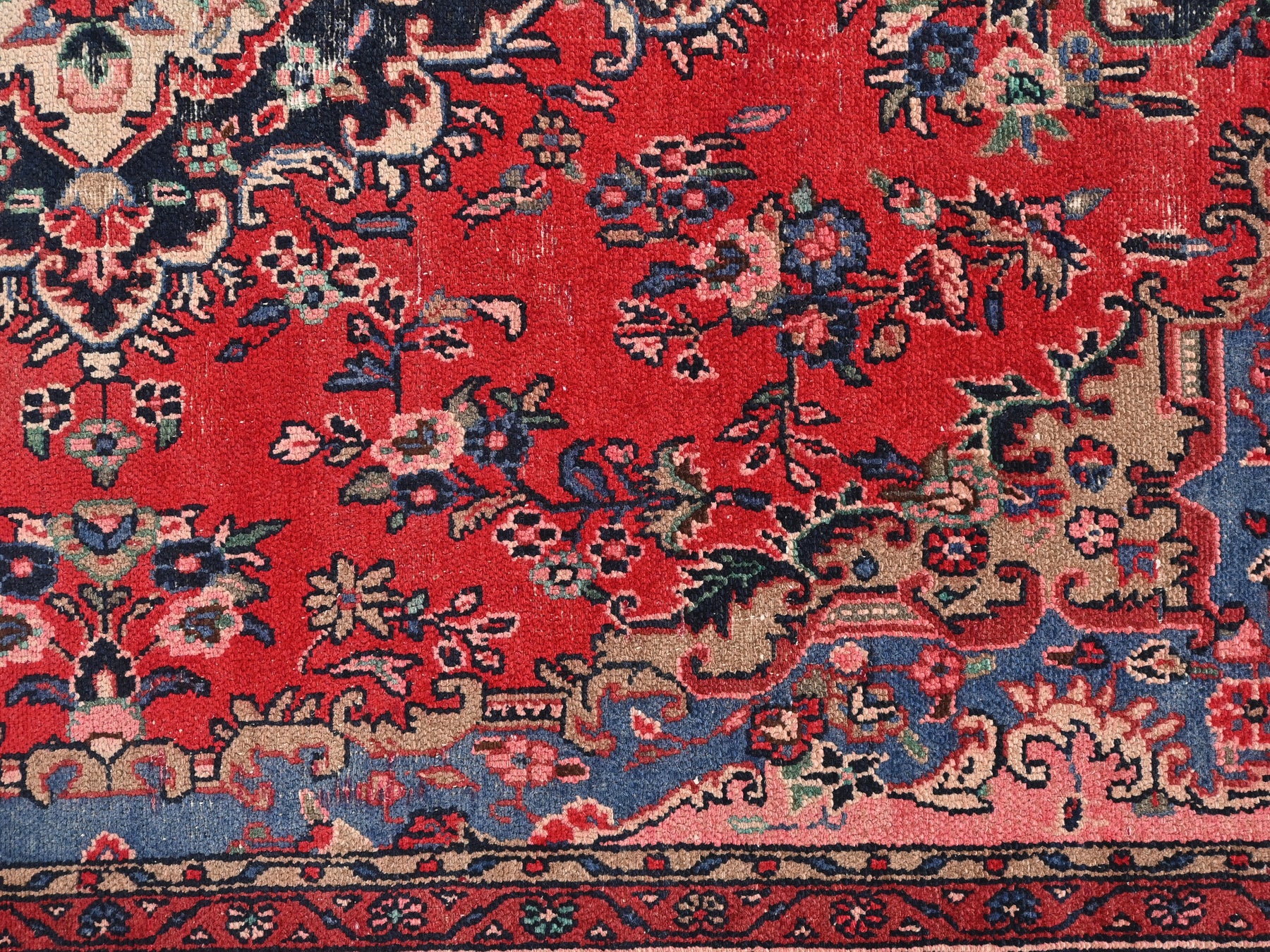 This is a hand-knotted, one-of-a-kind vintage rug. Due to the nature of this piece, there may be slight imperfections in its wear, shape, dimensions, and color. All of our rugs are professionally cleaned and repaired.