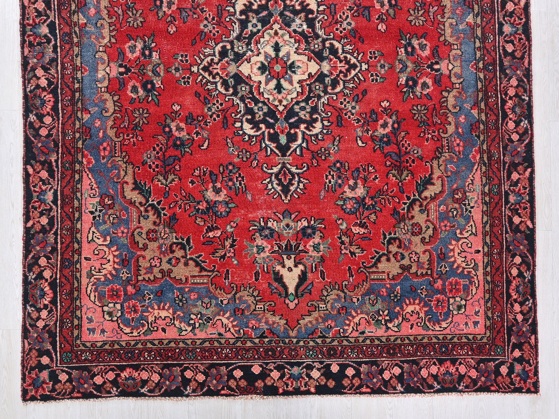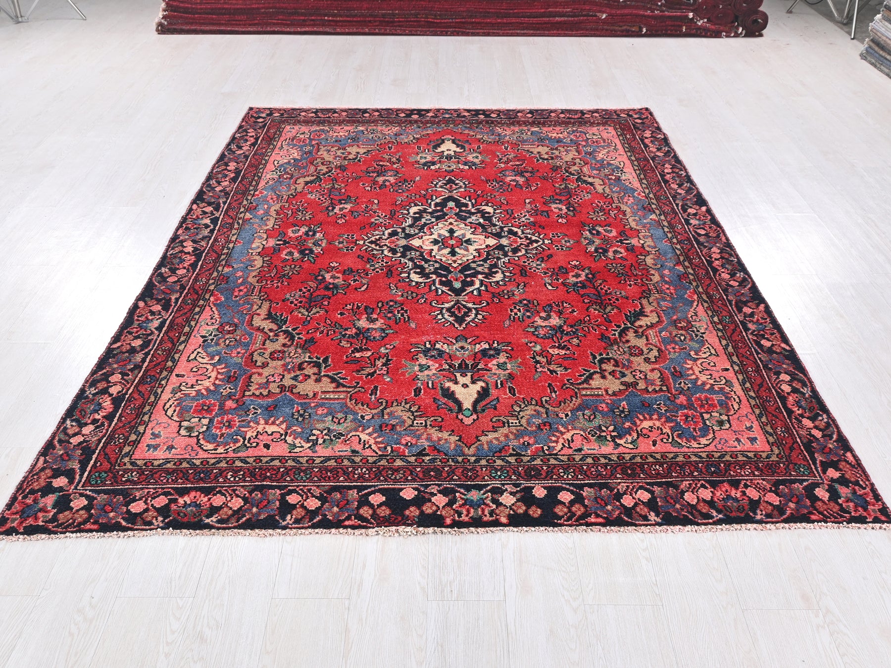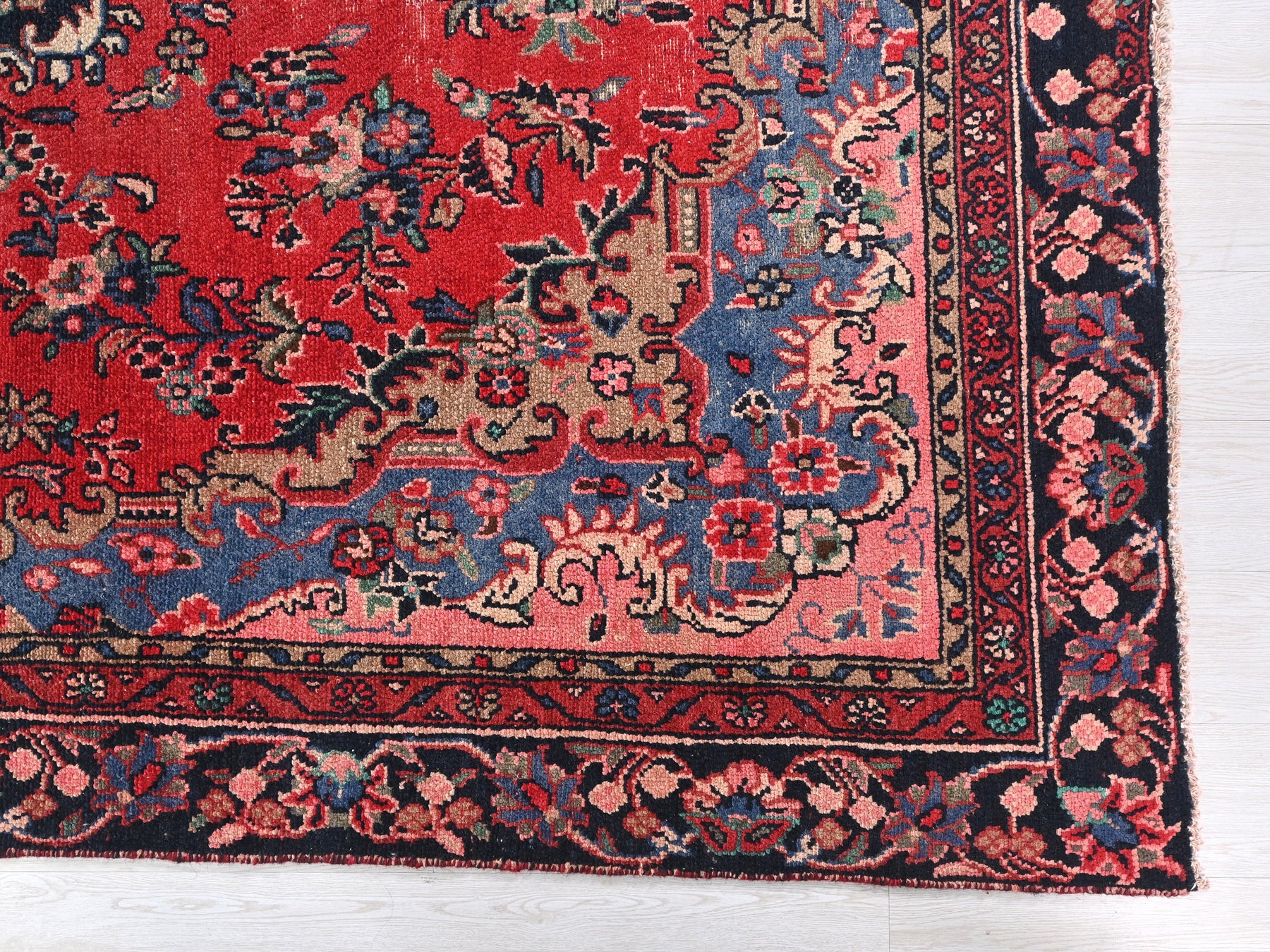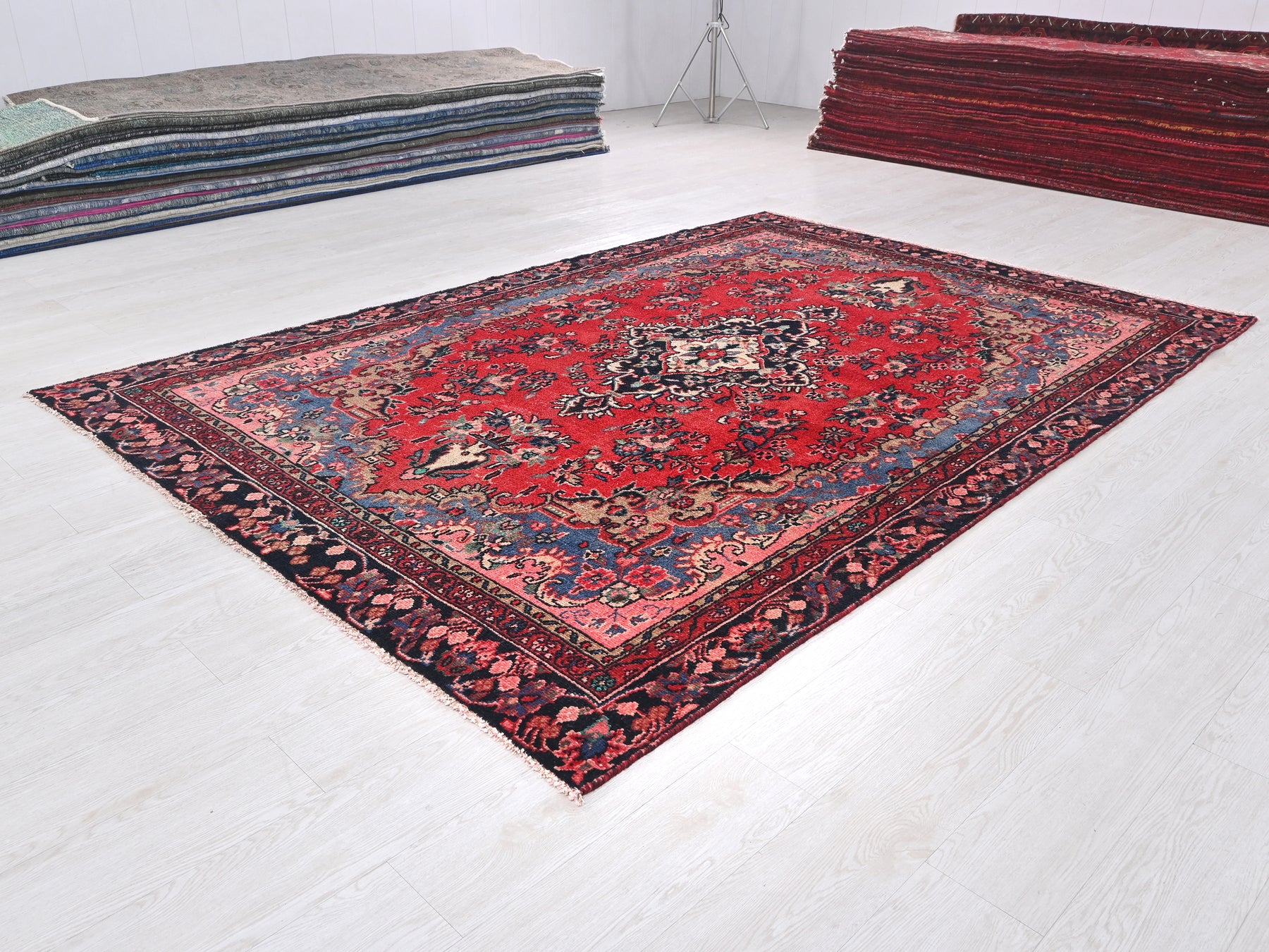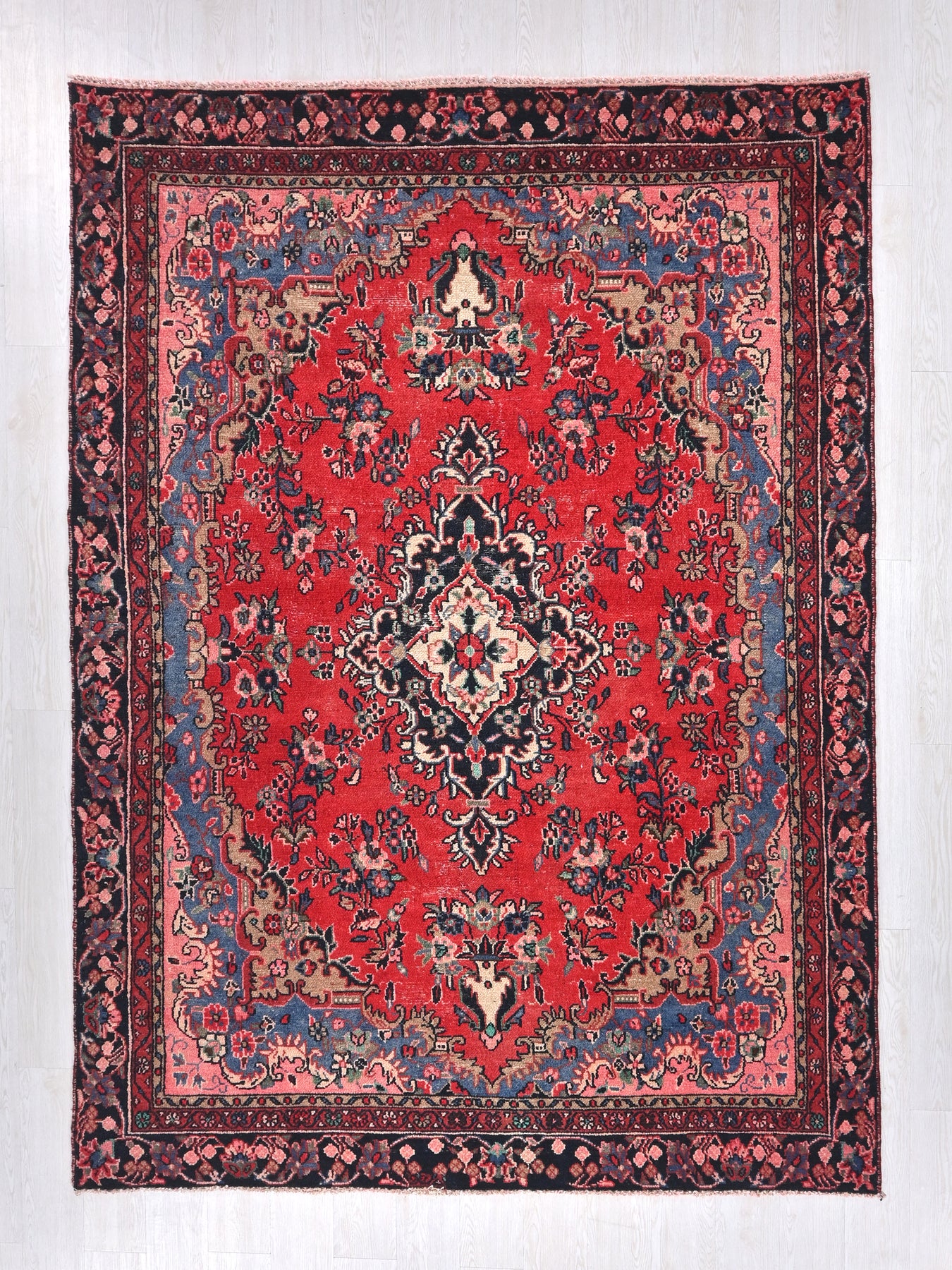 This is a hand-knotted, one-of-a-kind vintage rug. Due to the nature of this piece, there may be slight imperfections in its wear, shape, dimensions, and color. All of our rugs are professionally cleaned and repaired.