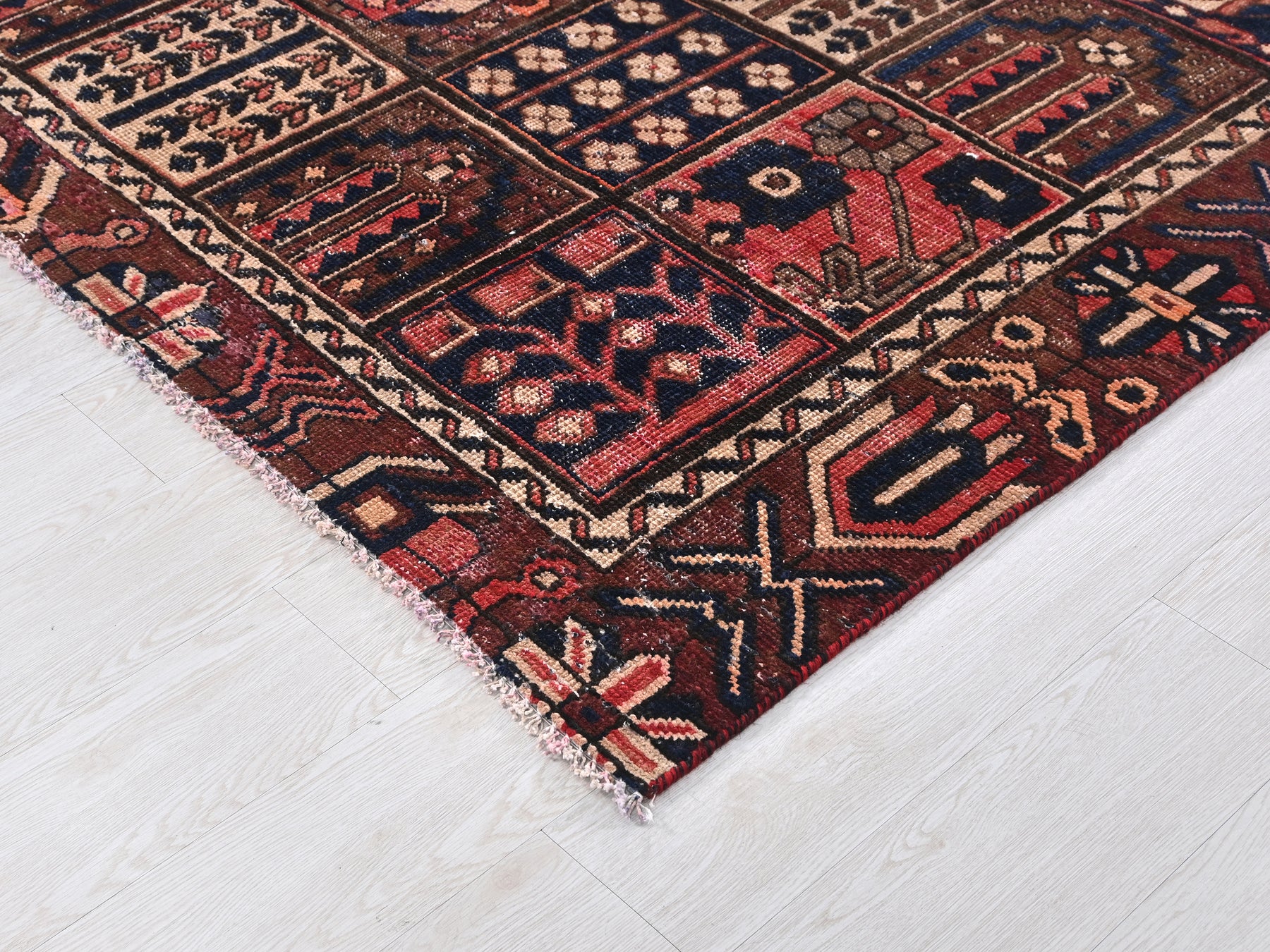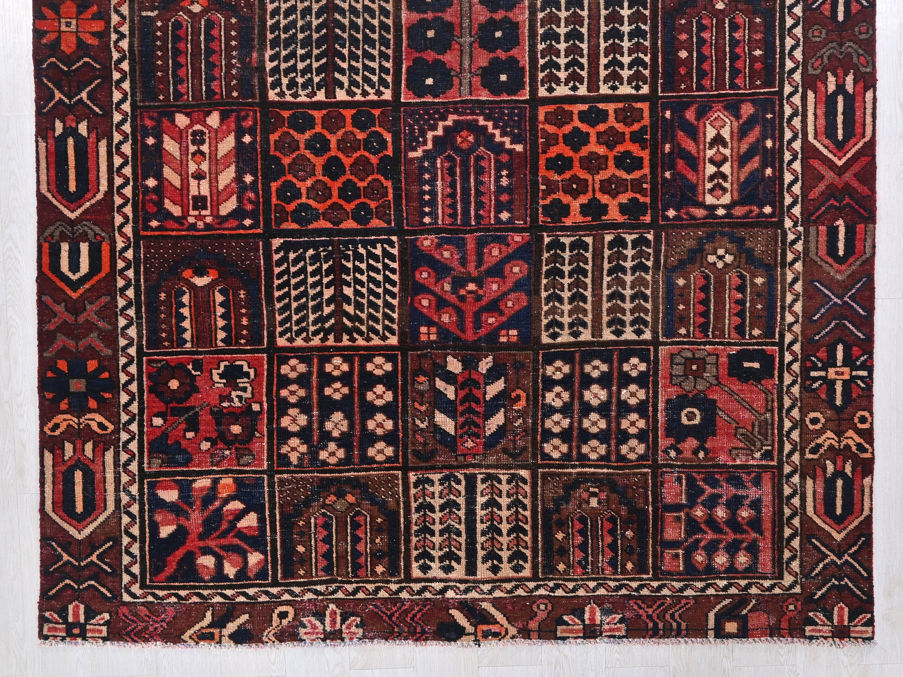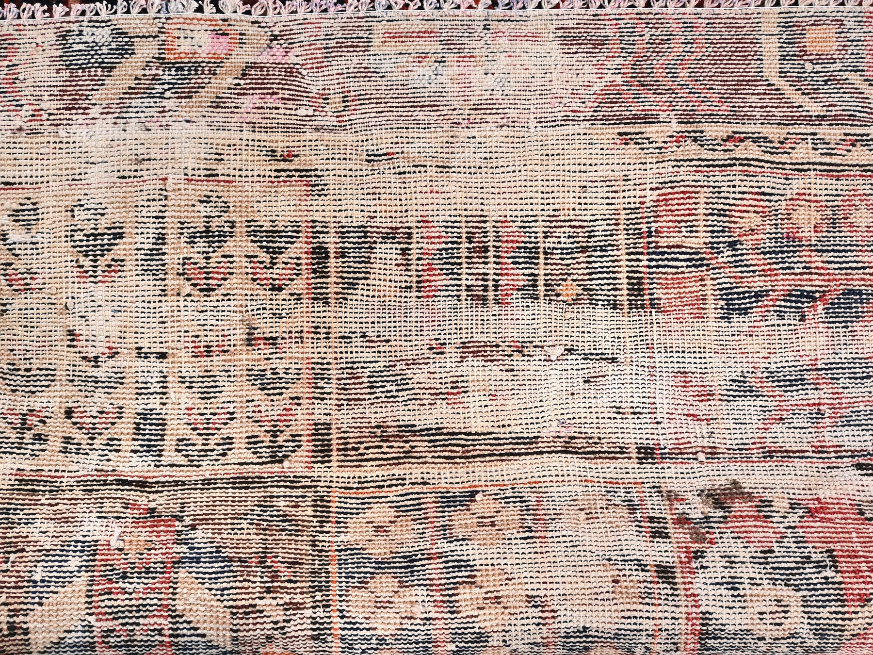 This is a hand-knotted, one-of-a-kind vintage rug. Due to the nature of this piece, there may be slight imperfections in its wear, shape, dimensions, and color. All of our rugs are professionally cleaned and repaired.