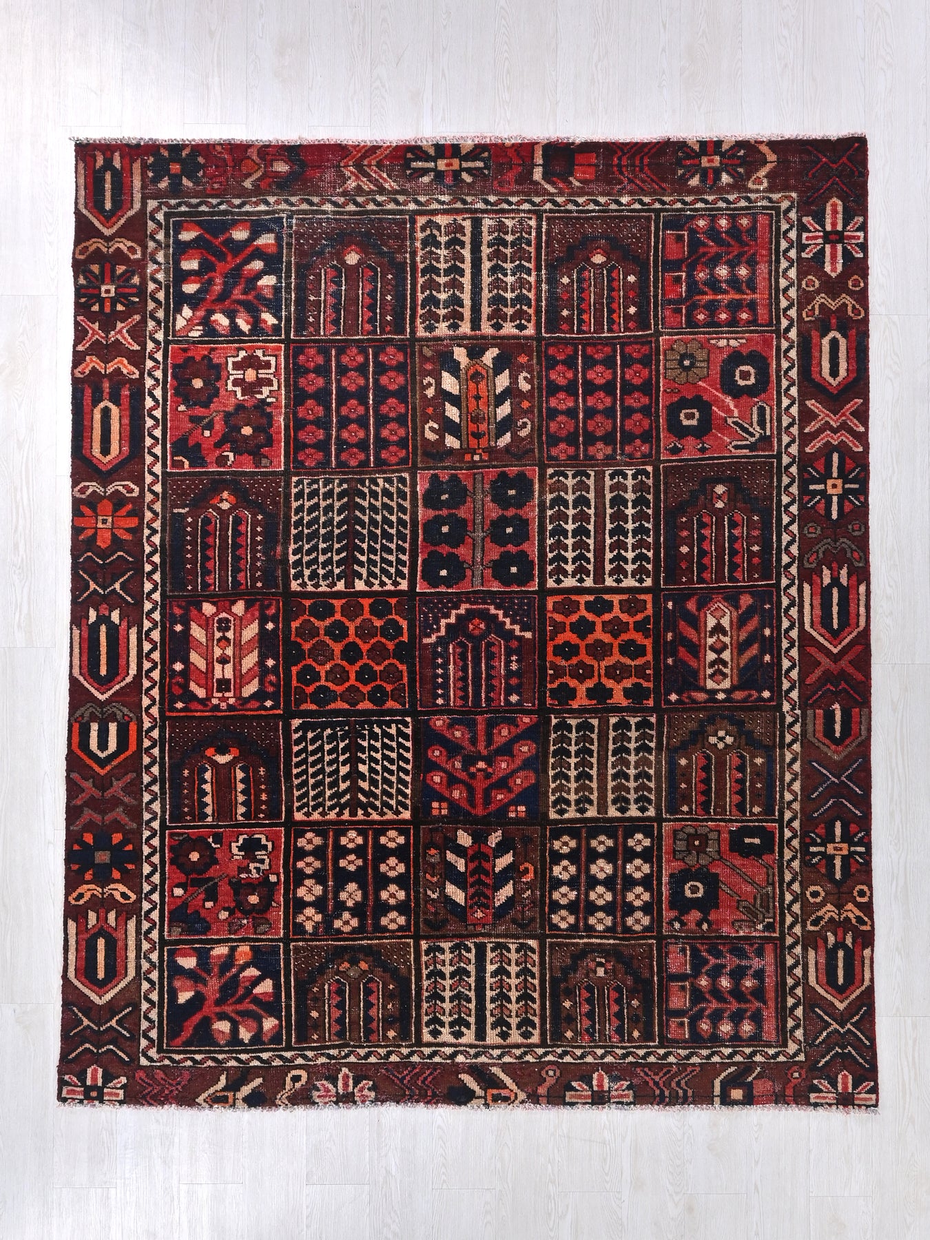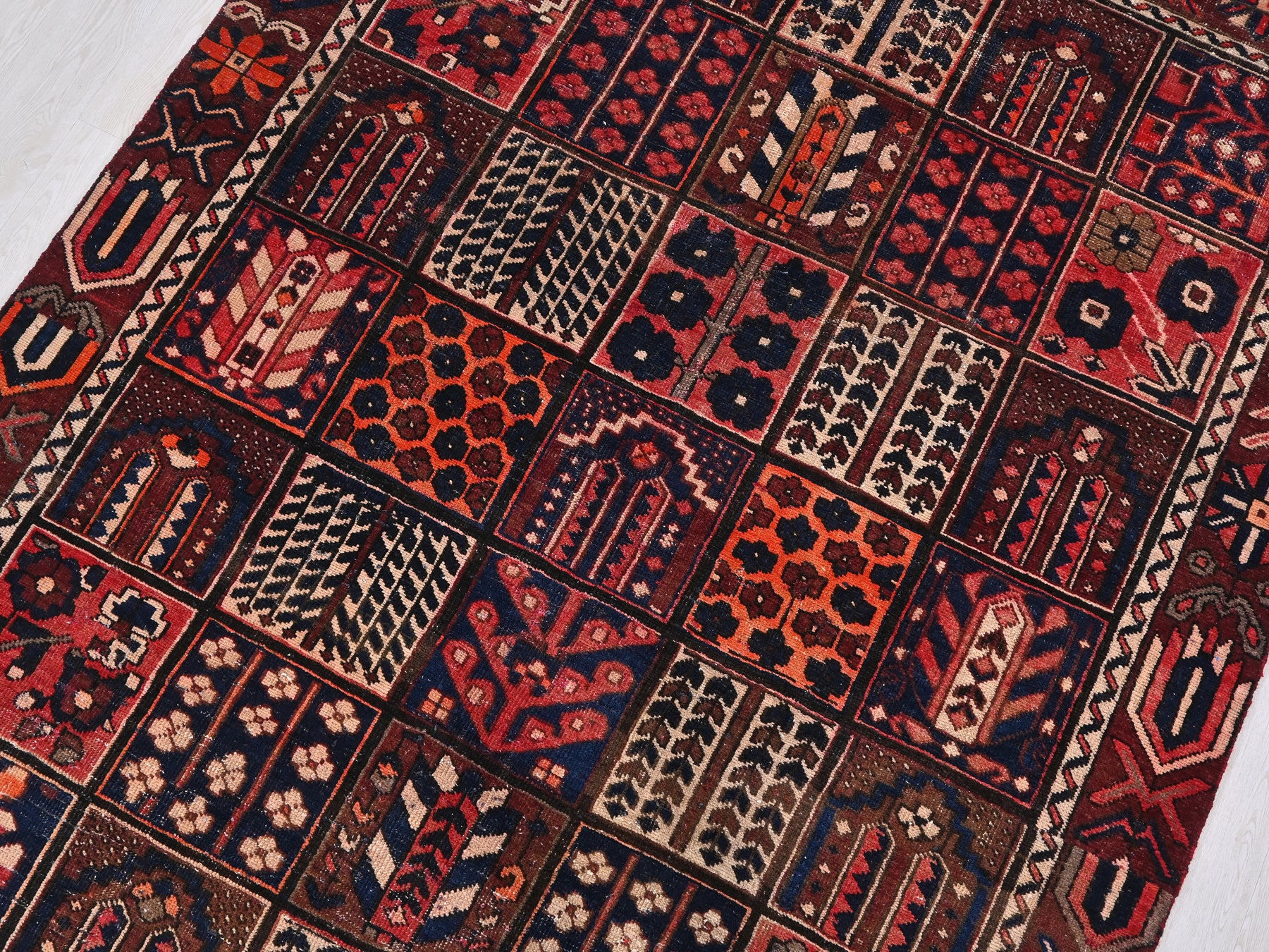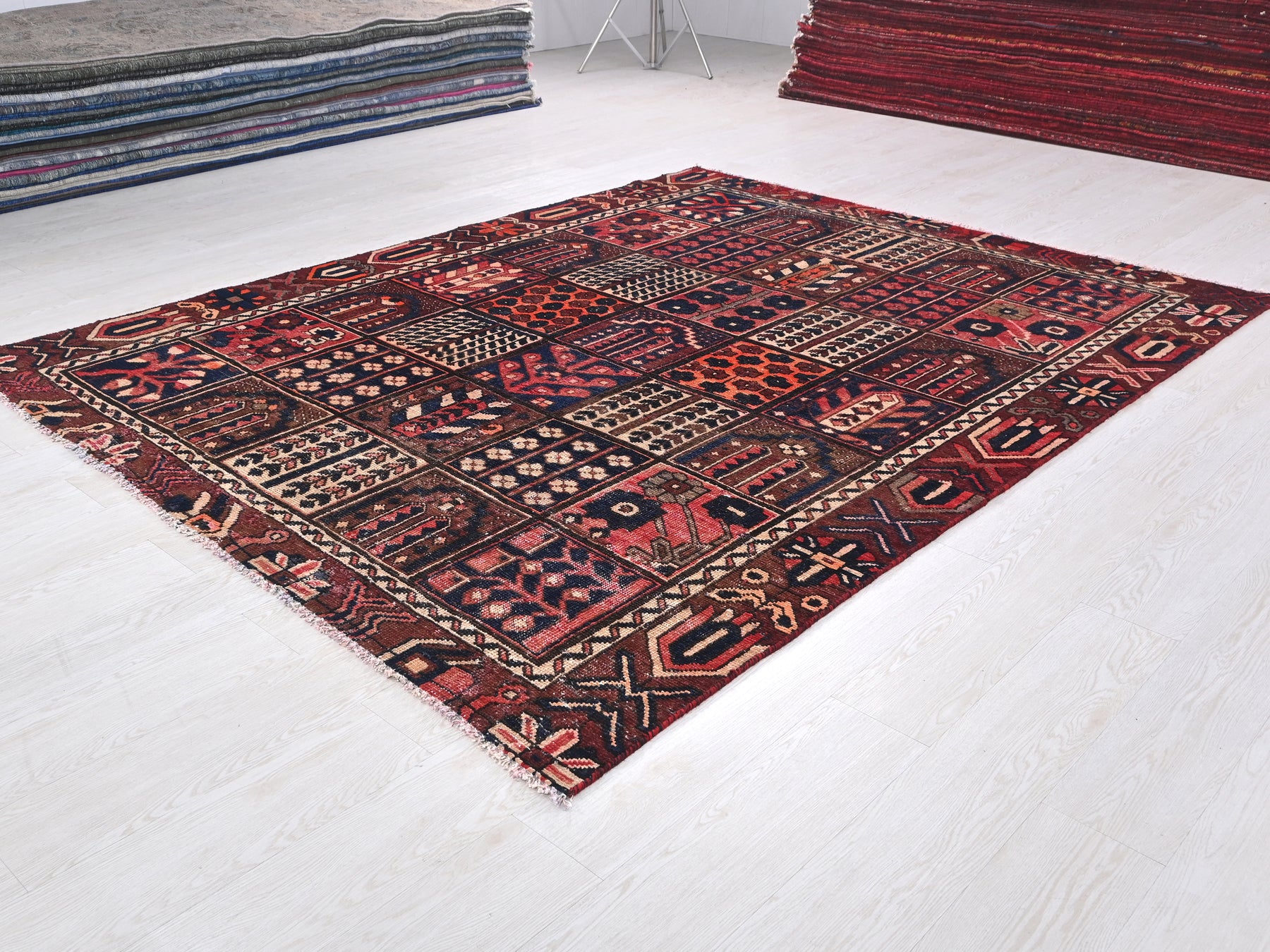 This is a hand-knotted, one-of-a-kind vintage rug. Due to the nature of this piece, there may be slight imperfections in its wear, shape, dimensions, and color. All of our rugs are professionally cleaned and repaired.