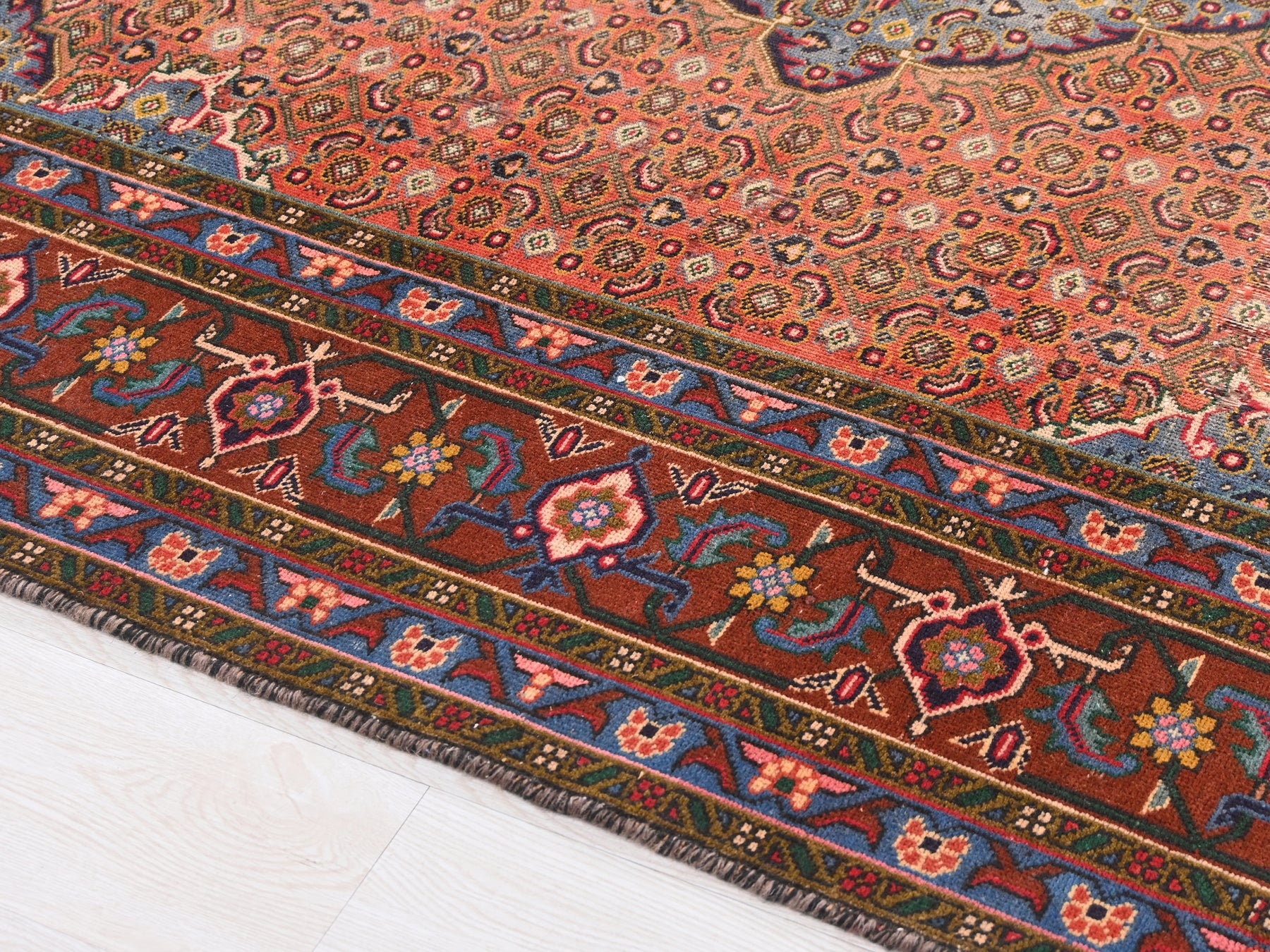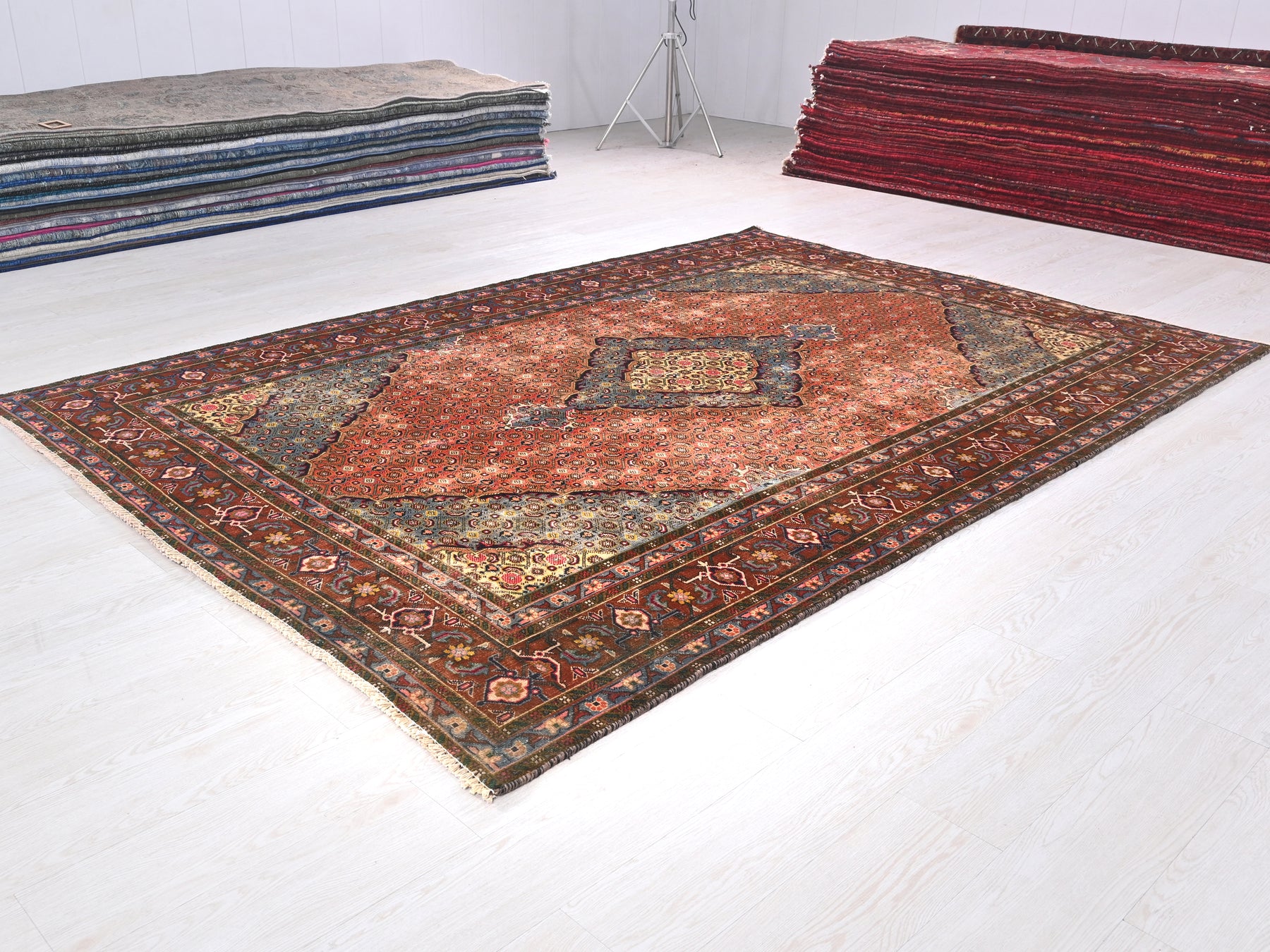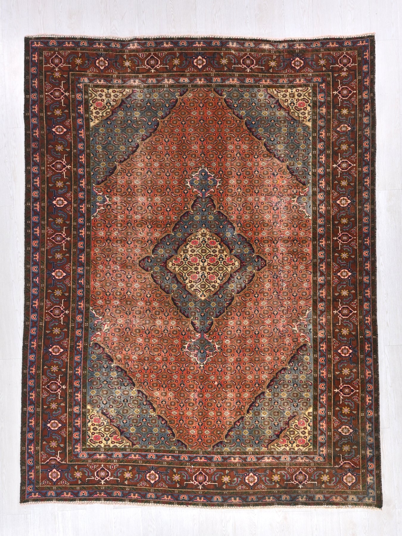This is a hand-knotted, one-of-a-kind vintage rug. Due to the nature of this piece, there may be slight imperfections in its wear, shape, dimensions, and color. All of our rugs are professionally cleaned and repaired.