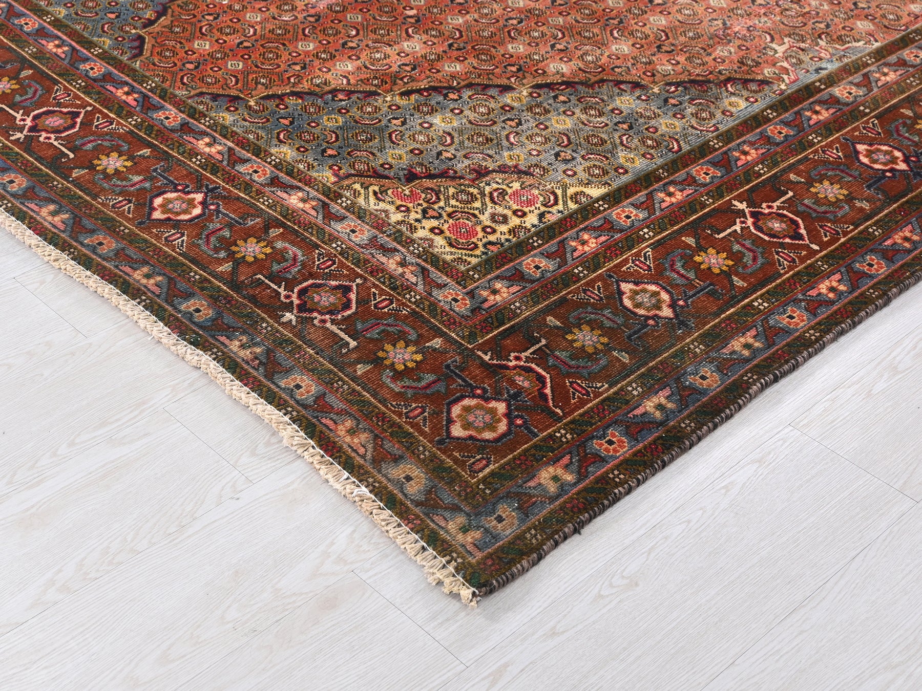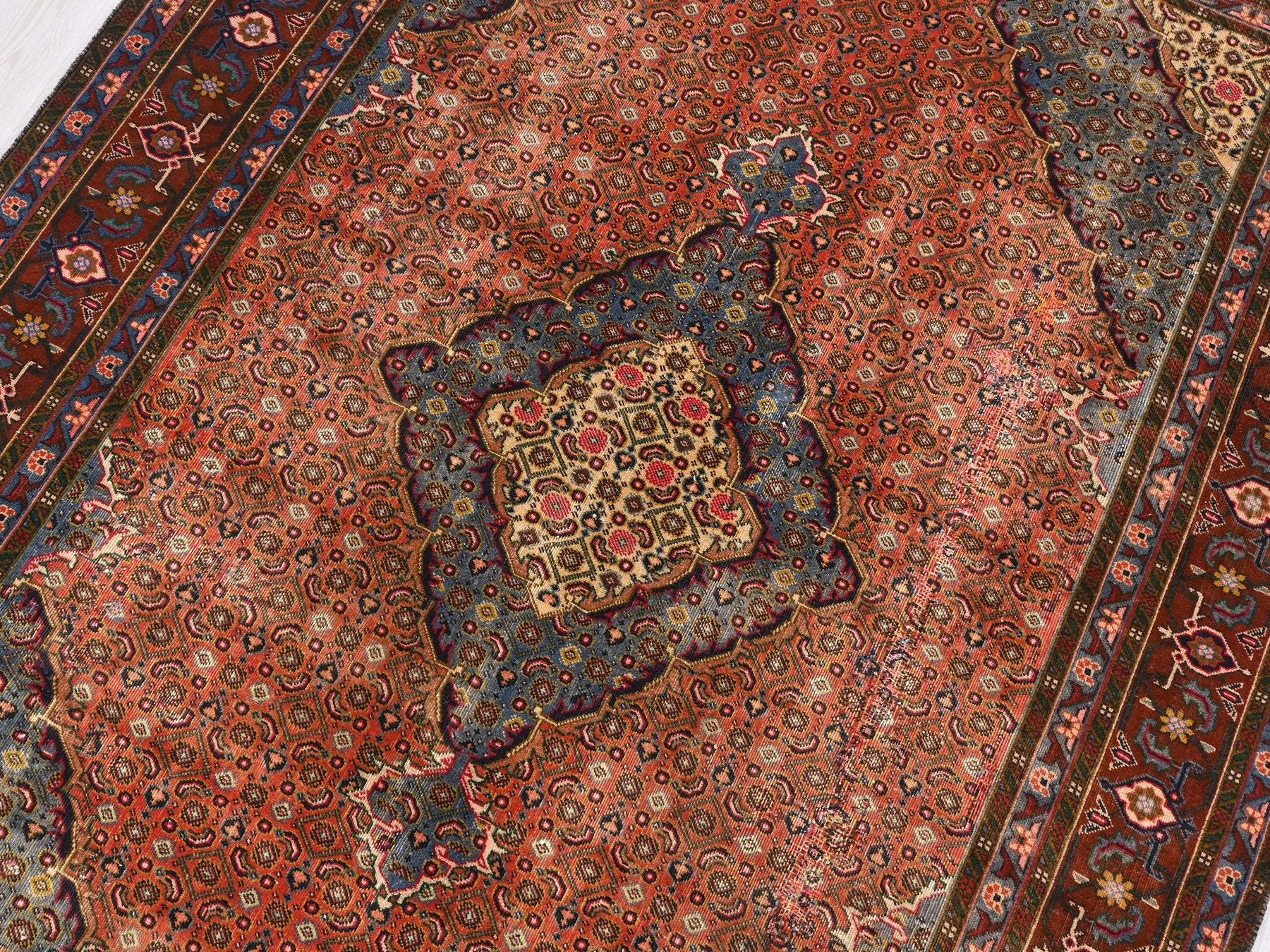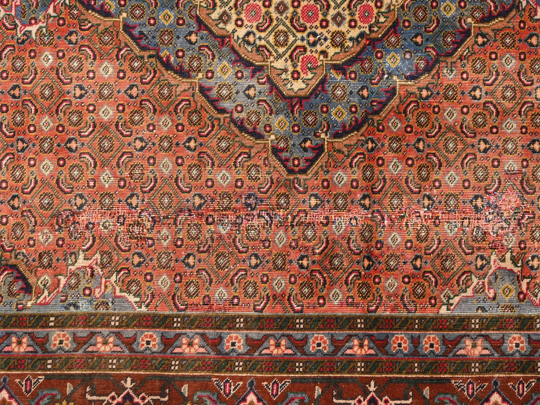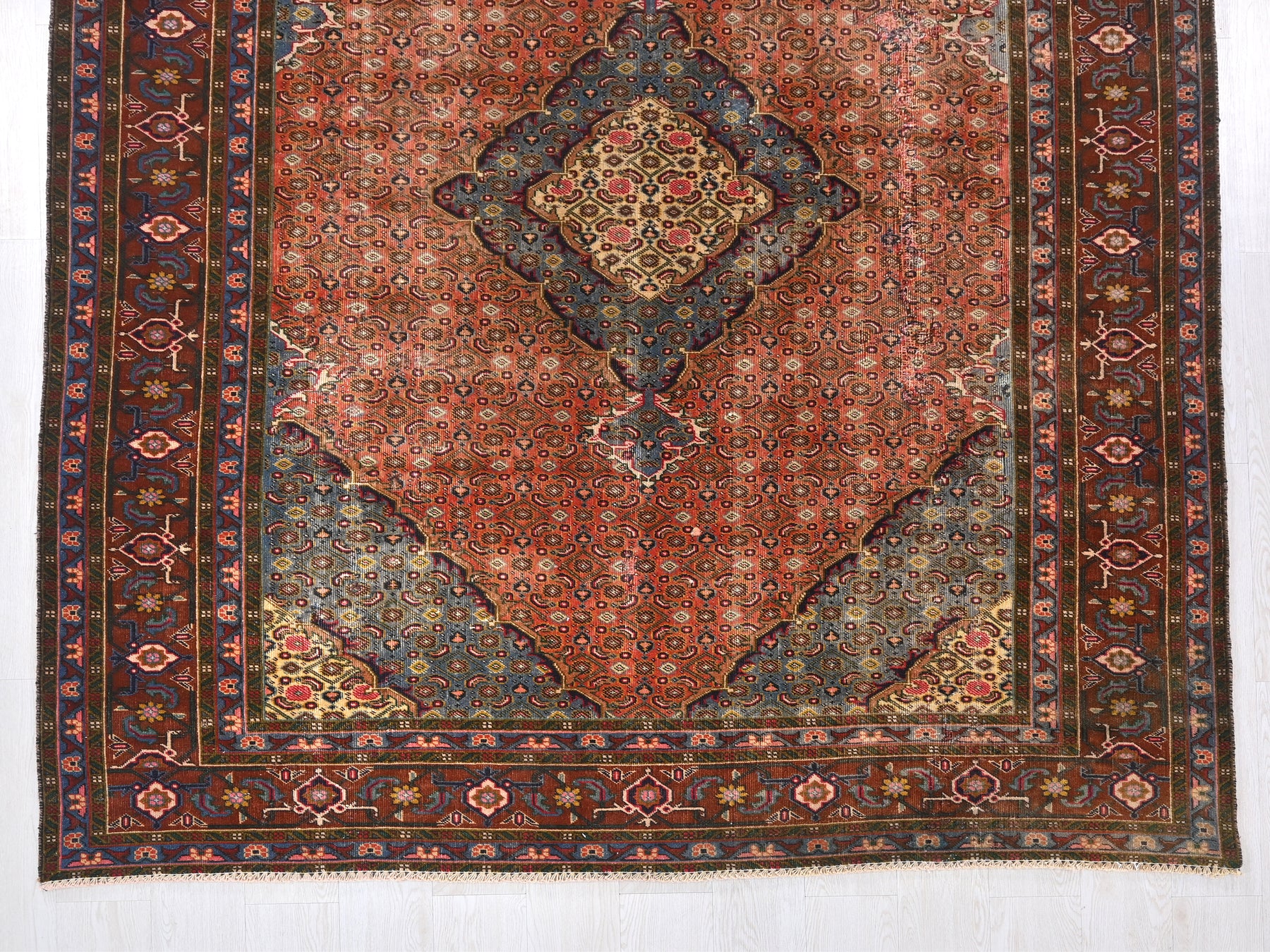 This is a hand-knotted, one-of-a-kind vintage rug. Due to the nature of this piece, there may be slight imperfections in its wear, shape, dimensions, and color. All of our rugs are professionally cleaned and repaired.