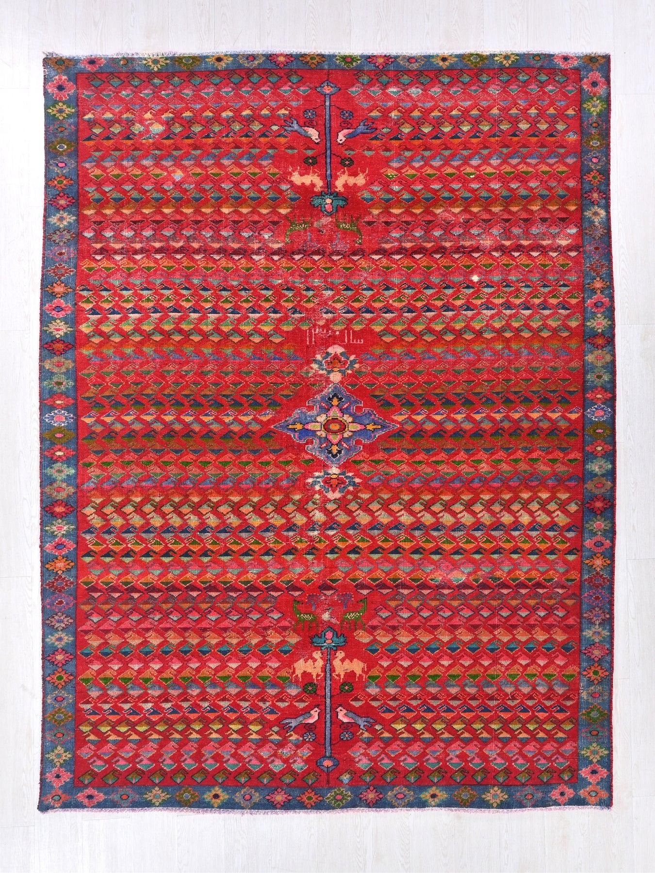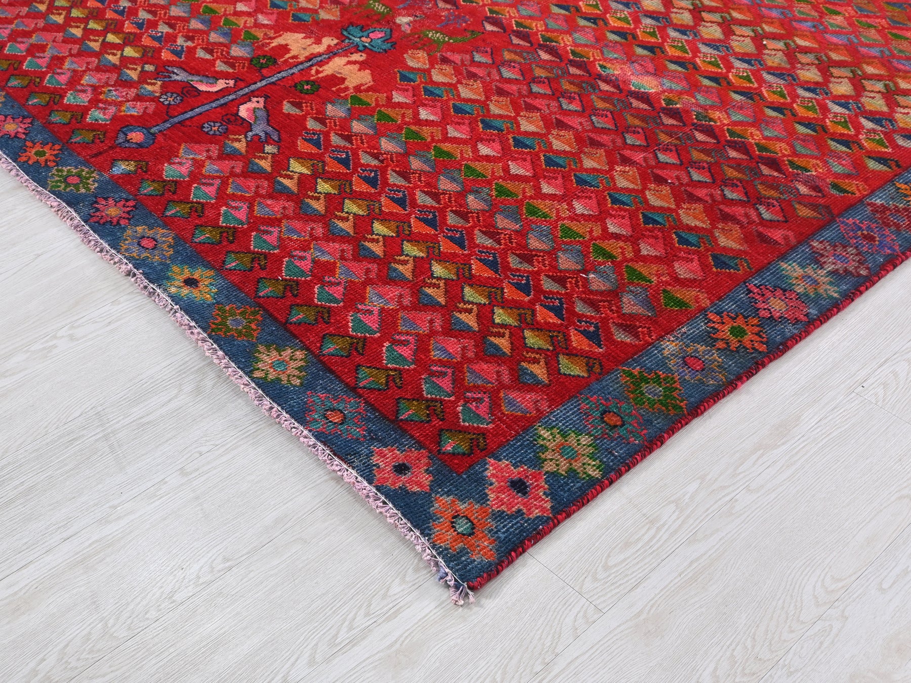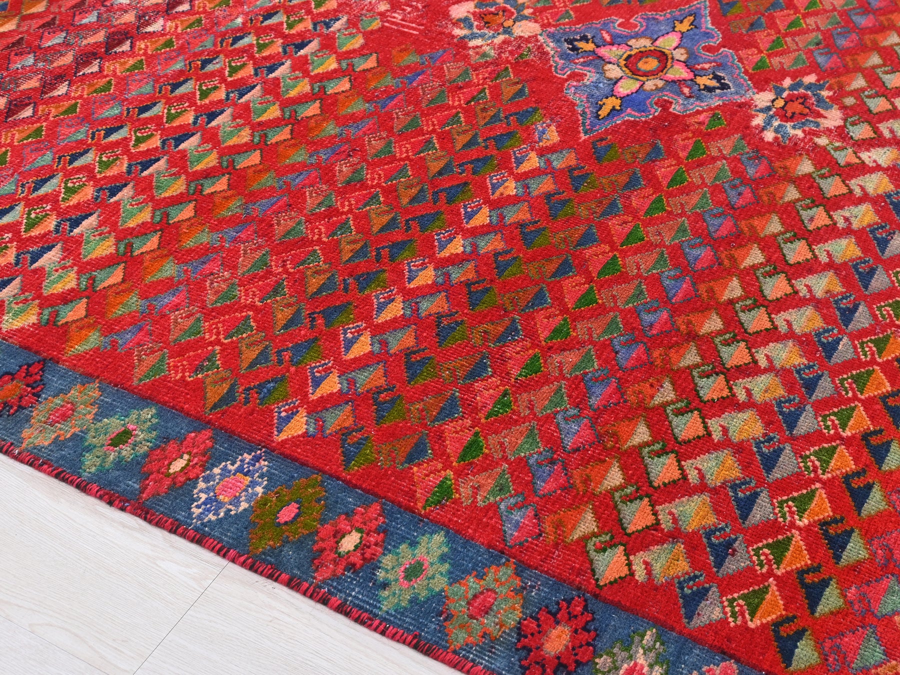 This is a hand-knotted, one-of-a-kind vintage rug. Due to the nature of this piece, there may be slight imperfections in its wear, shape, dimensions, and color. All of our rugs are professionally cleaned and repaired.