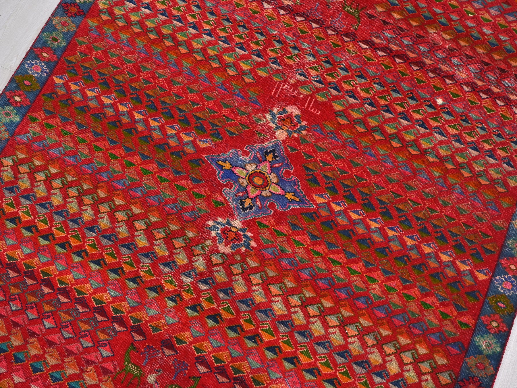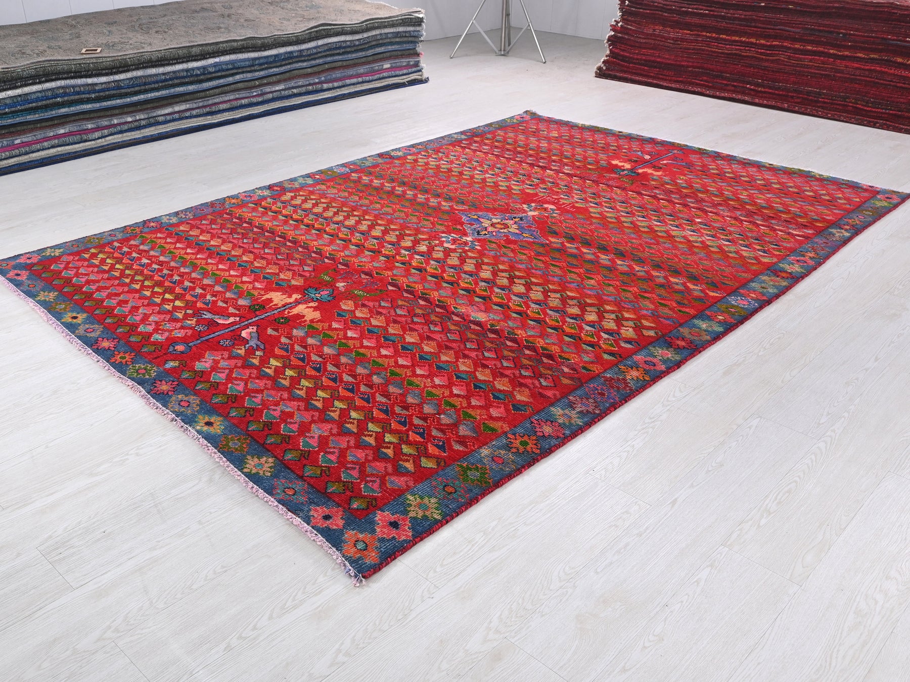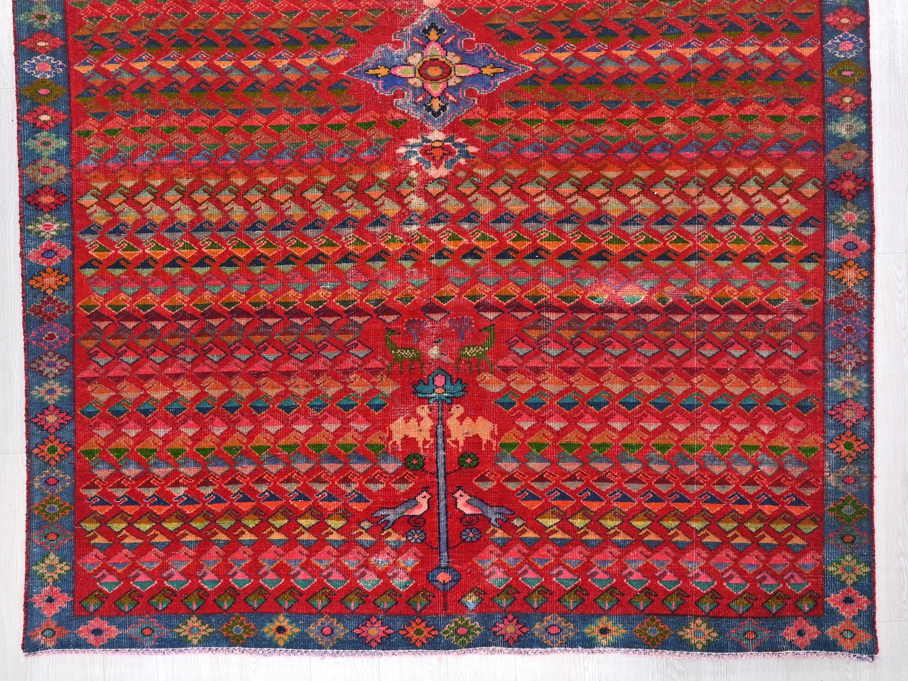 This is a hand-knotted, one-of-a-kind vintage rug. Due to the nature of this piece, there may be slight imperfections in its wear, shape, dimensions, and color. All of our rugs are professionally cleaned and repaired.