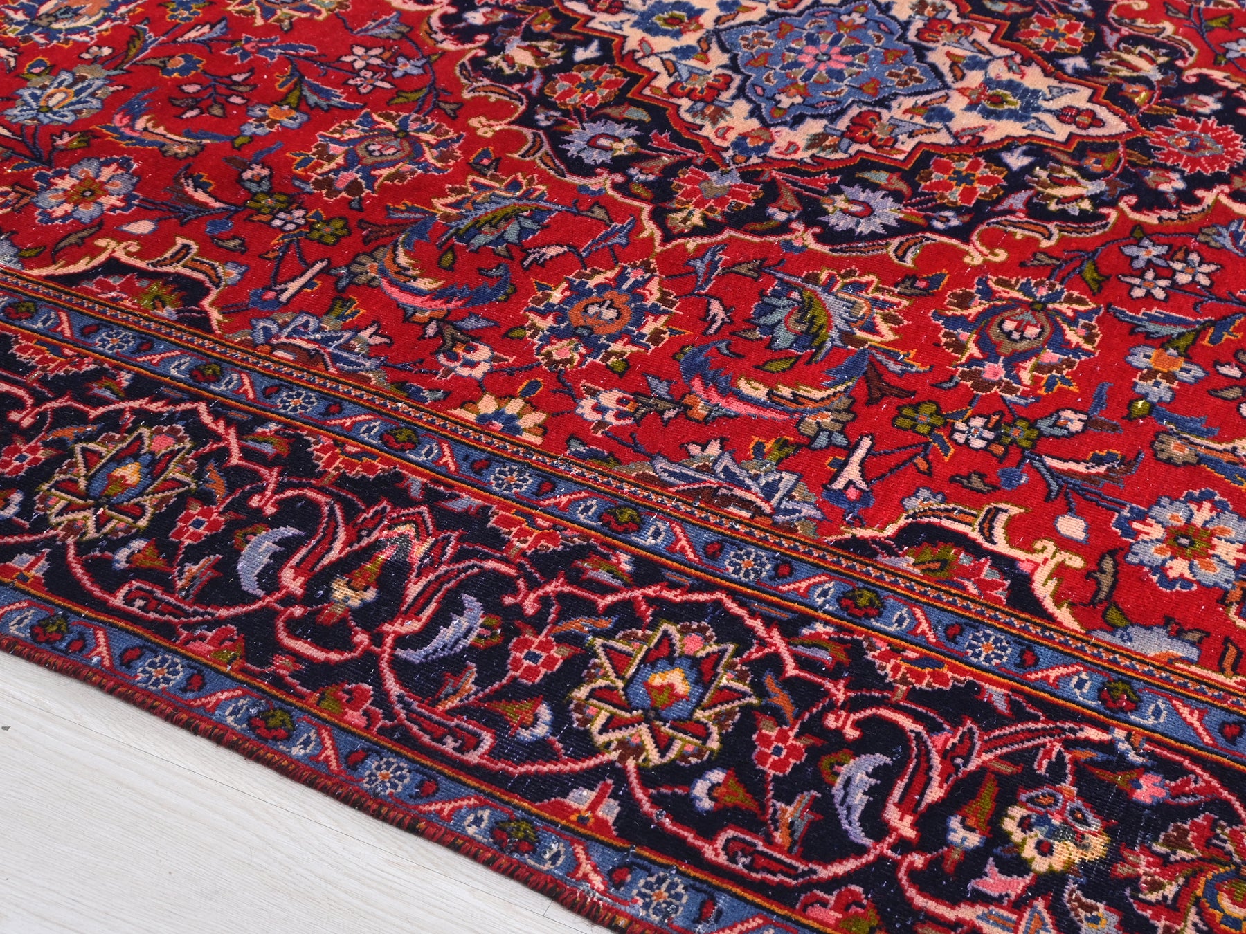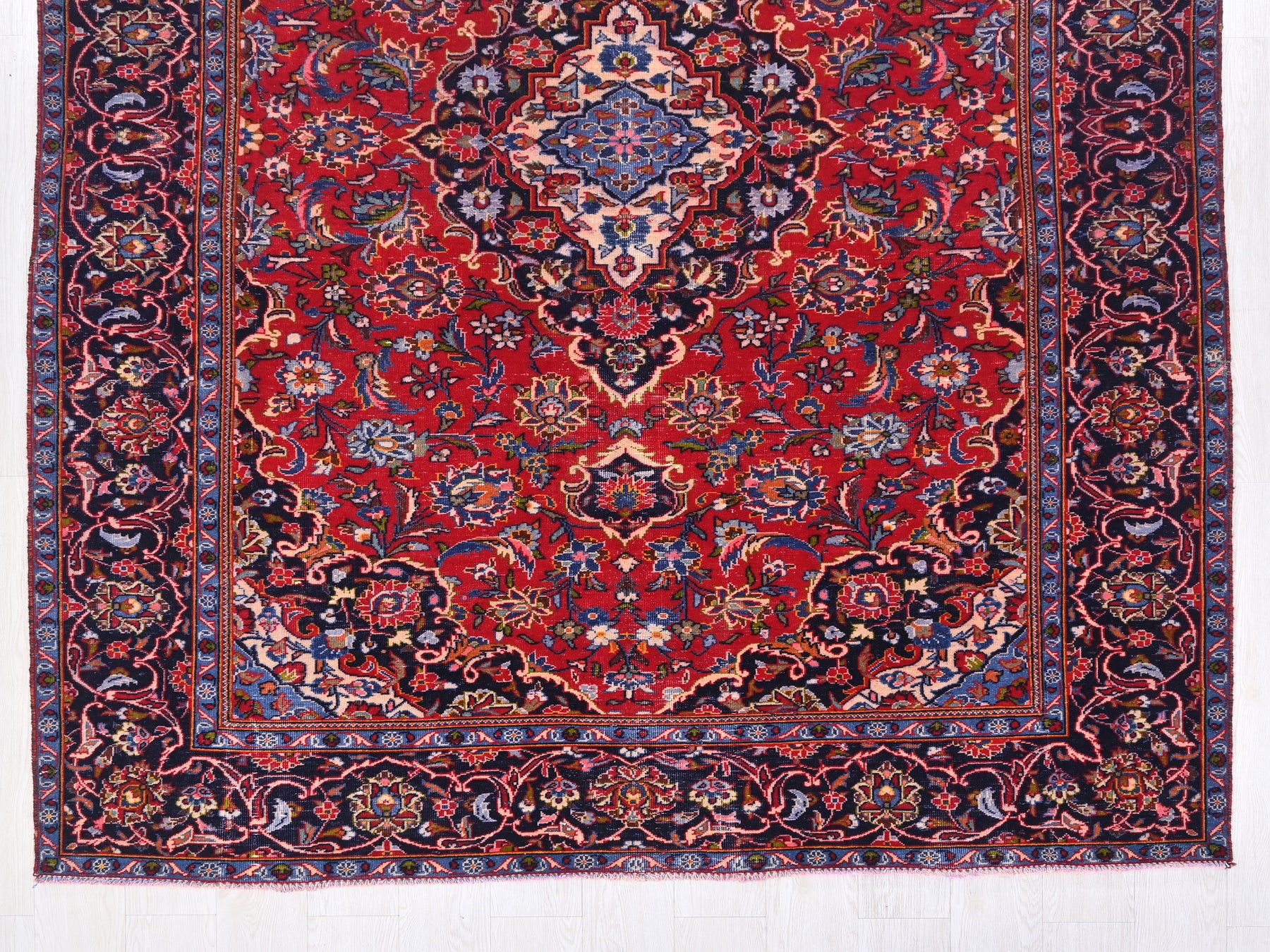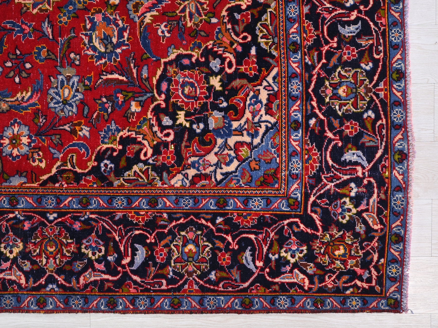 This is a hand-knotted, one-of-a-kind vintage rug. Due to the nature of this piece, there may be slight imperfections in its wear, shape, dimensions, and color. All of our rugs are professionally cleaned and repaired.