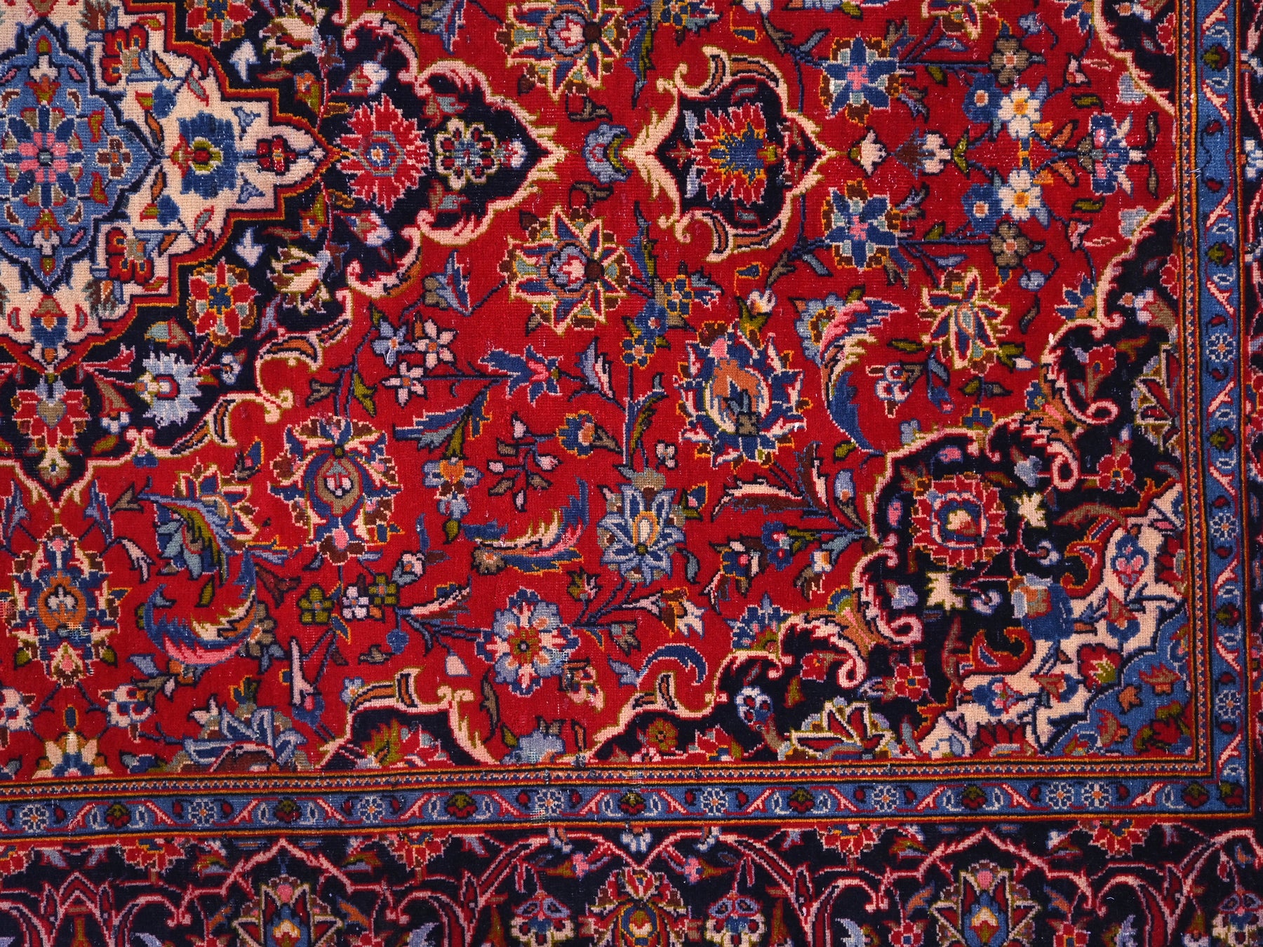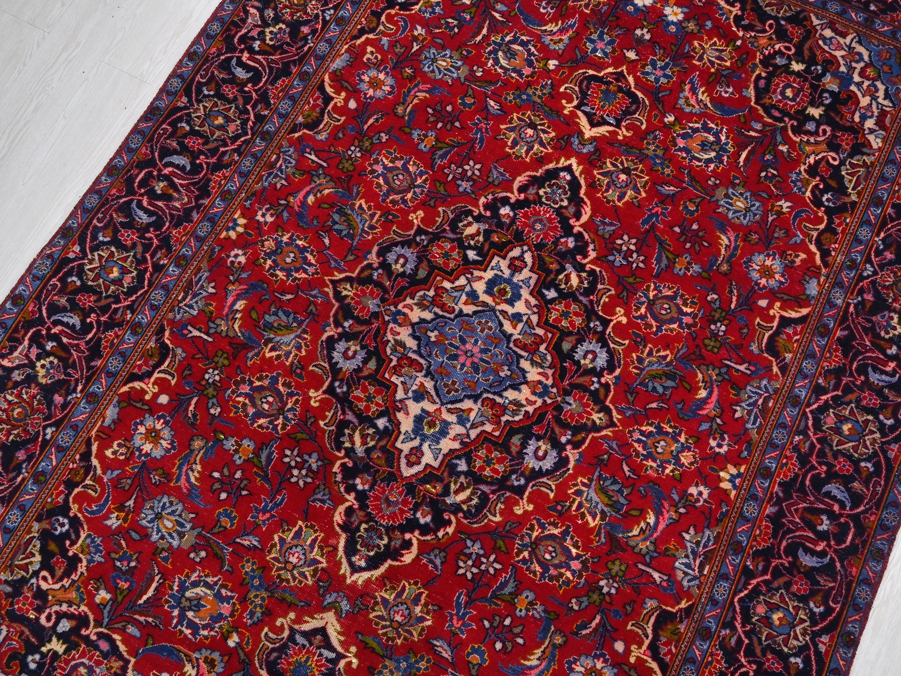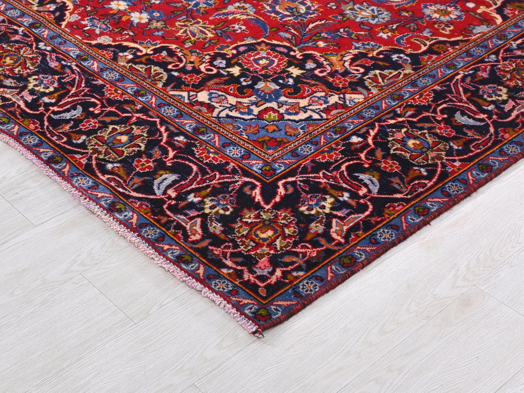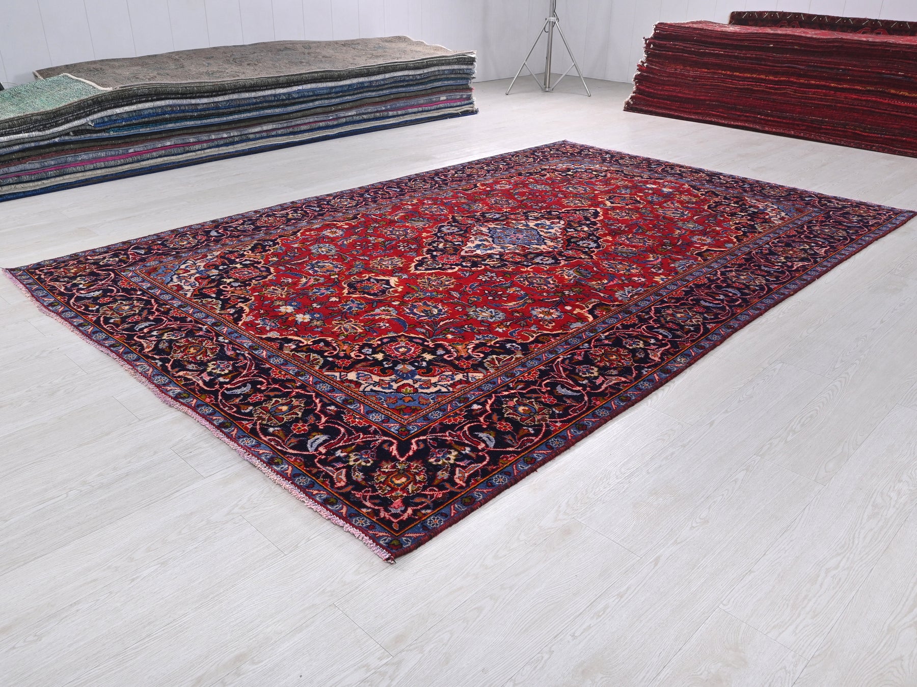 This is a hand-knotted, one-of-a-kind vintage rug. Due to the nature of this piece, there may be slight imperfections in its wear, shape, dimensions, and color. All of our rugs are professionally cleaned and repaired.