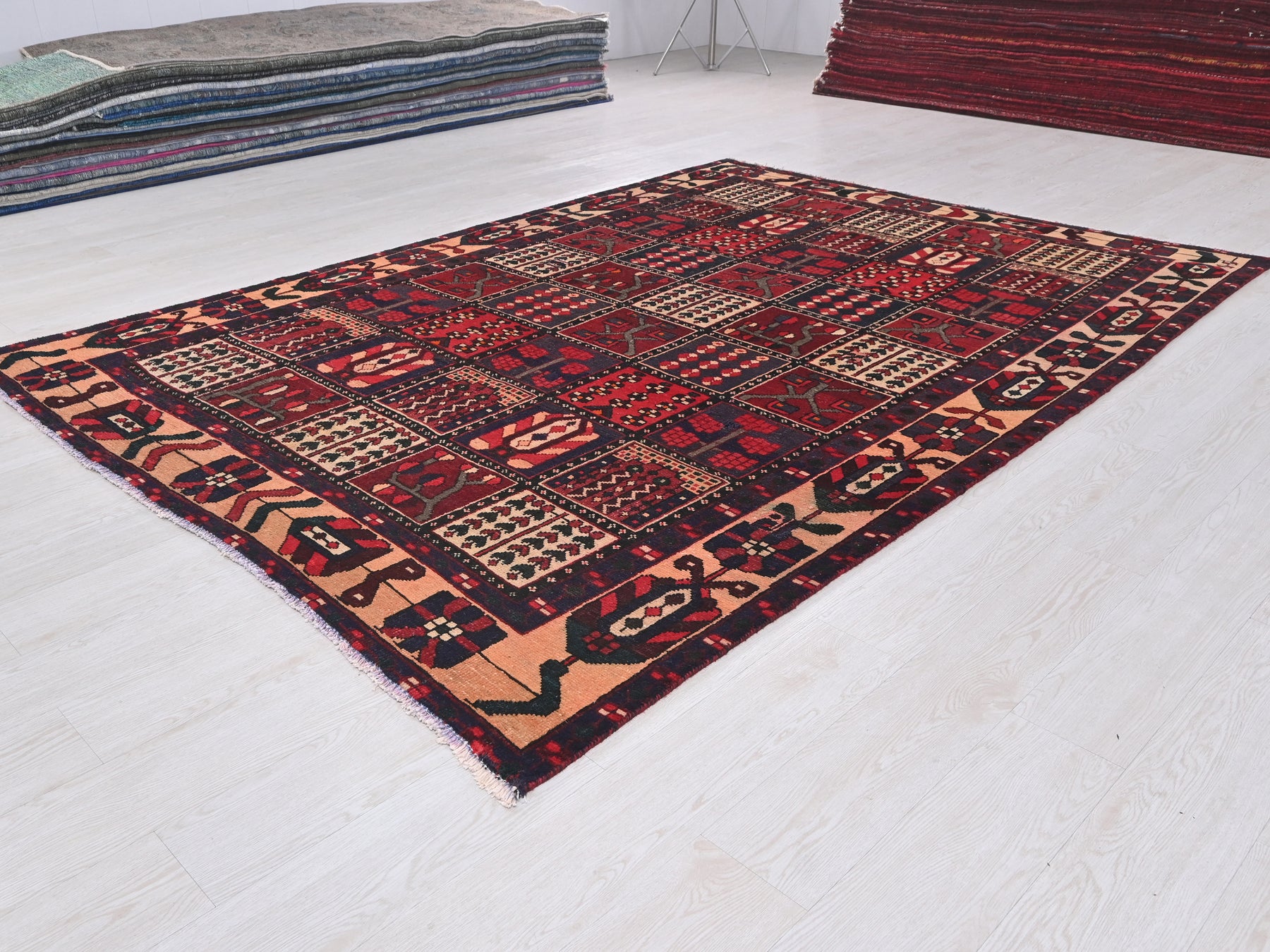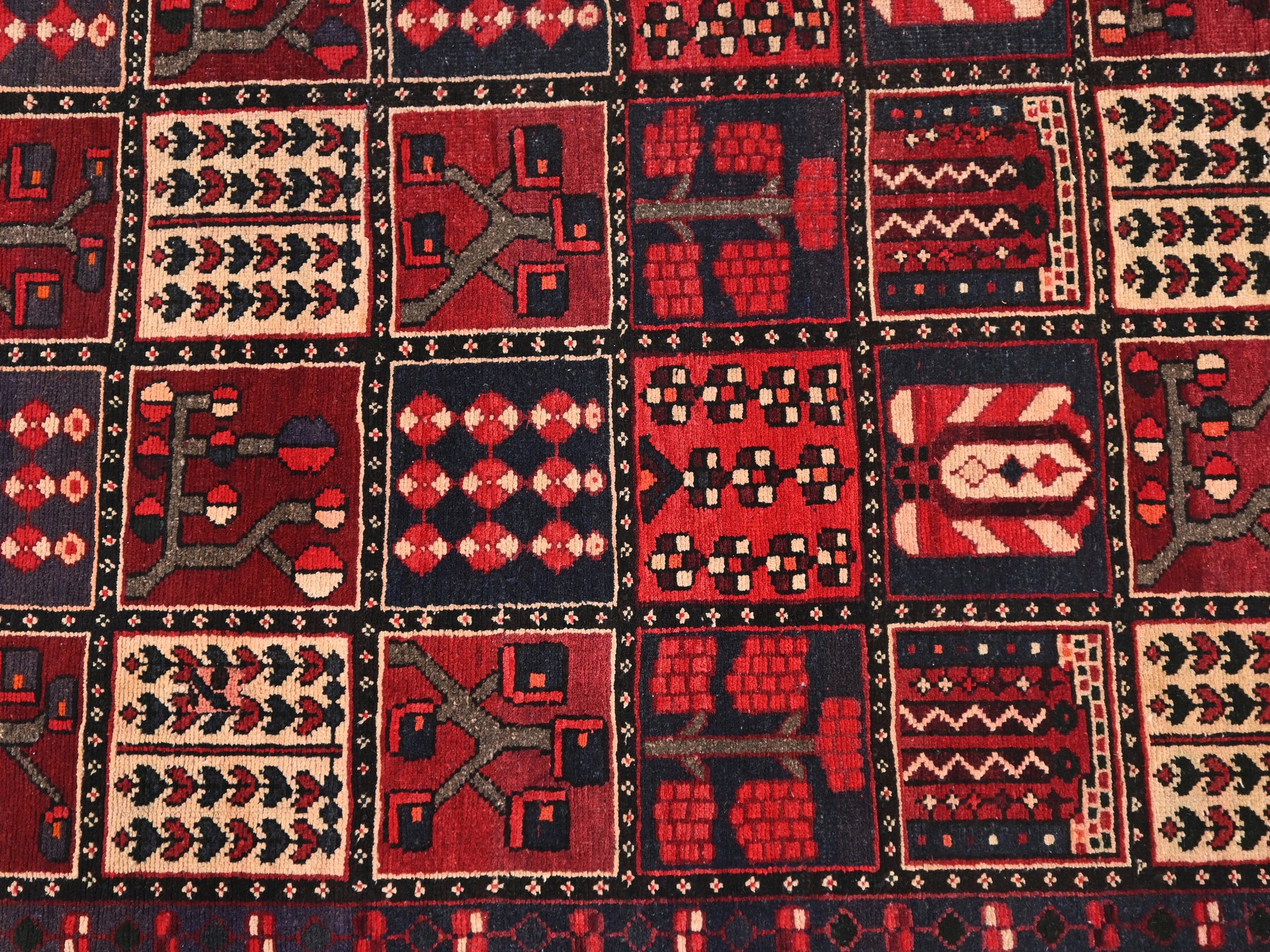 This is a hand-knotted, one-of-a-kind vintage rug. Due to the nature of this piece, there may be slight imperfections in its wear, shape, dimensions, and color. All of our rugs are professionally cleaned and repaired.
