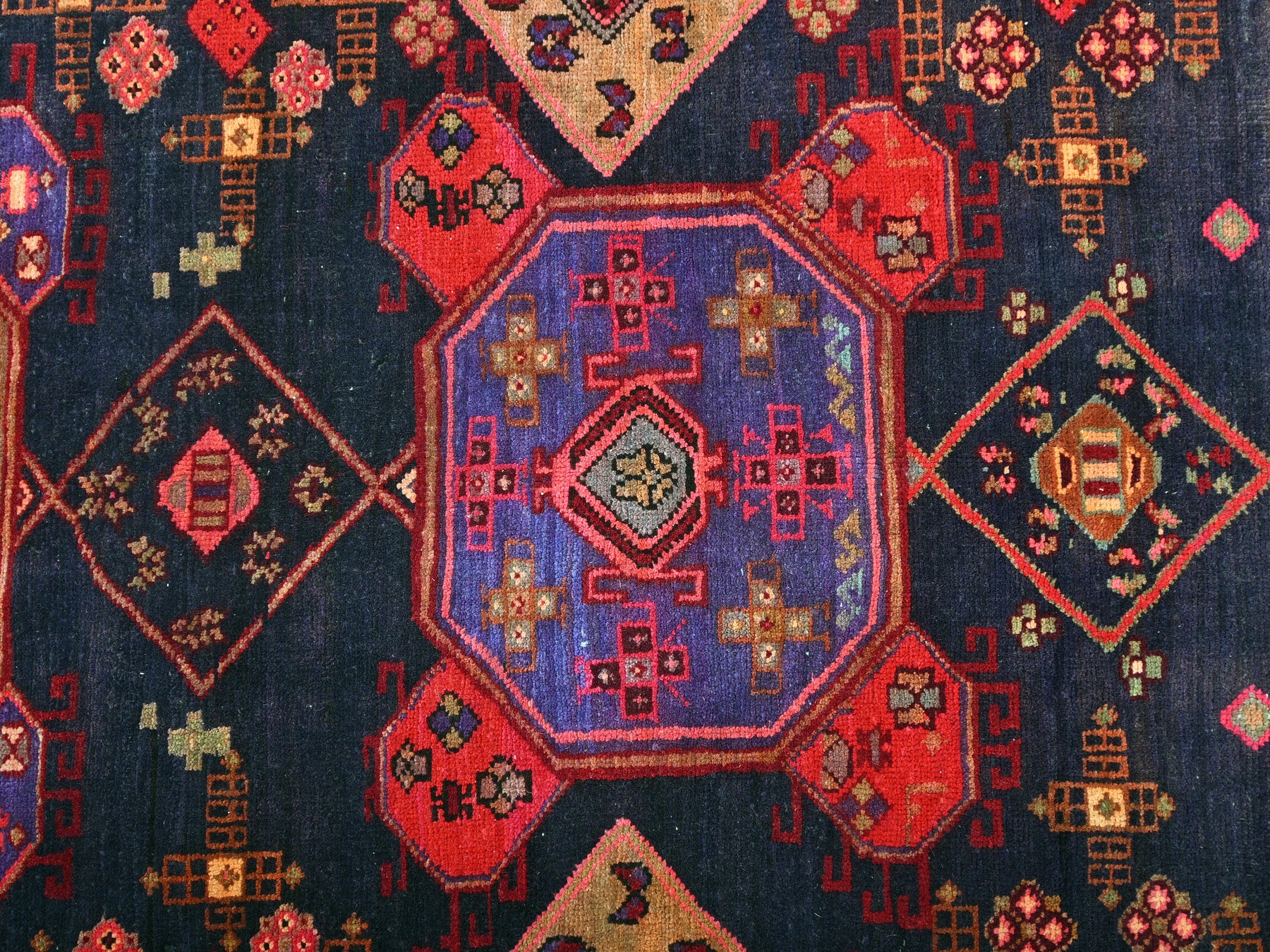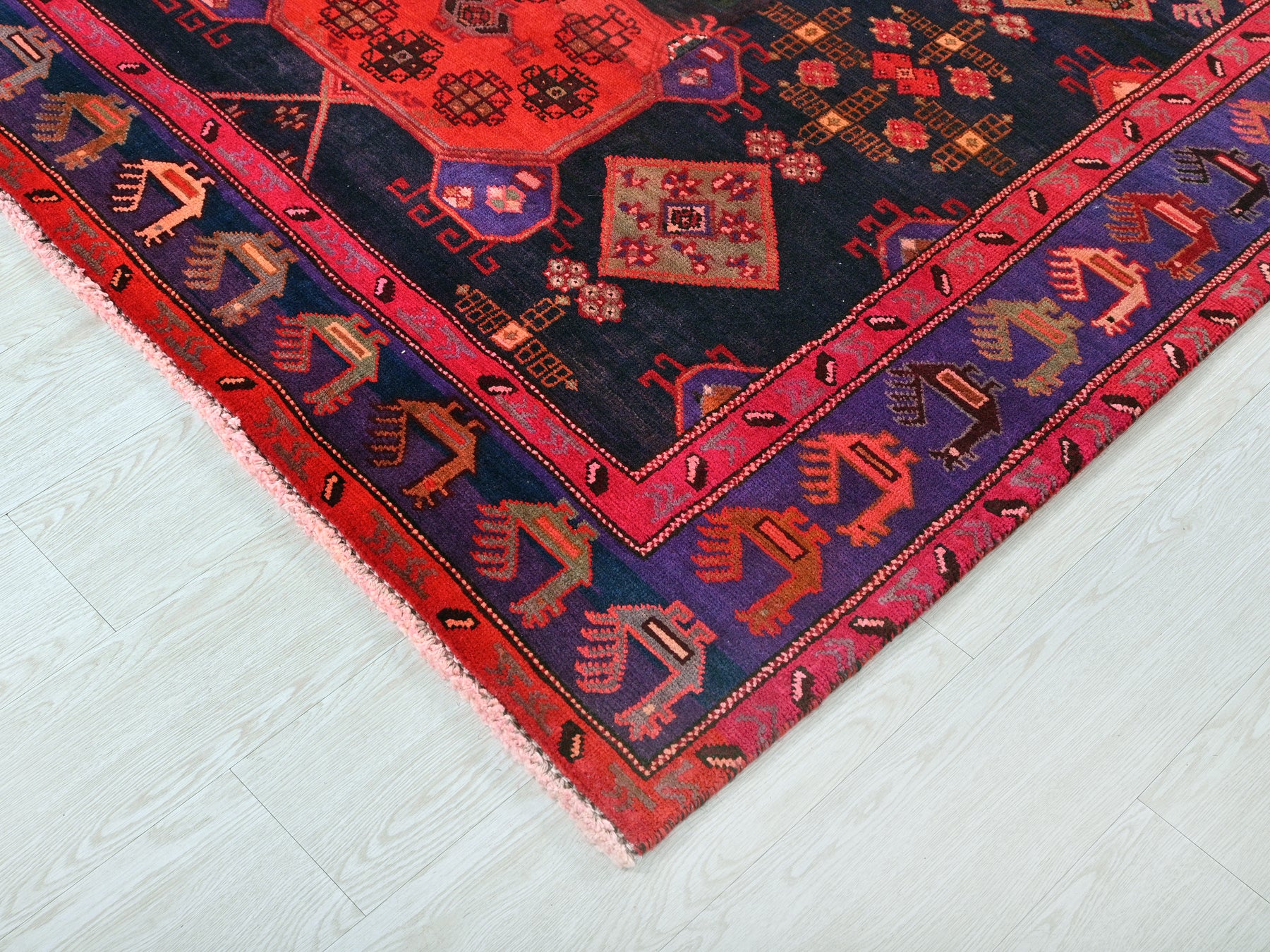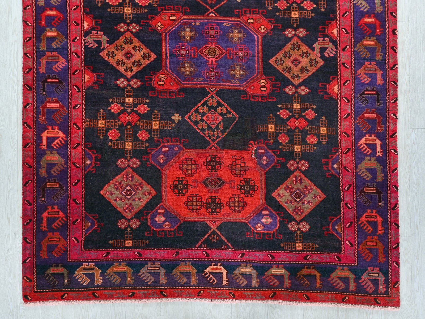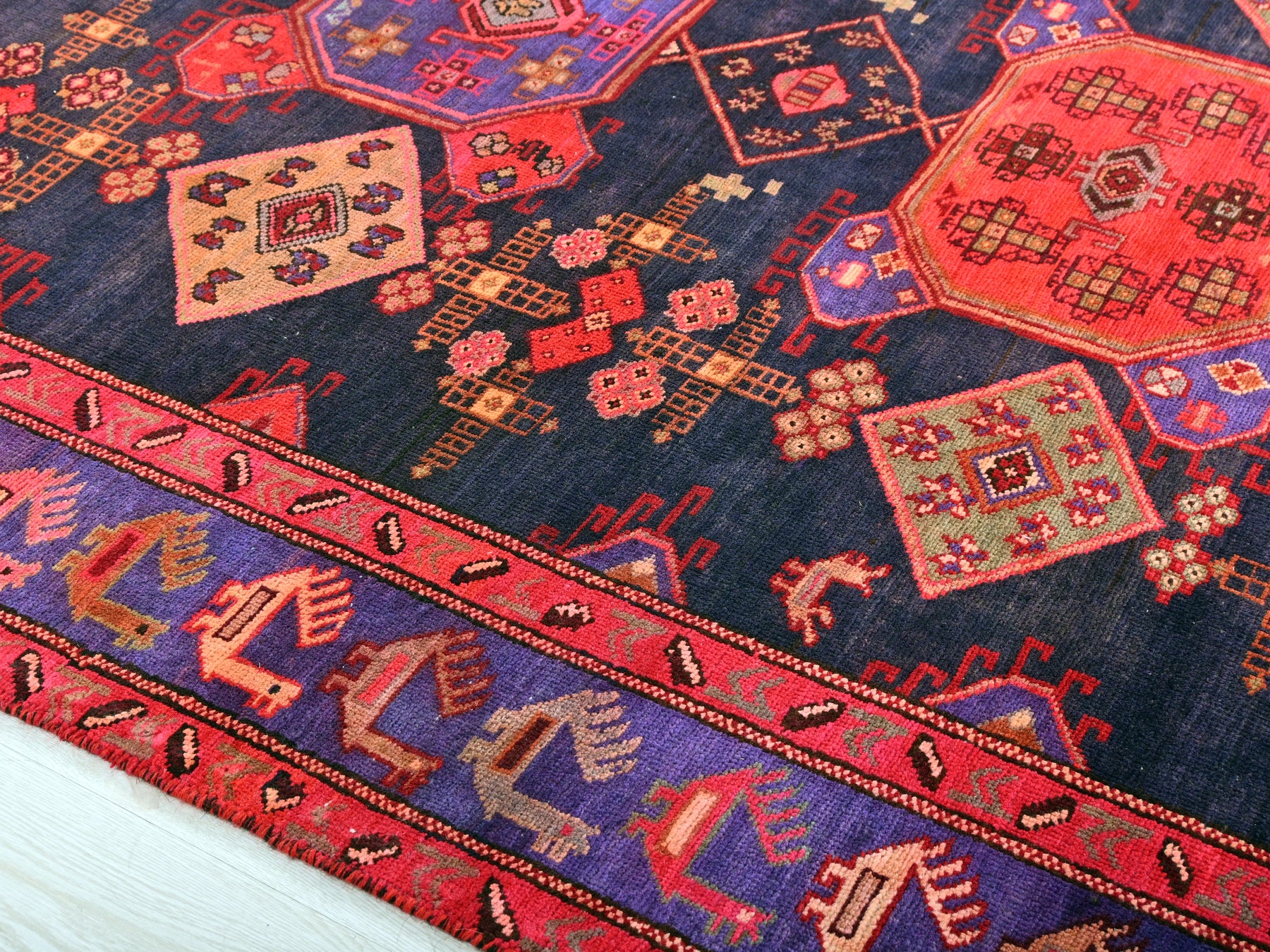 This is a hand-knotted, one-of-a-kind vintage rug. Due to the nature of this piece, there may be slight imperfections in its wear, shape, dimensions, and color. All of our rugs are professionally cleaned and repaired.