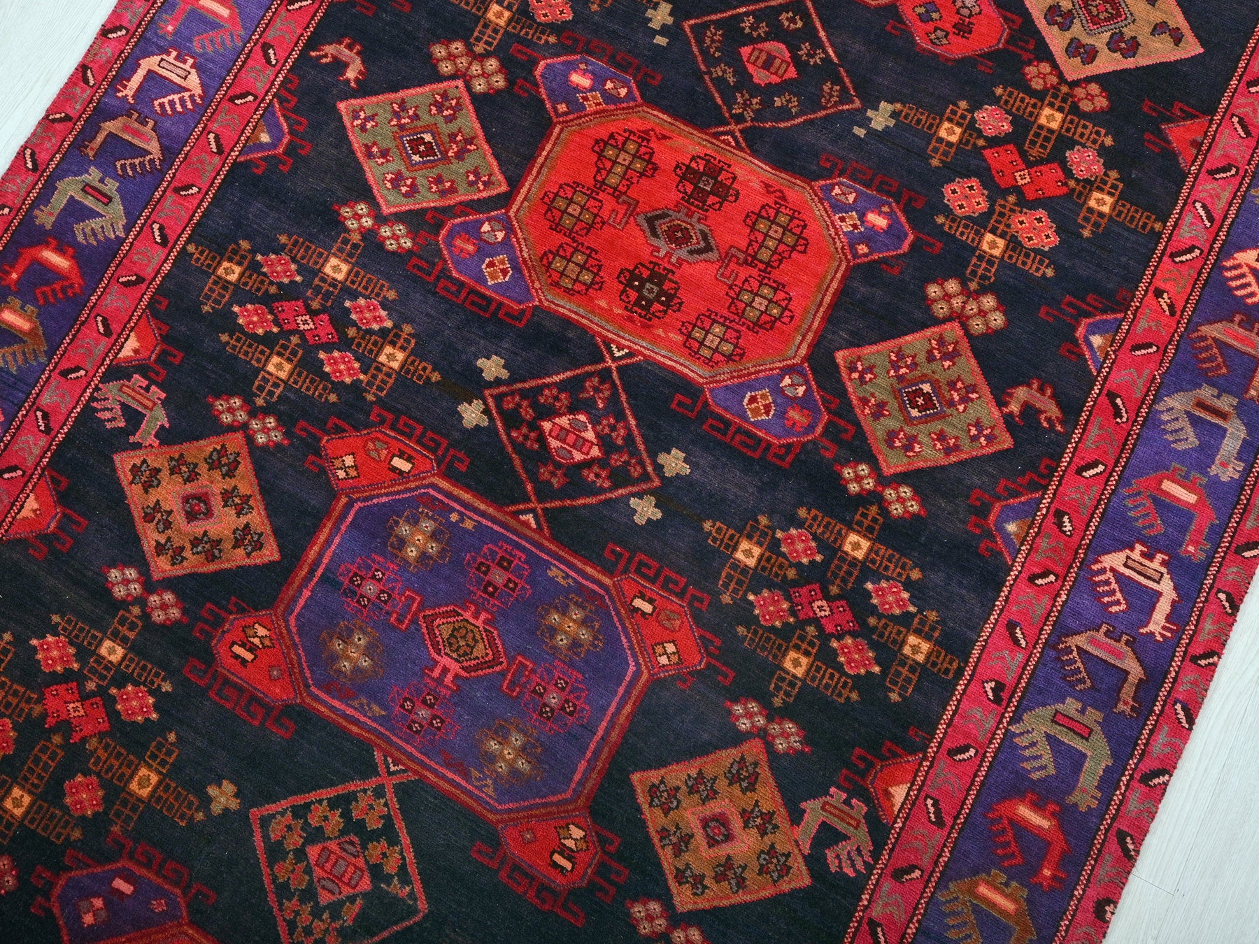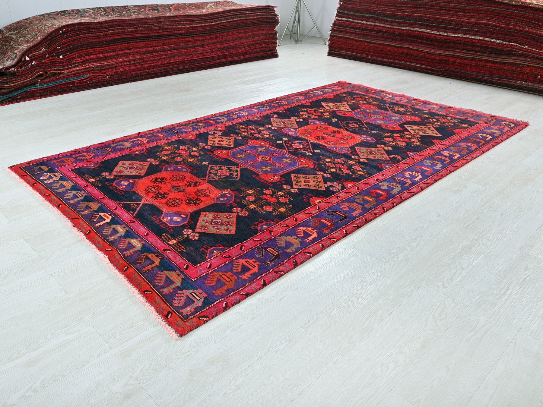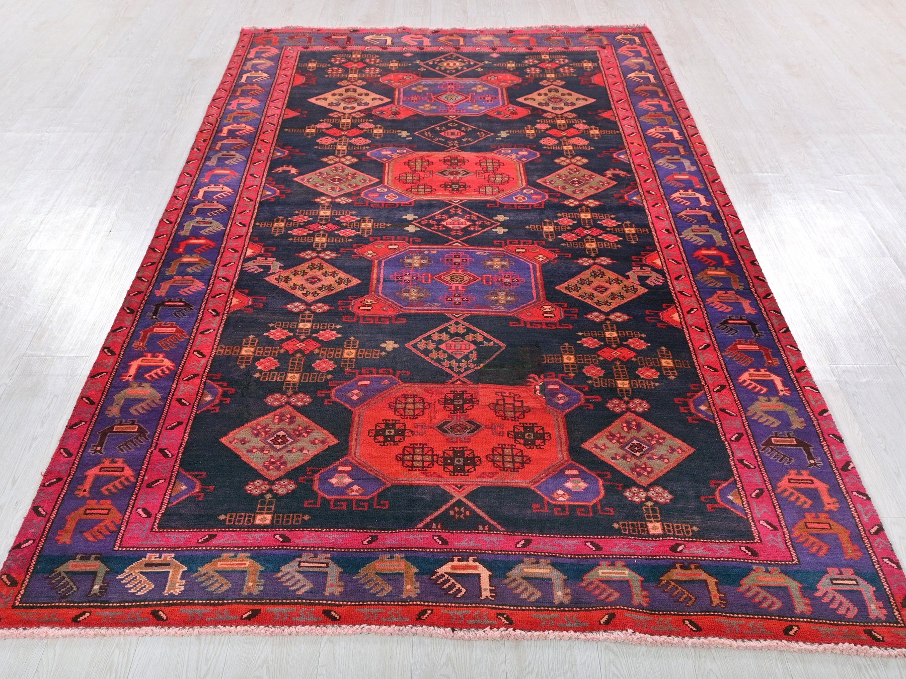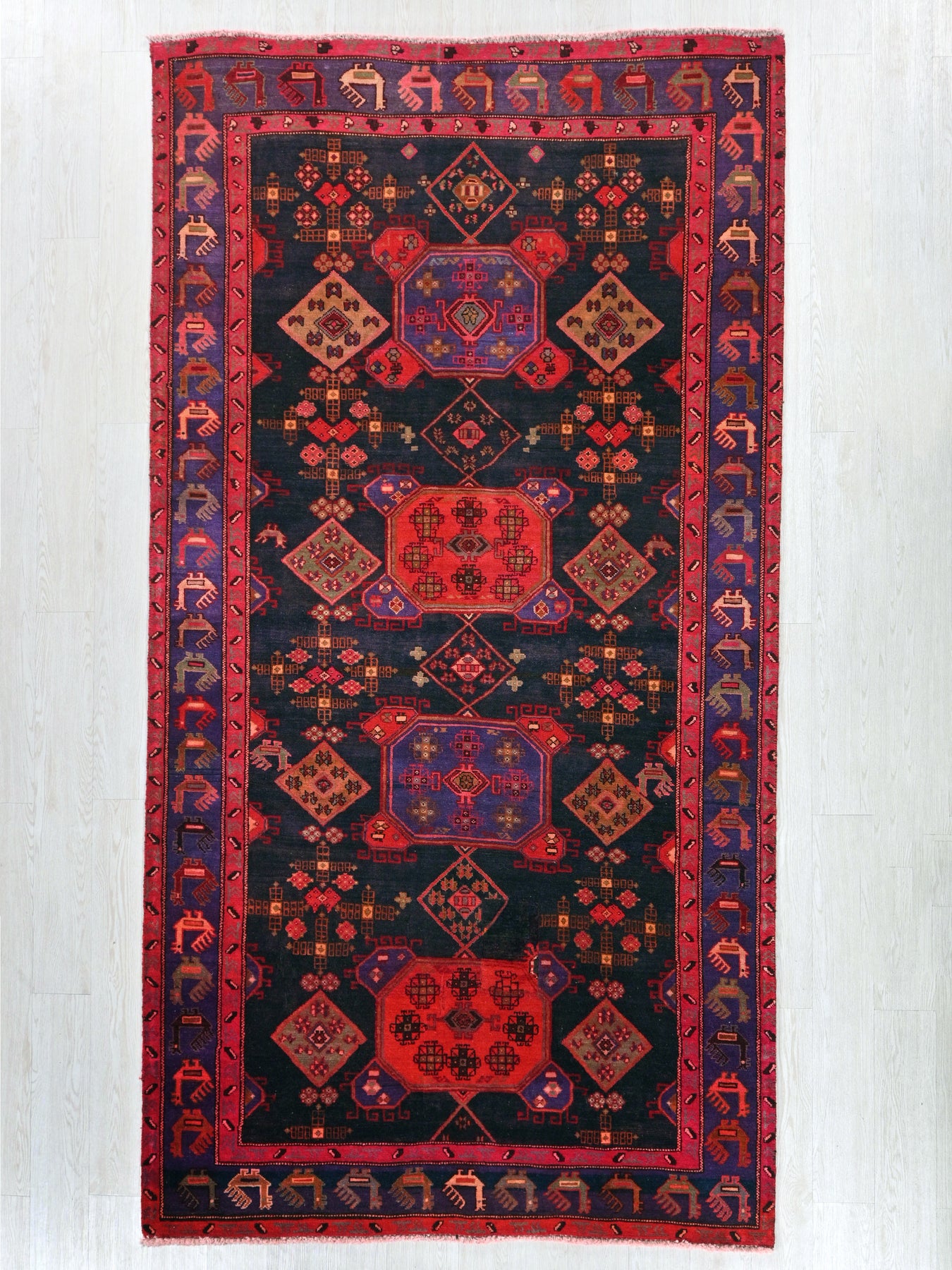 This is a hand-knotted, one-of-a-kind vintage rug. Due to the nature of this piece, there may be slight imperfections in its wear, shape, dimensions, and color. All of our rugs are professionally cleaned and repaired.
