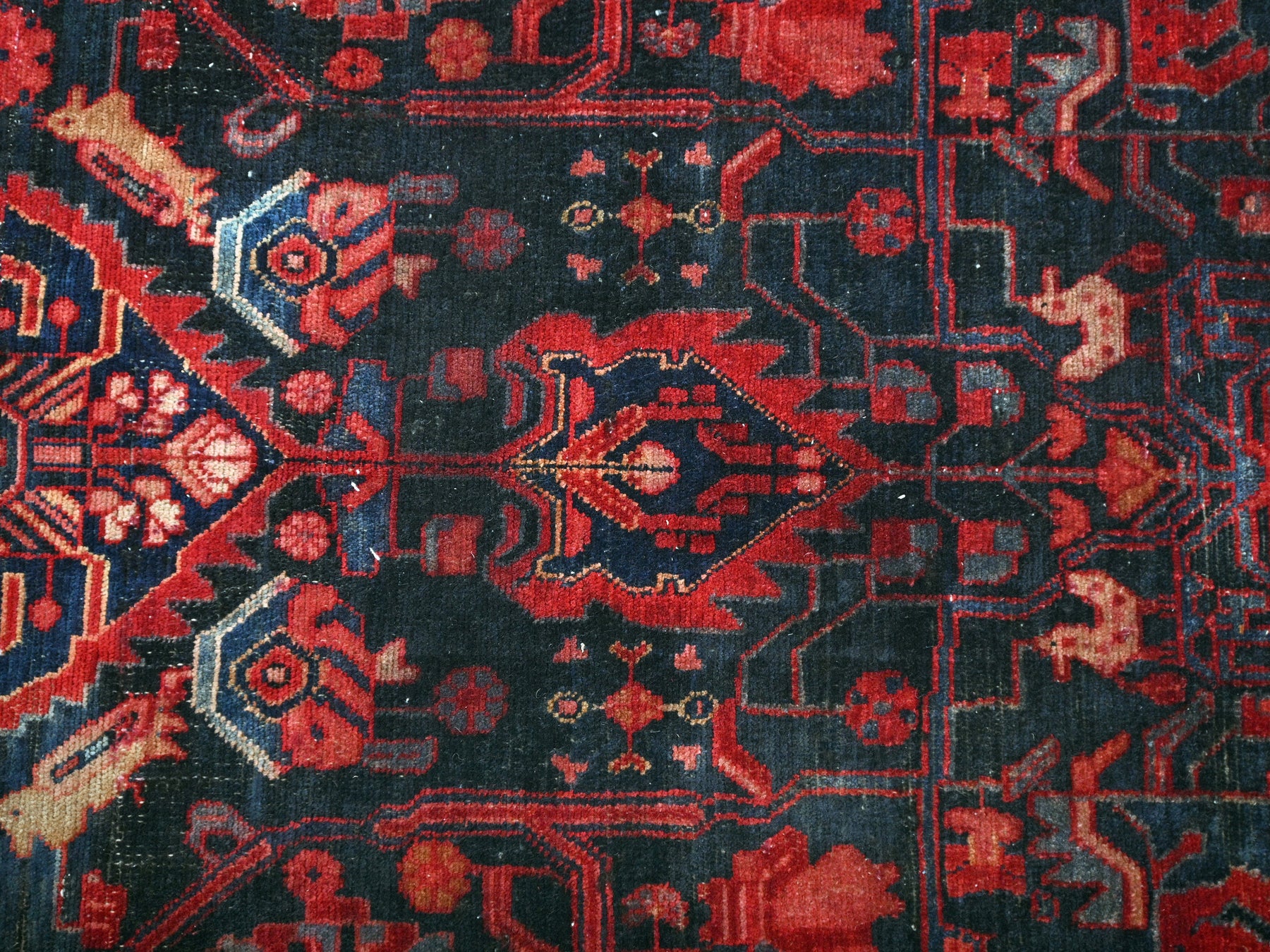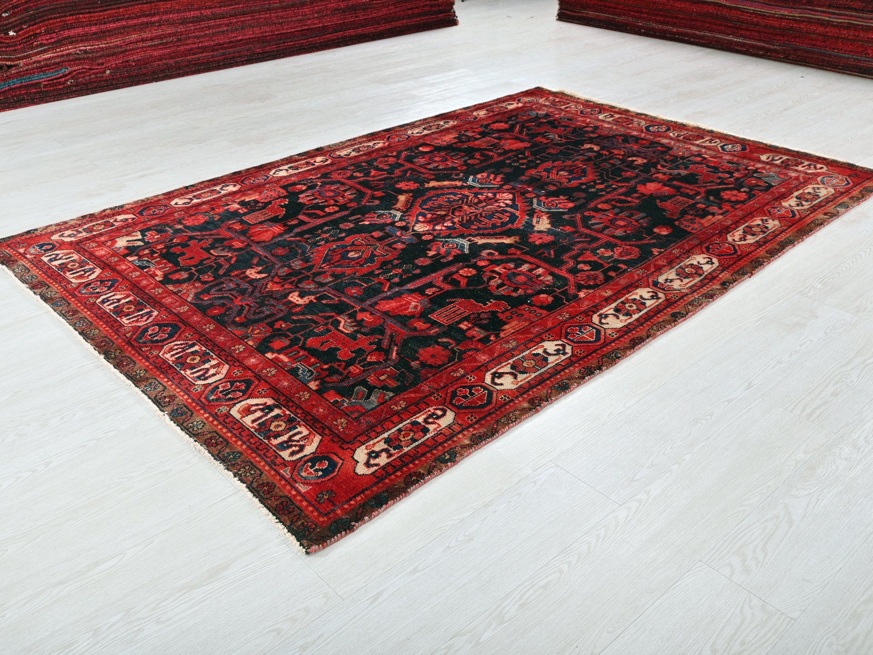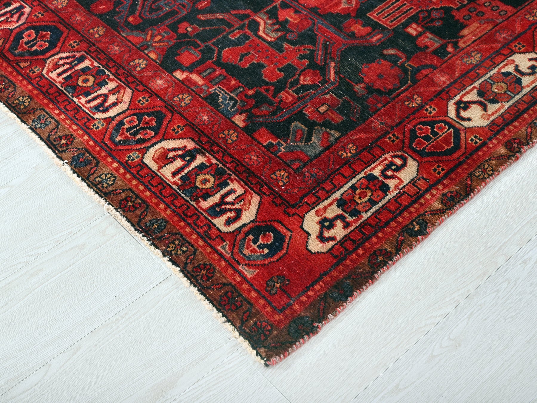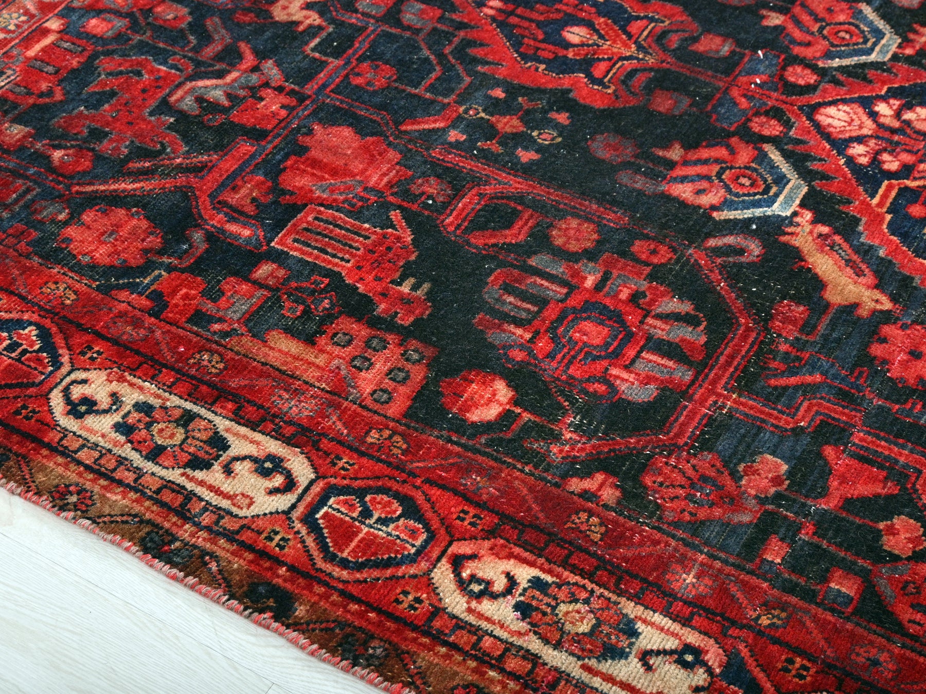 This is a hand-knotted, one-of-a-kind vintage rug. Due to the nature of this piece, there may be slight imperfections in its wear, shape, dimensions, and color. All of our rugs are professionally cleaned and repaired.