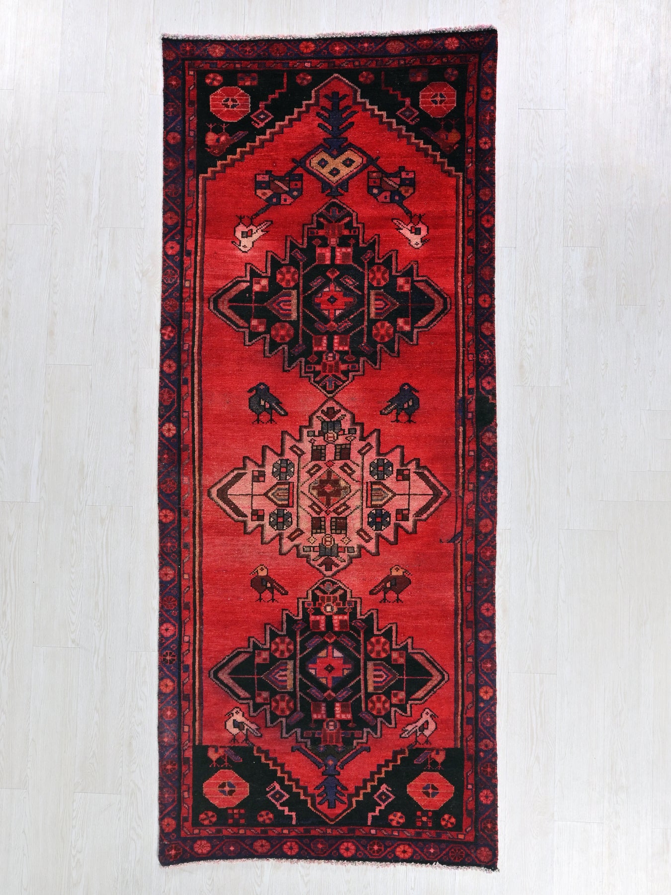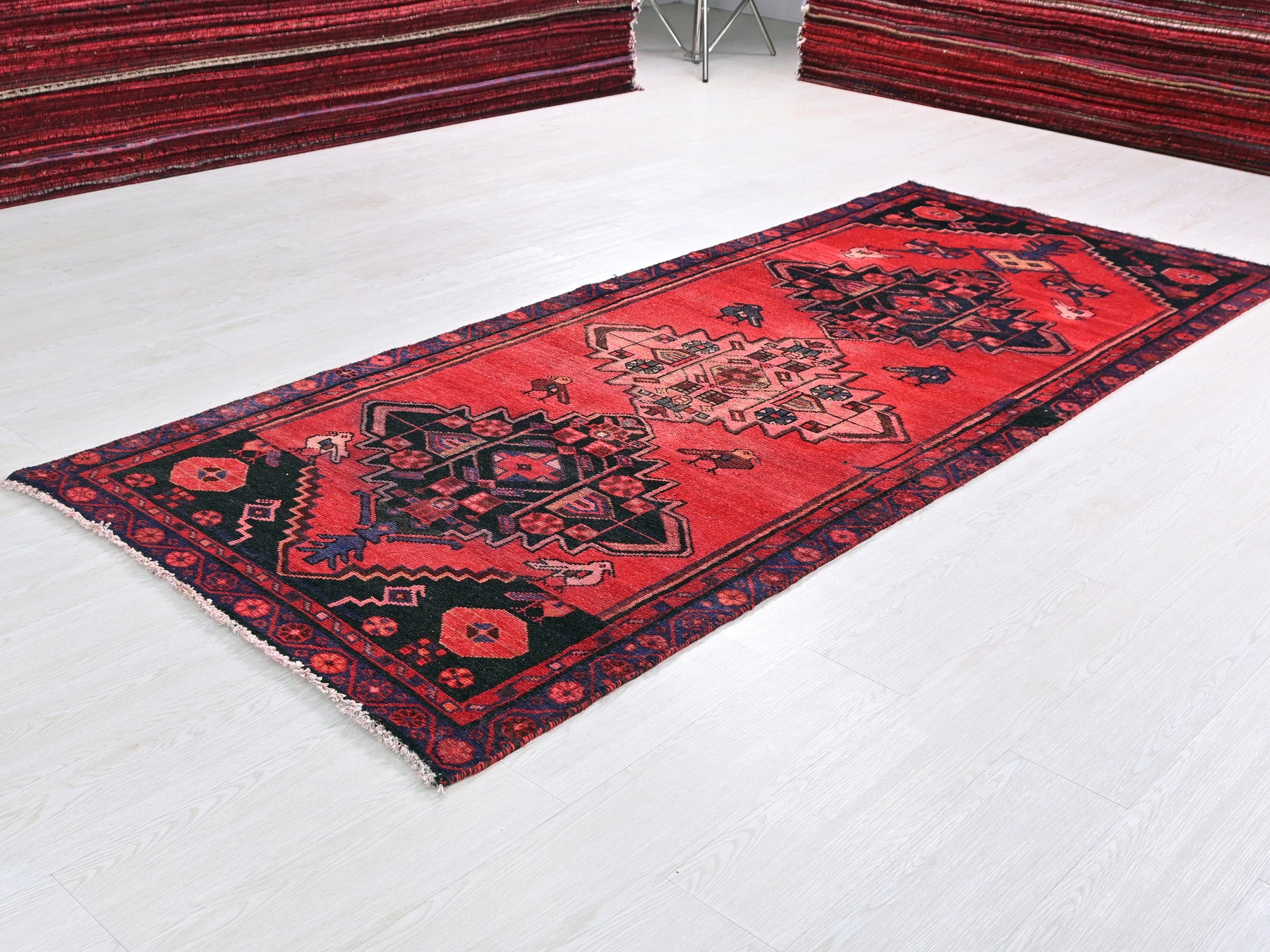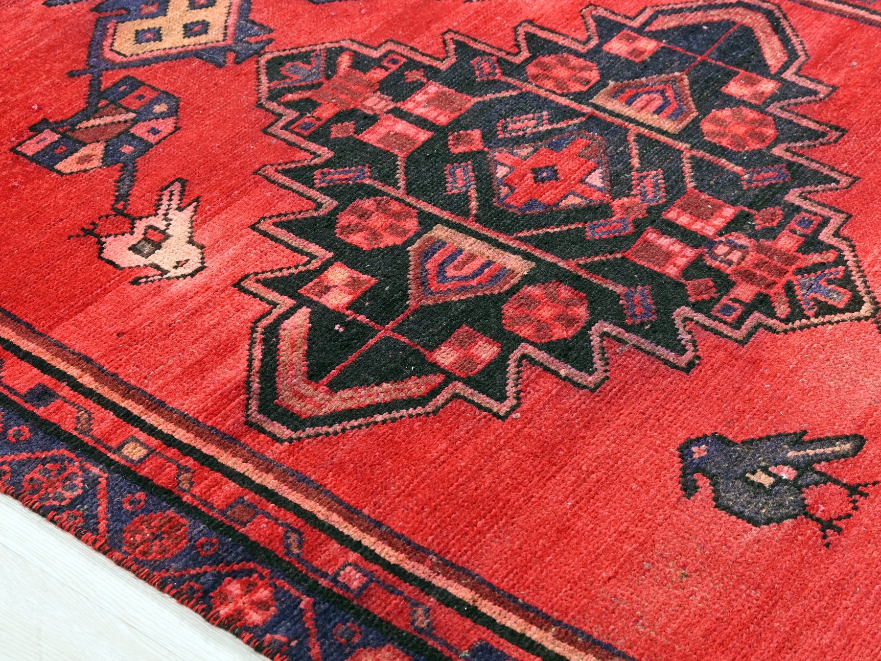 This is a hand-knotted, one-of-a-kind vintage rug. Due to the nature of this piece, there may be slight imperfections in its wear, shape, dimensions, and color. All of our rugs are professionally cleaned and repaired.