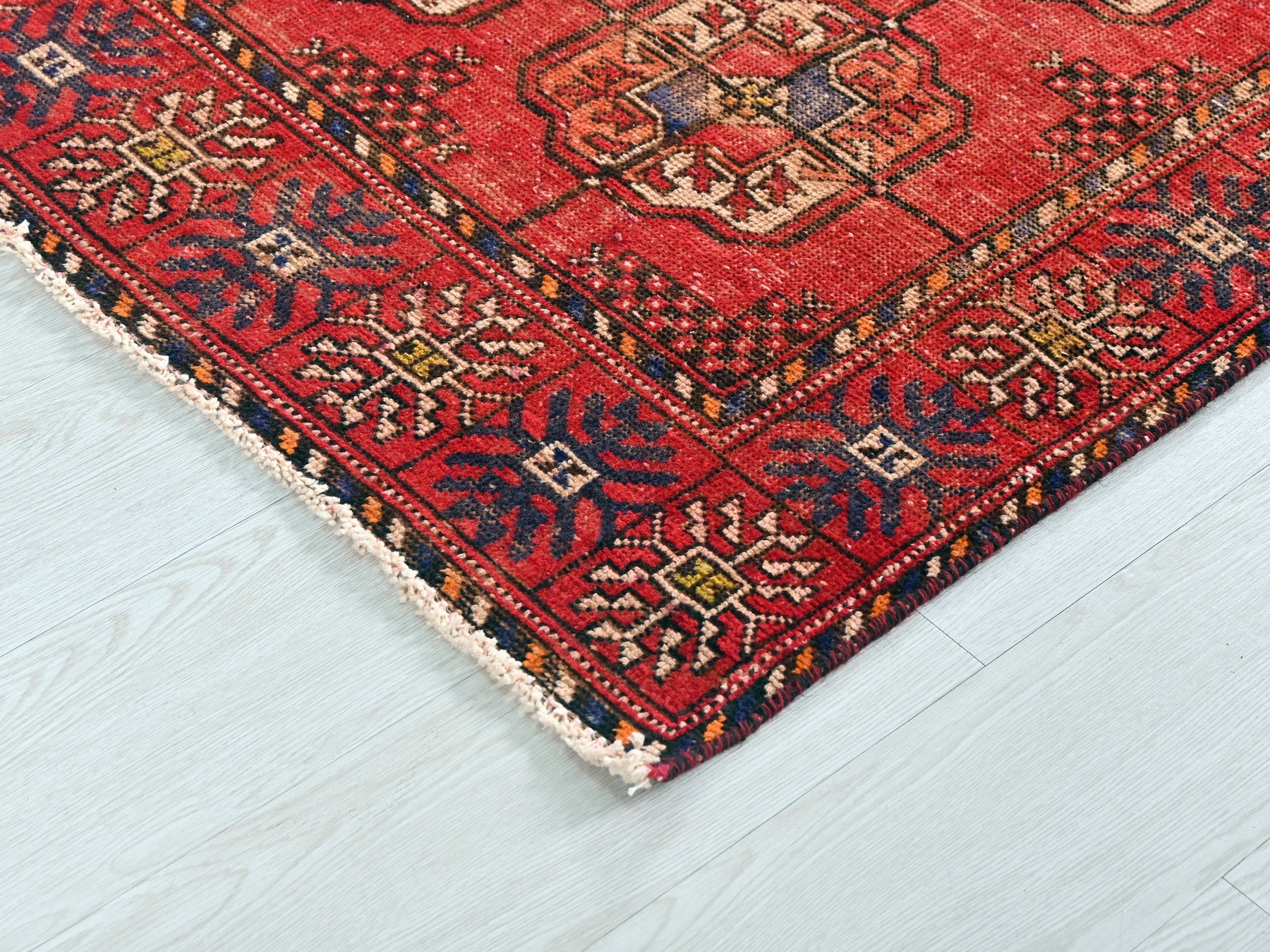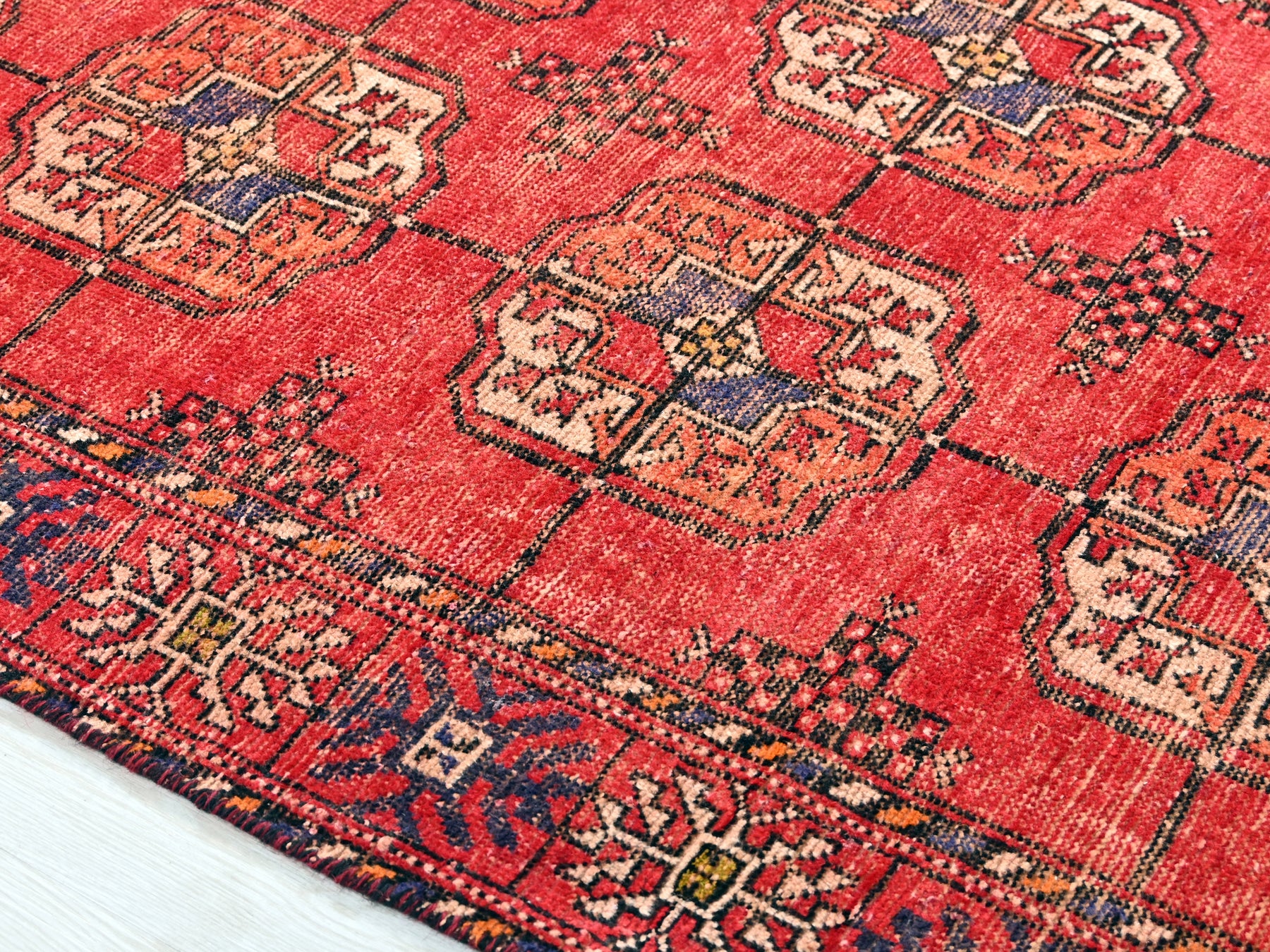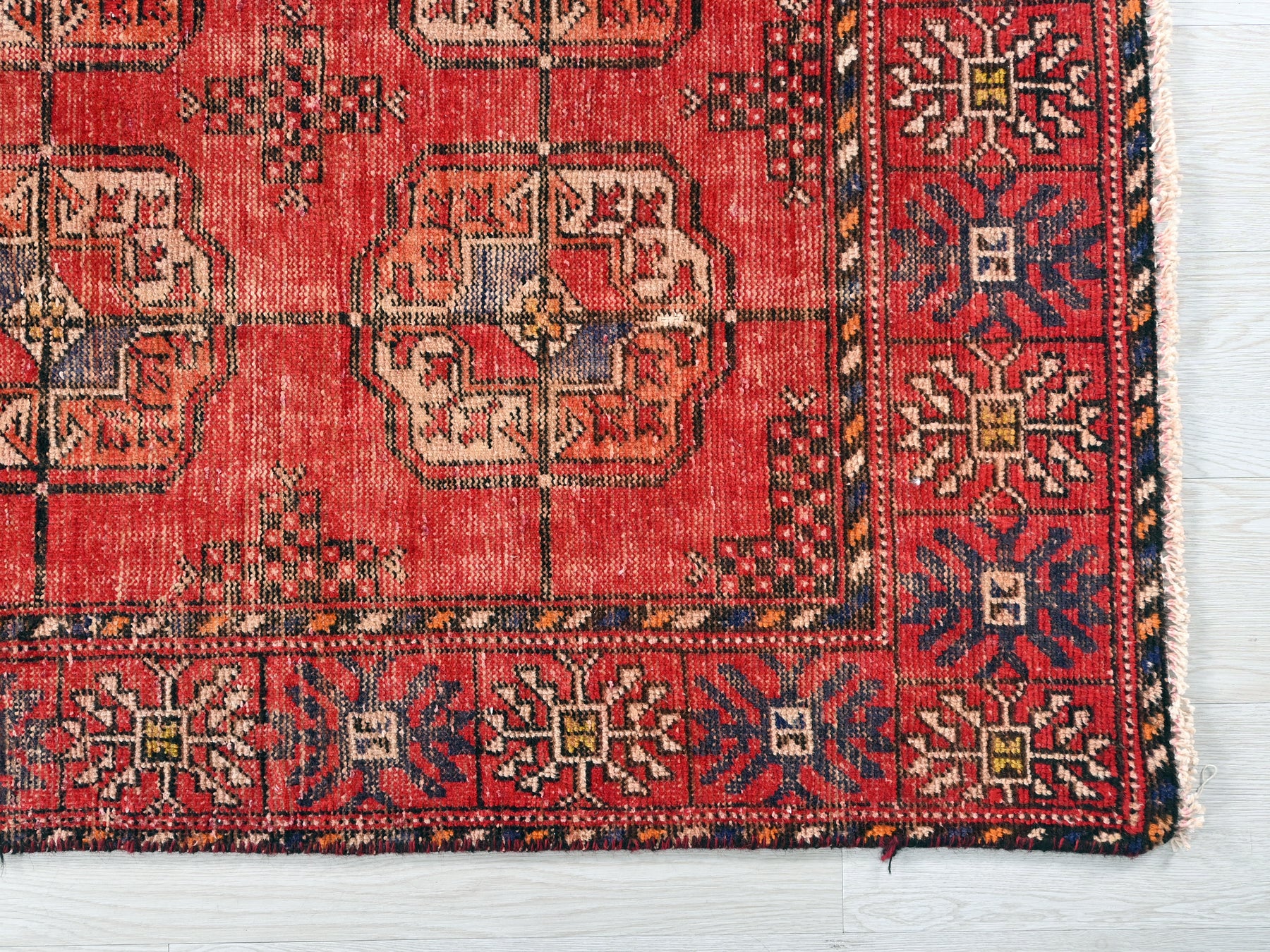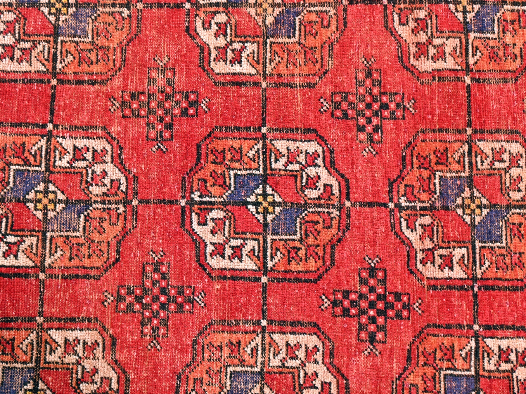 This is a hand-knotted, one-of-a-kind vintage rug. Due to the nature of this piece, there may be slight imperfections in its wear, shape, dimensions, and color. All of our rugs are professionally cleaned and repaired.