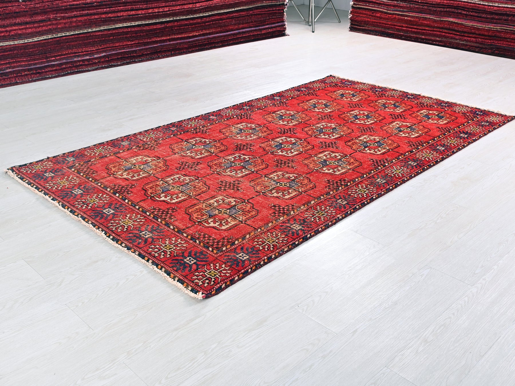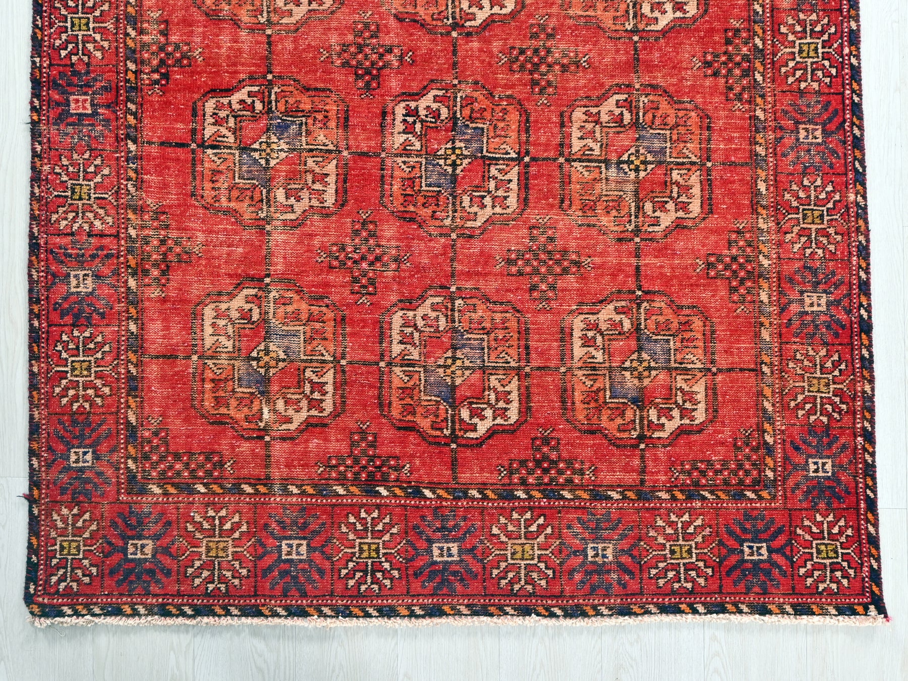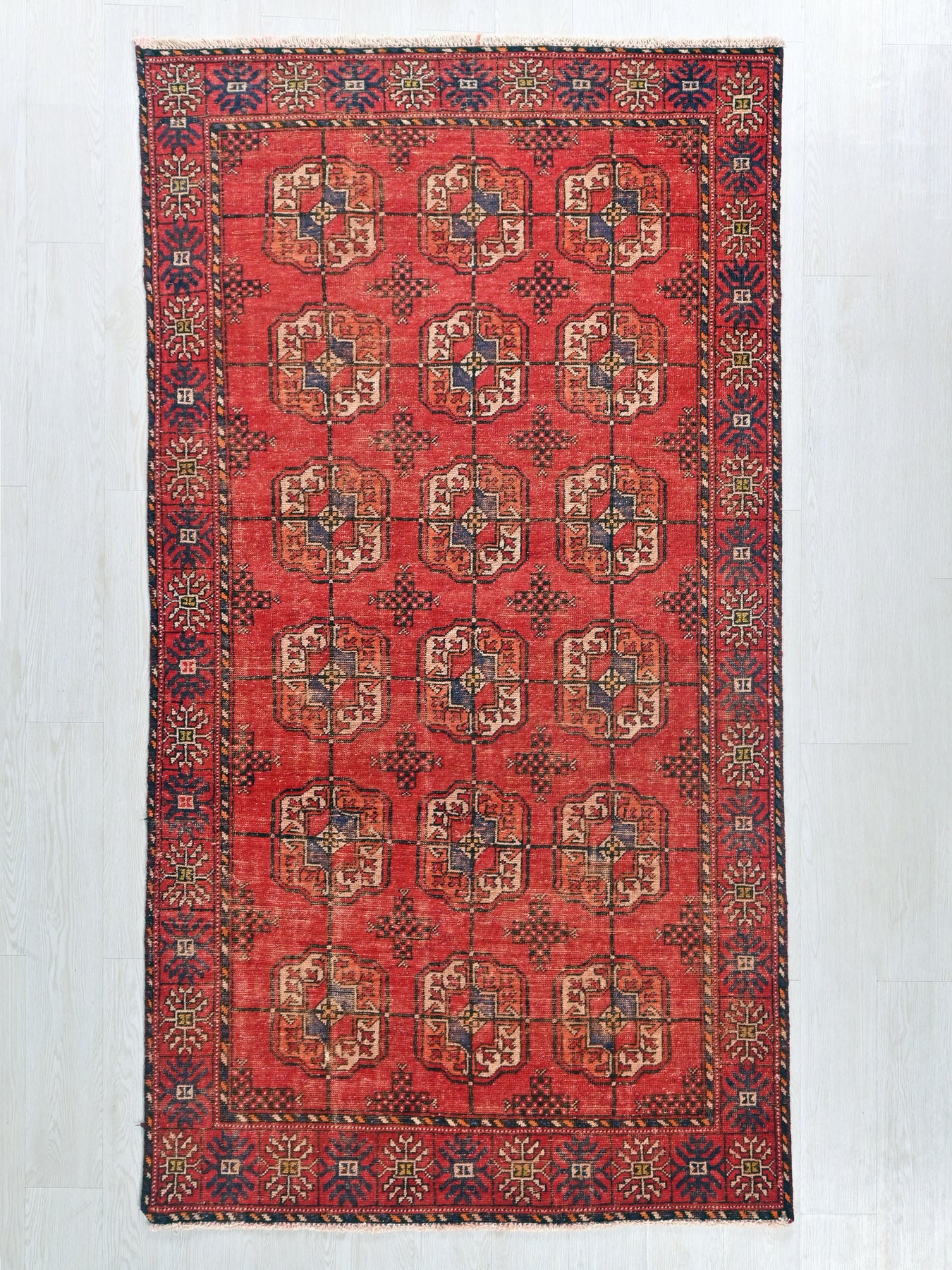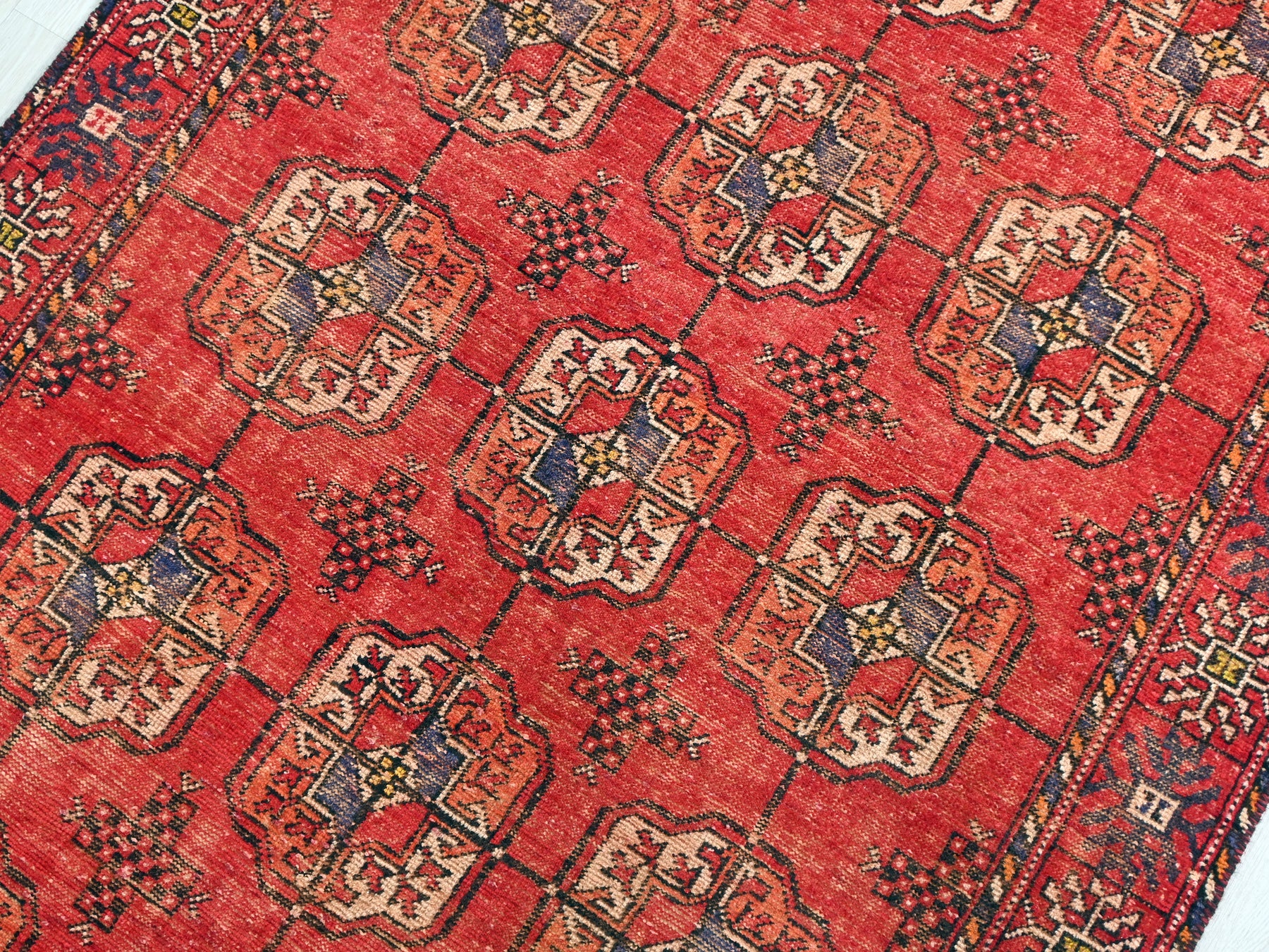 This is a hand-knotted, one-of-a-kind vintage rug. Due to the nature of this piece, there may be slight imperfections in its wear, shape, dimensions, and color. All of our rugs are professionally cleaned and repaired.