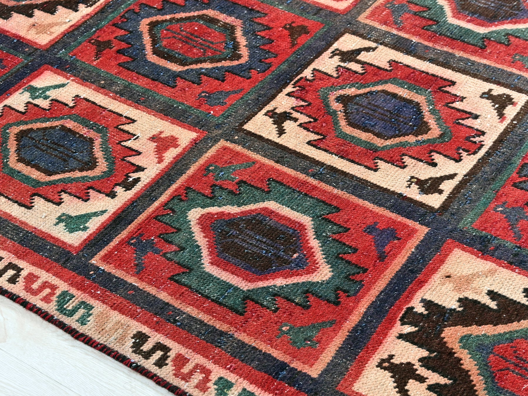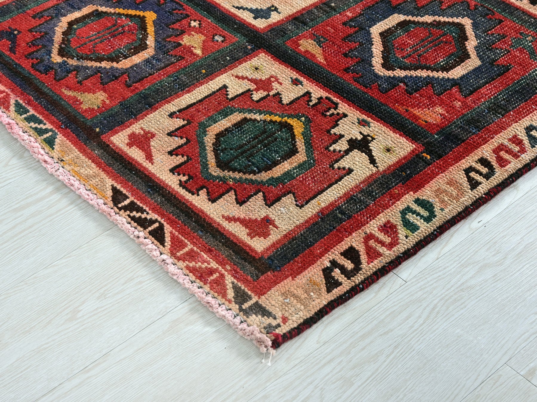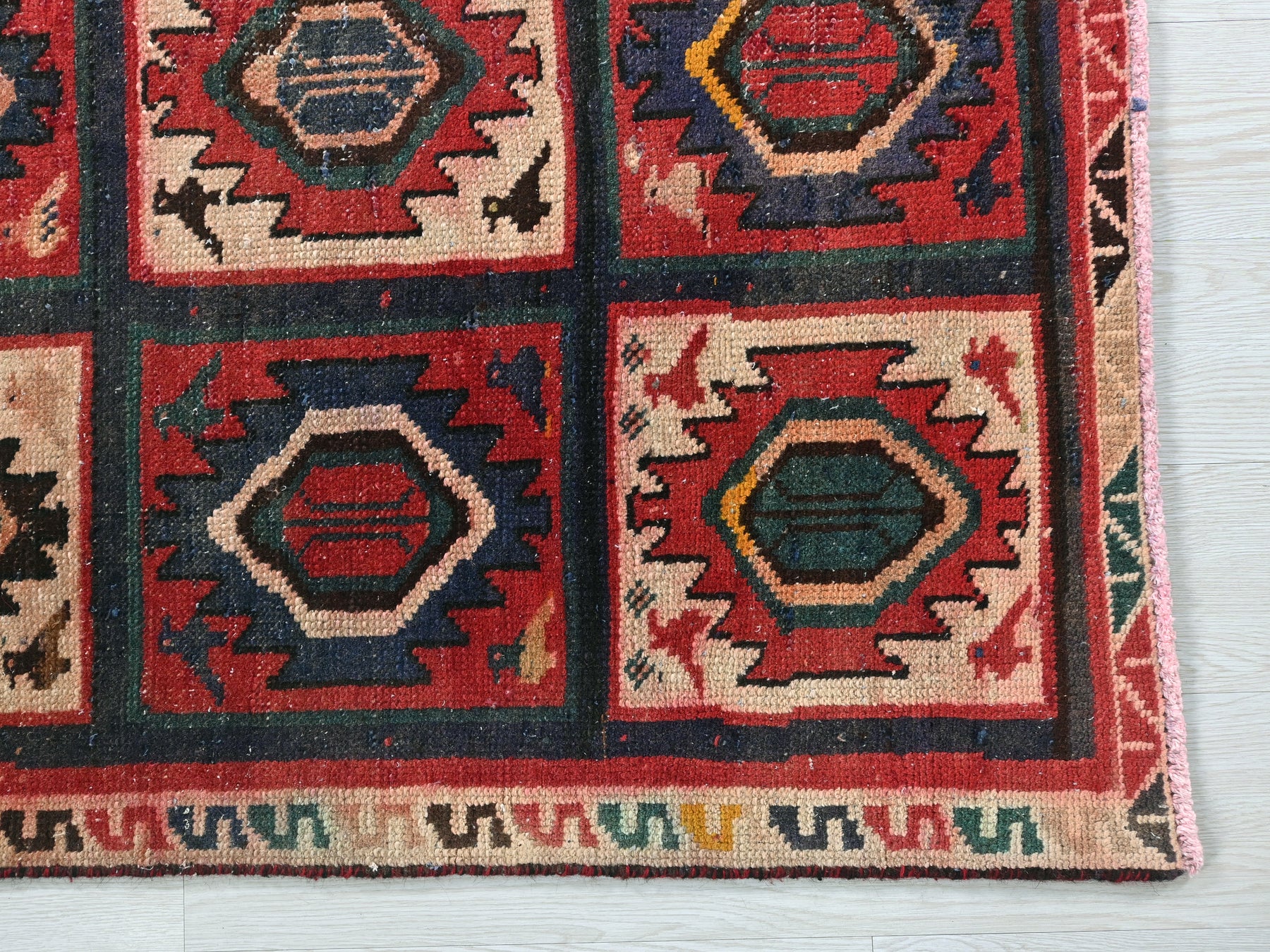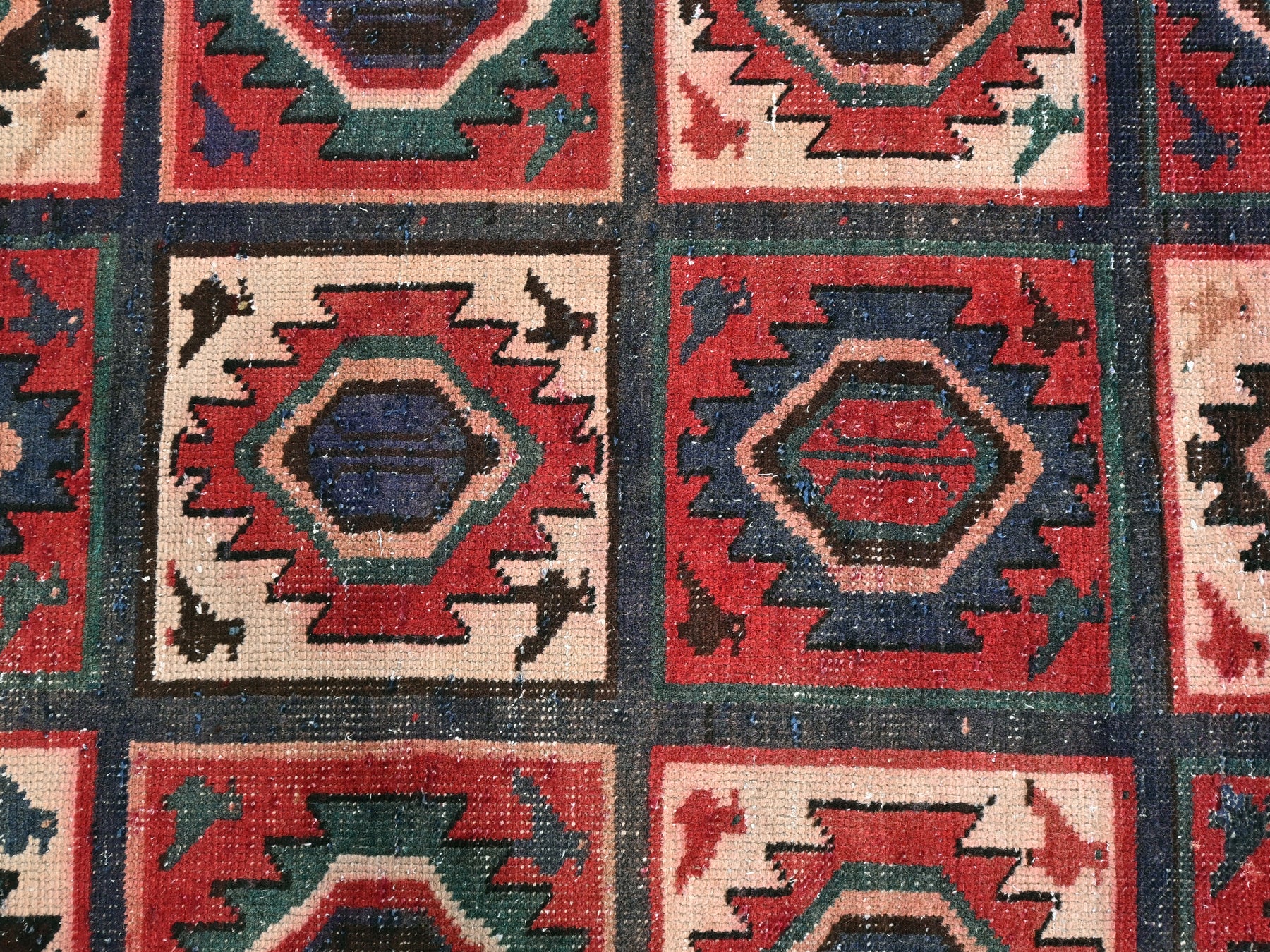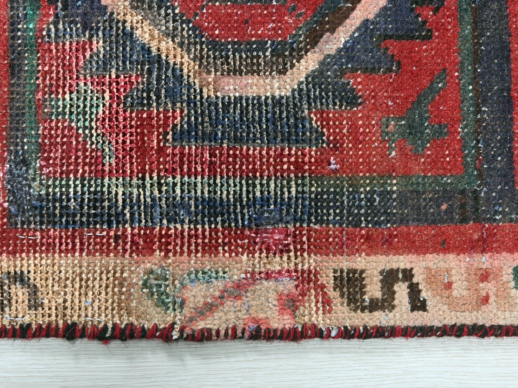 This is a hand-knotted, one-of-a-kind vintage rug. Due to the nature of this piece, there may be slight imperfections in its wear, shape, dimensions, and color. All of our rugs are professionally cleaned and repaired.