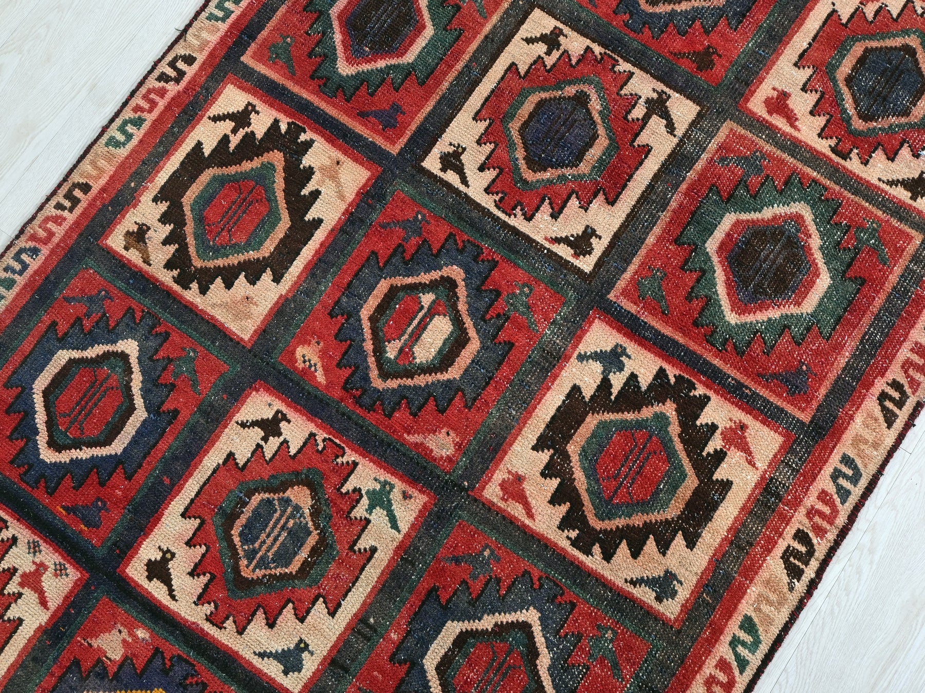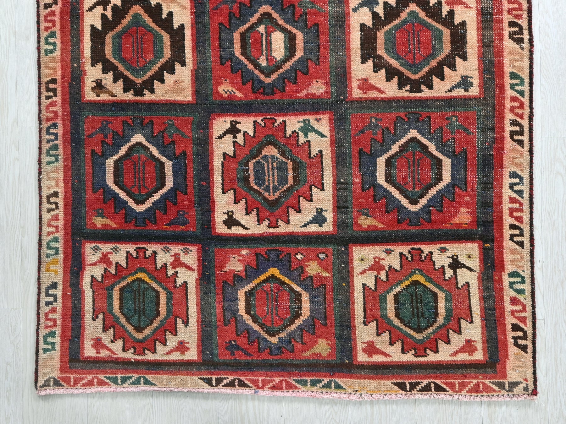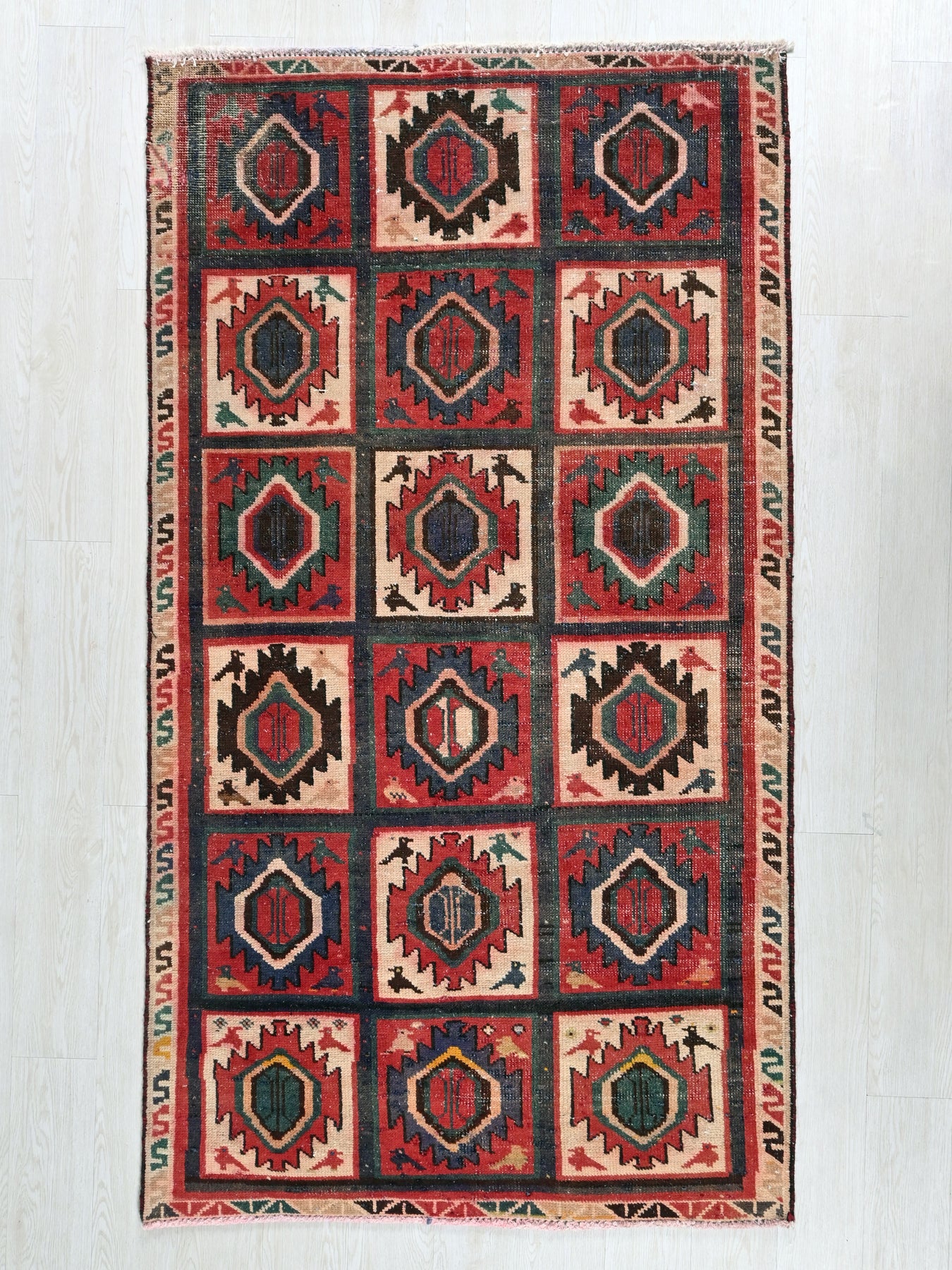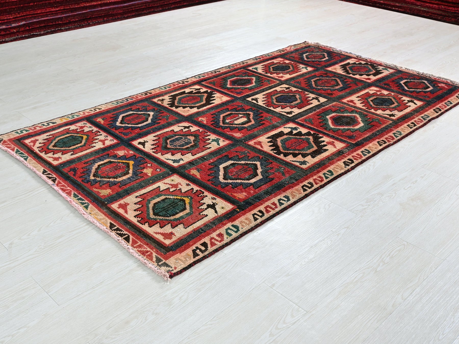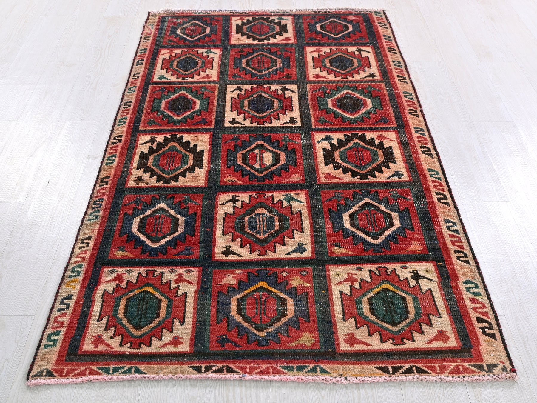 This is a hand-knotted, one-of-a-kind vintage rug. Due to the nature of this piece, there may be slight imperfections in its wear, shape, dimensions, and color. All of our rugs are professionally cleaned and repaired.