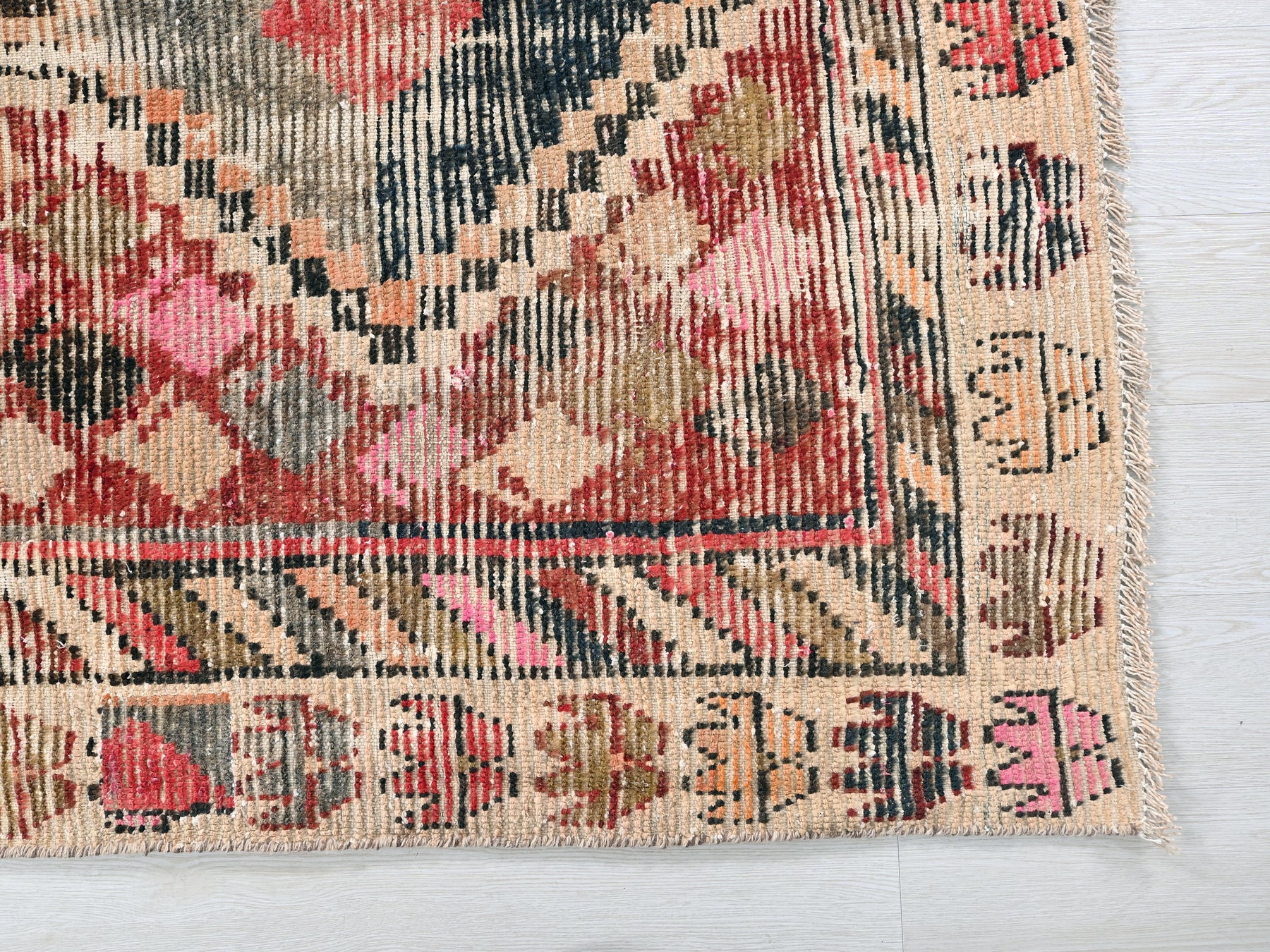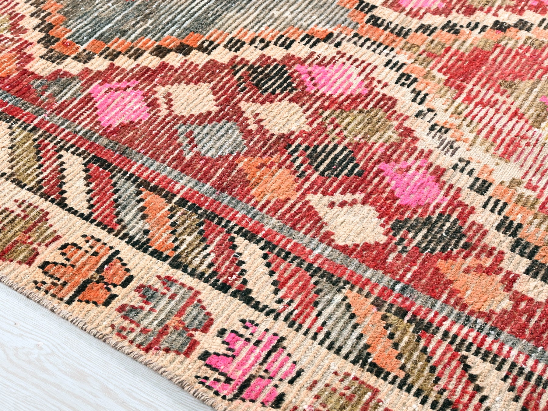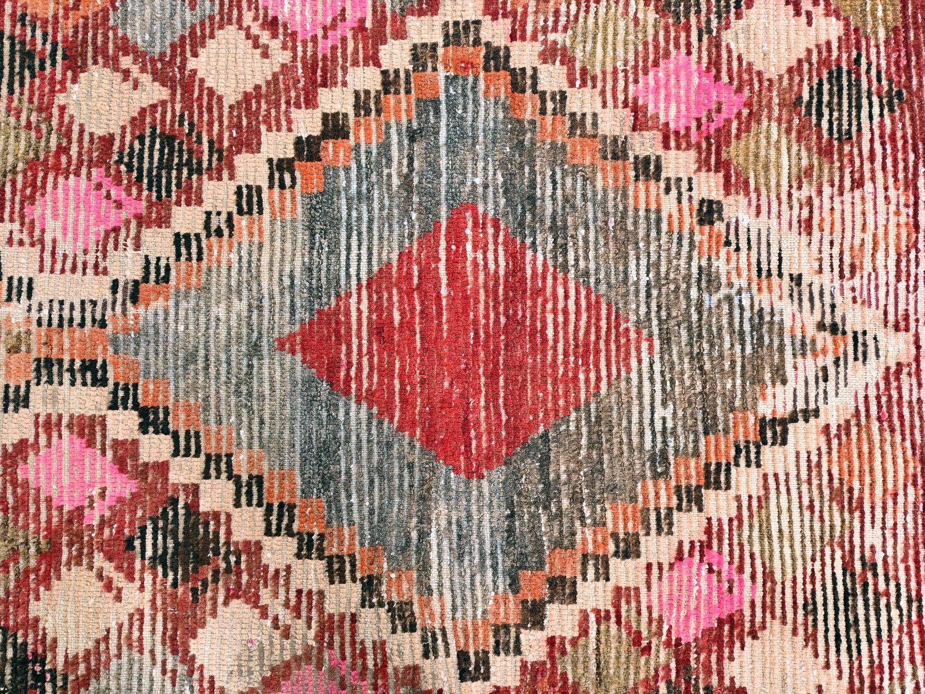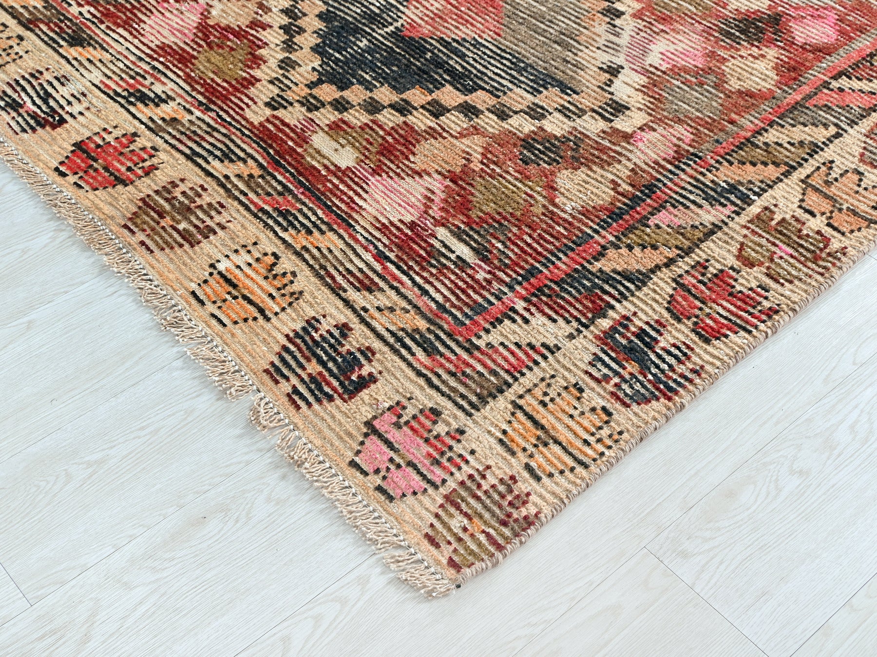 This is a hand-knotted, one-of-a-kind vintage rug. Due to the nature of this piece, there may be slight imperfections in its wear, shape, dimensions, and color. All of our rugs are professionally cleaned and repaired.