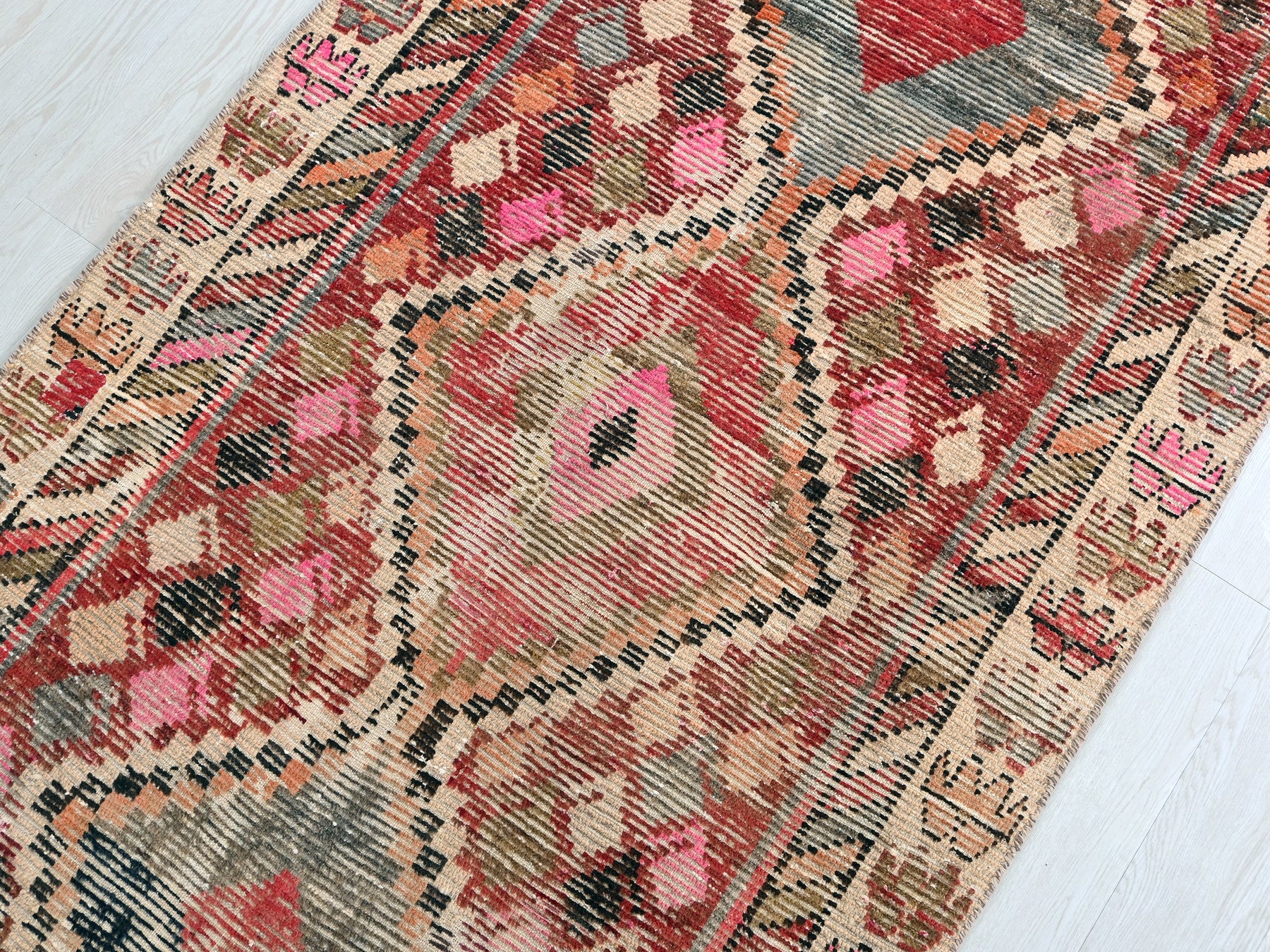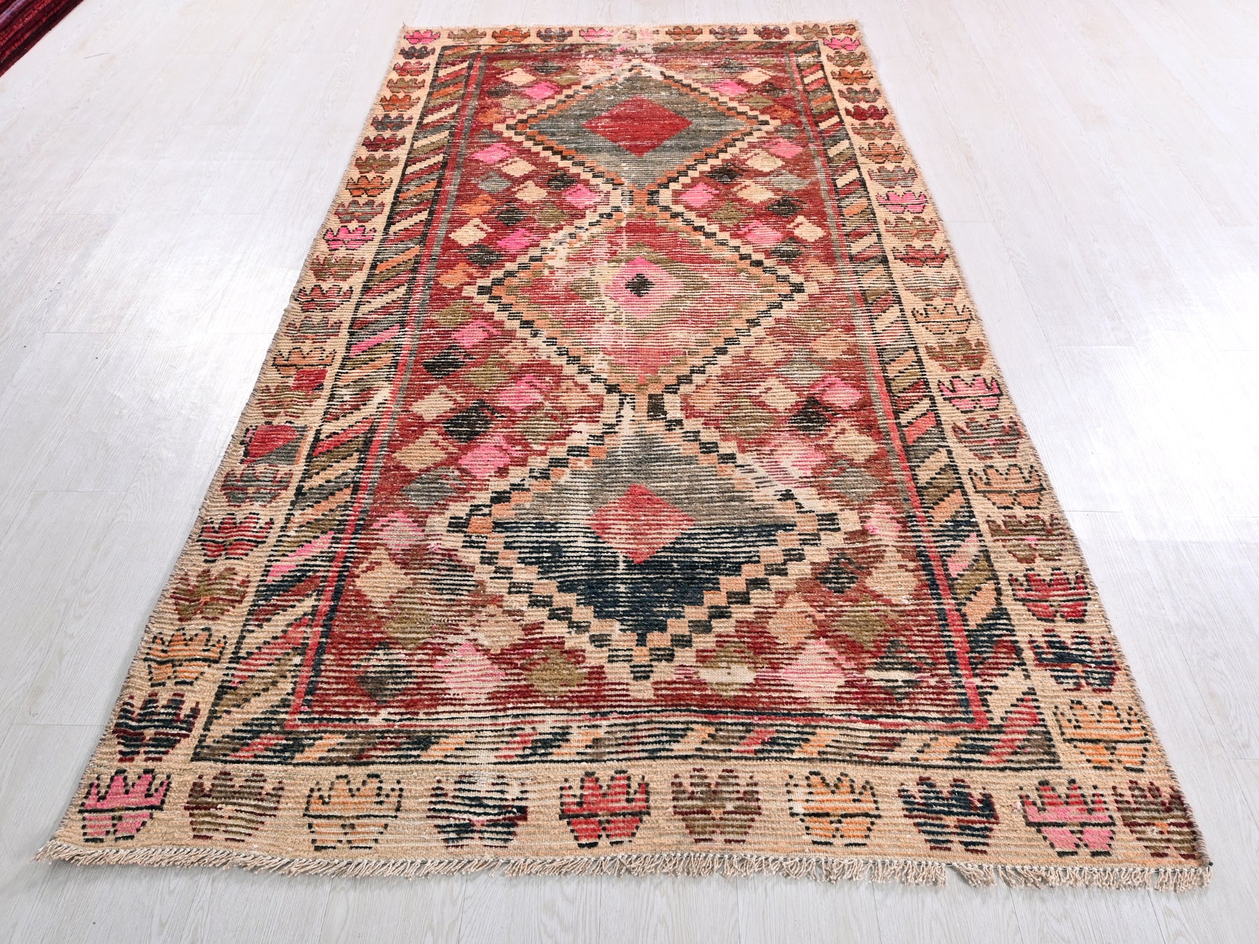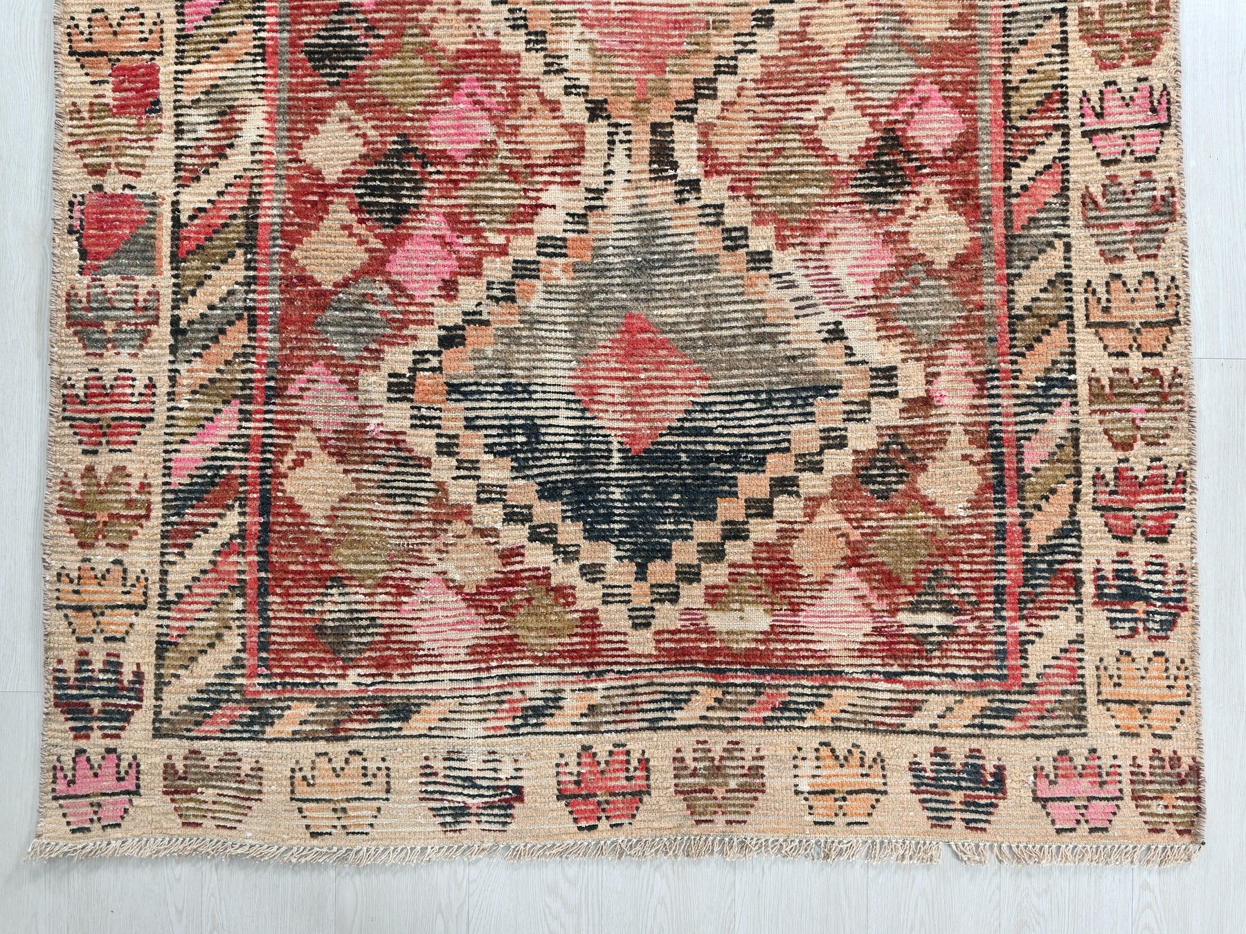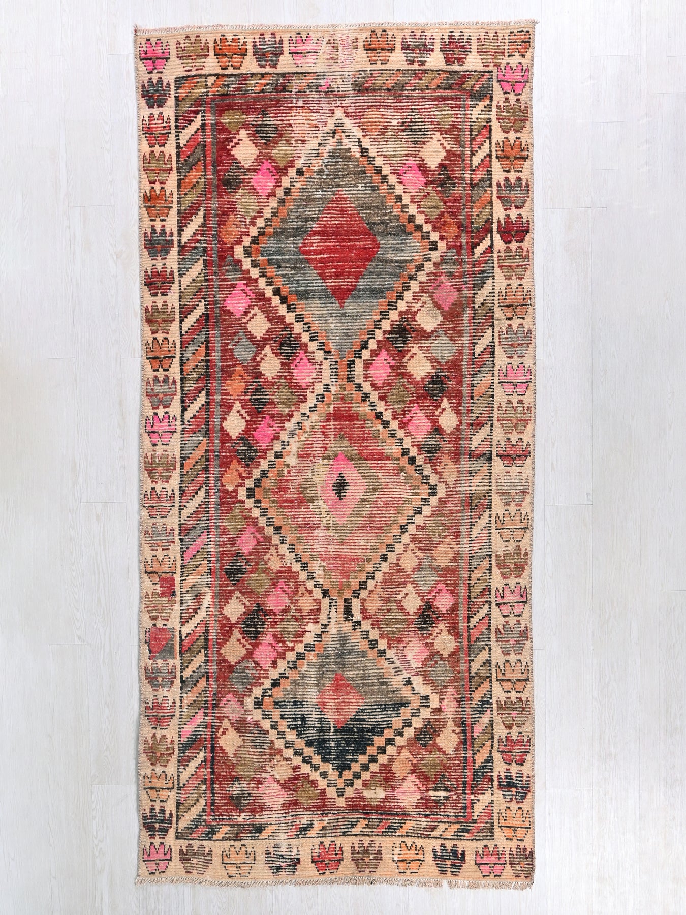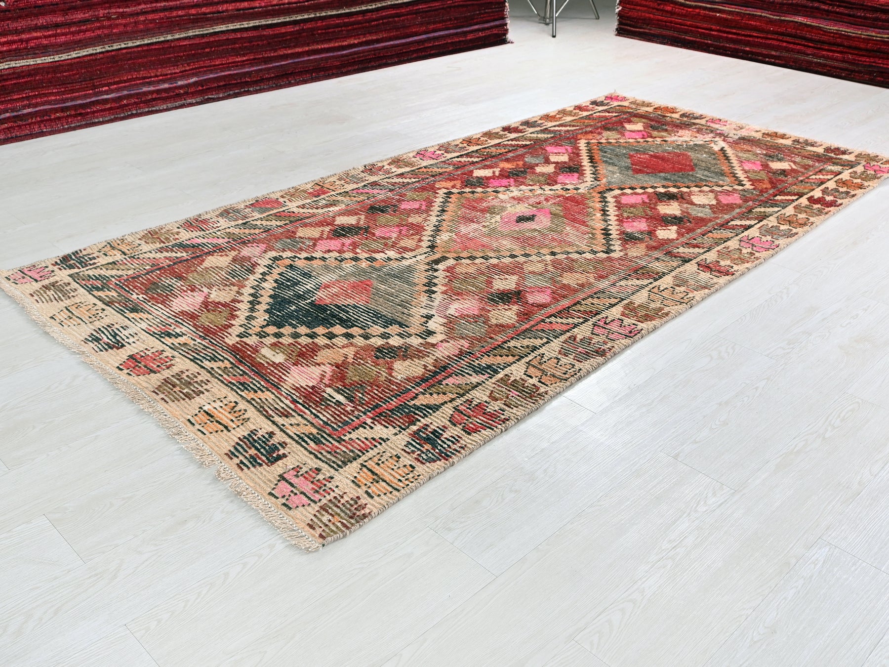 This is a hand-knotted, one-of-a-kind vintage rug. Due to the nature of this piece, there may be slight imperfections in its wear, shape, dimensions, and color. All of our rugs are professionally cleaned and repaired.
