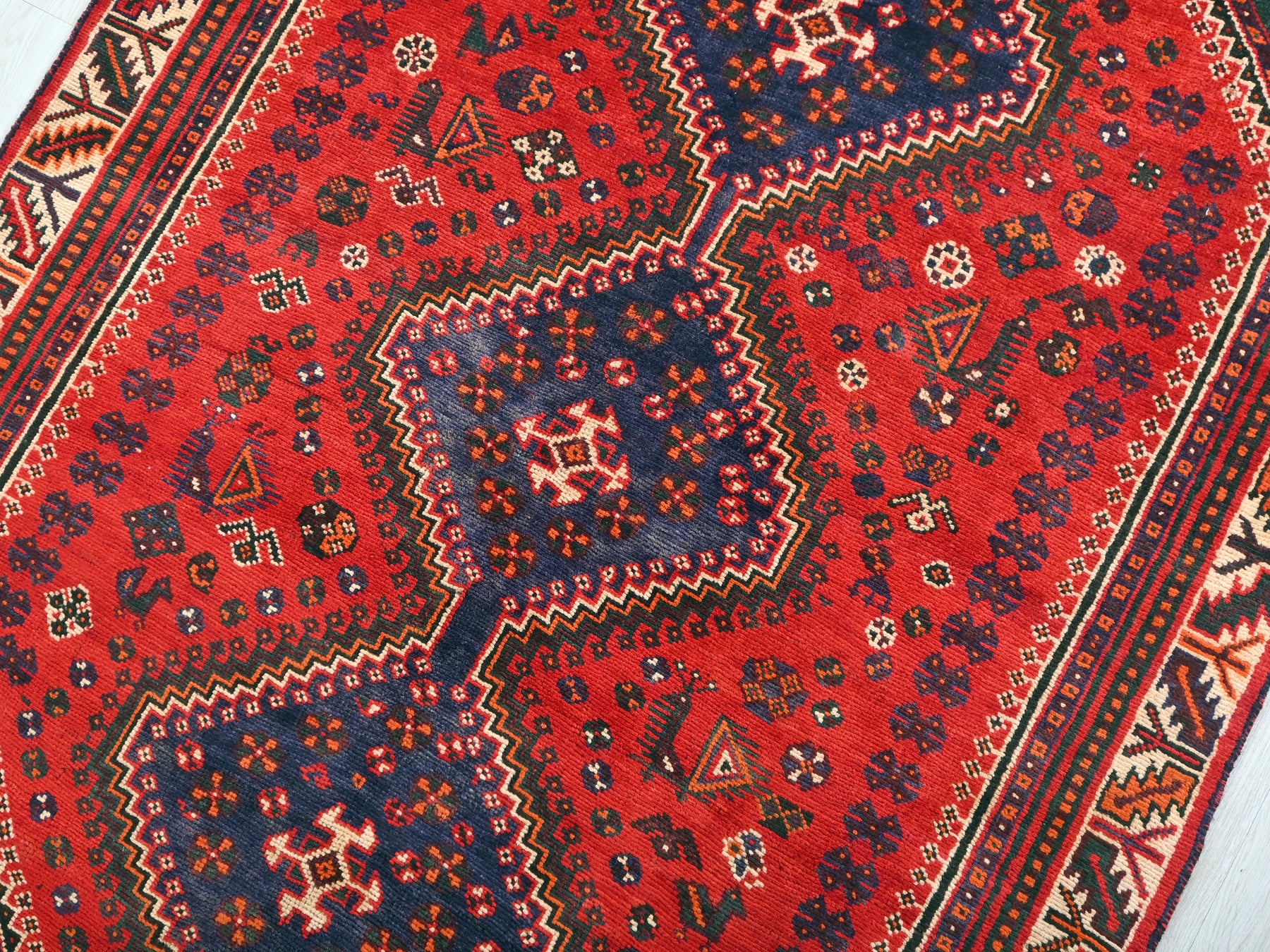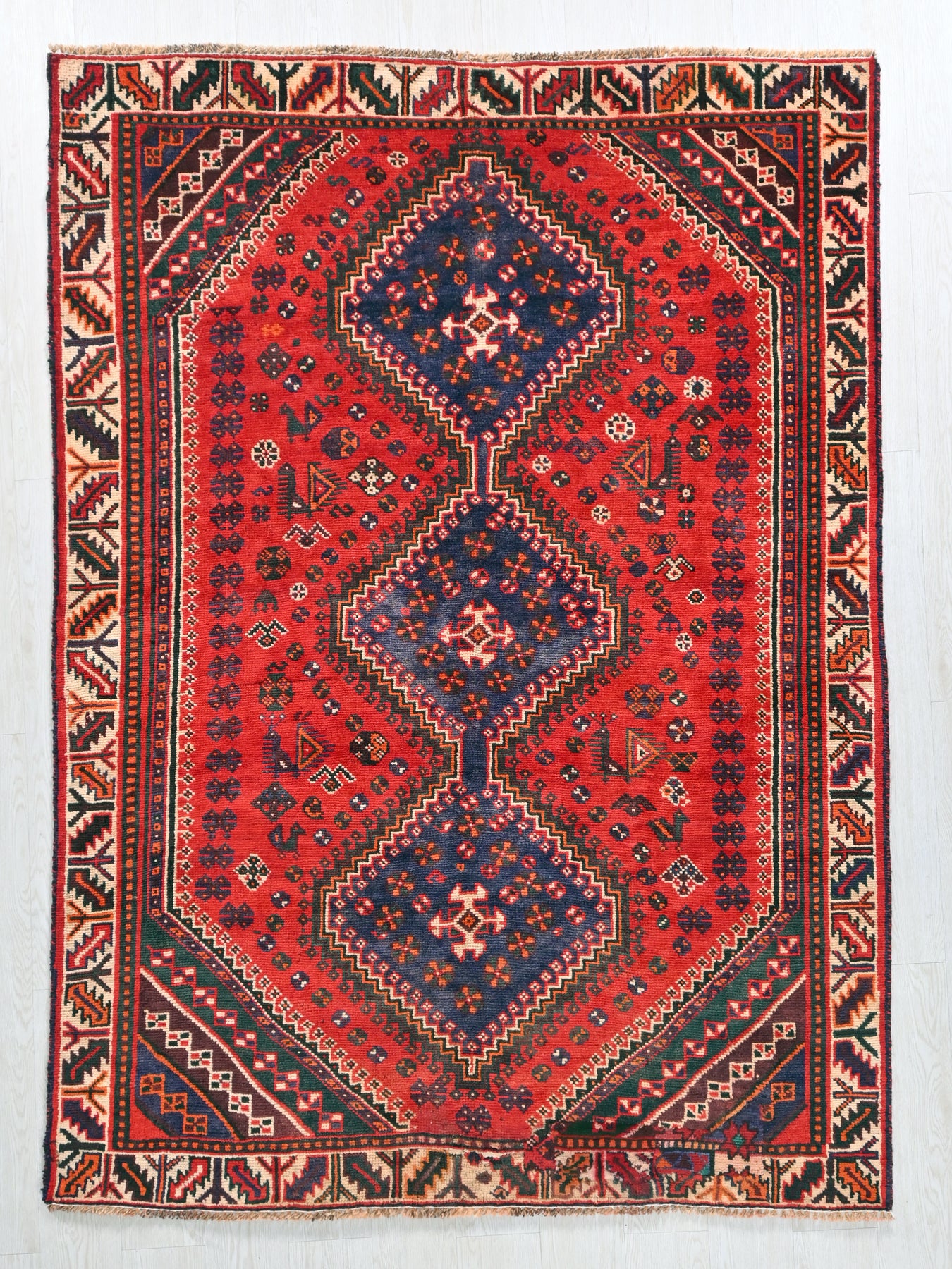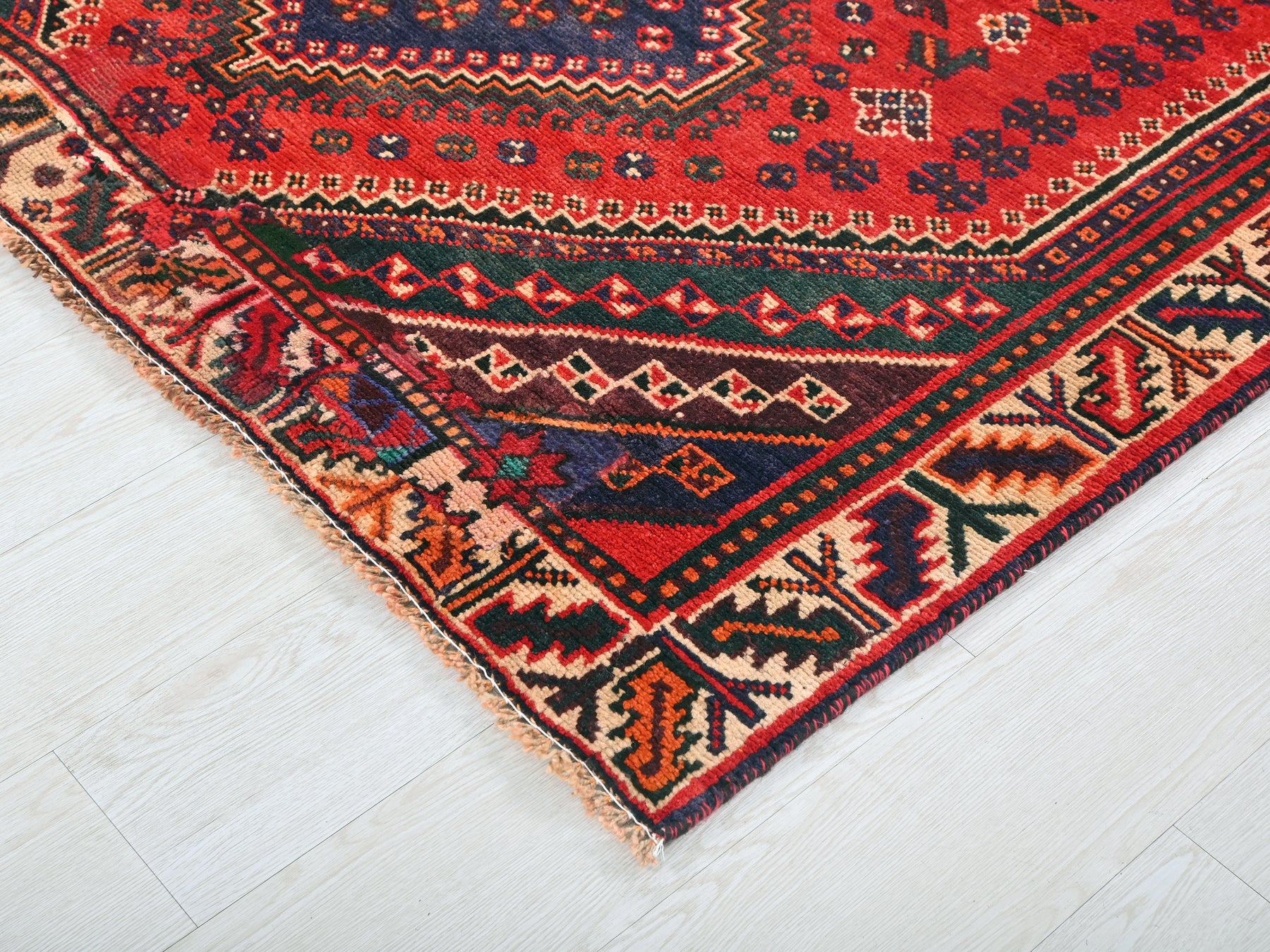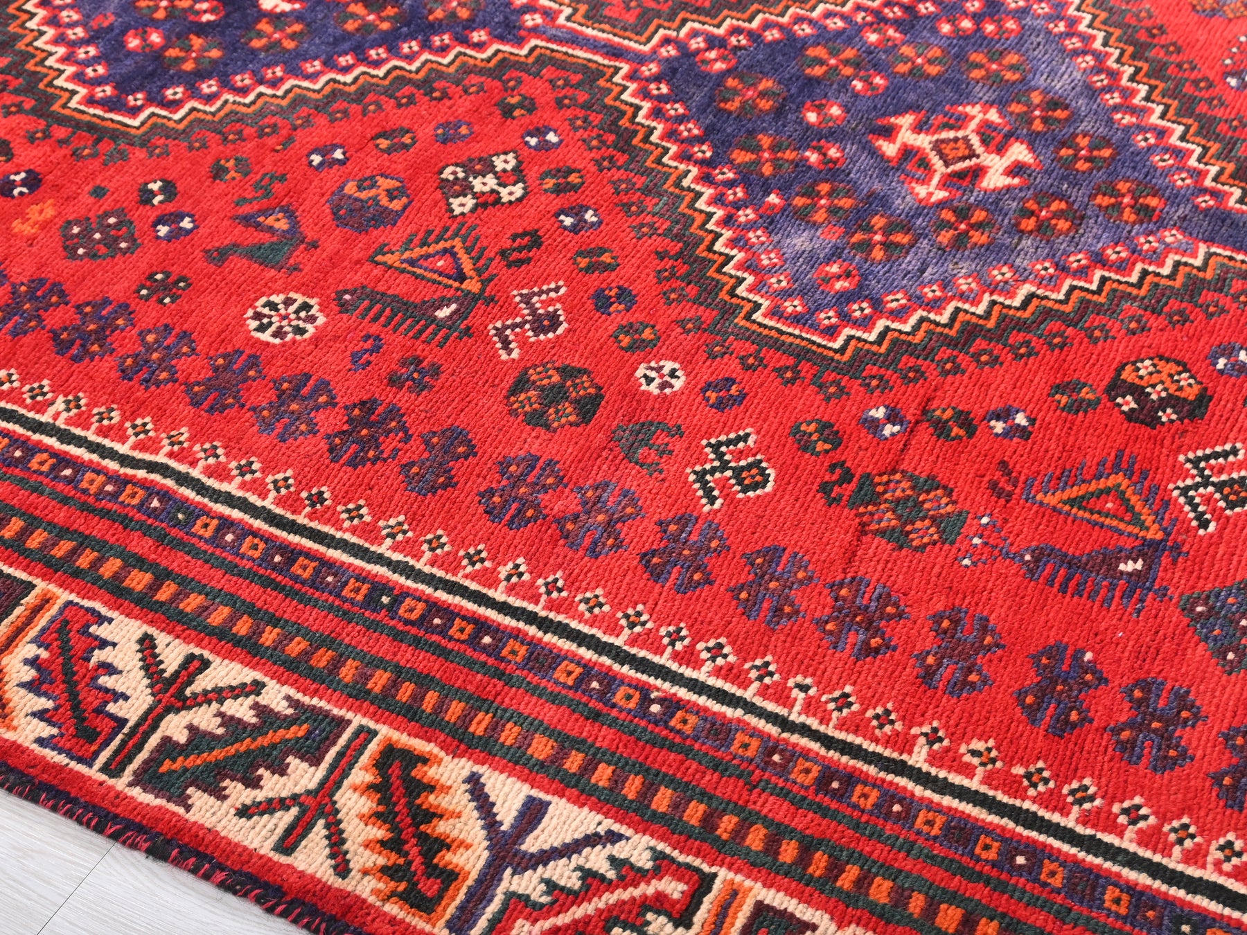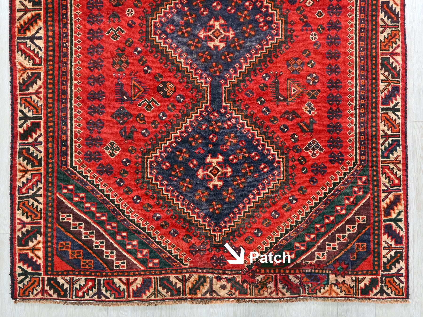 This is a hand-knotted, one-of-a-kind vintage rug. Due to the nature of this piece, there may be slight imperfections in its wear, shape, dimensions, and color. All of our rugs are professionally cleaned and repaired.
