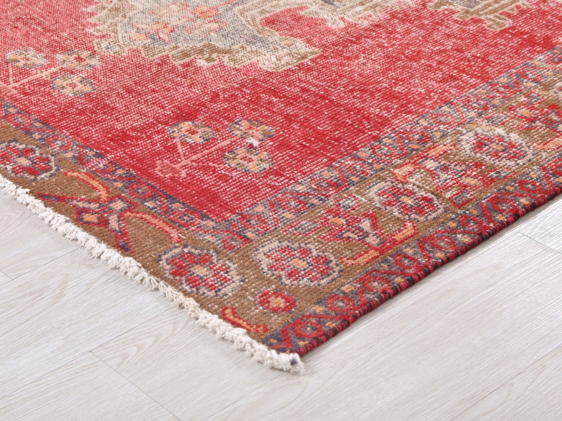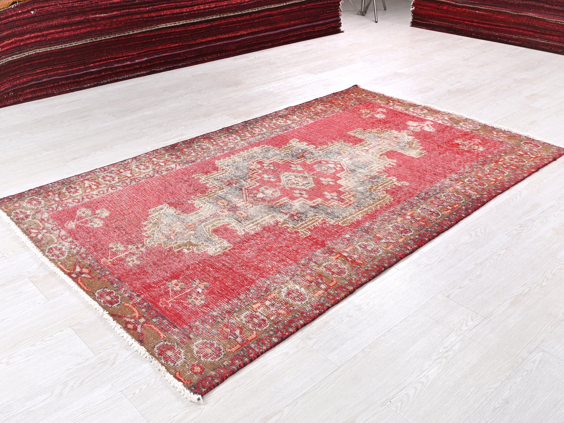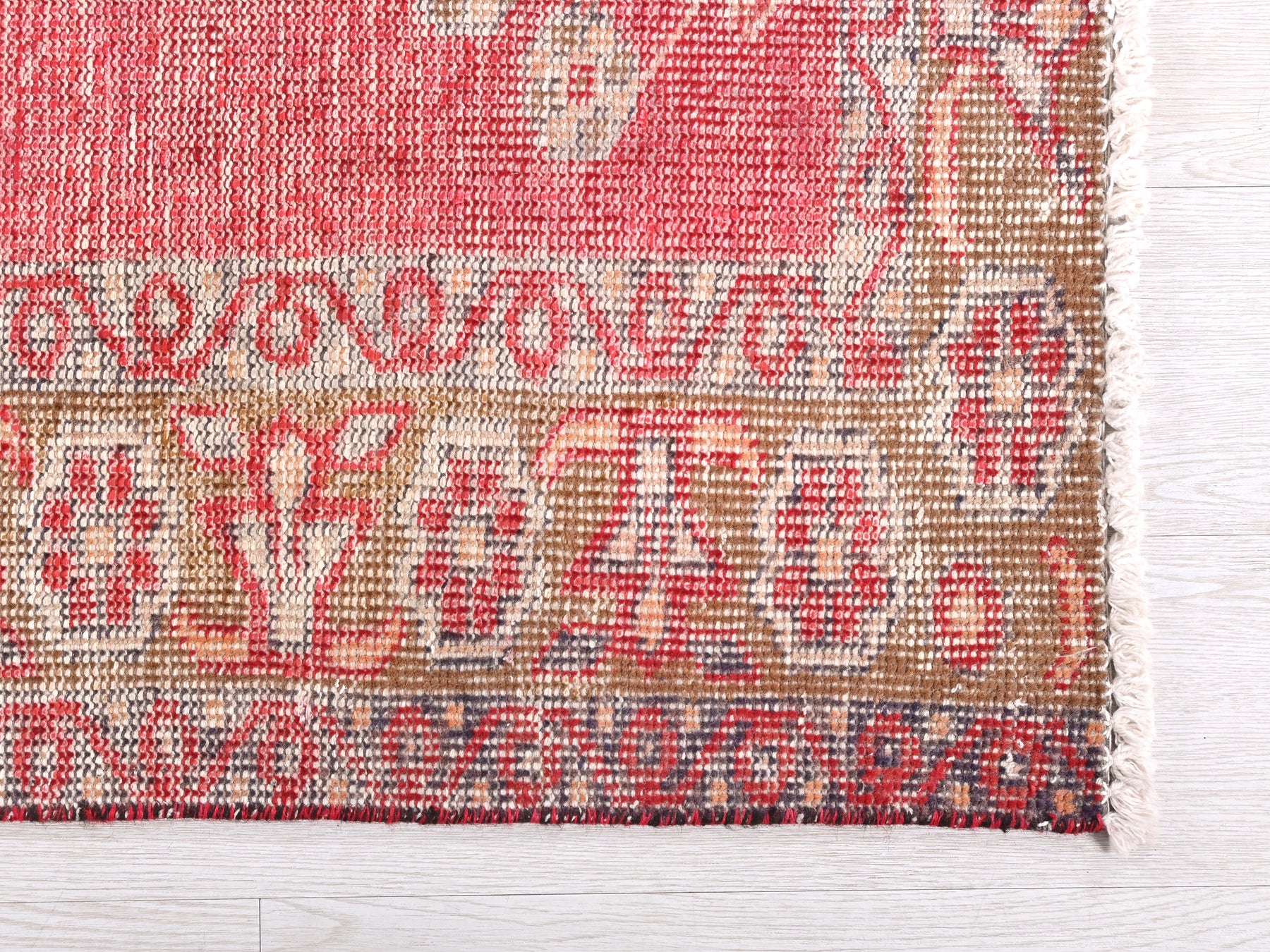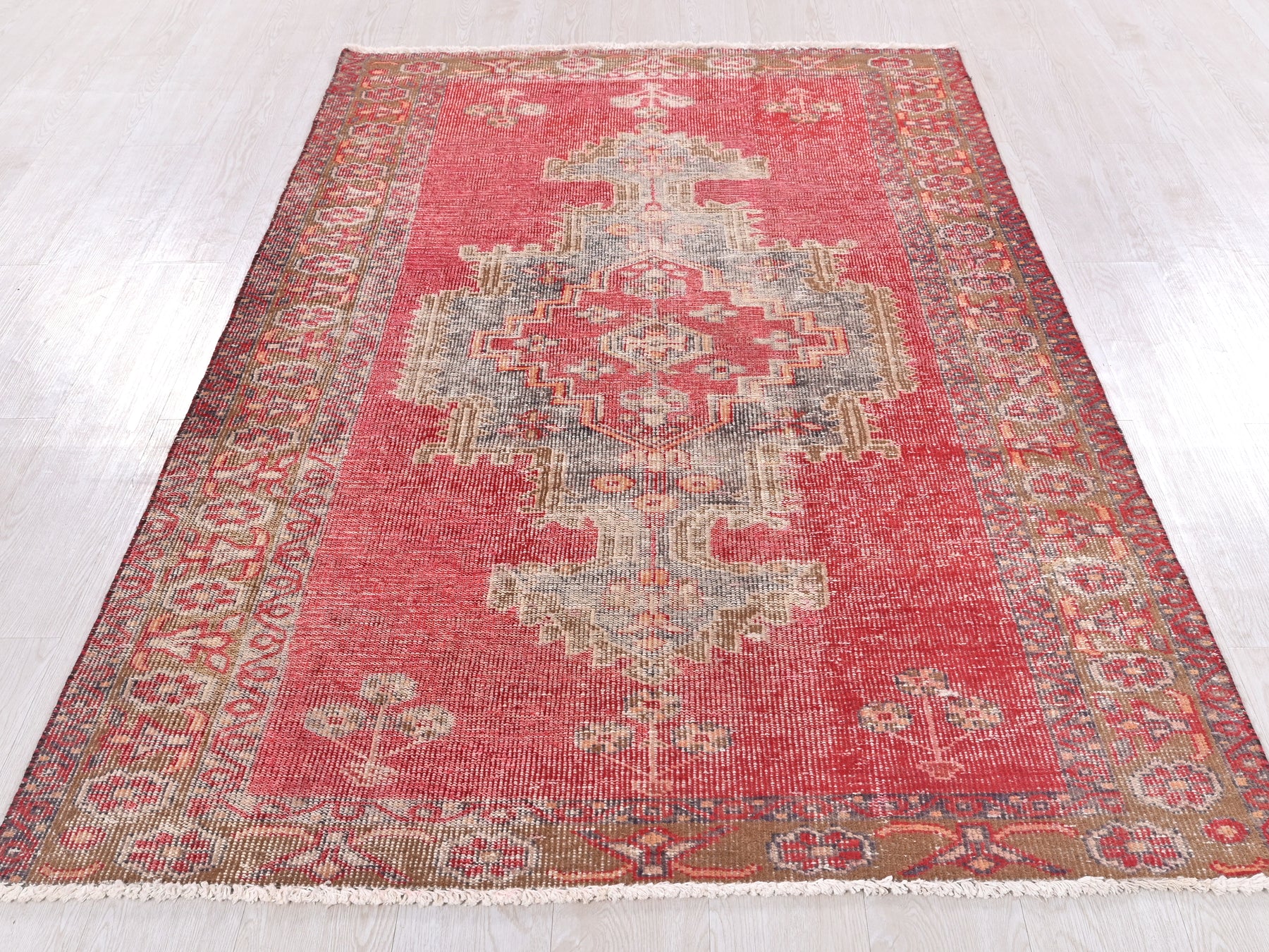 This is a hand-knotted, one-of-a-kind vintage rug. Due to the nature of this piece, there may be slight imperfections in its wear, shape, dimensions, and color. All of our rugs are professionally cleaned and repaired.