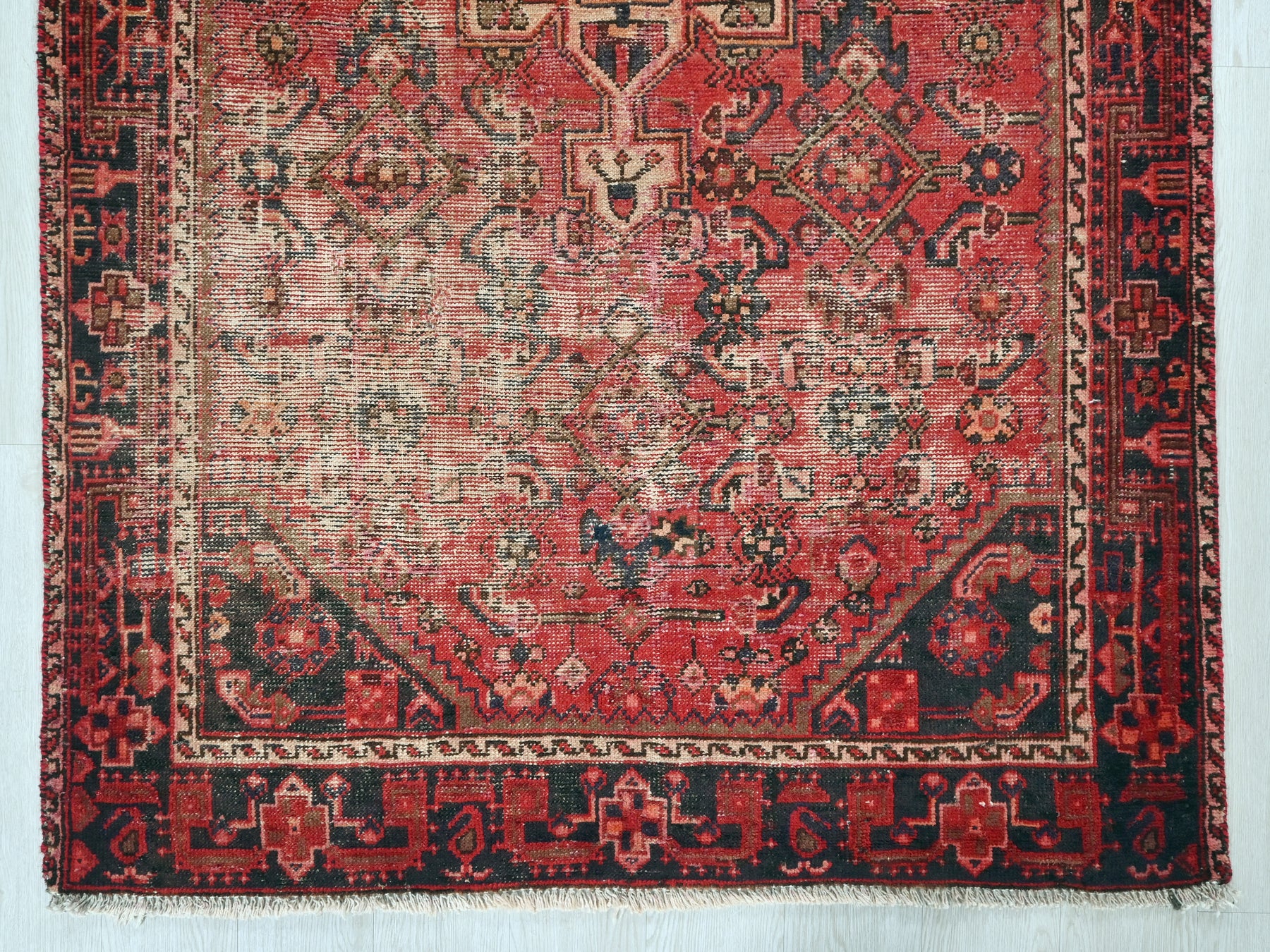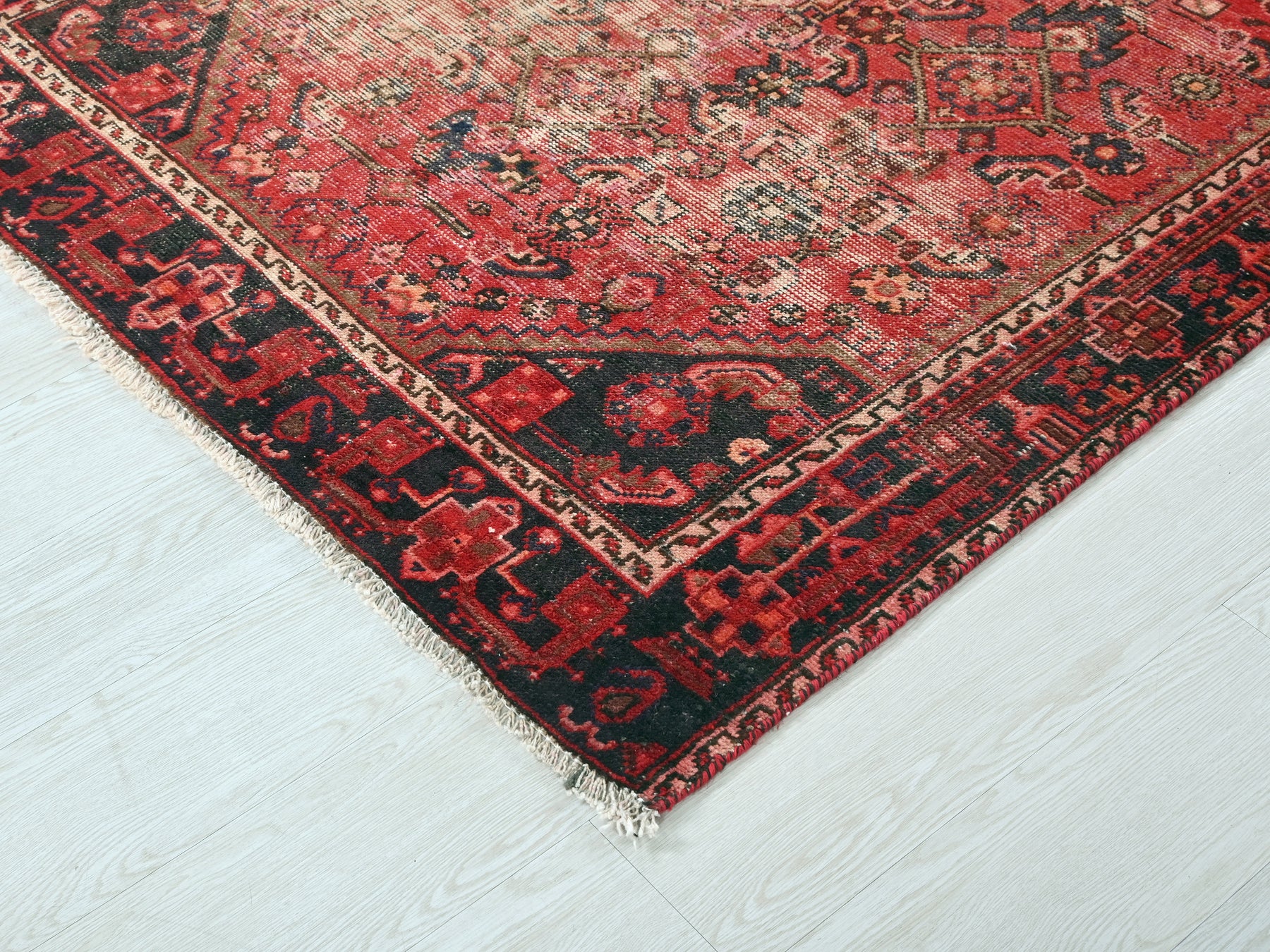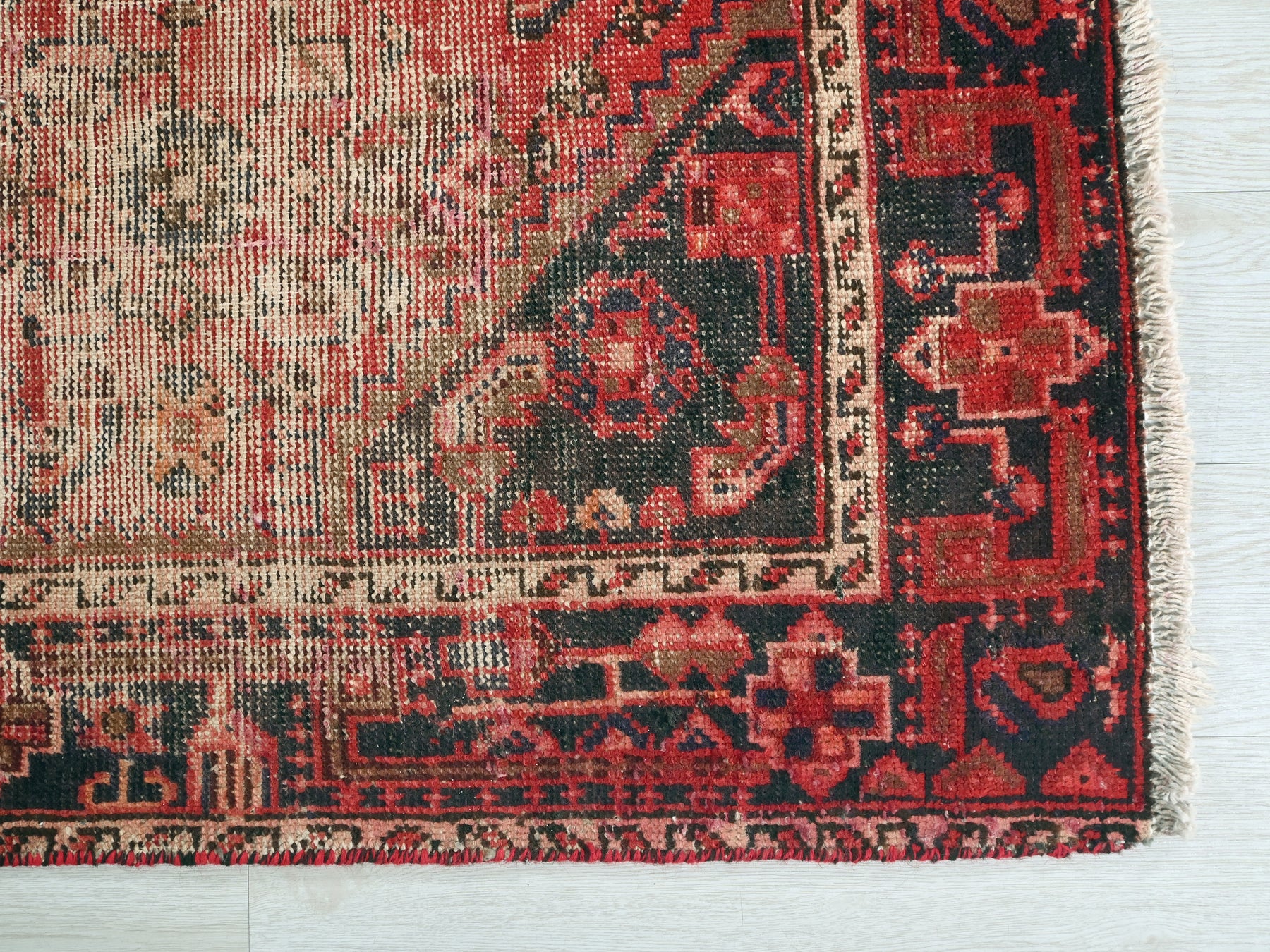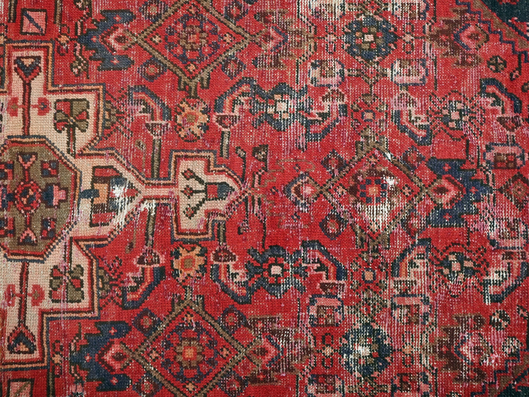 This is a hand-knotted, one-of-a-kind vintage rug. Due to the nature of this piece, there may be slight imperfections in its wear, shape, dimensions, and color. All of our rugs are professionally cleaned and repaired.