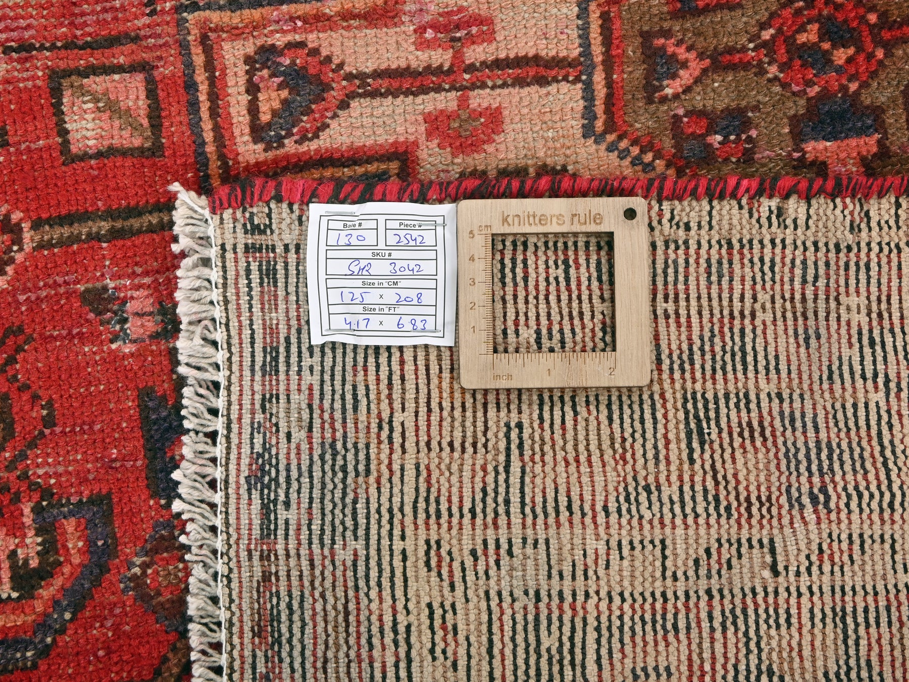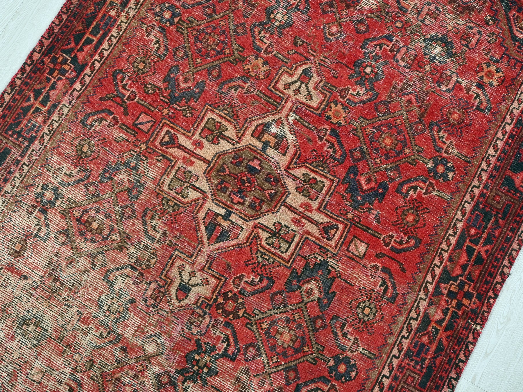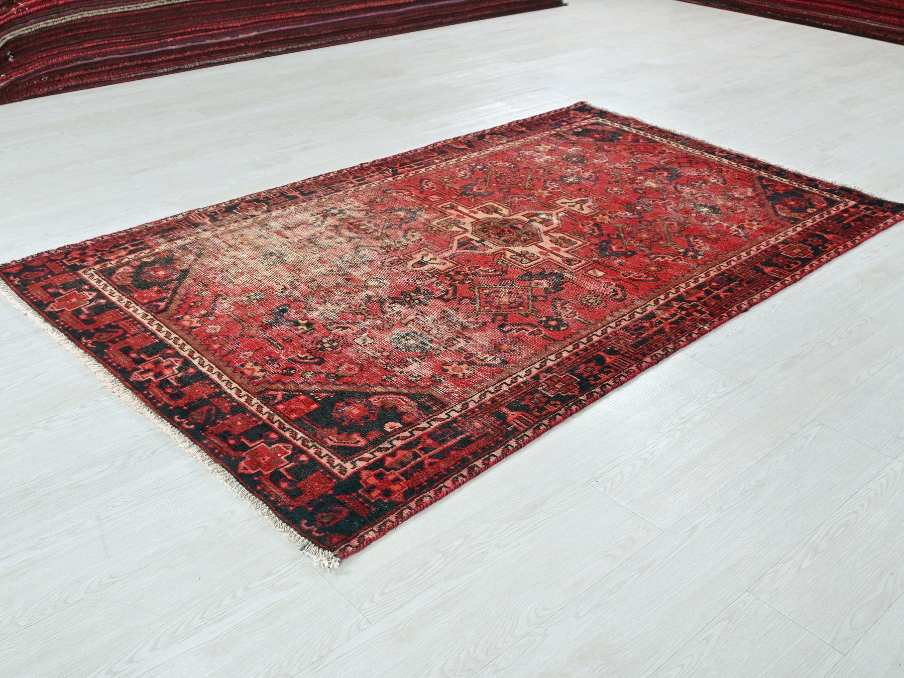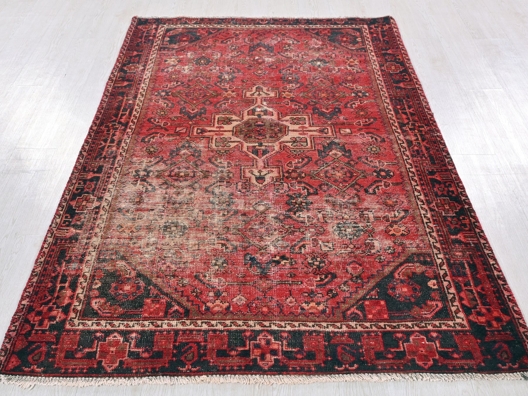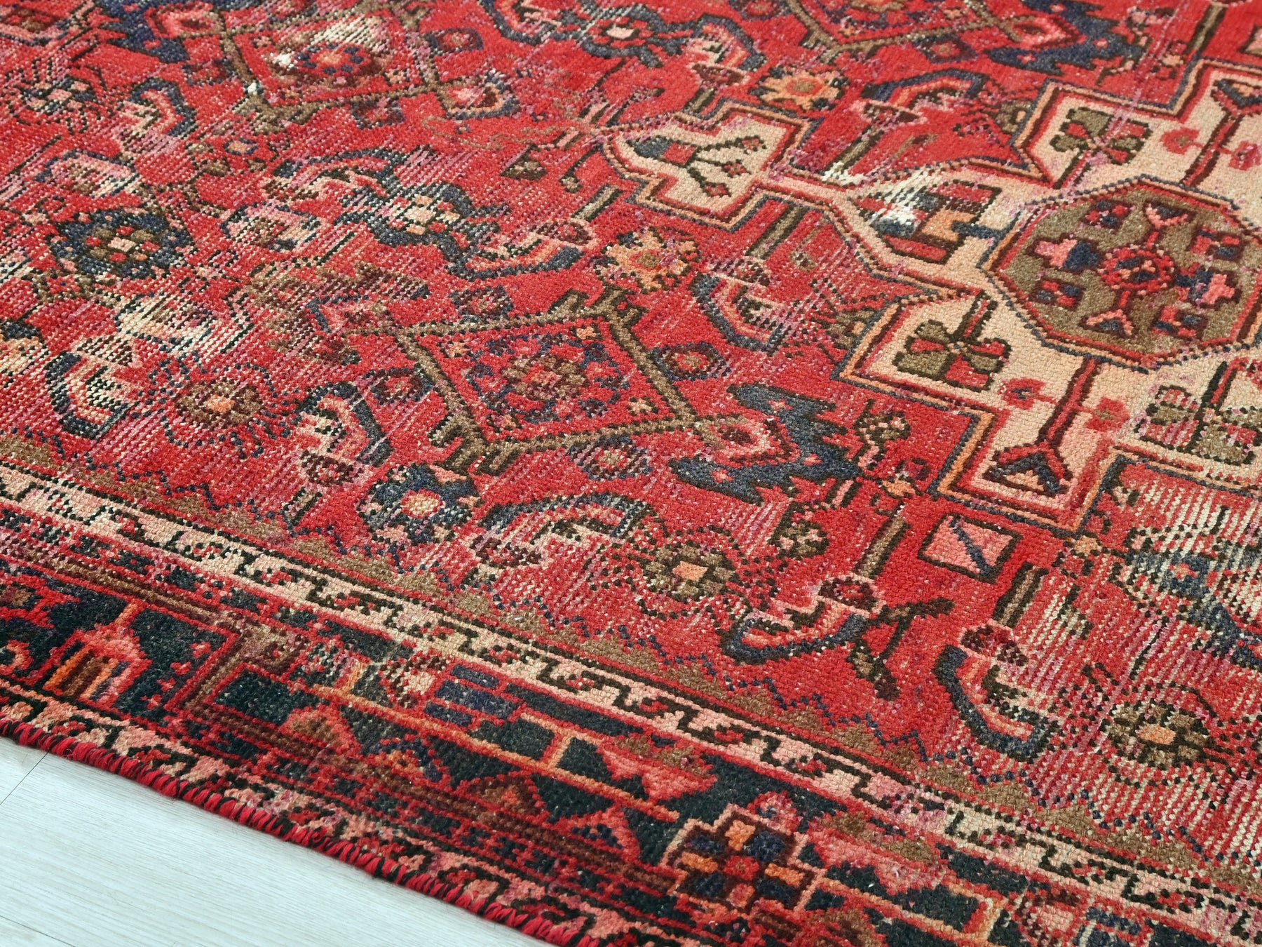 This is a hand-knotted, one-of-a-kind vintage rug. Due to the nature of this piece, there may be slight imperfections in its wear, shape, dimensions, and color. All of our rugs are professionally cleaned and repaired.