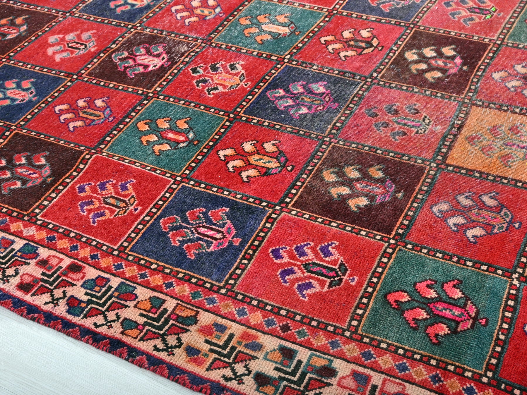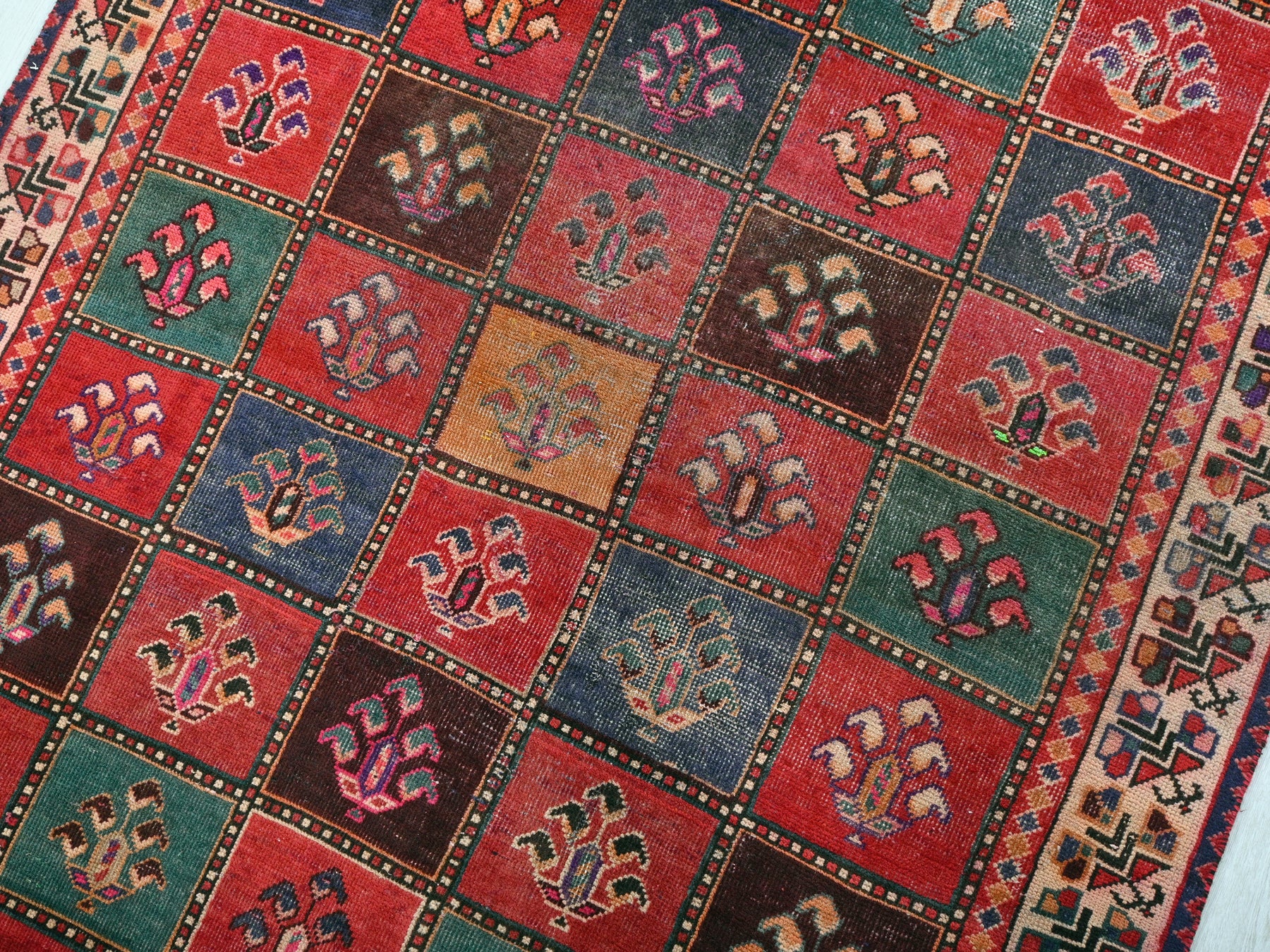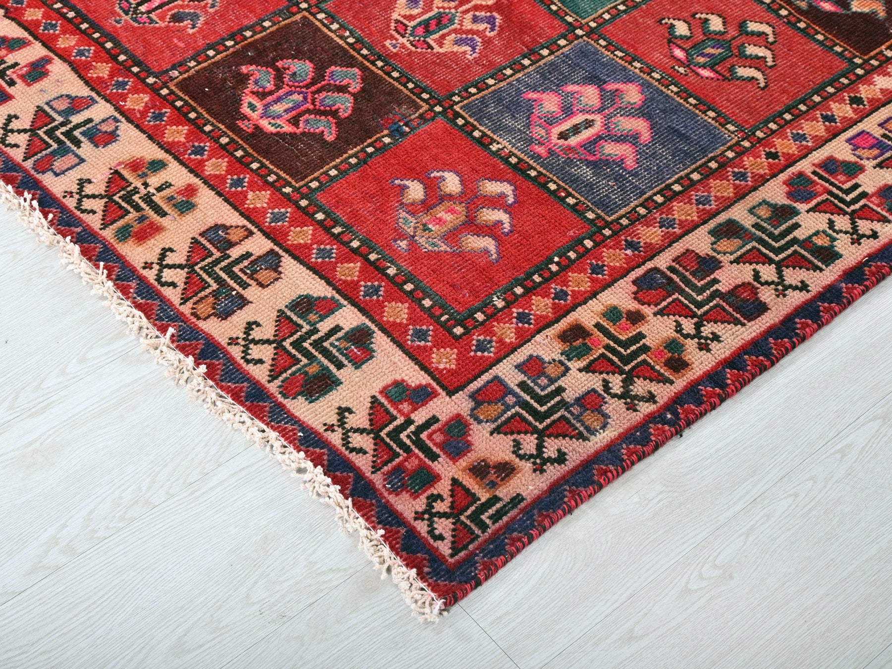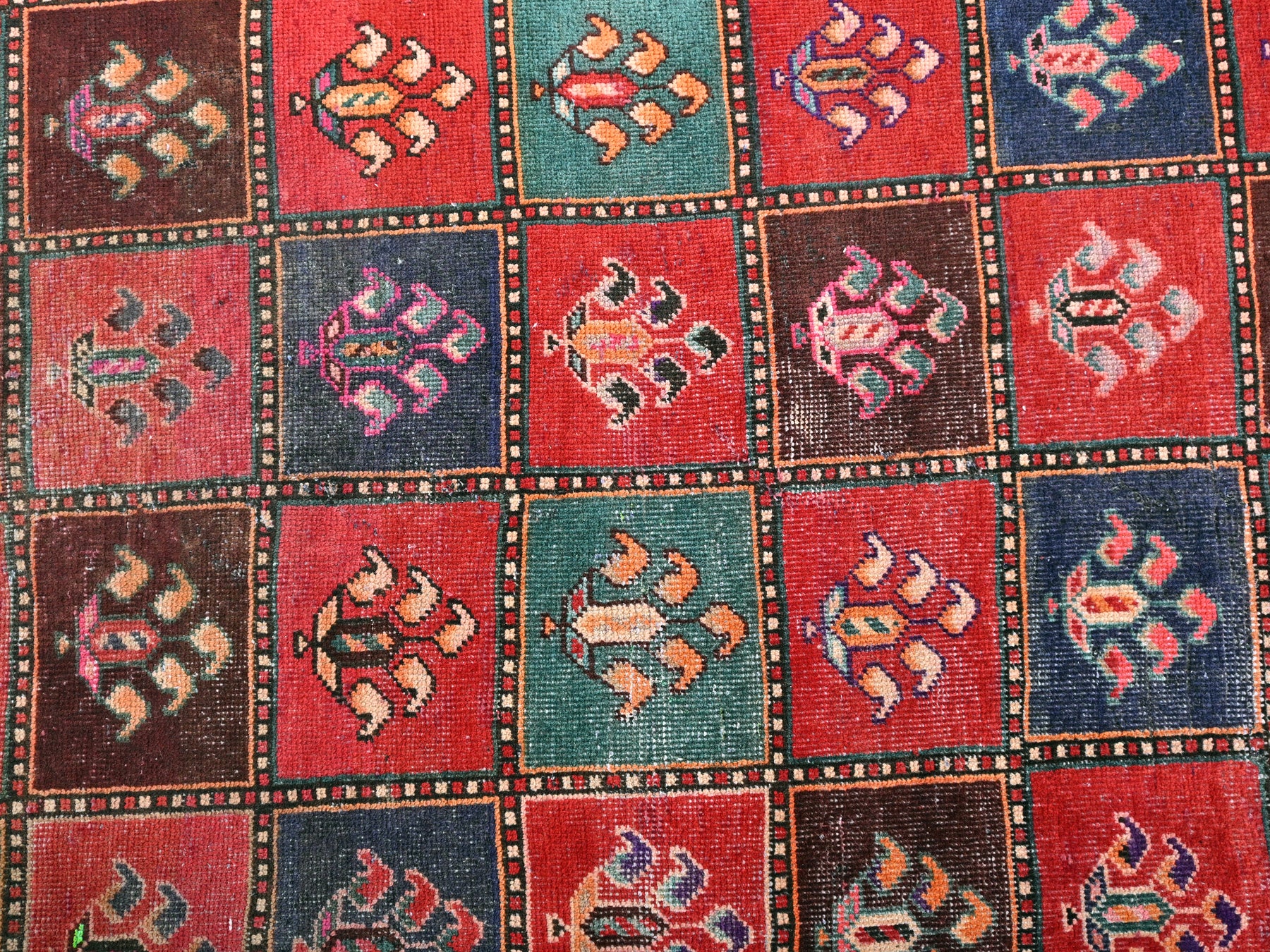 This is a hand-knotted, one-of-a-kind vintage rug. Due to the nature of this piece, there may be slight imperfections in its wear, shape, dimensions, and color. All of our rugs are professionally cleaned and repaired.