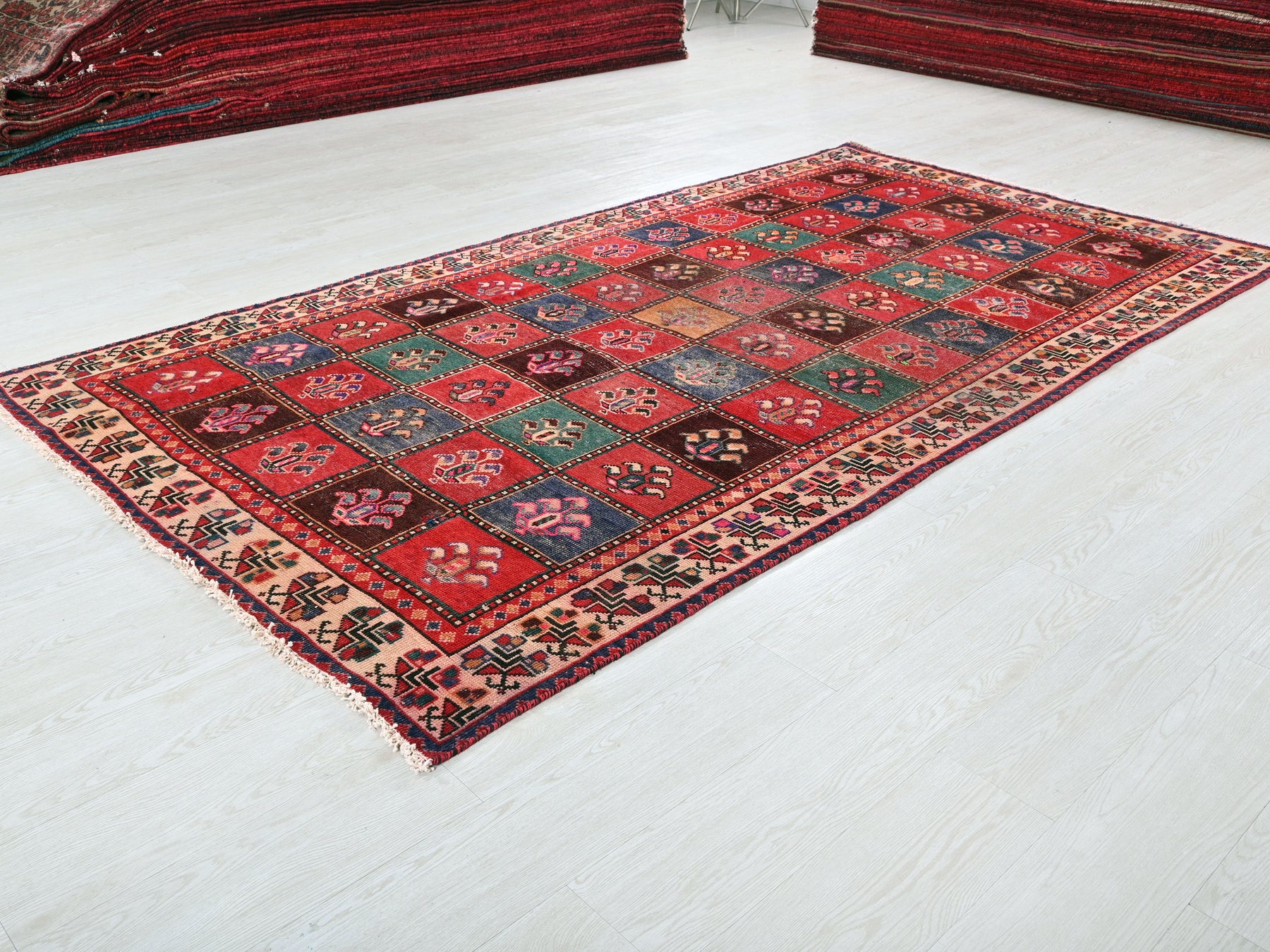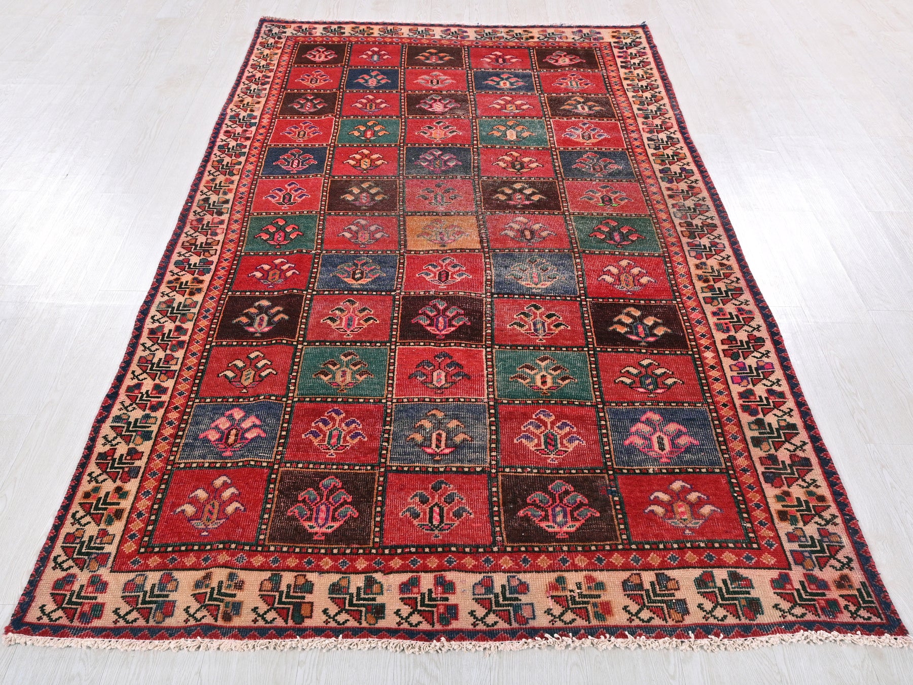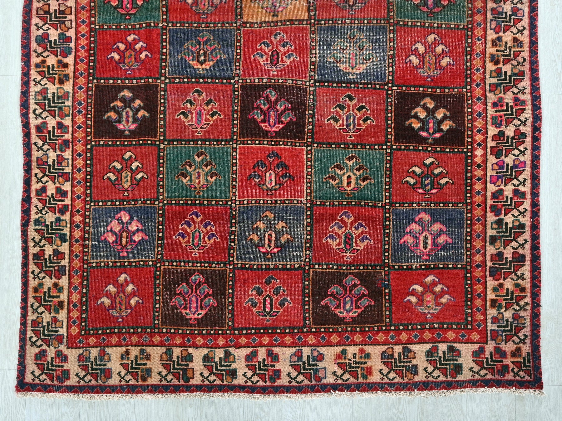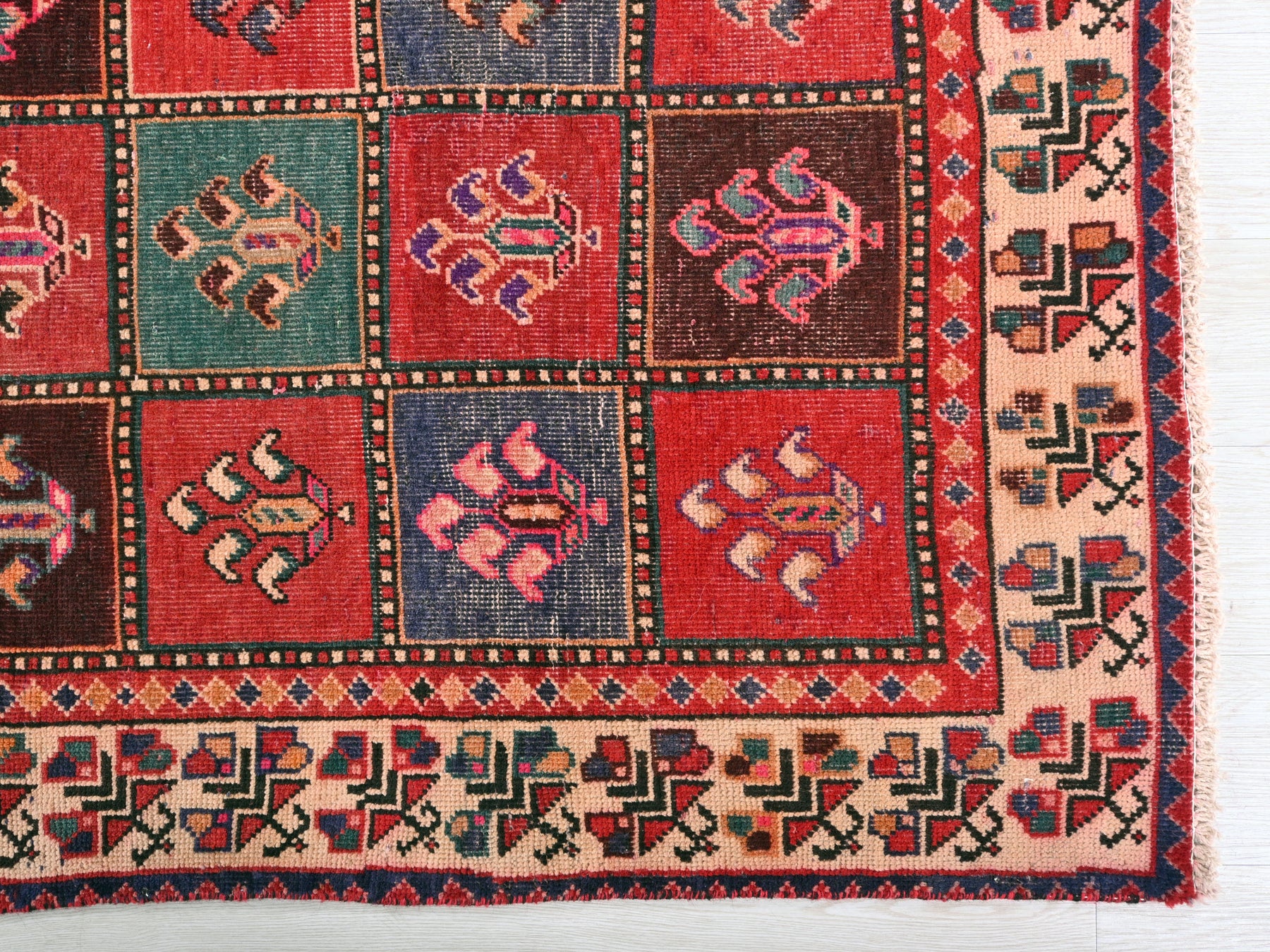 This is a hand-knotted, one-of-a-kind vintage rug. Due to the nature of this piece, there may be slight imperfections in its wear, shape, dimensions, and color. All of our rugs are professionally cleaned and repaired.
