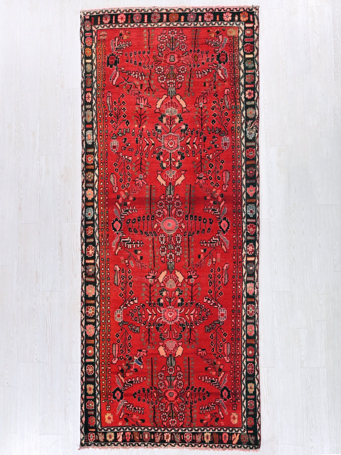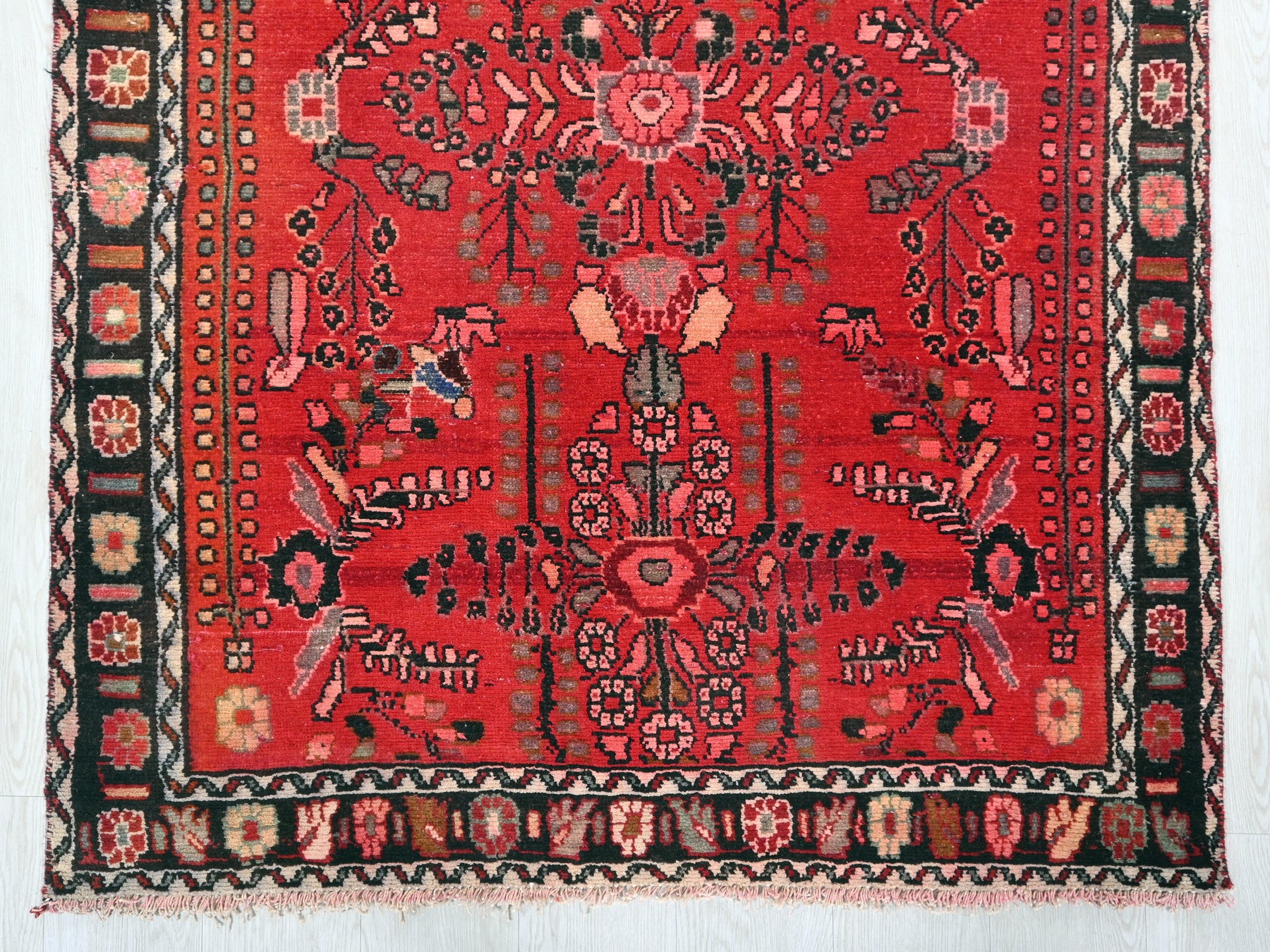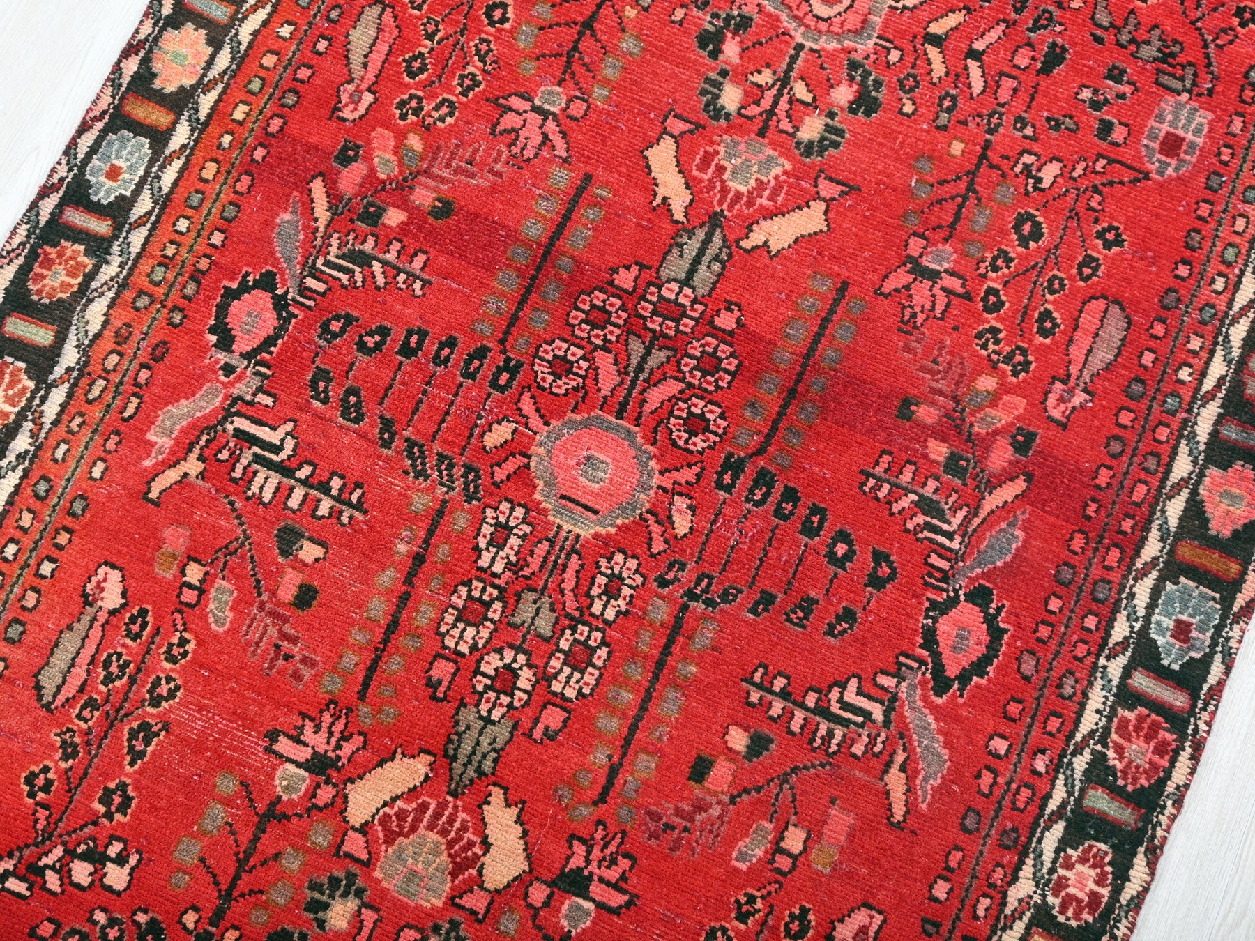 This is a hand-knotted, one-of-a-kind vintage rug. Due to the nature of this piece, there may be slight imperfections in its wear, shape, dimensions, and color. All of our rugs are professionally cleaned and repaired.