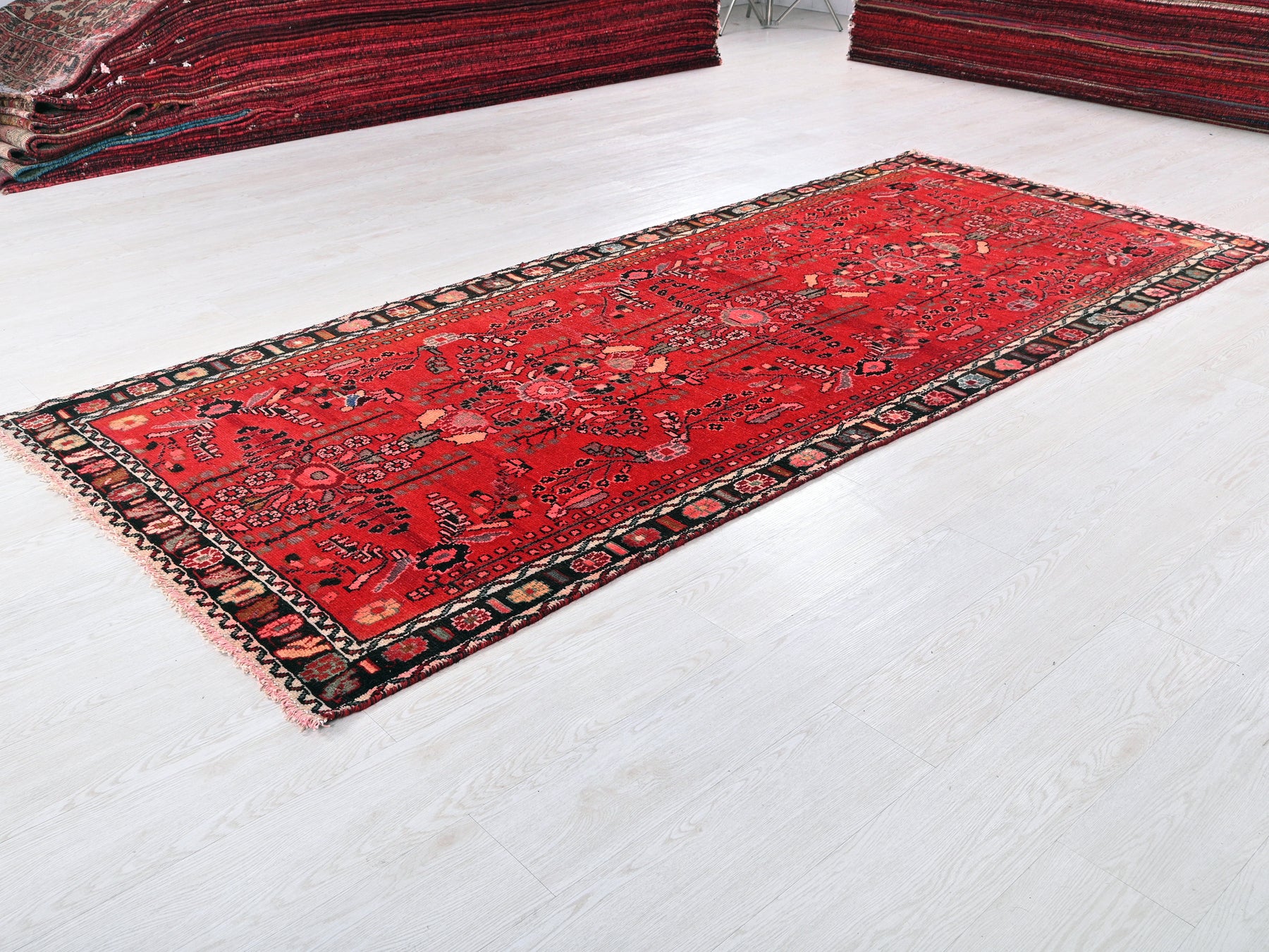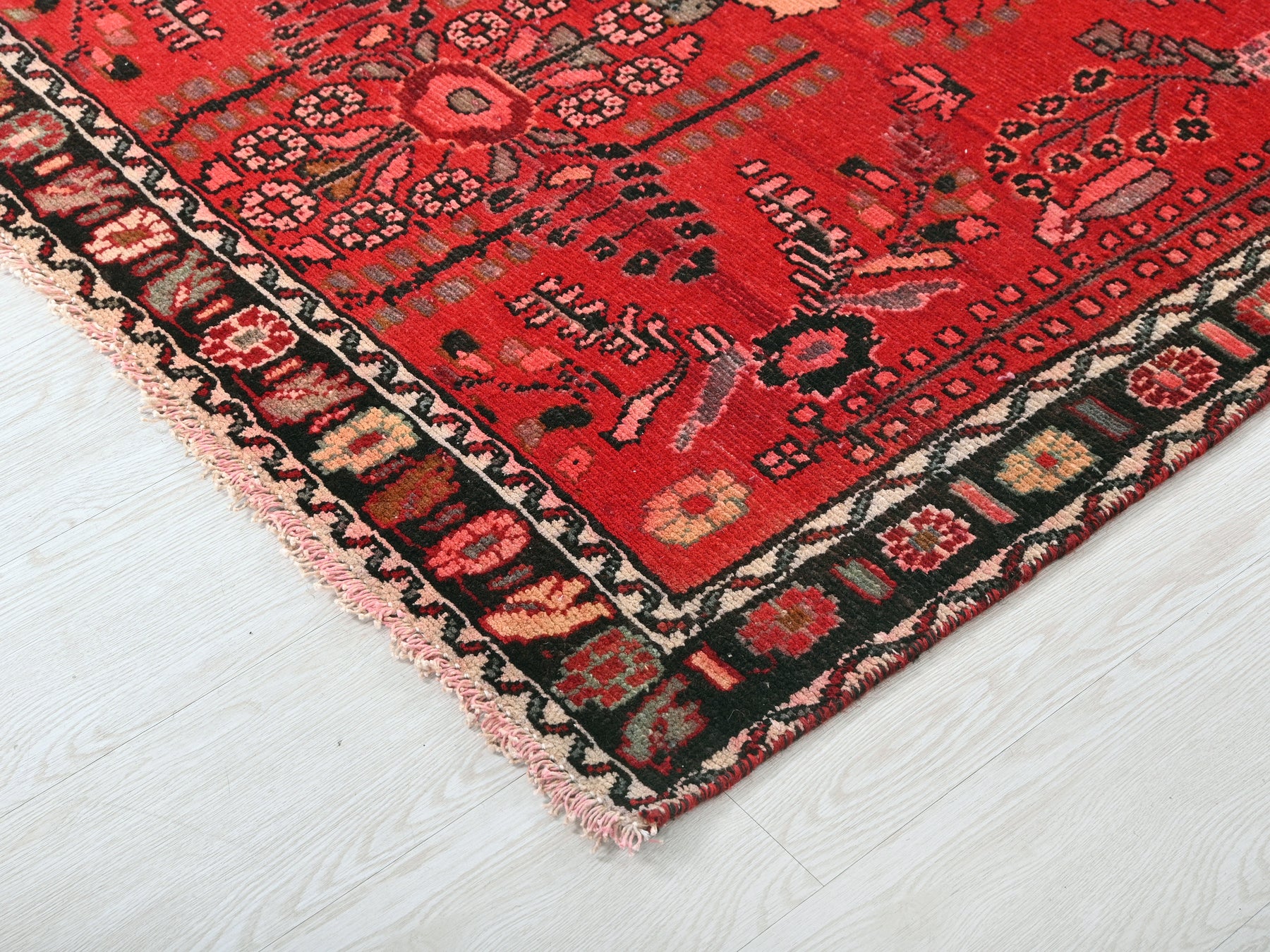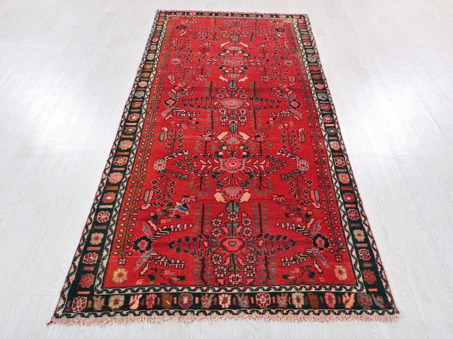 This is a hand-knotted, one-of-a-kind vintage rug. Due to the nature of this piece, there may be slight imperfections in its wear, shape, dimensions, and color. All of our rugs are professionally cleaned and repaired.
