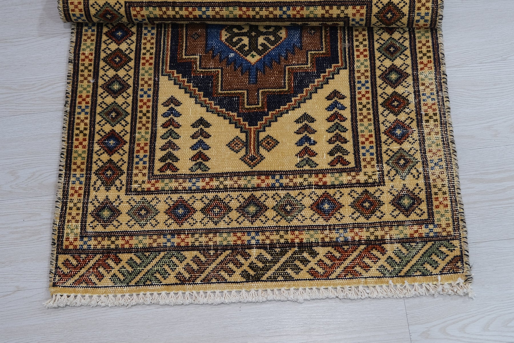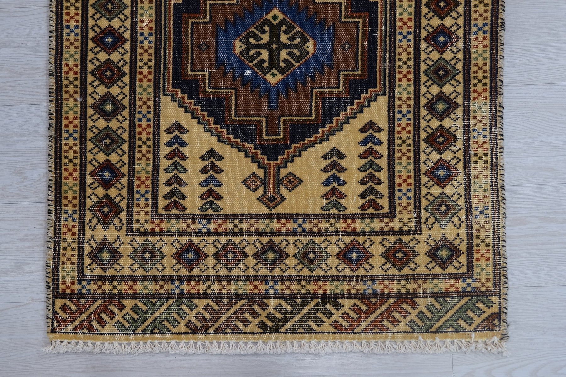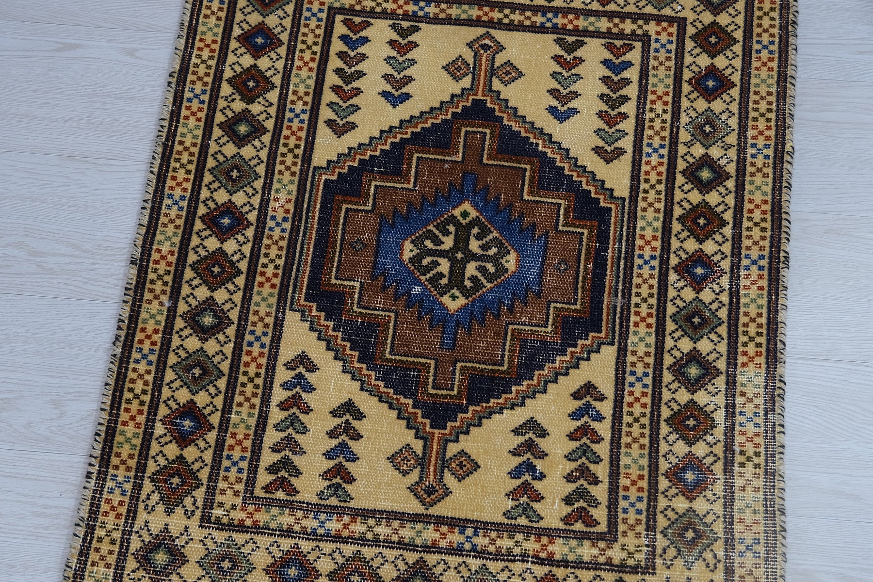 This is a hand-knotted, one-of-a-kind vintage rug. Due to the nature of this piece, there may be slight imperfections in its wear, shape, dimensions, and color. All of our rugs are professionally cleaned and repaired.