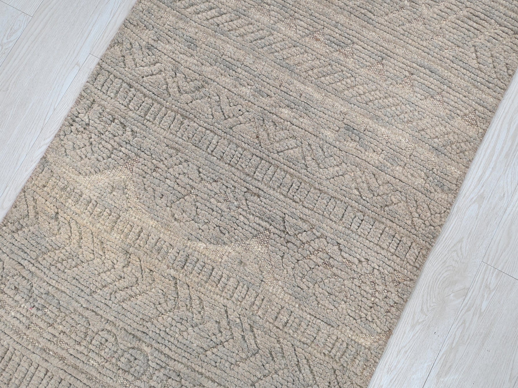 This is a hand-knotted, one-of-a-kind vintage rug. Due to the nature of this piece, there may be slight imperfections in its wear, shape, dimensions, and color. All of our rugs are professionally cleaned and repaired.