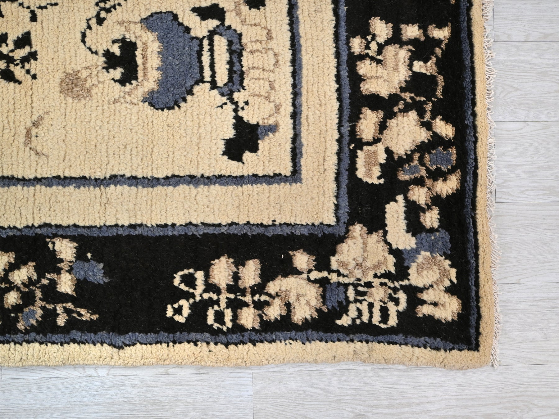 This is a hand-knotted, one-of-a-kind vintage rug. Due to the nature of this piece, there may be slight imperfections in its wear, shape, dimensions, and color. All of our rugs are professionally cleaned and repaired.