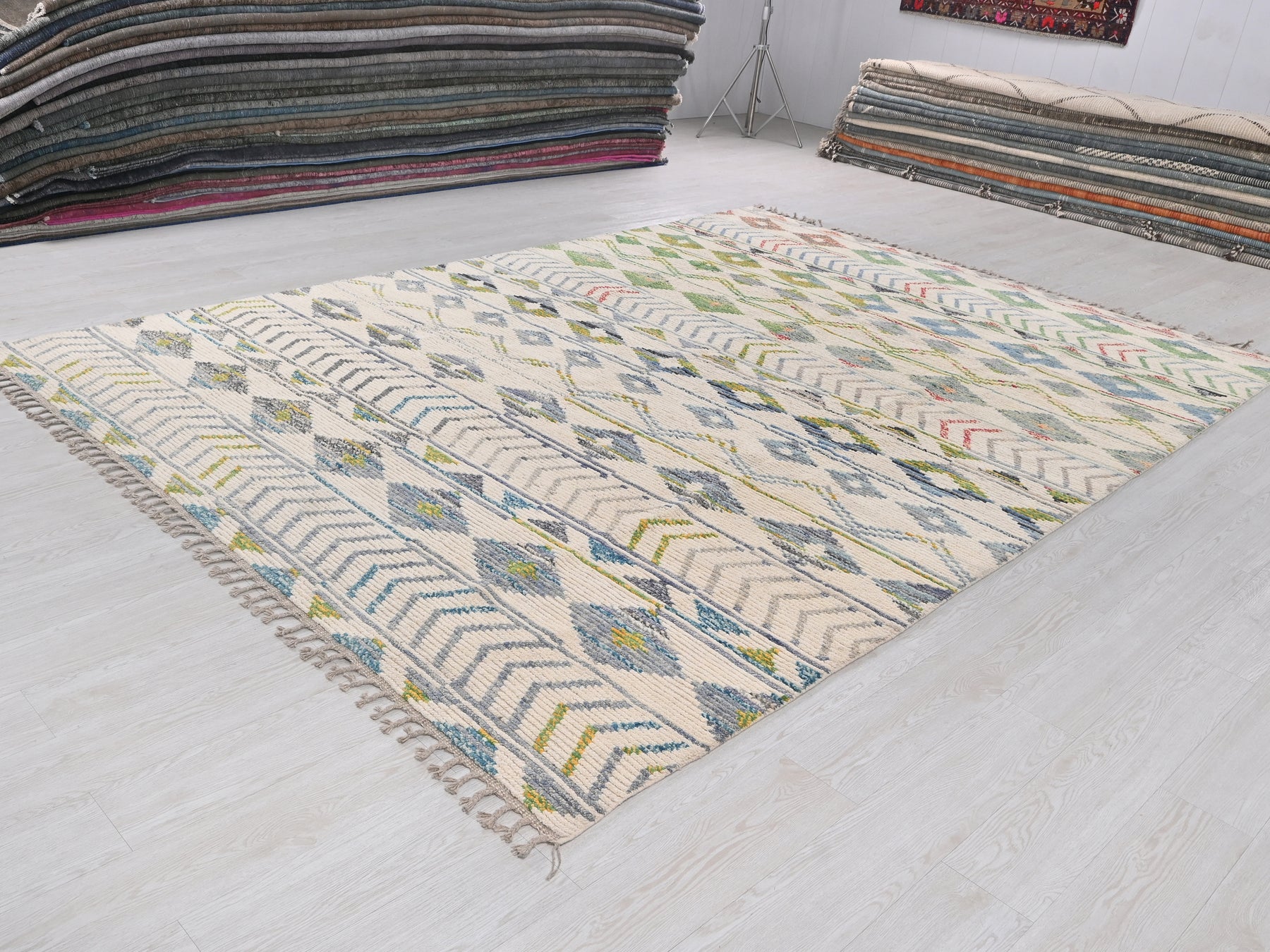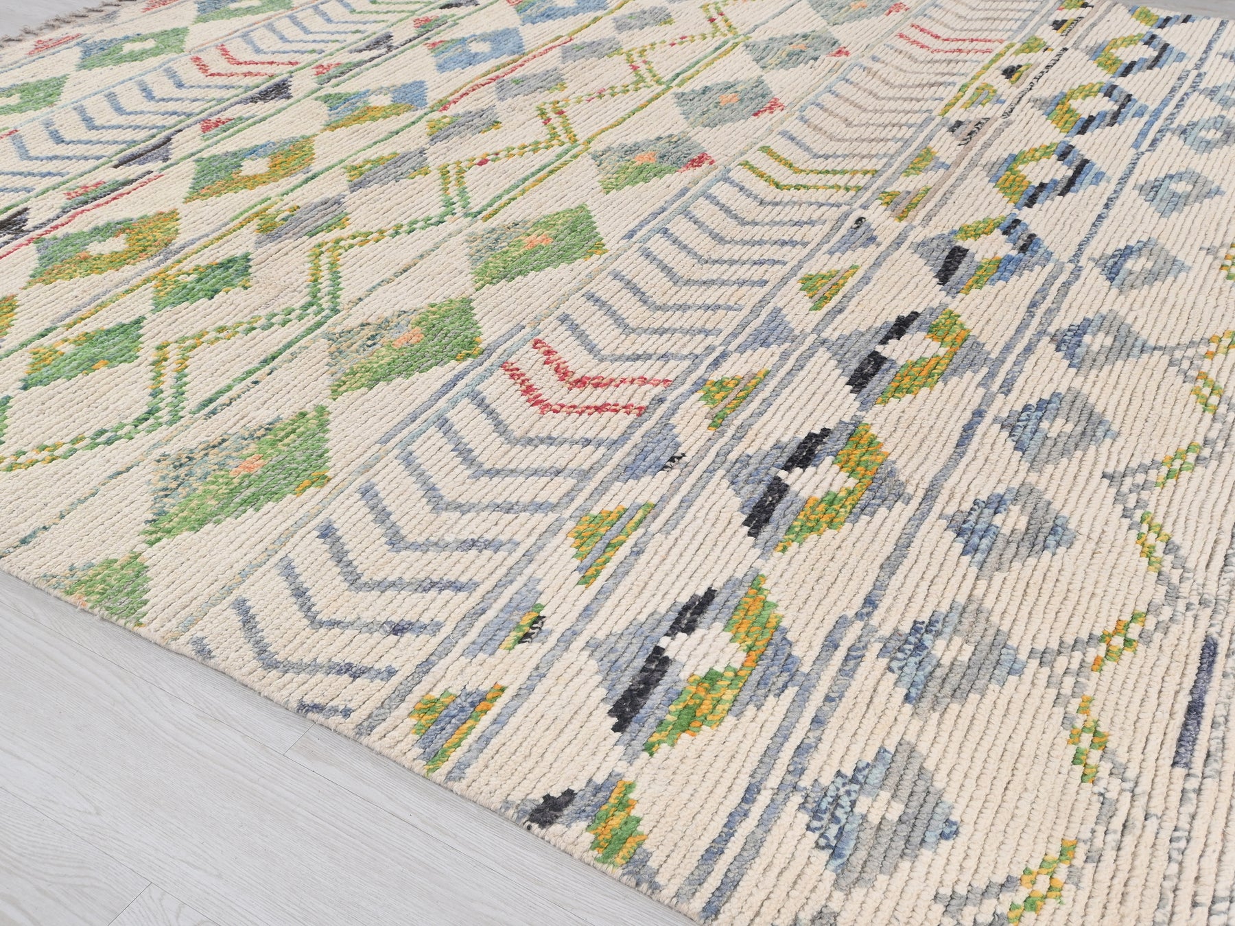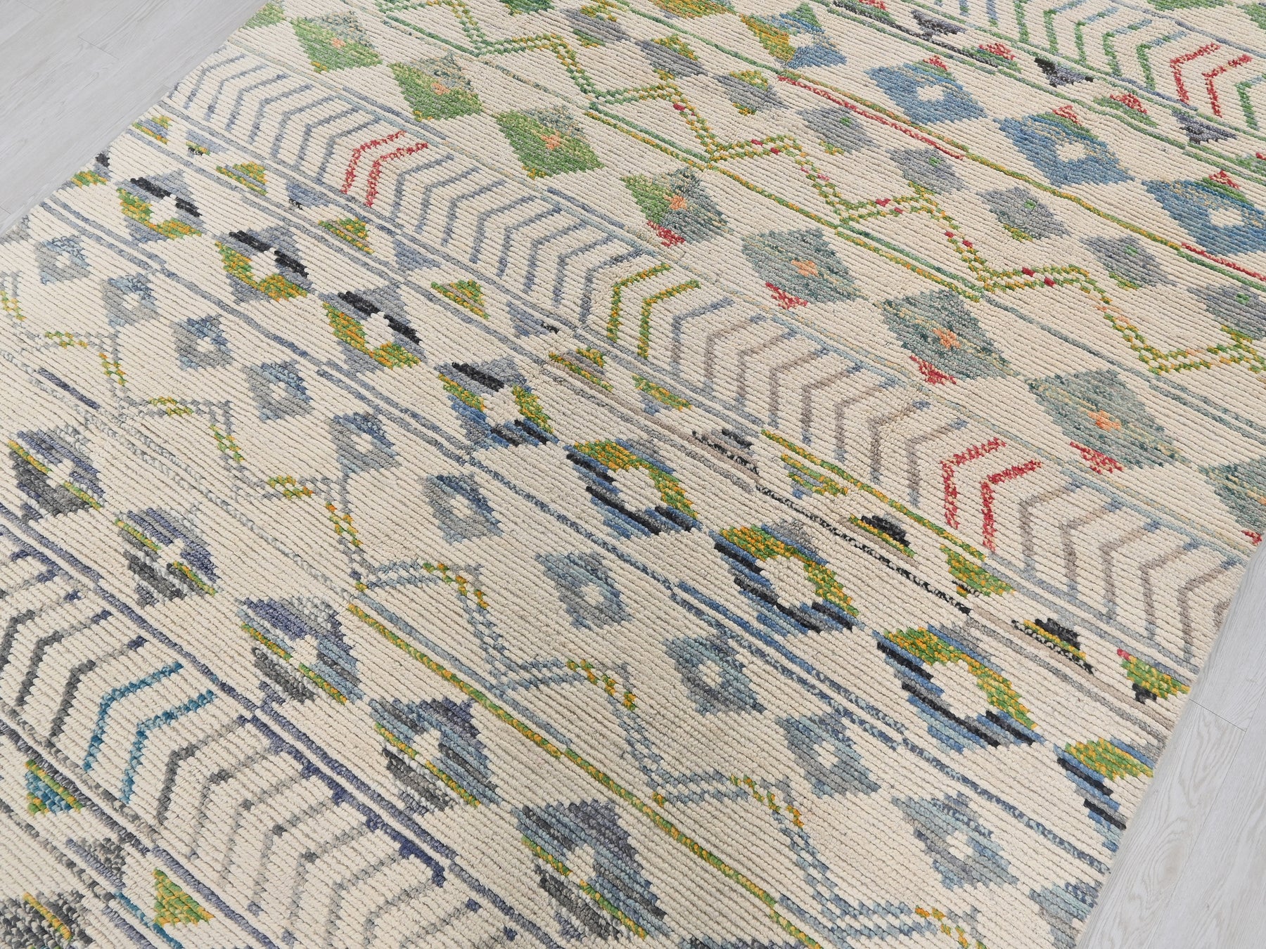 This is a hand-knotted, one-of-a-kind vintage rug. Due to the nature of this piece, there may be slight imperfections in its wear, shape, dimensions, and color. All of our rugs are professionally cleaned and repaired.