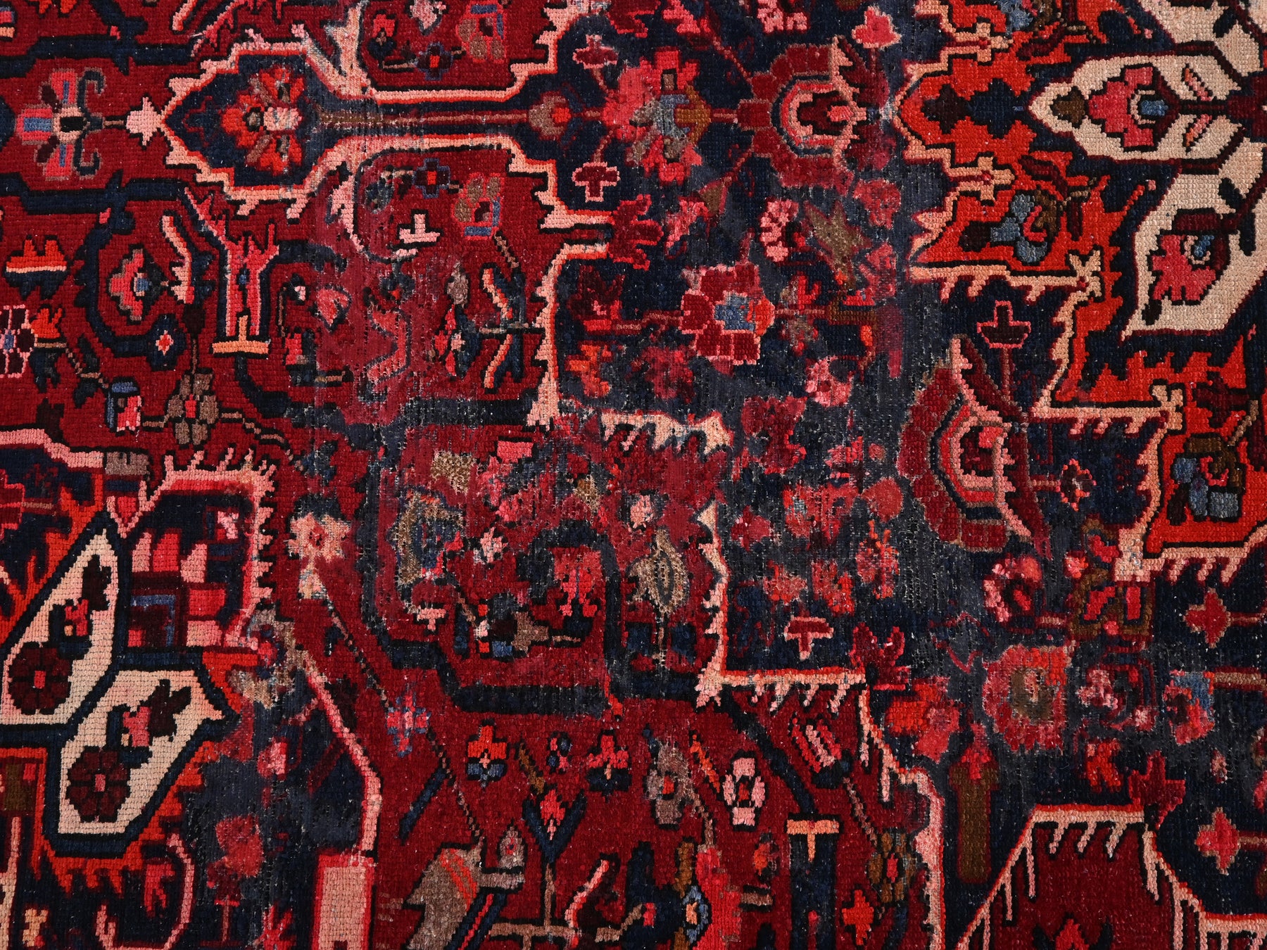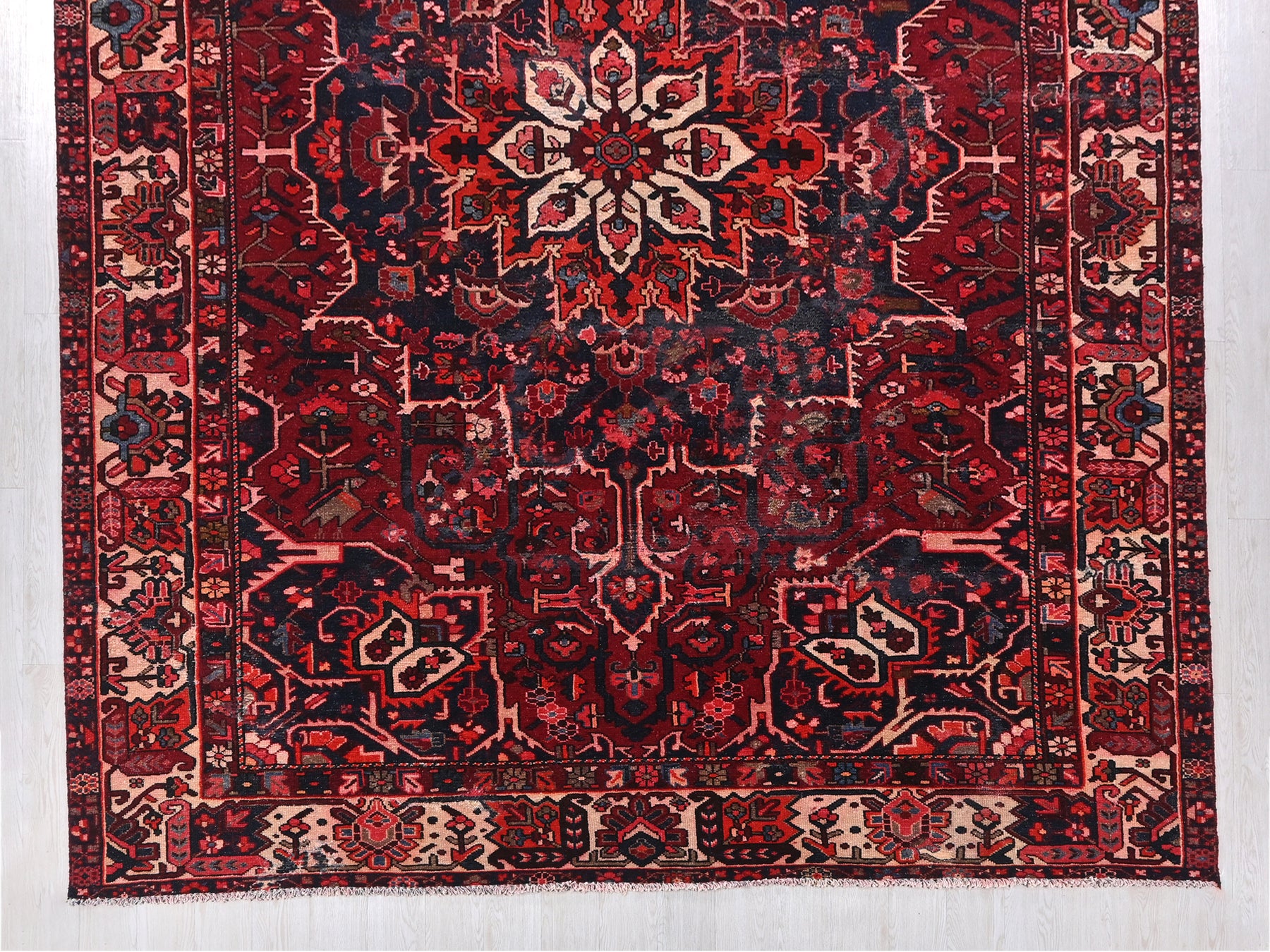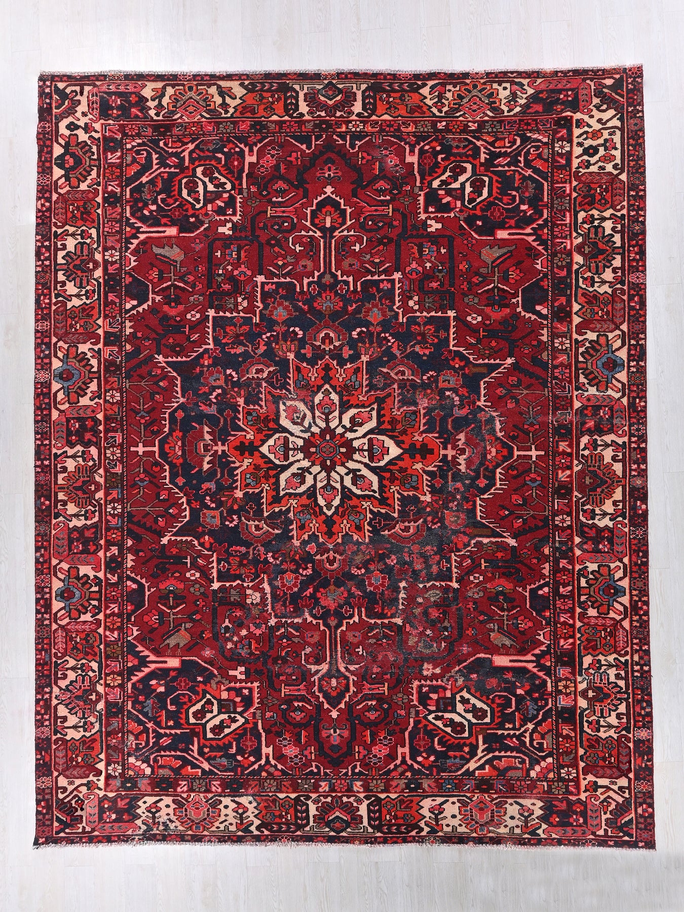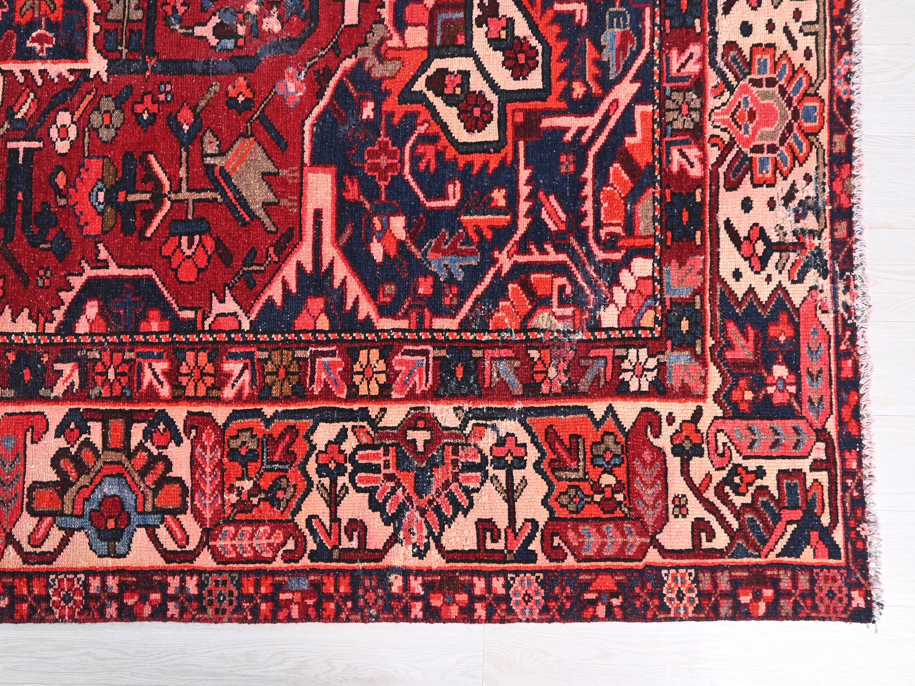 This is a hand-knotted, one-of-a-kind vintage rug. Due to the nature of this piece, there may be slight imperfections in its wear, shape, dimensions, and color. All of our rugs are professionally cleaned and repaired.