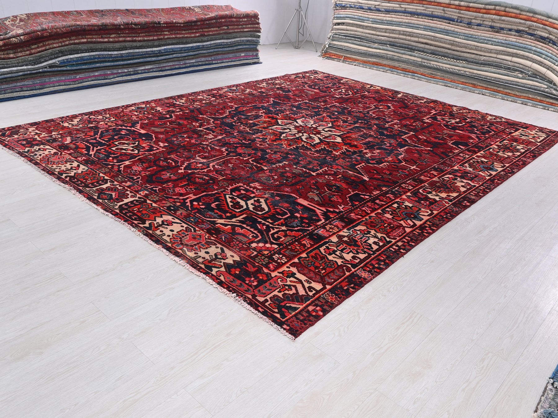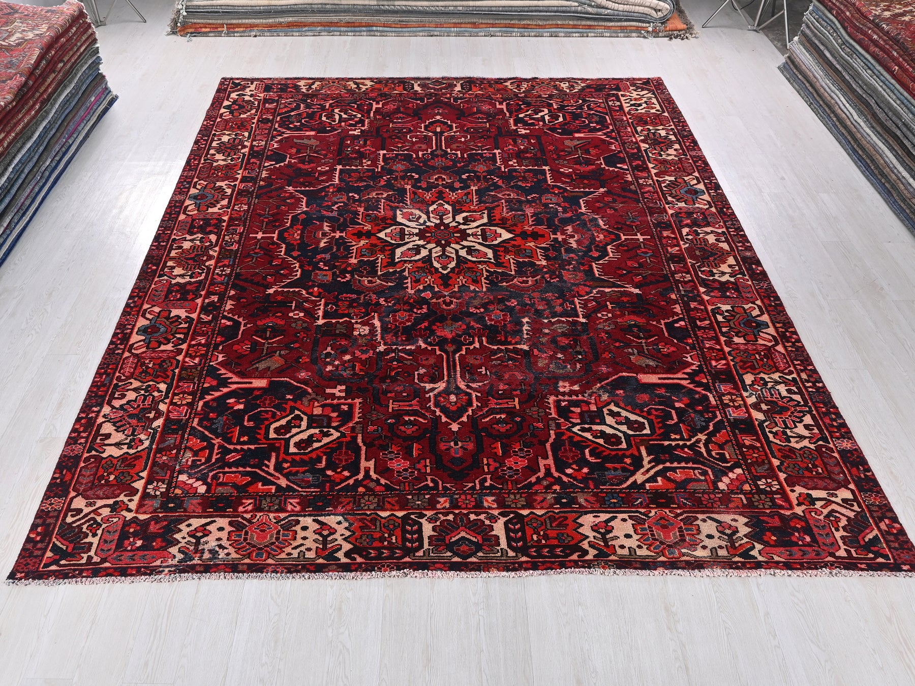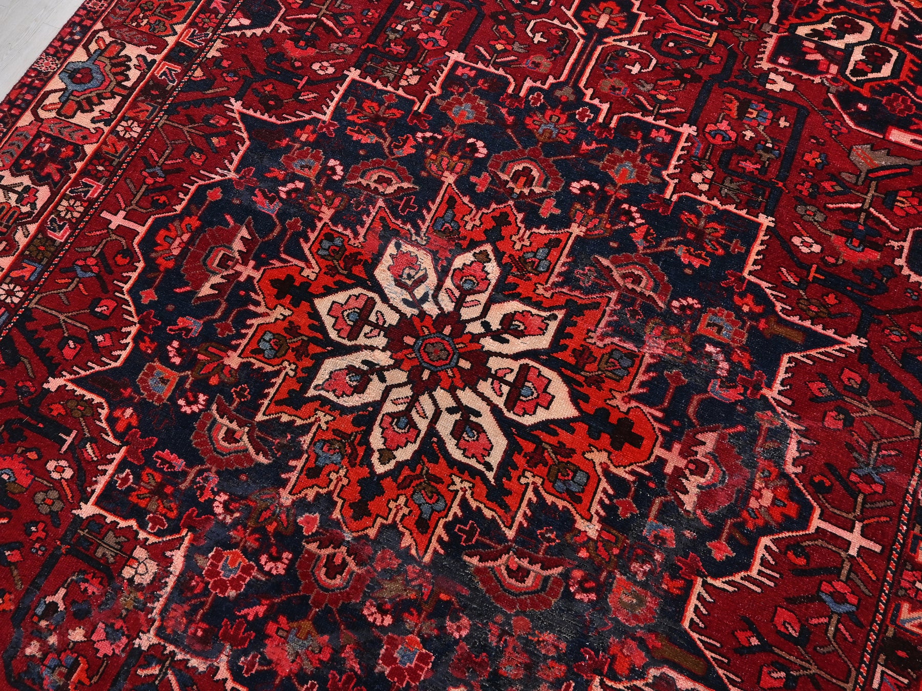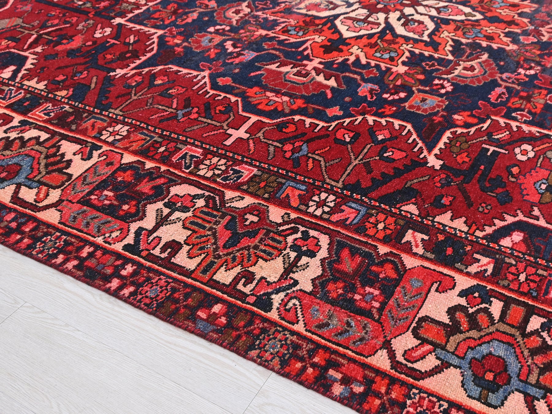This is a hand-knotted, one-of-a-kind vintage rug. Due to the nature of this piece, there may be slight imperfections in its wear, shape, dimensions, and color. All of our rugs are professionally cleaned and repaired.