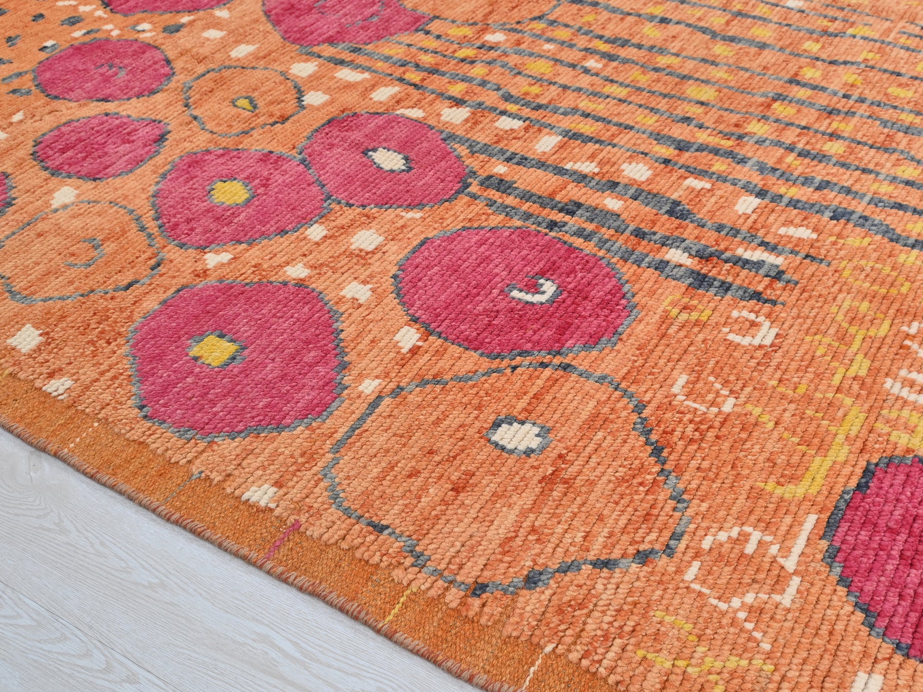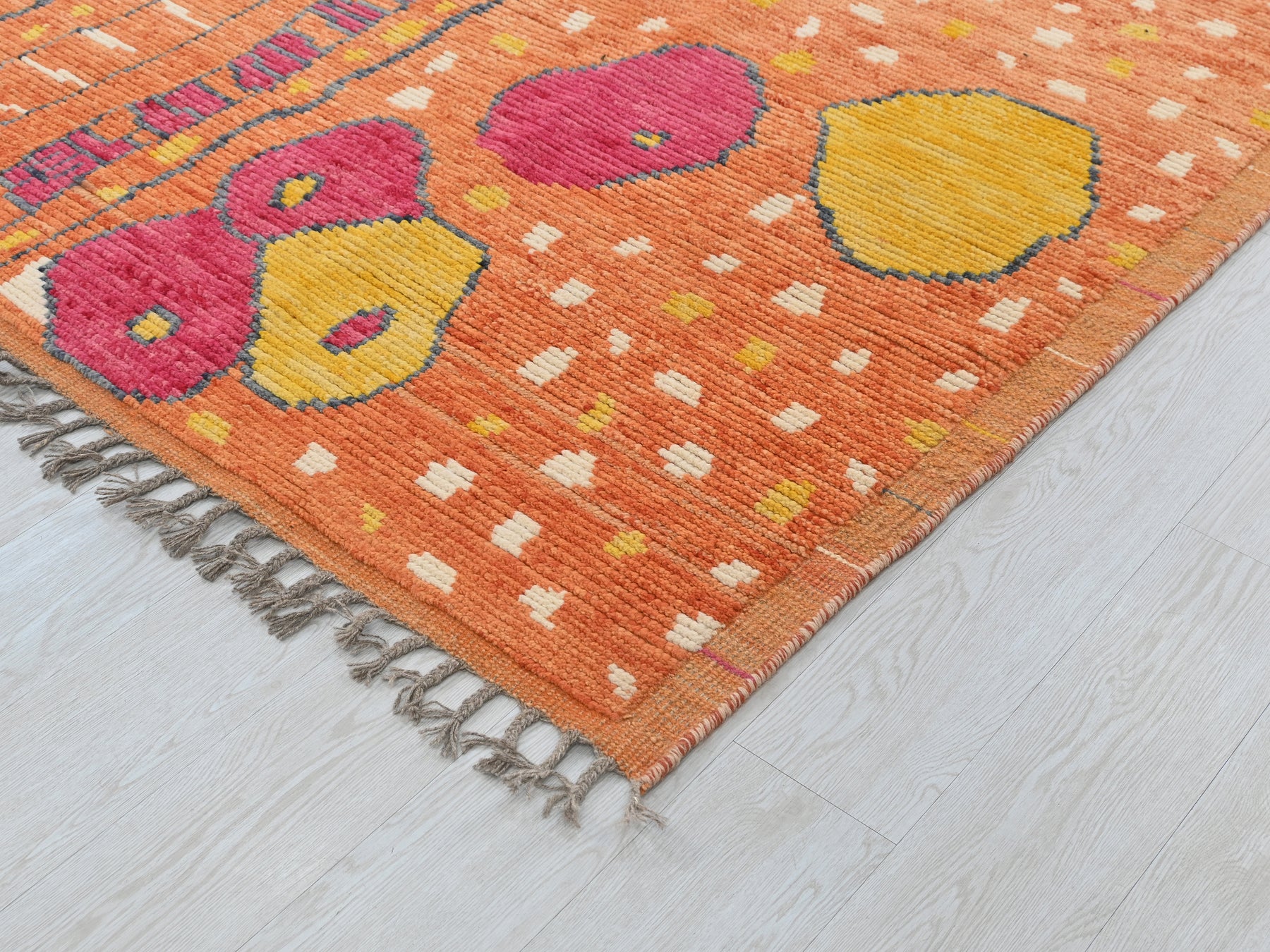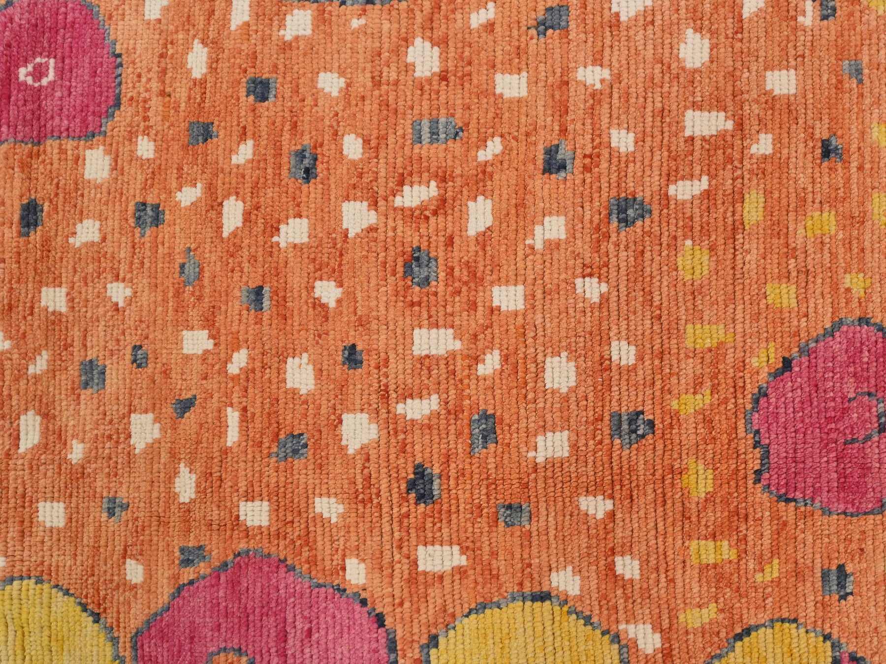 This is a hand-knotted, one-of-a-kind vintage rug. Due to the nature of this piece, there may be slight imperfections in its wear, shape, dimensions, and color. All of our rugs are professionally cleaned and repaired.