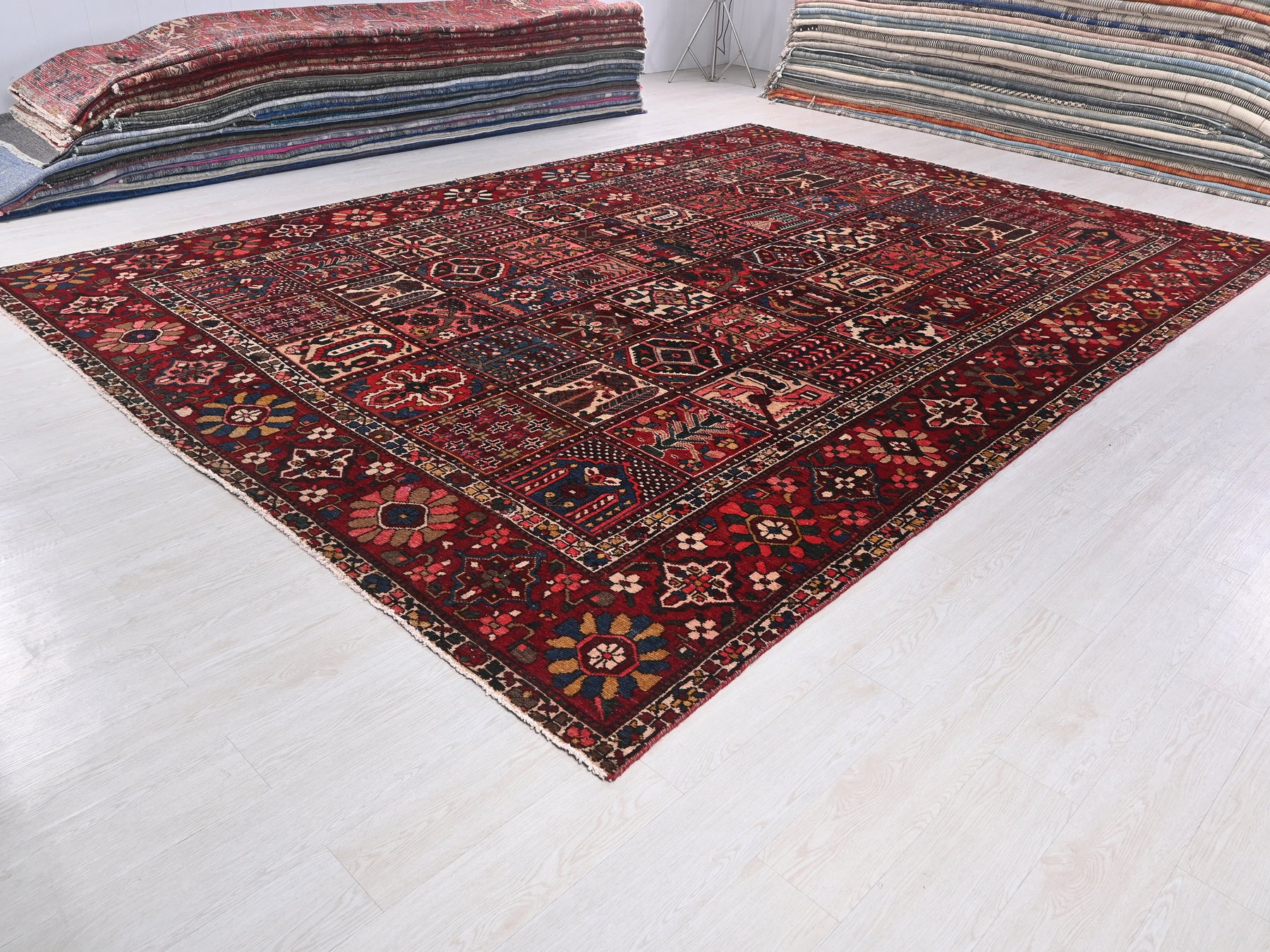 This is a hand-knotted, one-of-a-kind vintage rug. Due to the nature of this piece, there may be slight imperfections in its wear, shape, dimensions, and color. All of our rugs are professionally cleaned and repaired.