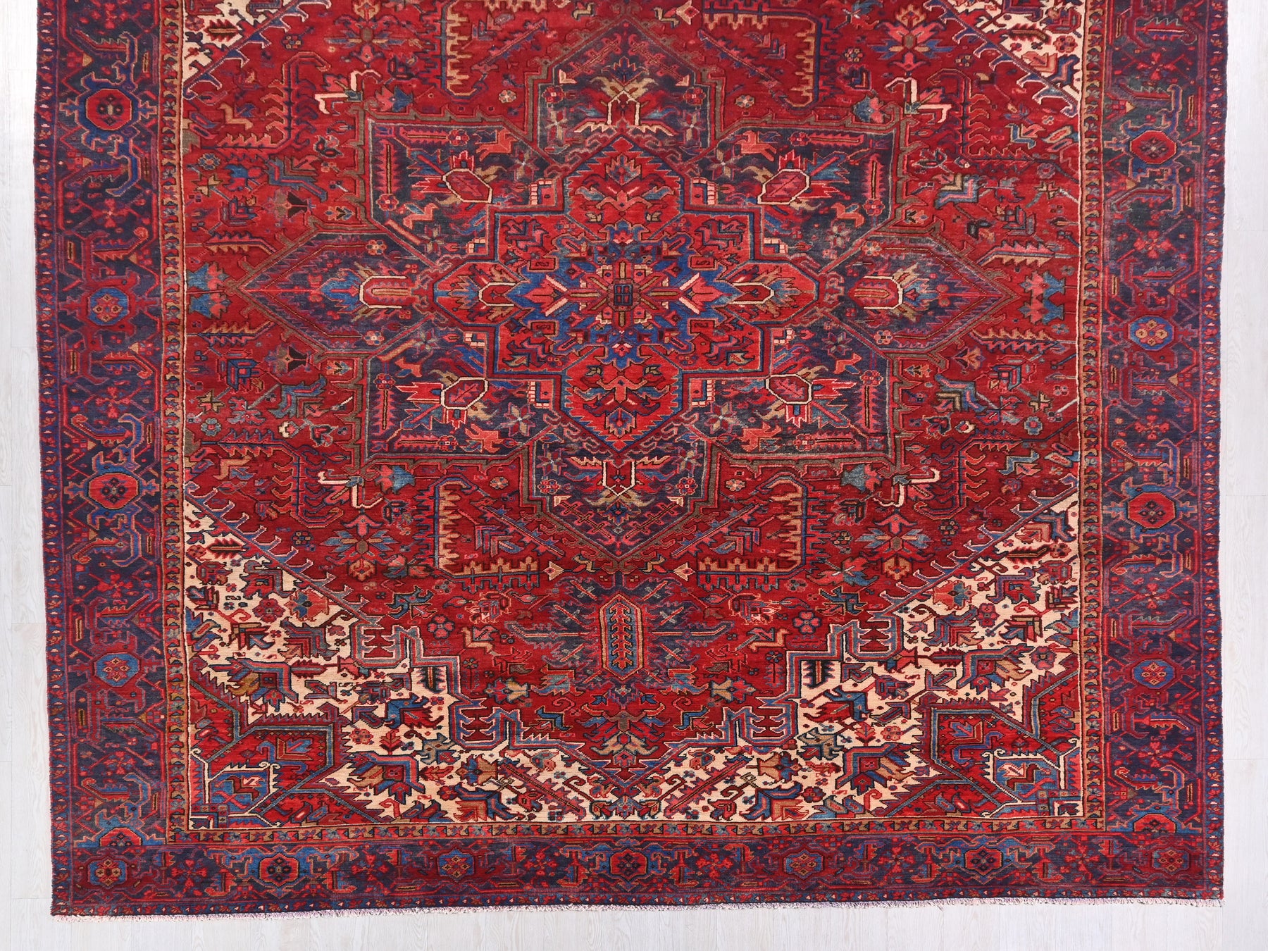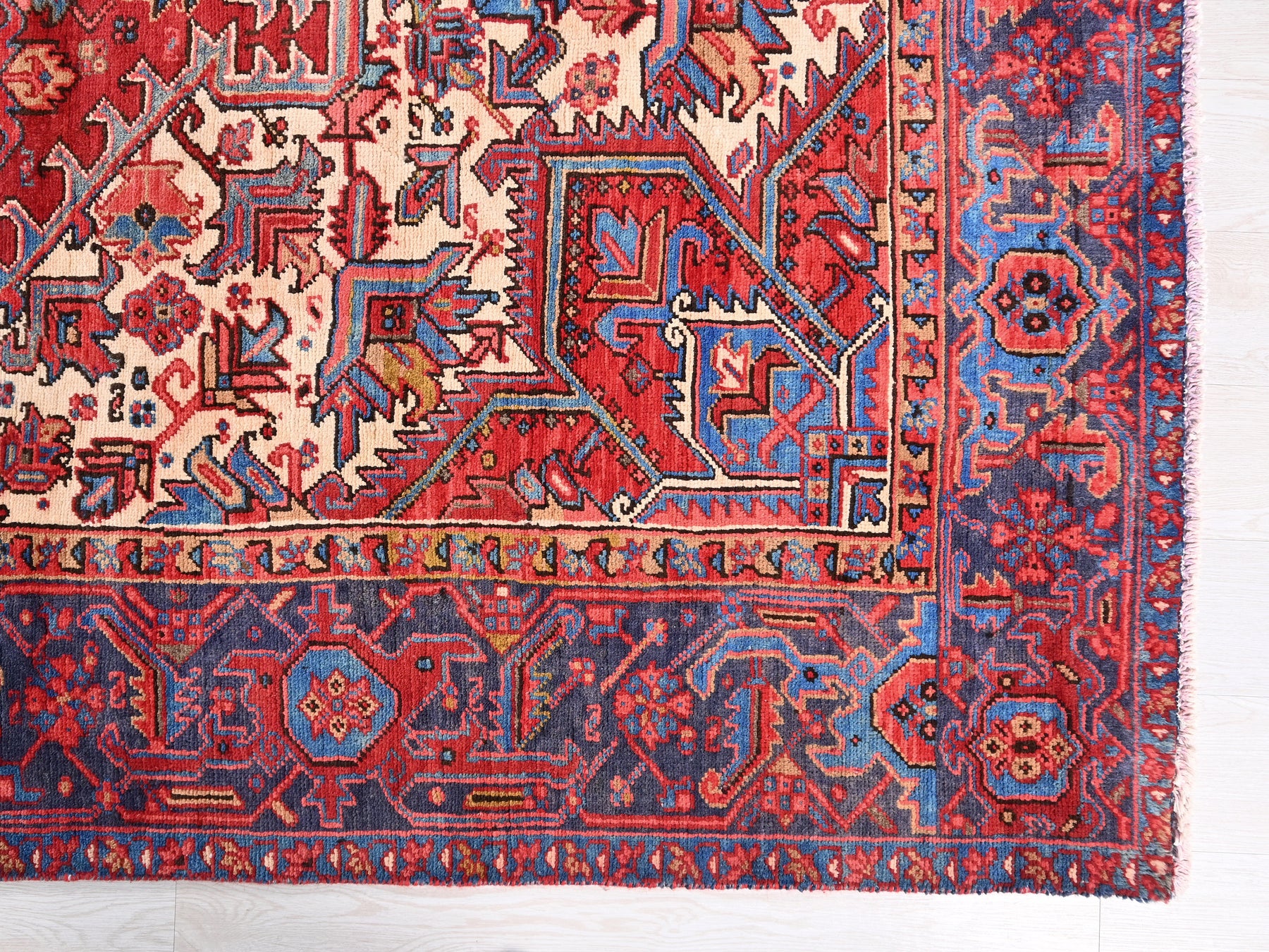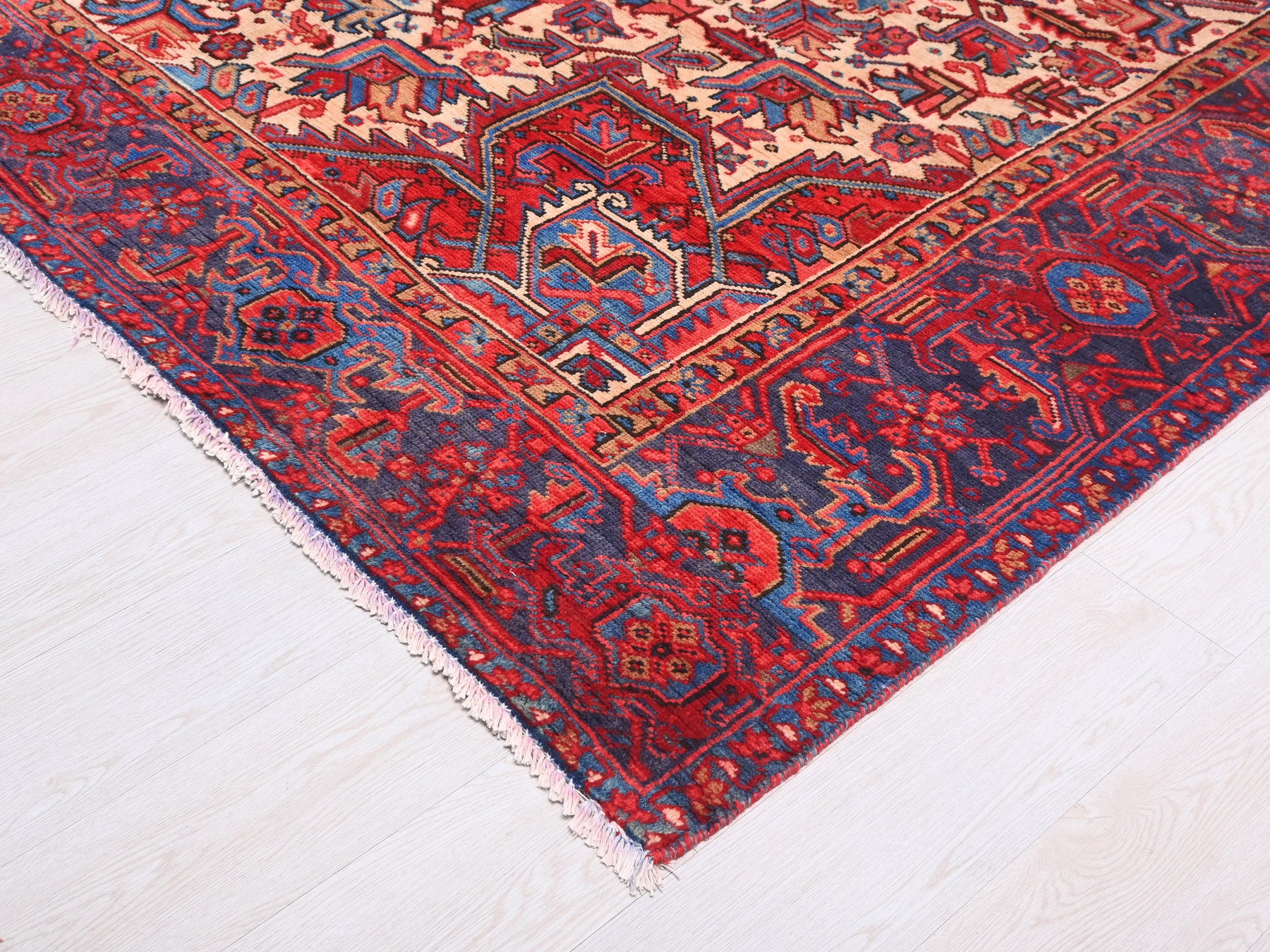 This is a hand-knotted, one-of-a-kind vintage rug. Due to the nature of this piece, there may be slight imperfections in its wear, shape, dimensions, and color. All of our rugs are professionally cleaned and repaired.