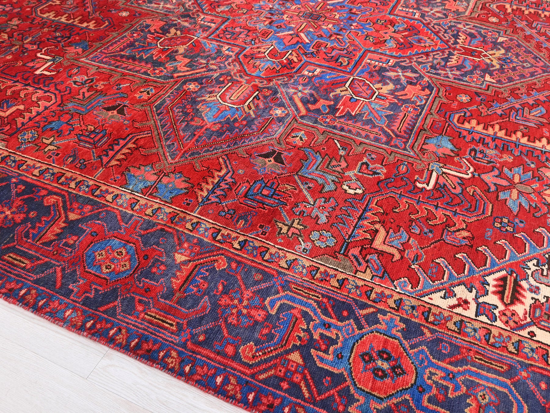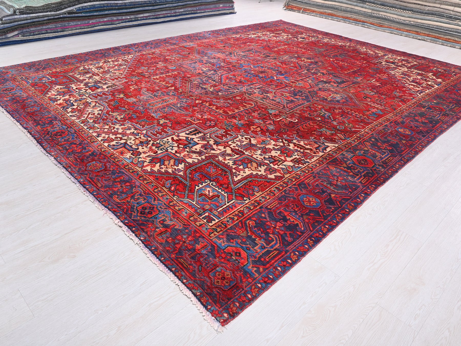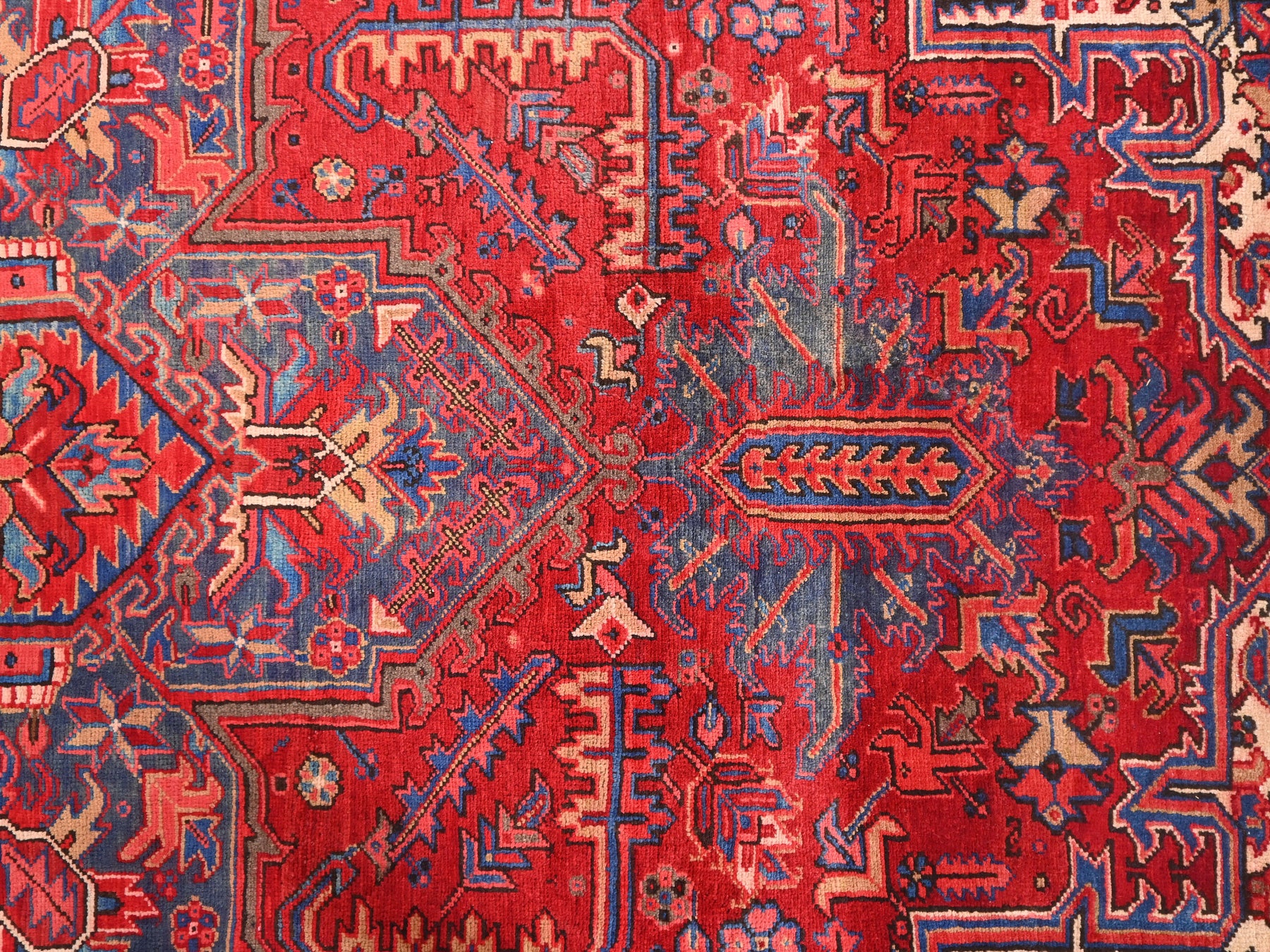 This is a hand-knotted, one-of-a-kind vintage rug. Due to the nature of this piece, there may be slight imperfections in its wear, shape, dimensions, and color. All of our rugs are professionally cleaned and repaired.