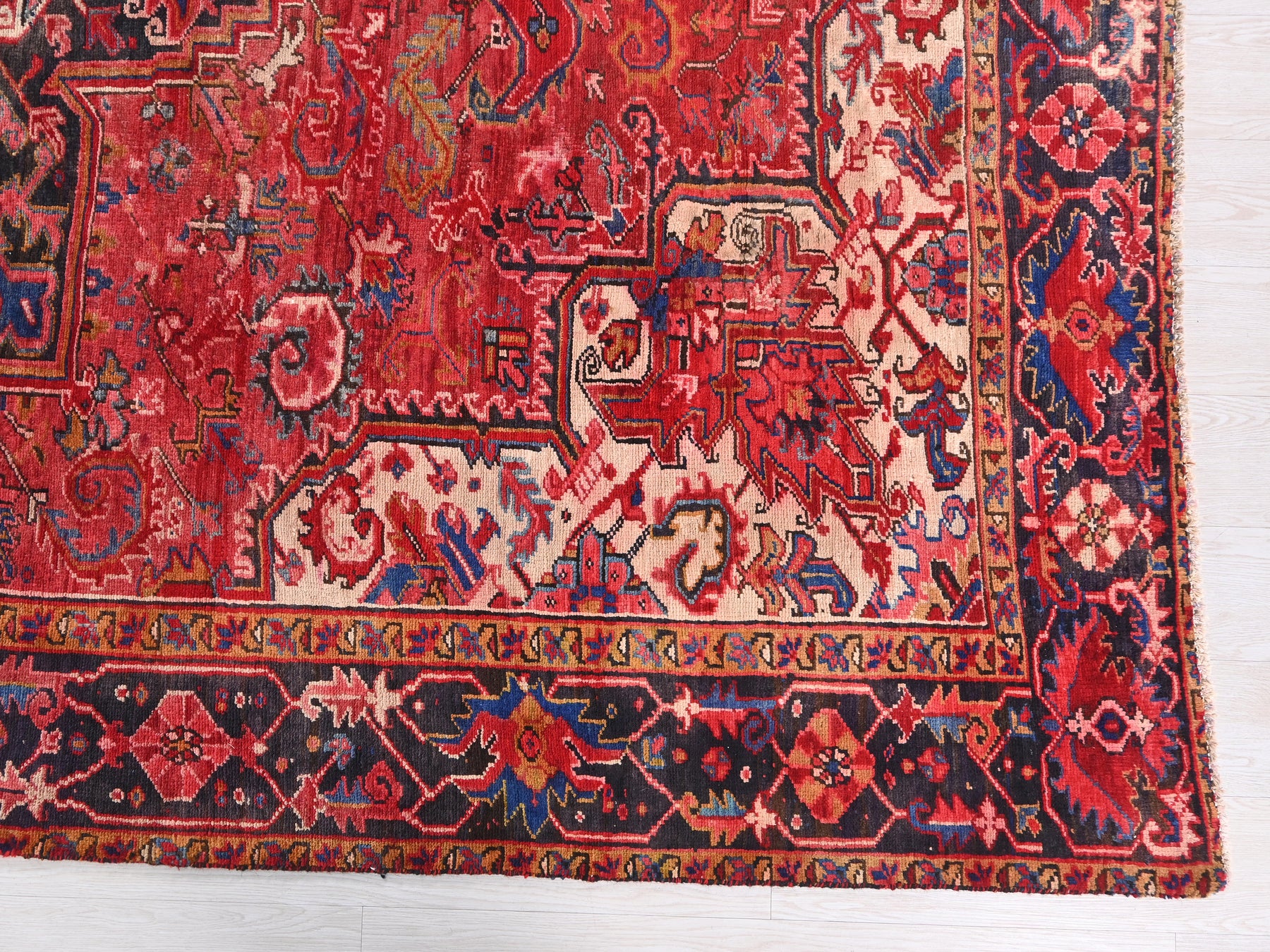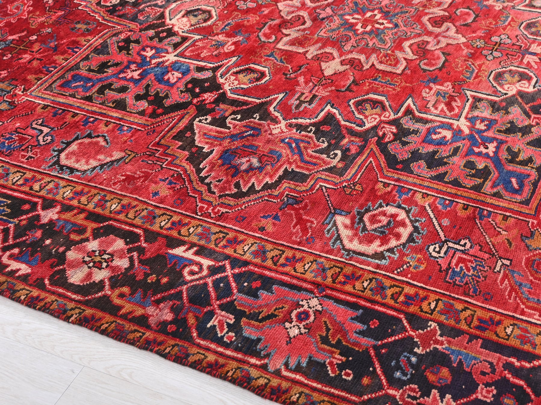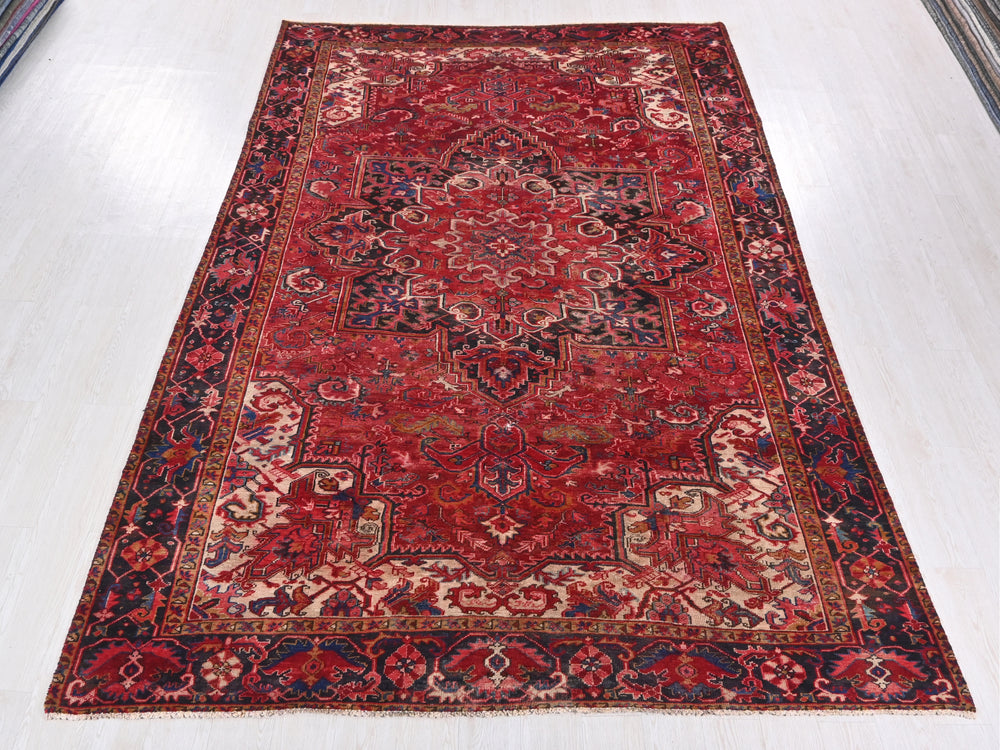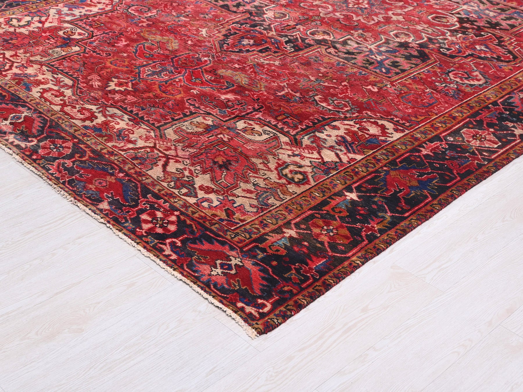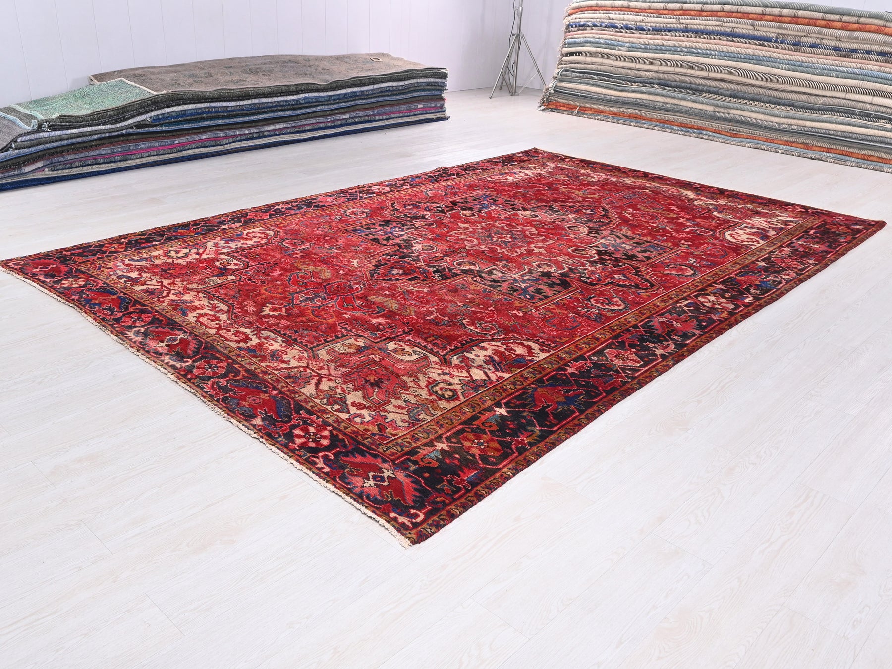 This is a hand-knotted, one-of-a-kind vintage rug. Due to the nature of this piece, there may be slight imperfections in its wear, shape, dimensions, and color. All of our rugs are professionally cleaned and repaired.