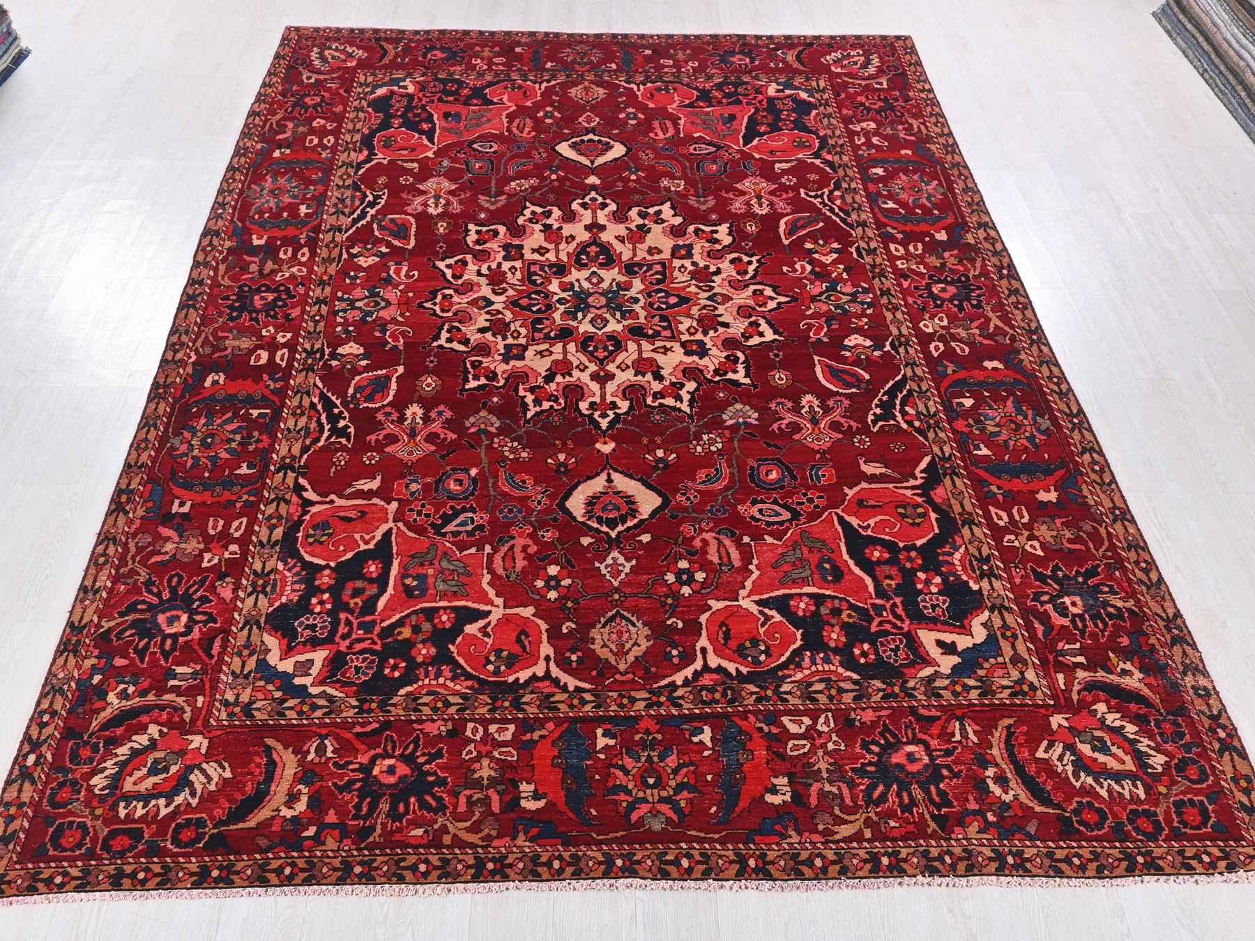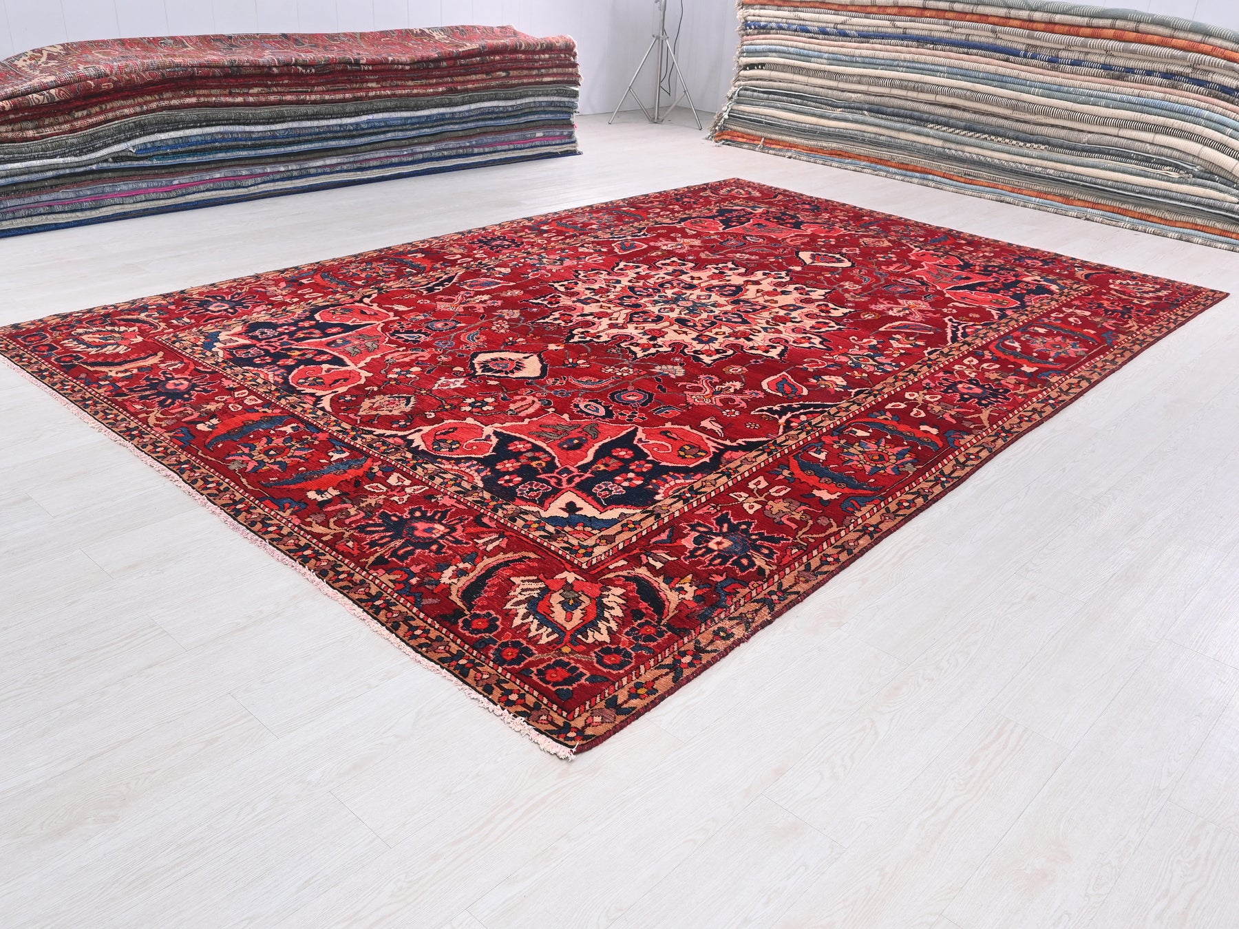 This is a hand-knotted, one-of-a-kind vintage rug. Due to the nature of this piece, there may be slight imperfections in its wear, shape, dimensions, and color. All of our rugs are professionally cleaned and repaired.