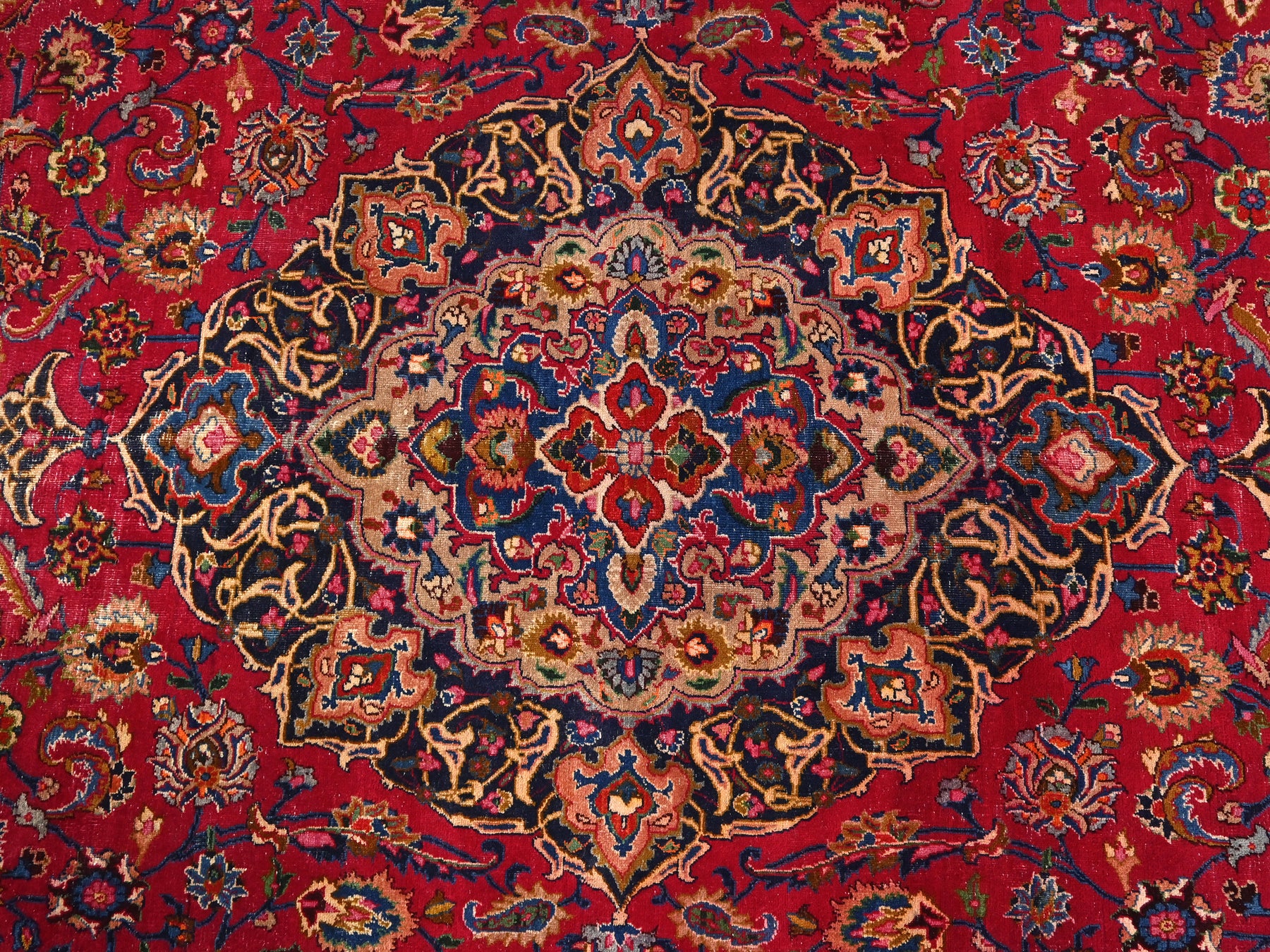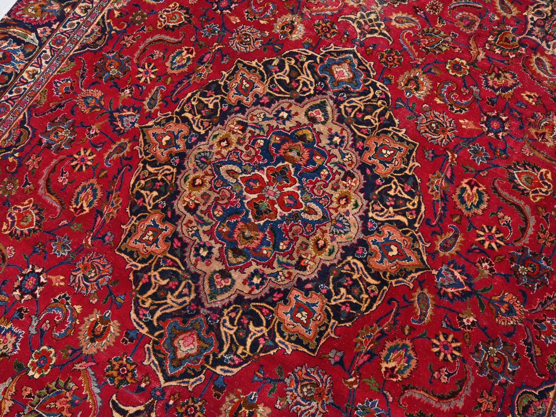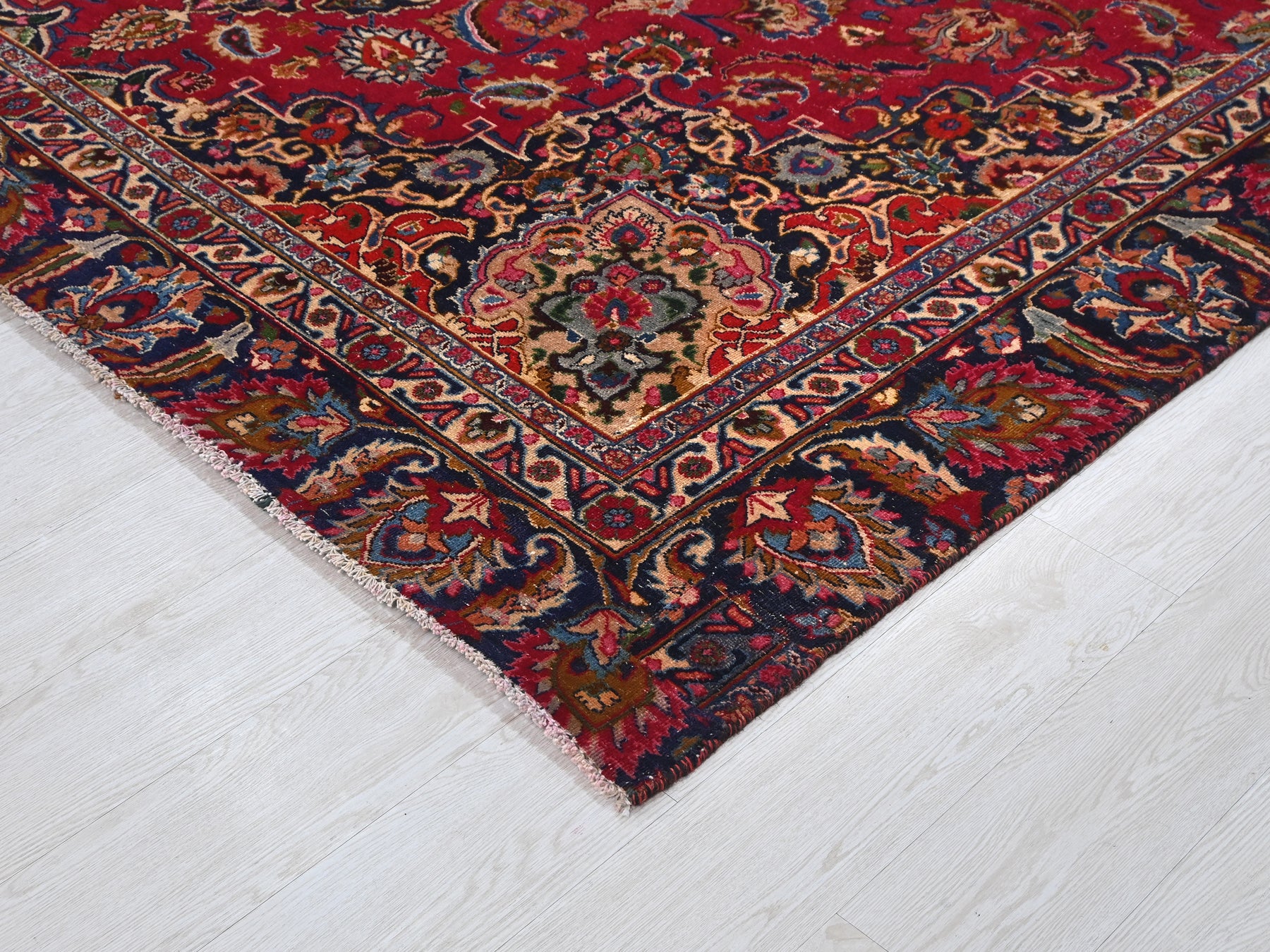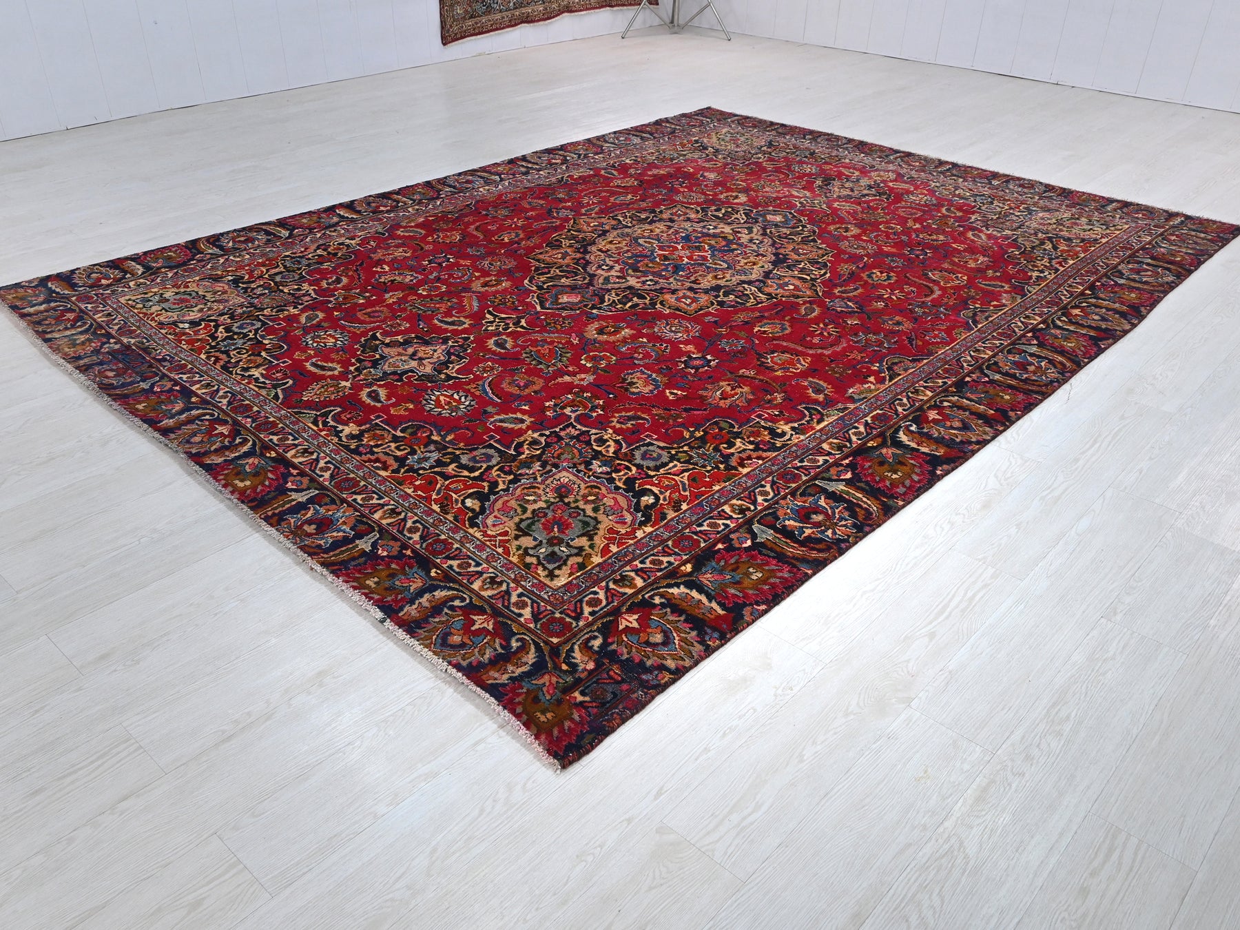 This is a hand-knotted, one-of-a-kind vintage rug. Due to the nature of this piece, there may be slight imperfections in its wear, shape, dimensions, and color. All of our rugs are professionally cleaned and repaired.